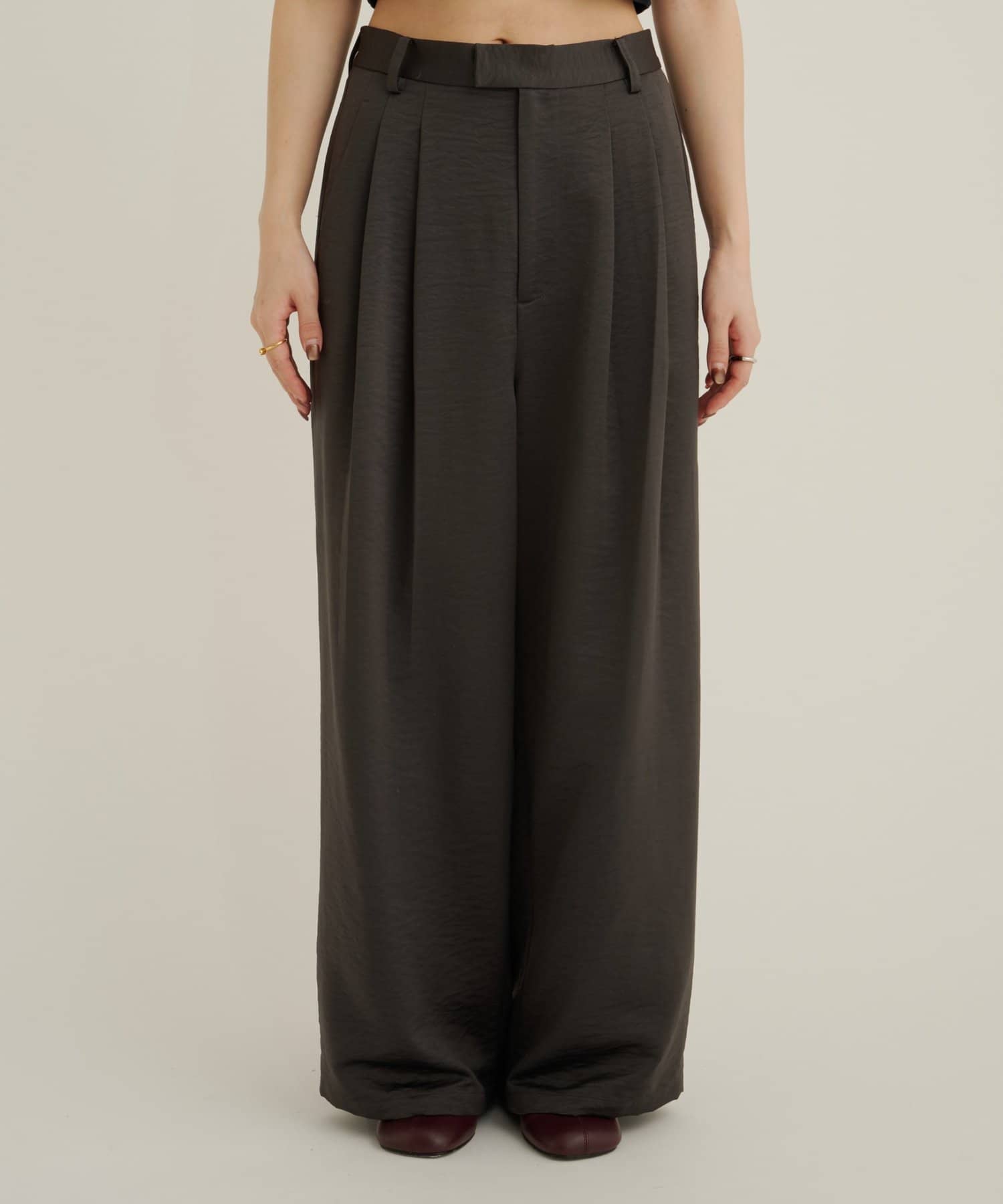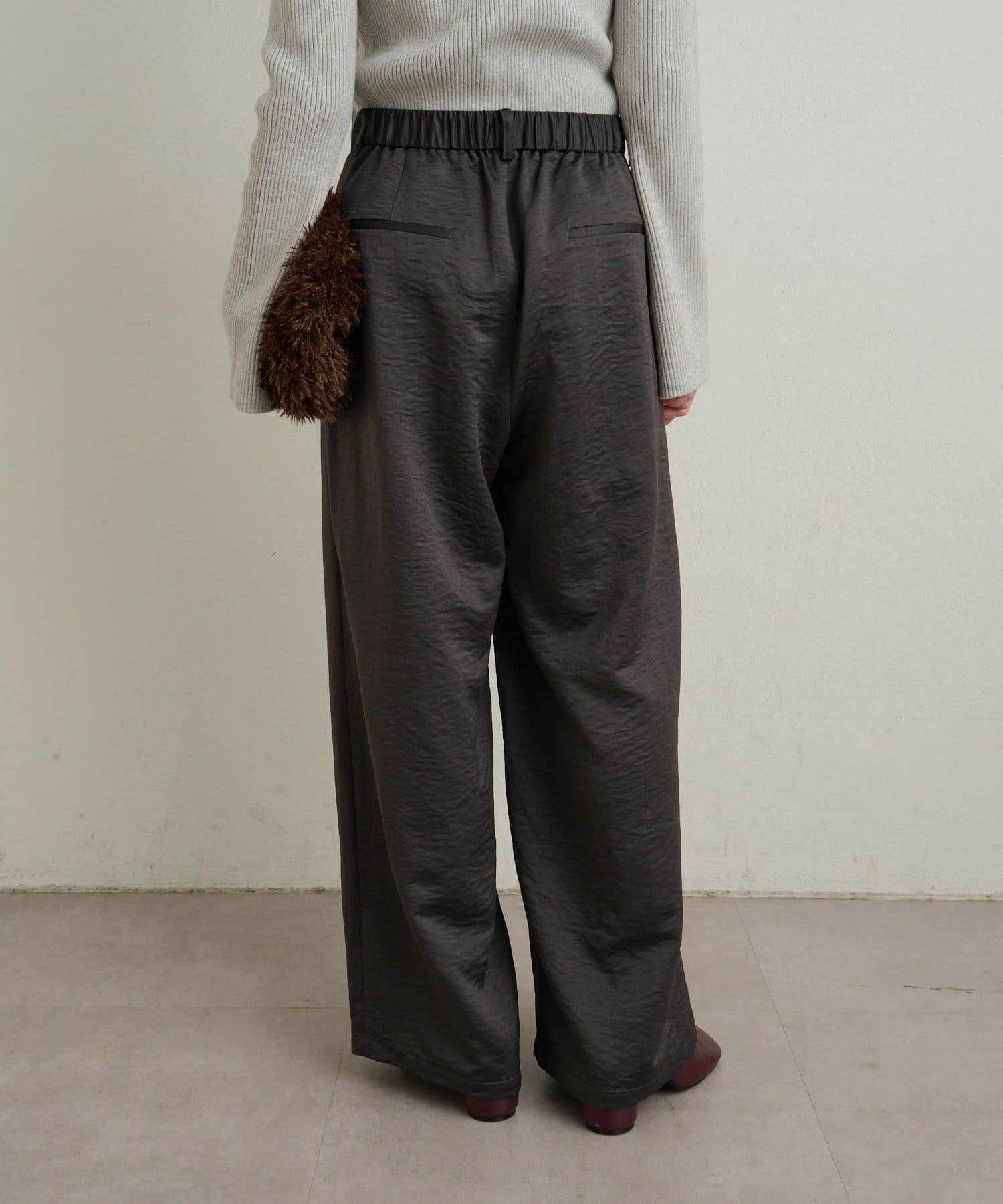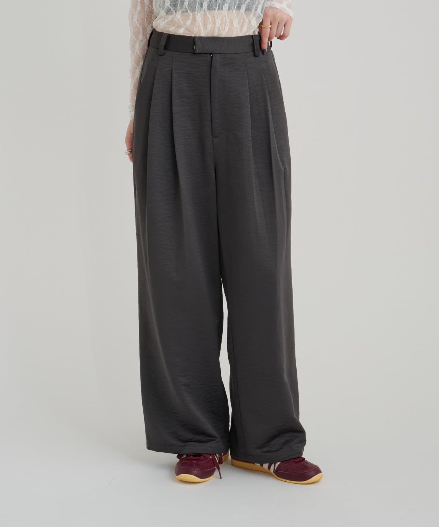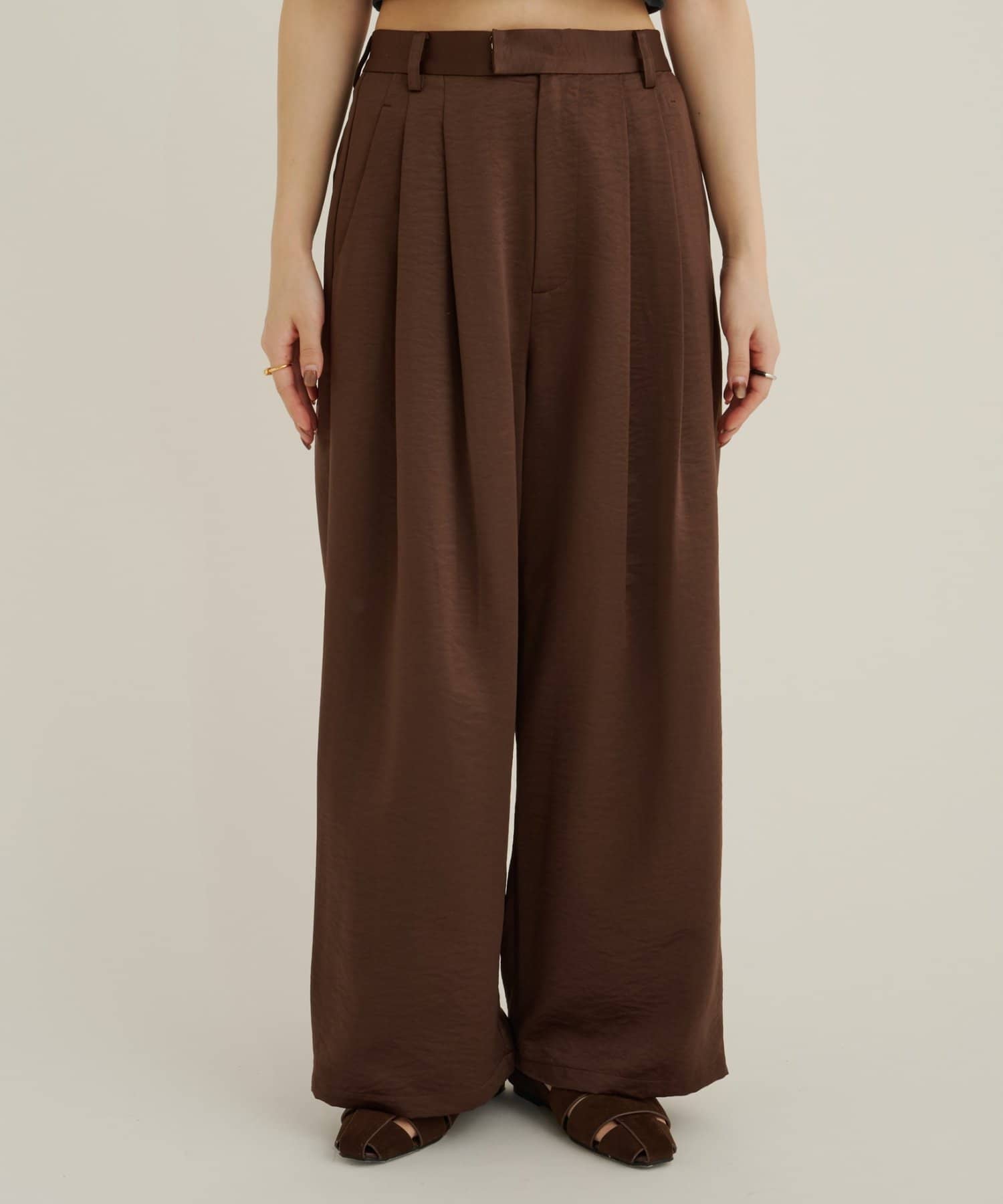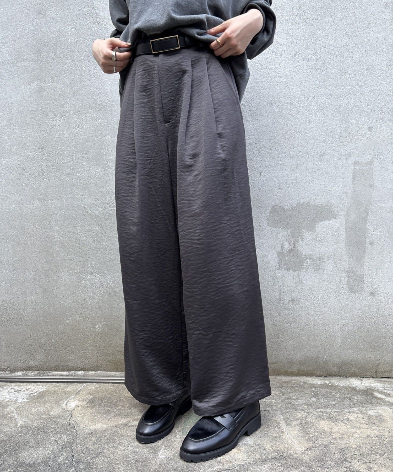 ・上品な光沢感がいつものコーディネートをワンランクアップさせてくれるサテンパンツ。