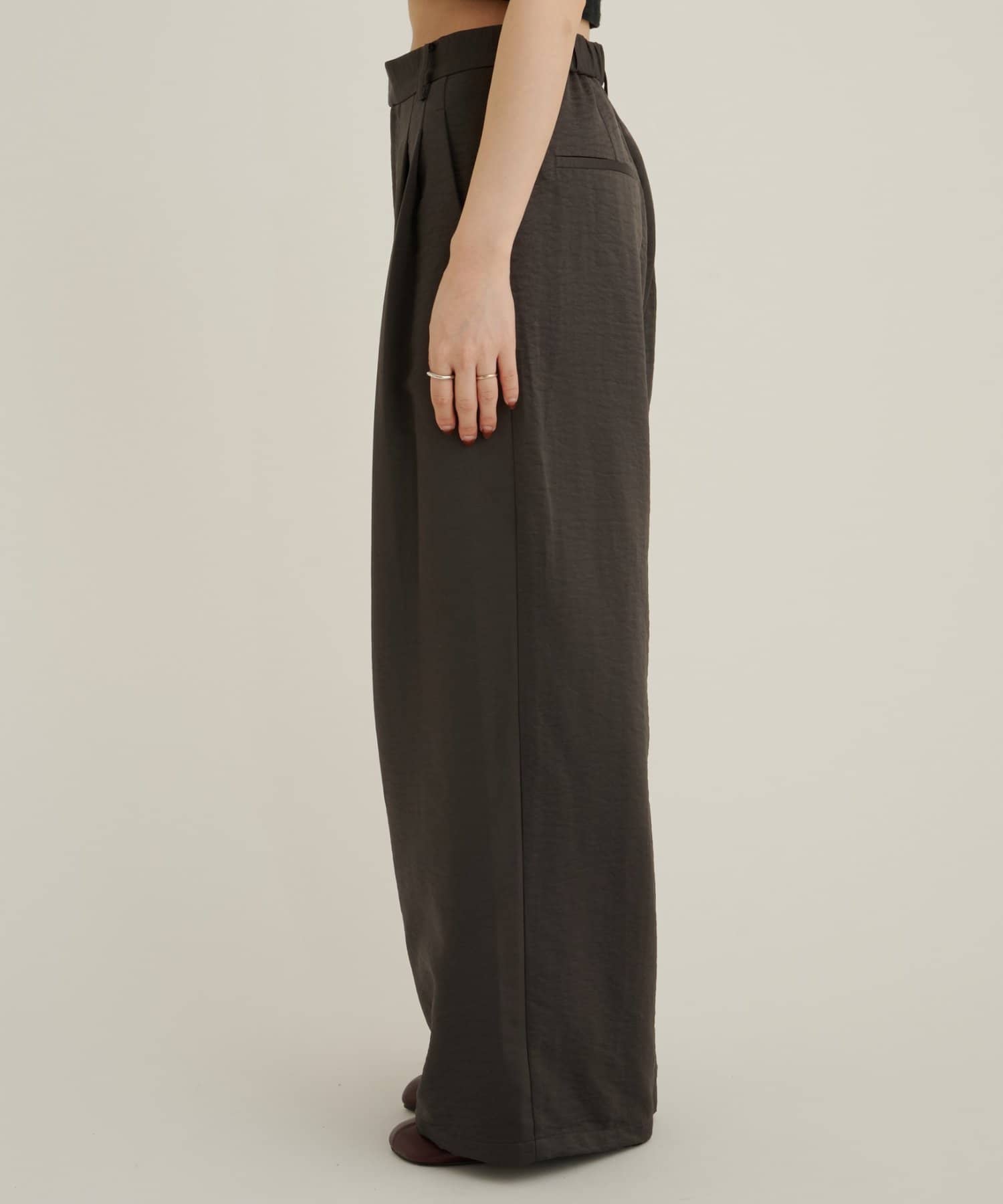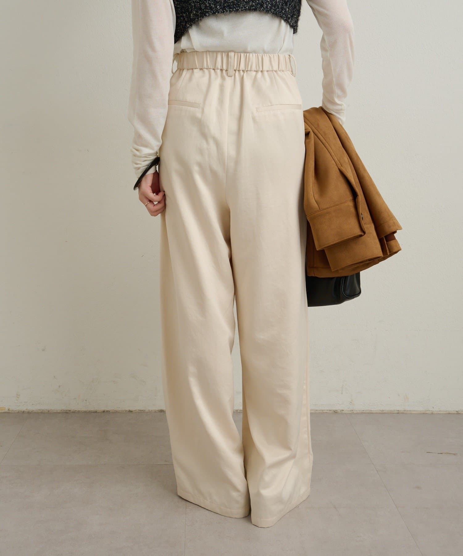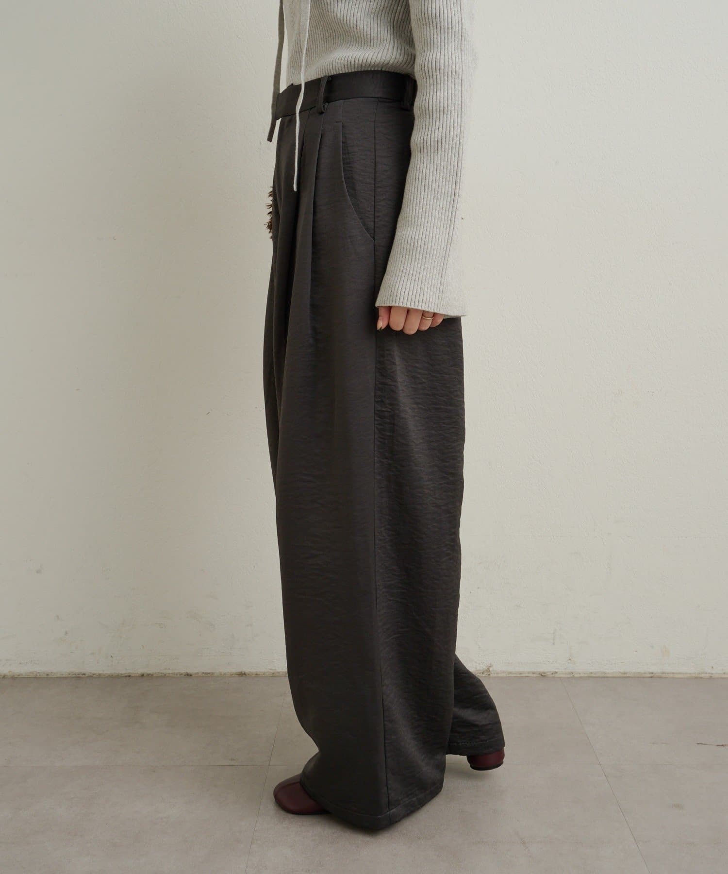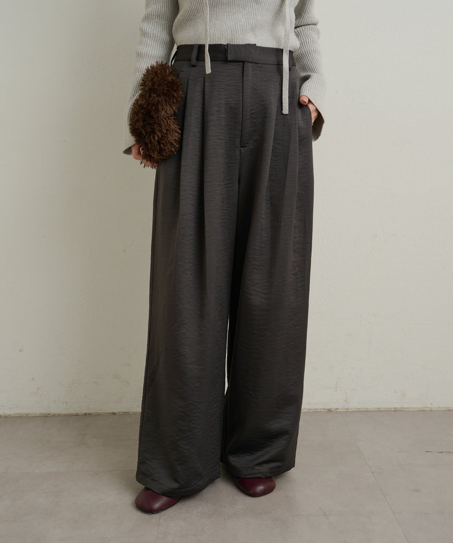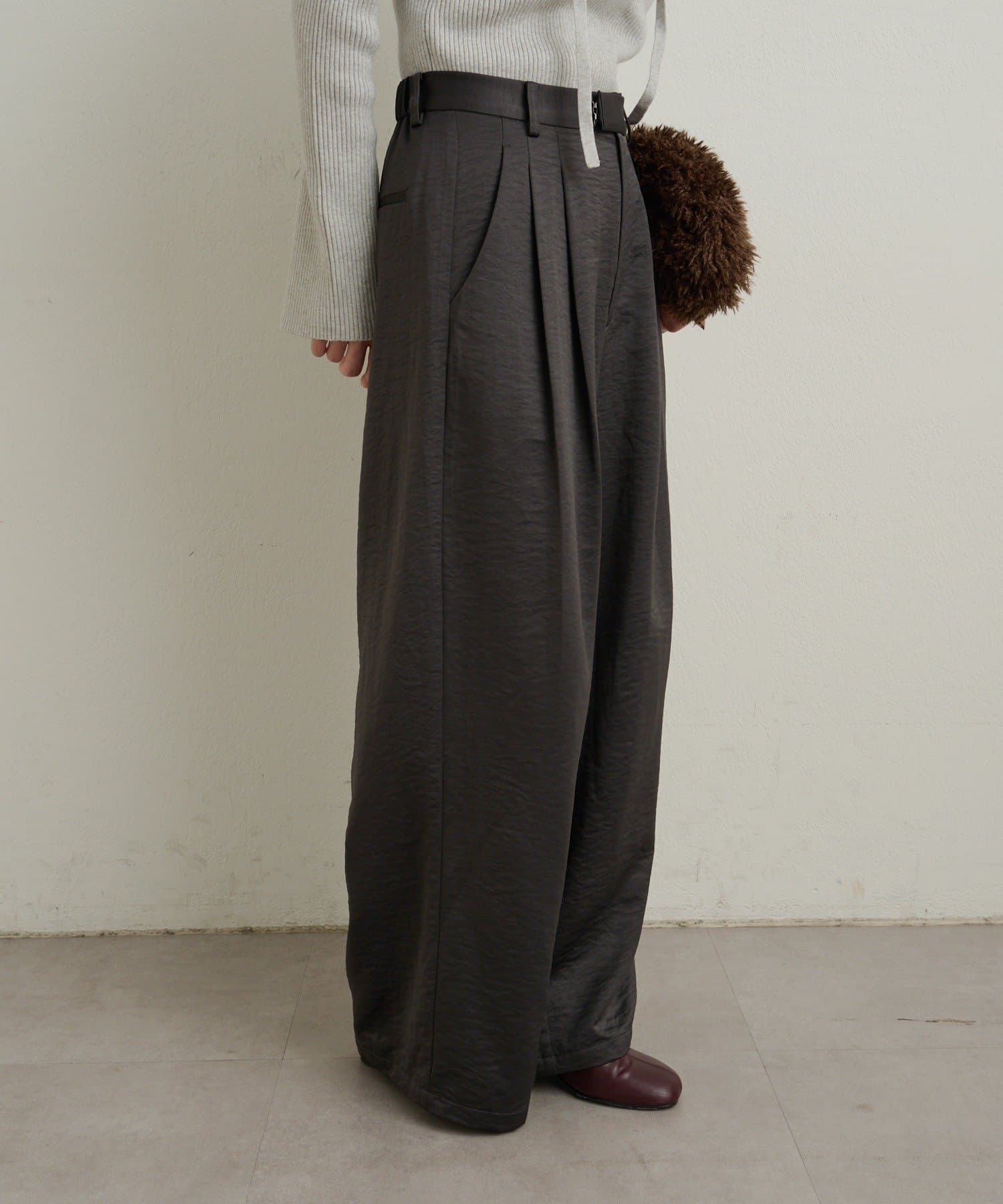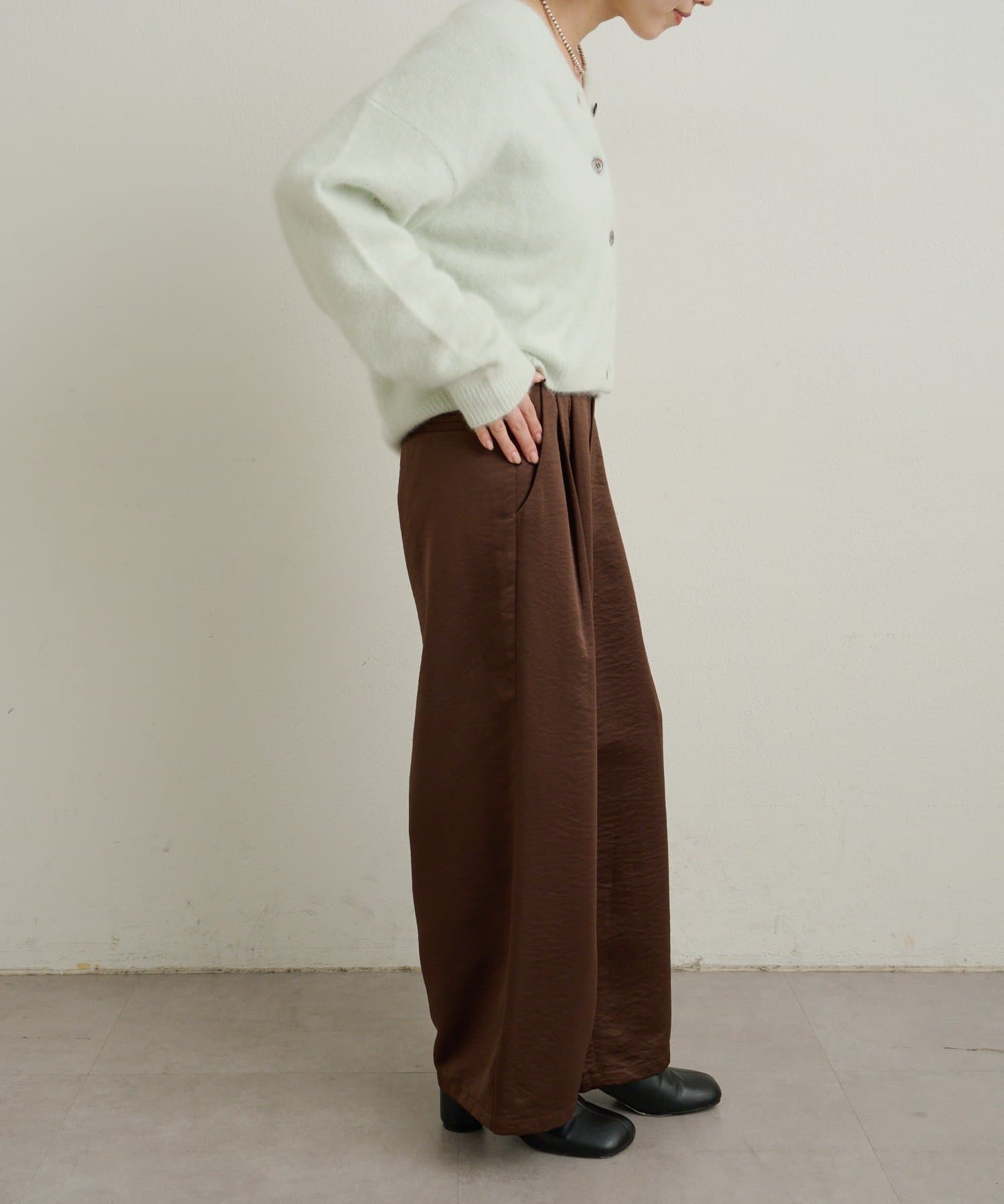 ・上品な光沢感がいつものコーディネートをワンランクアップさせてくれるサテンパンツ。