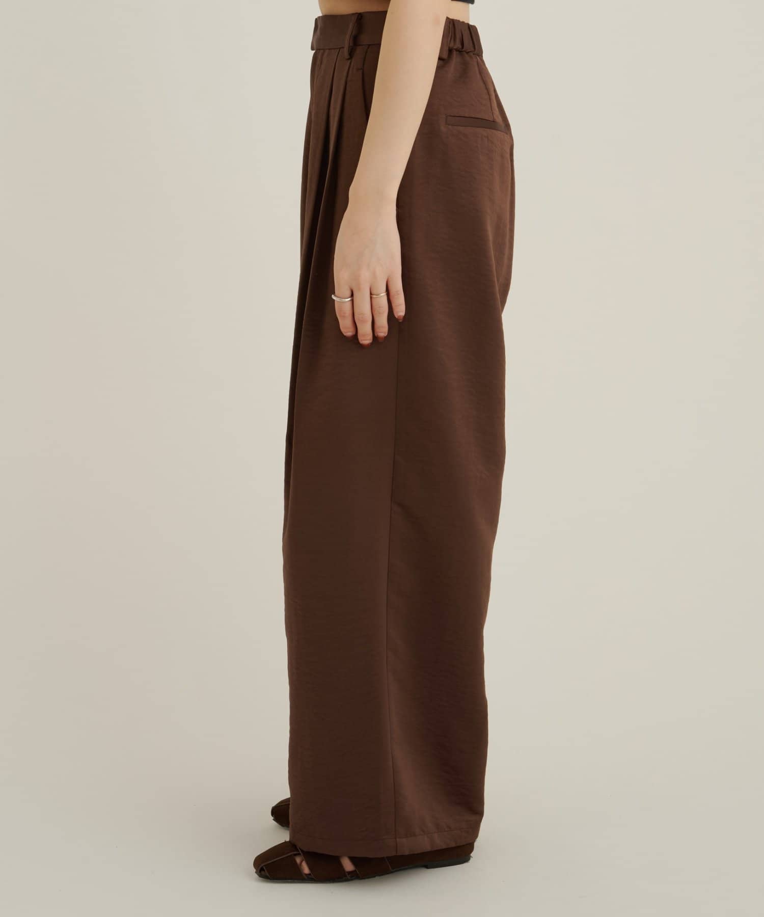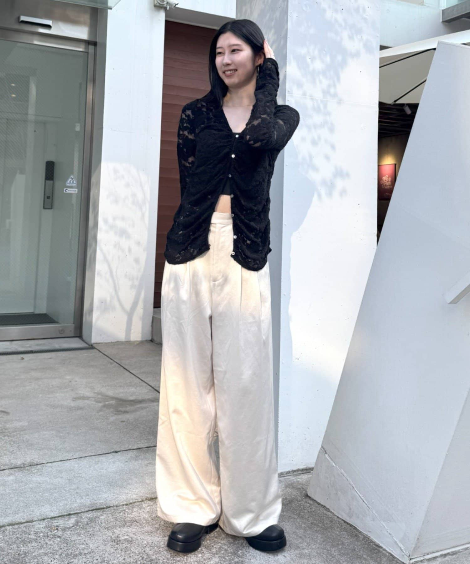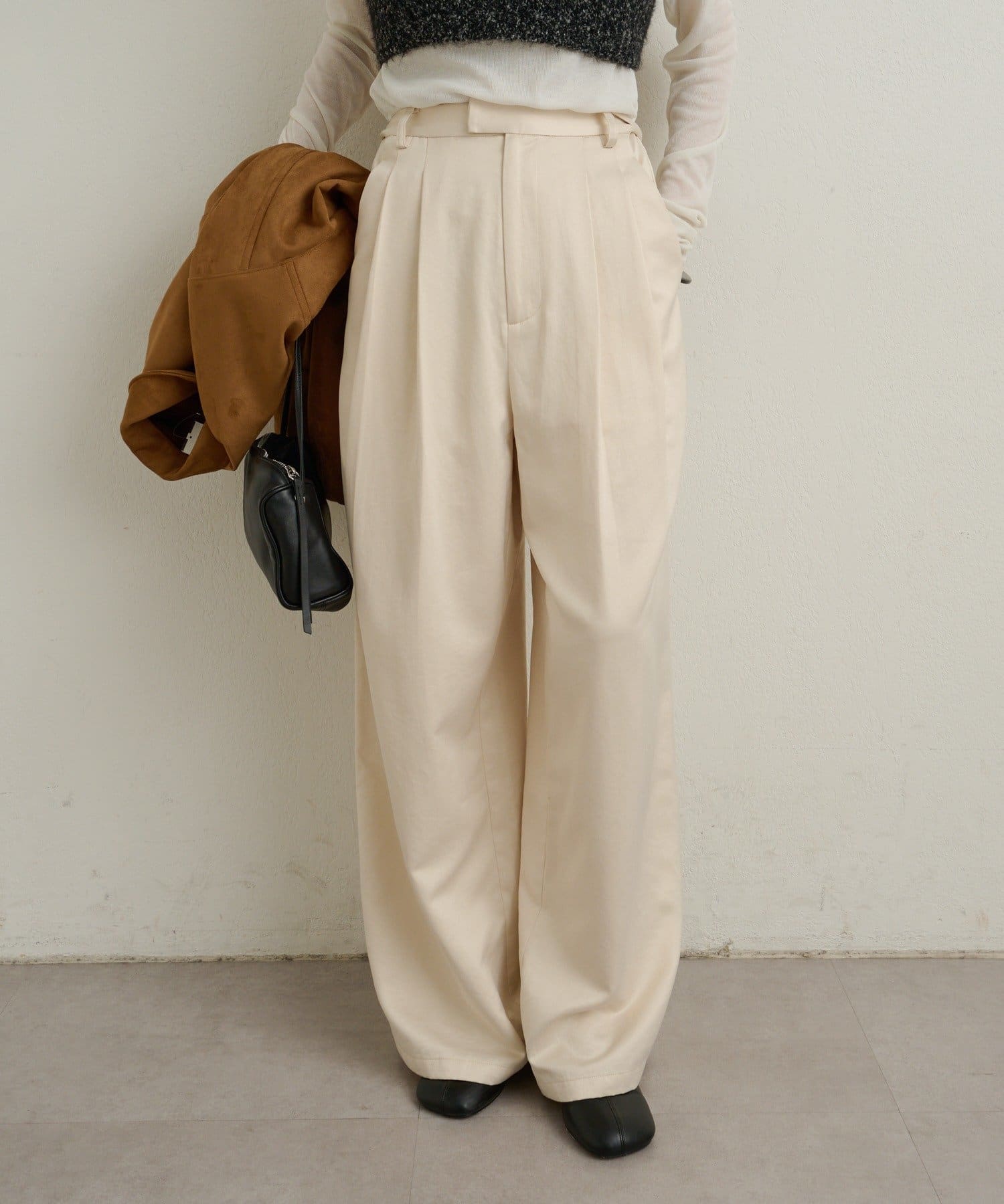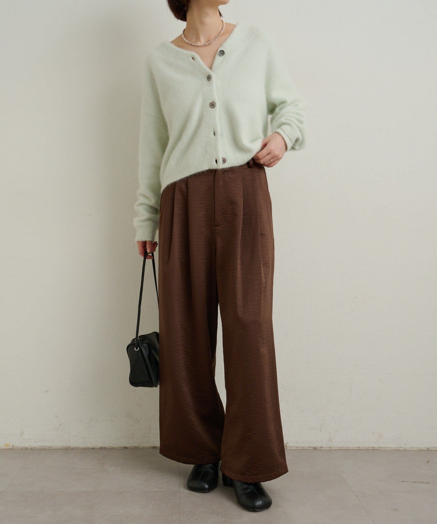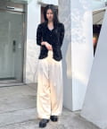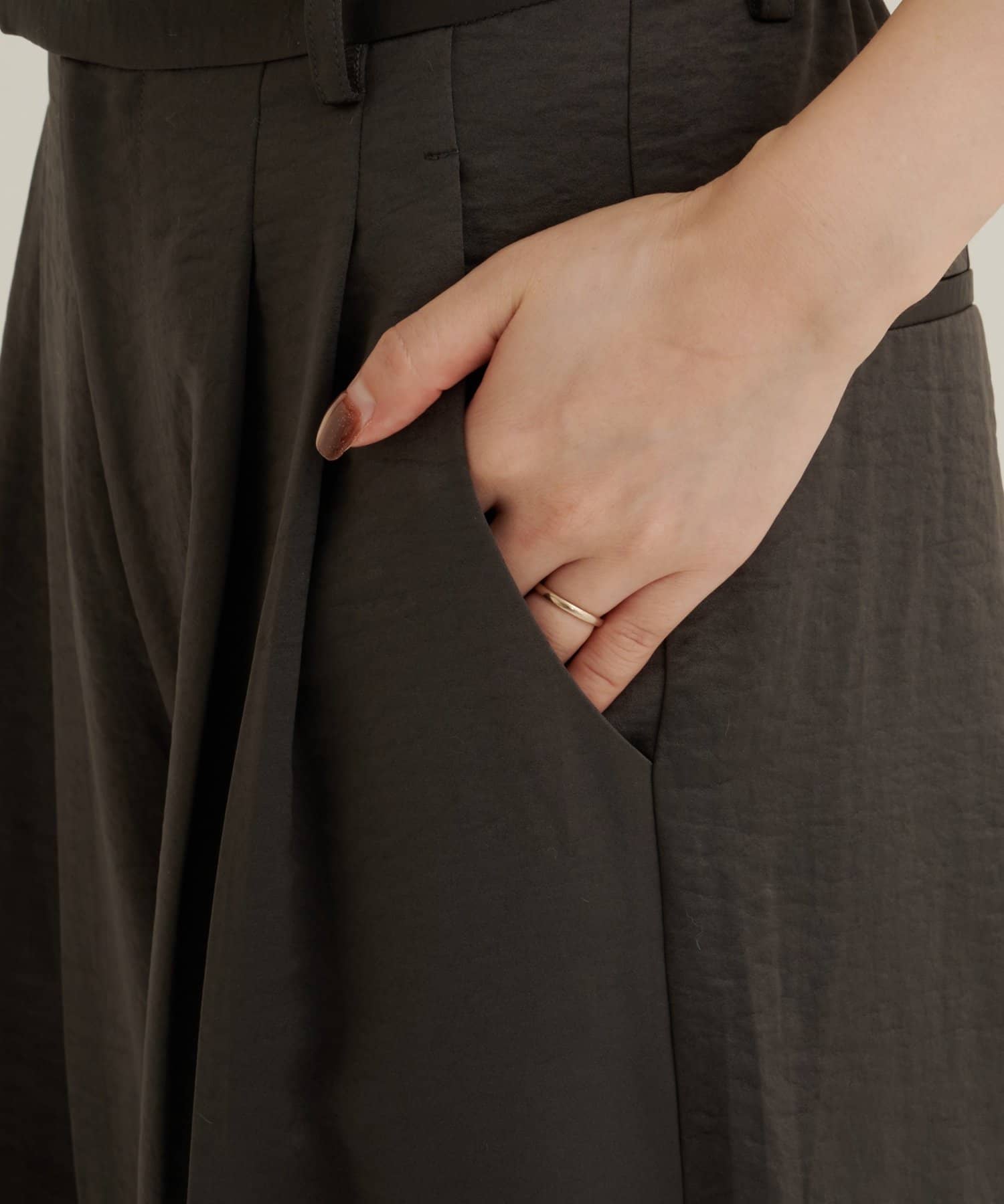 ・上品な光沢感がいつものコーディネートをワンランクアップさせてくれるサテンパンツ。