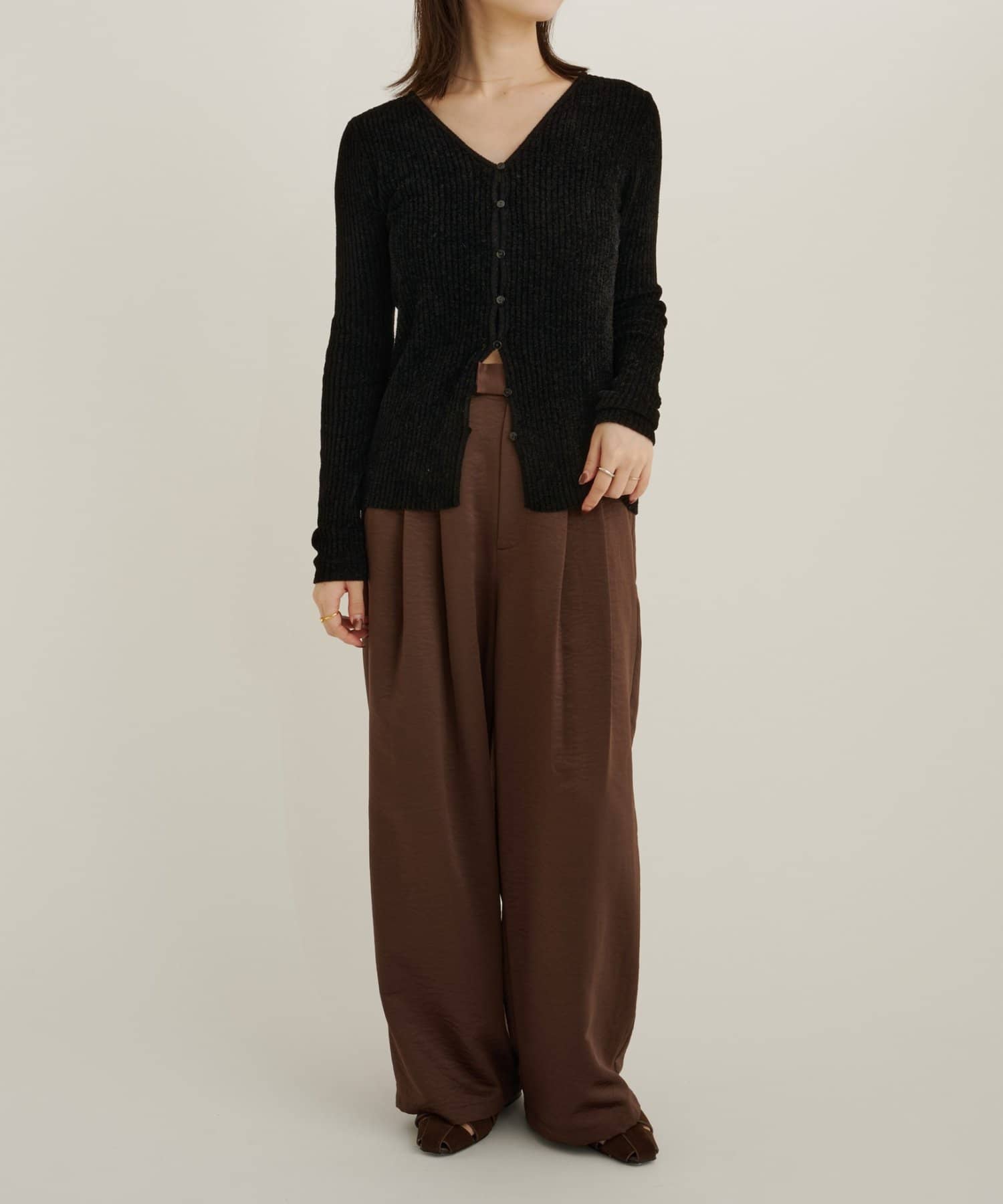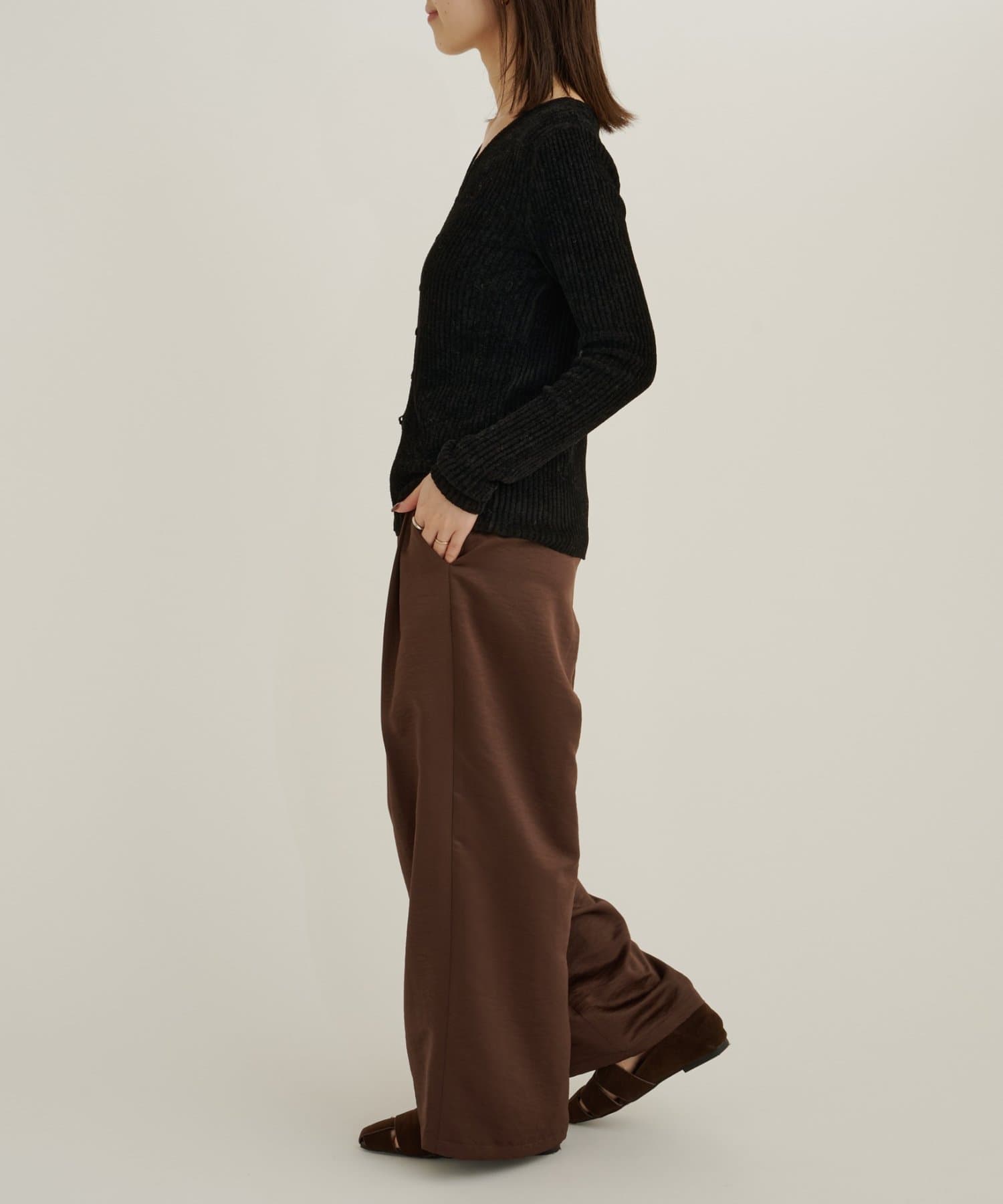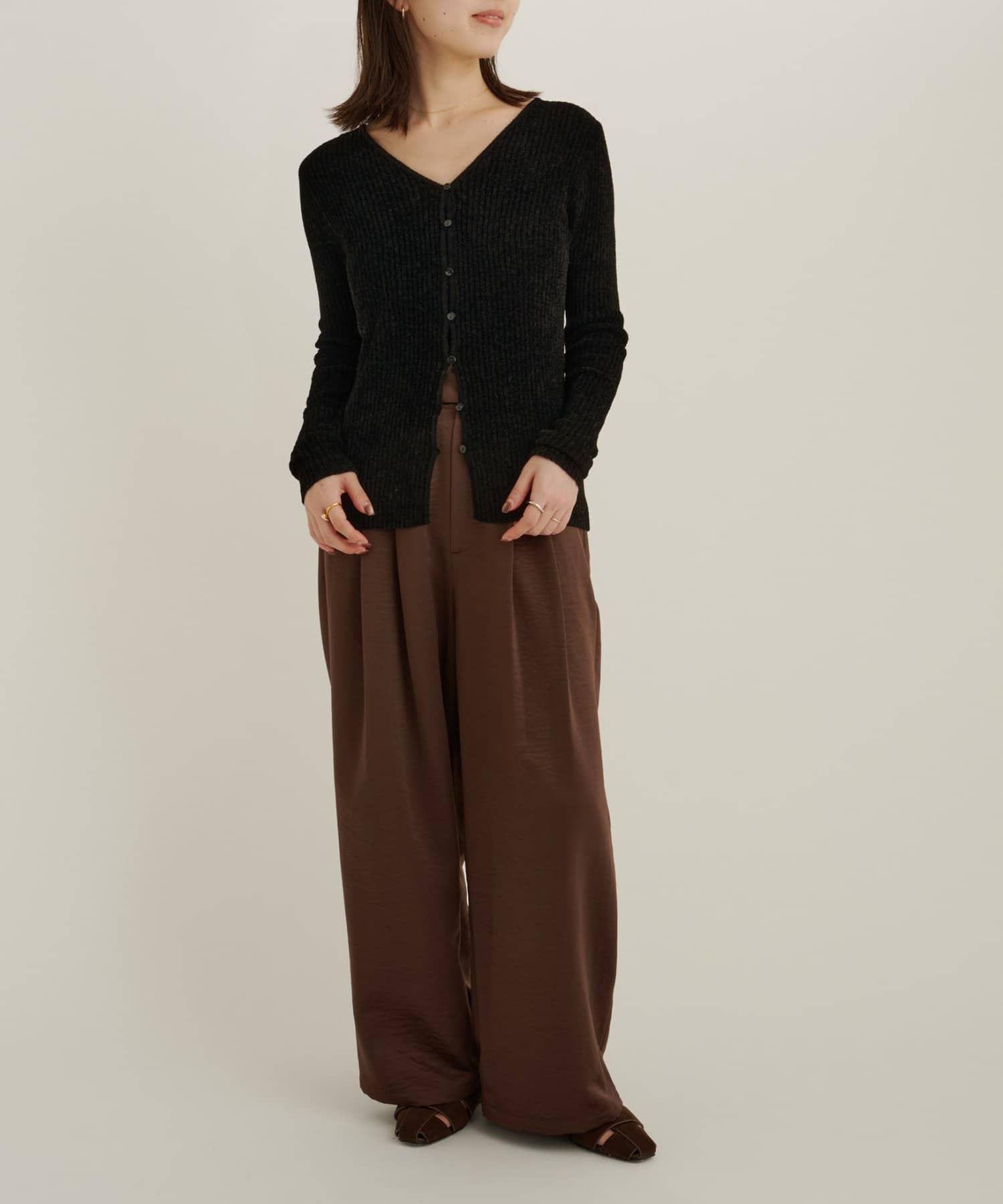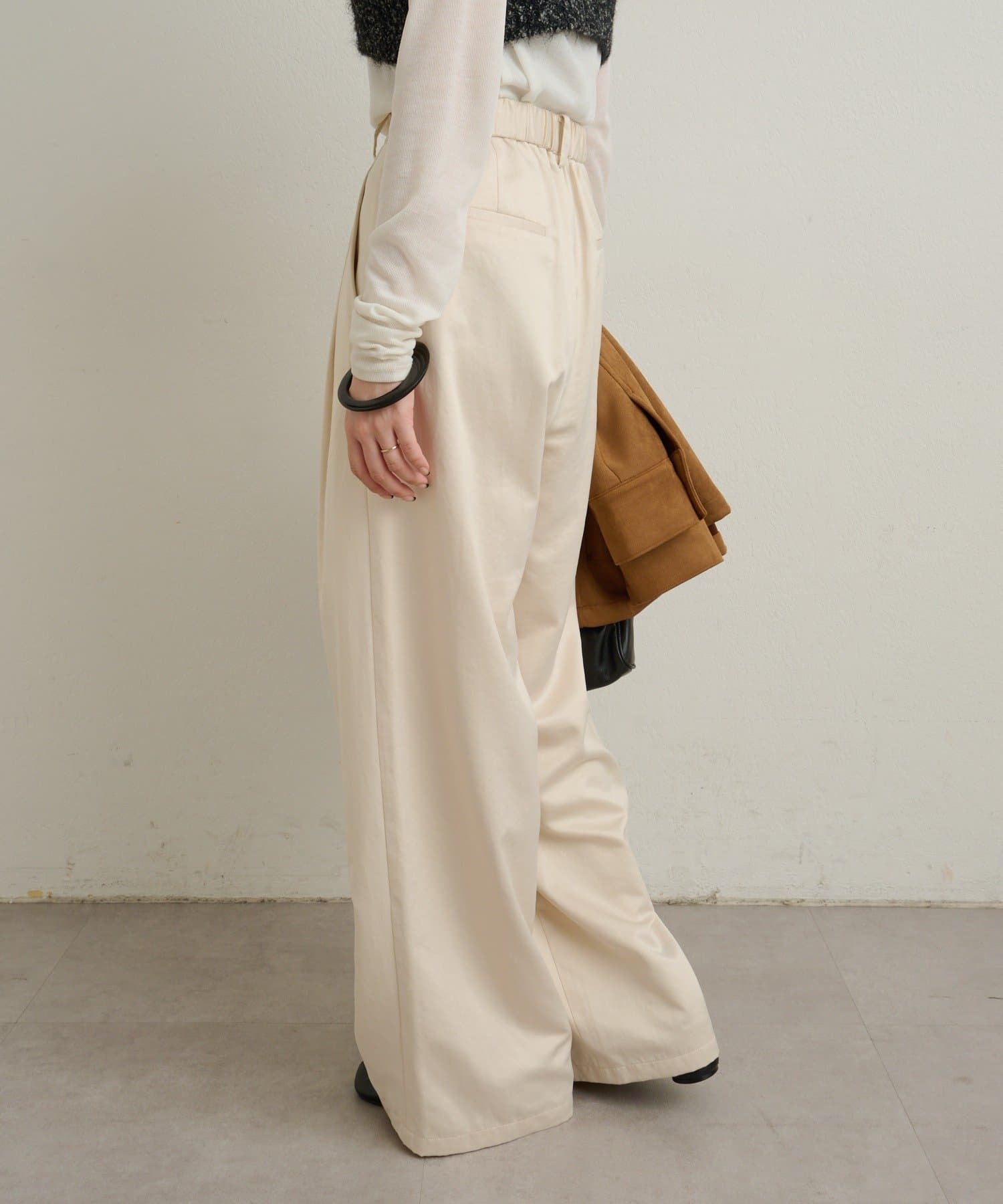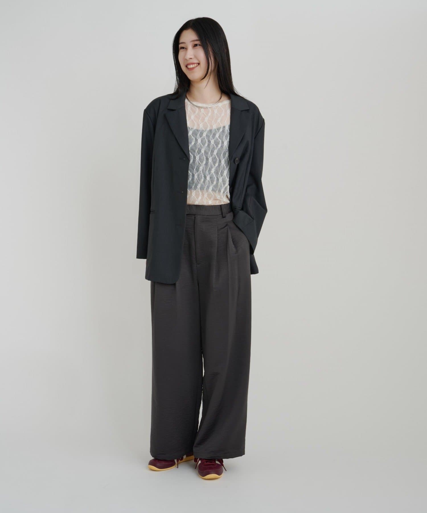 ・上品な光沢感がいつものコーディネートをワンランクアップさせてくれるサテンパンツ。