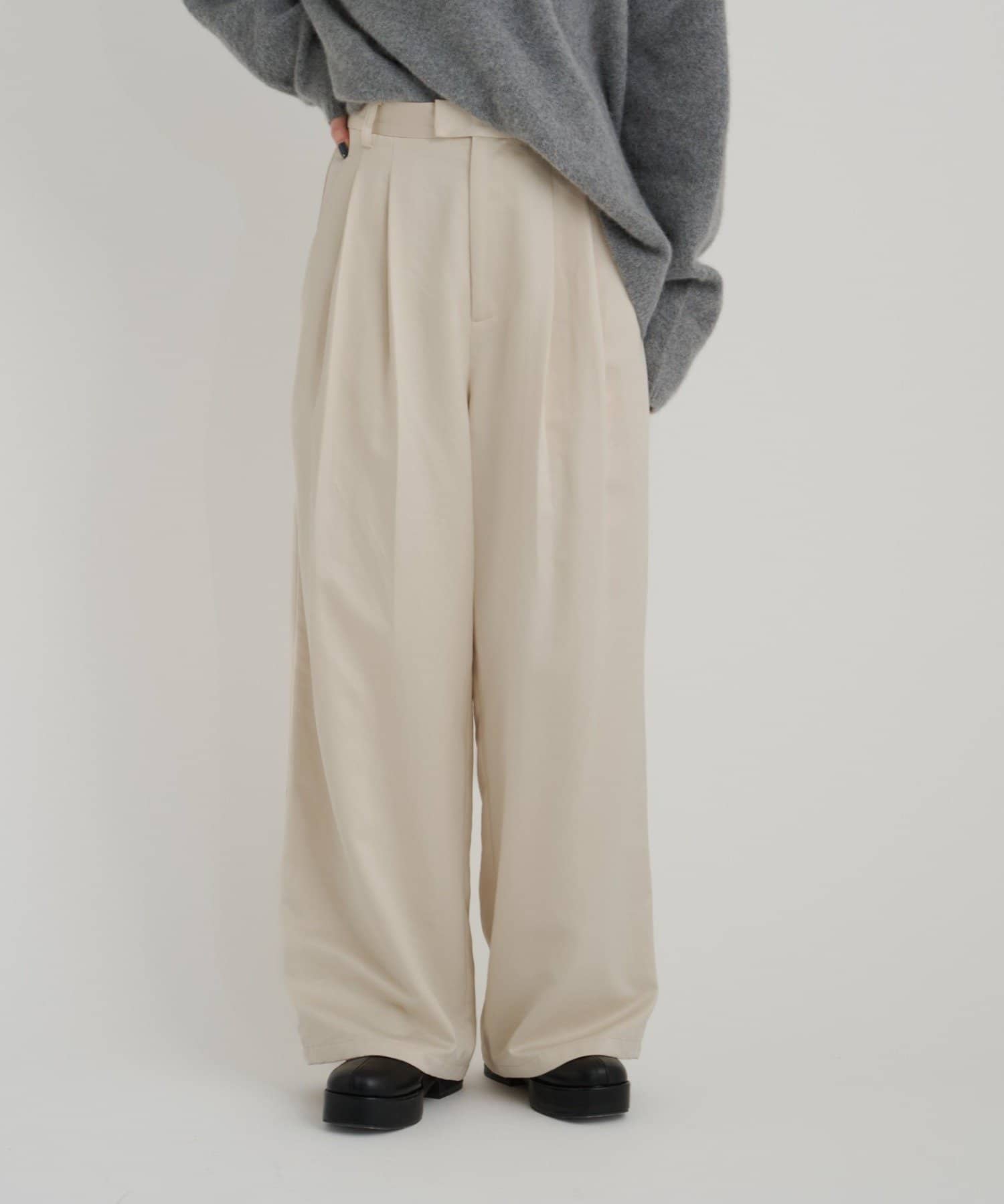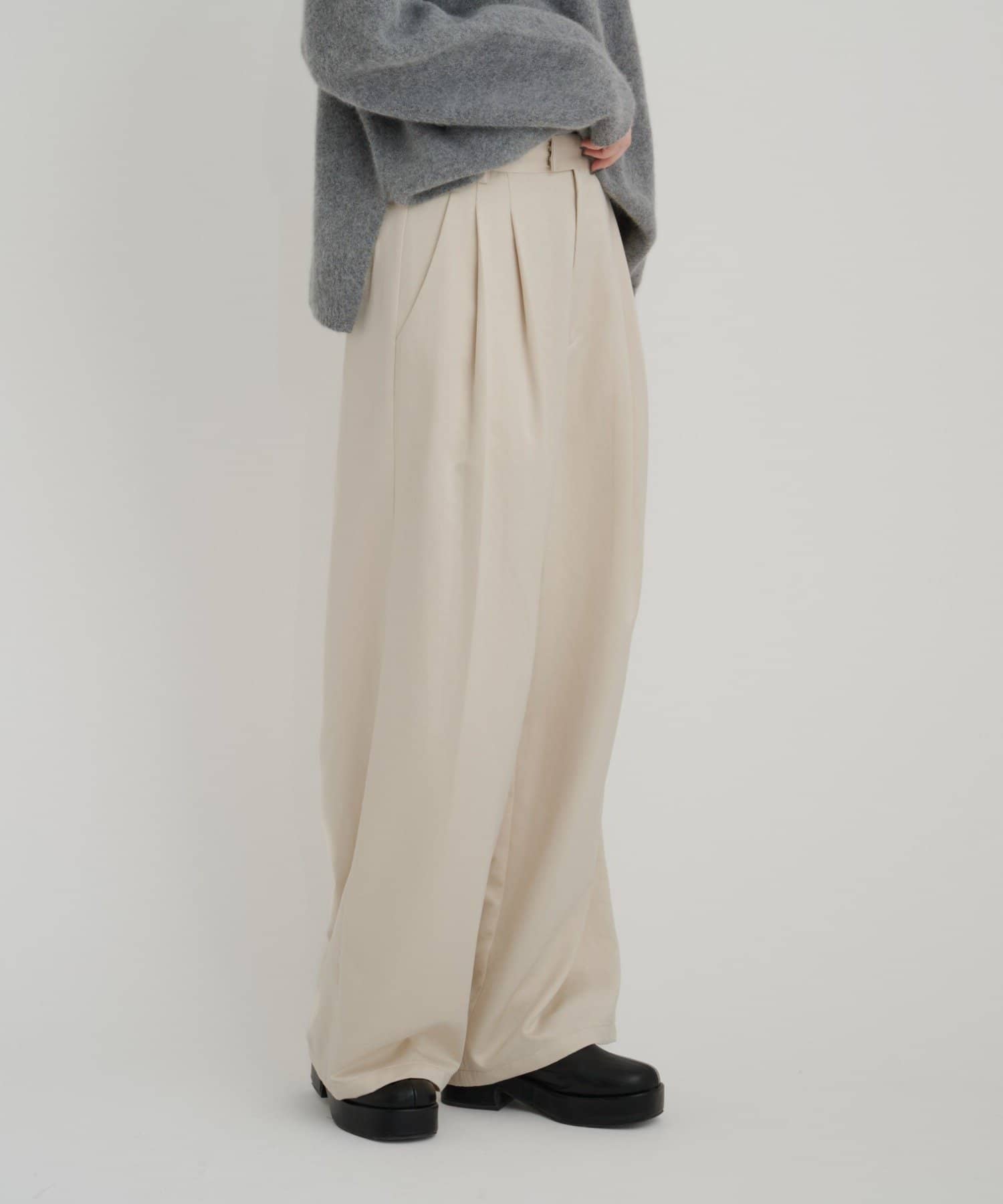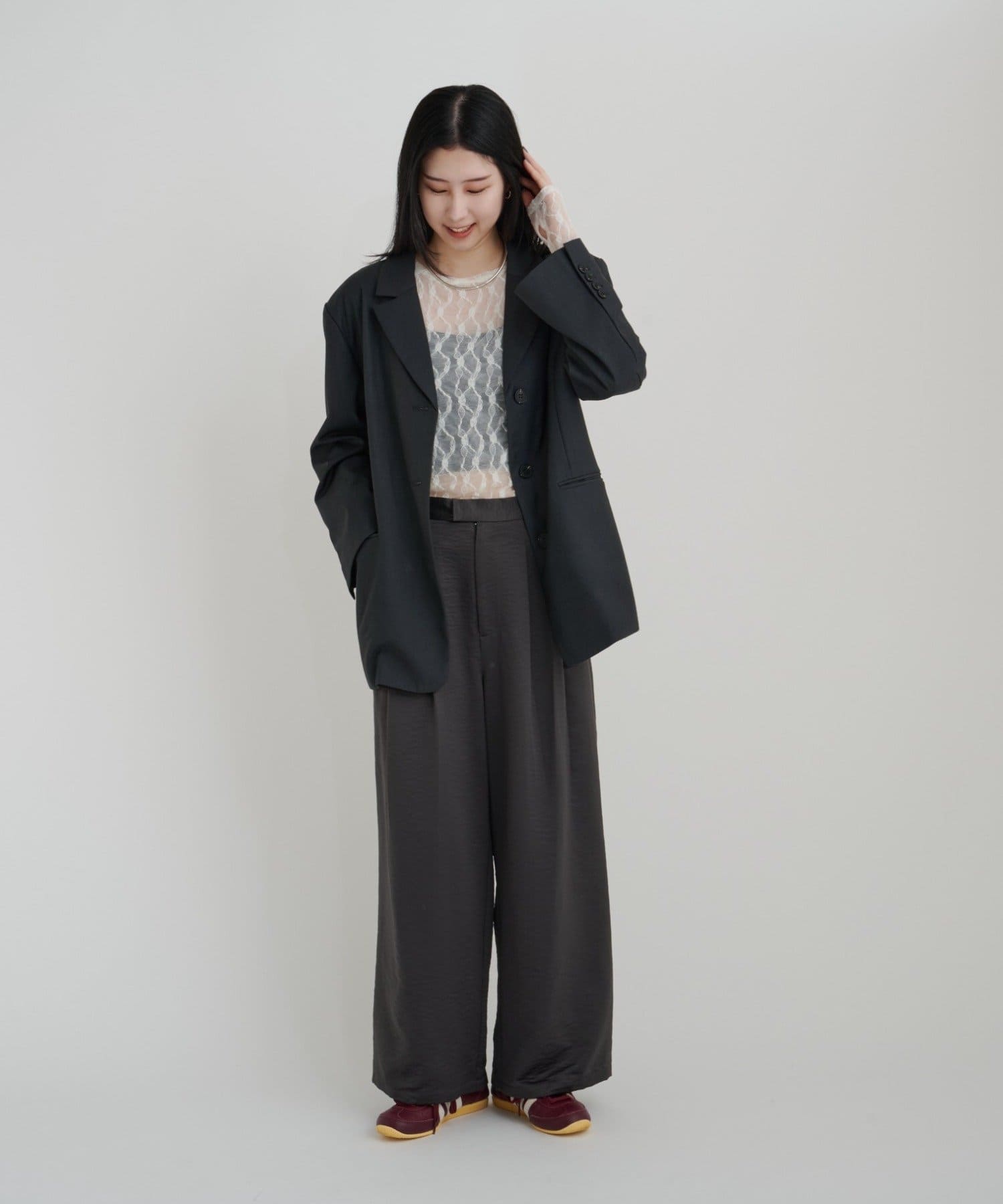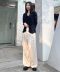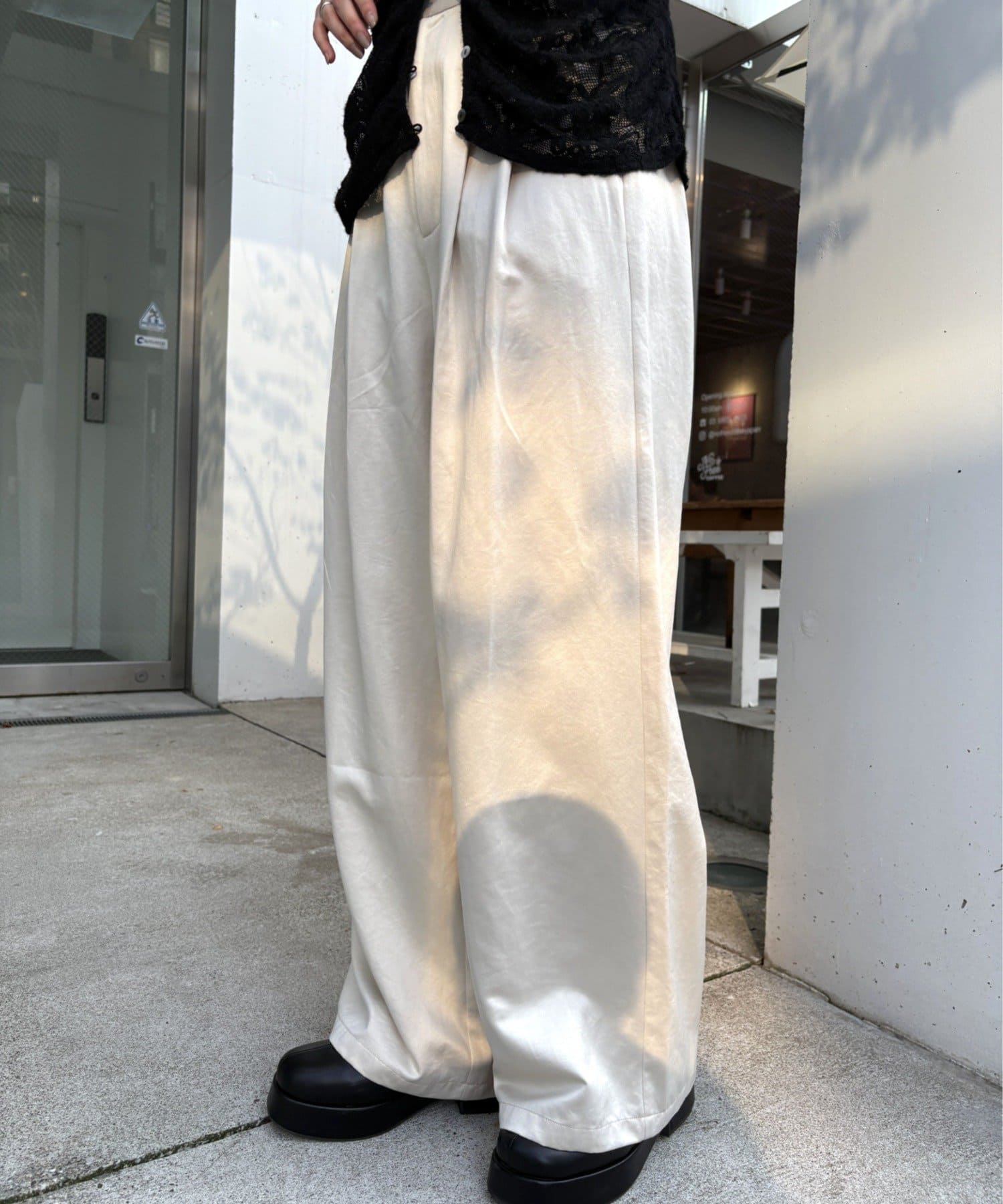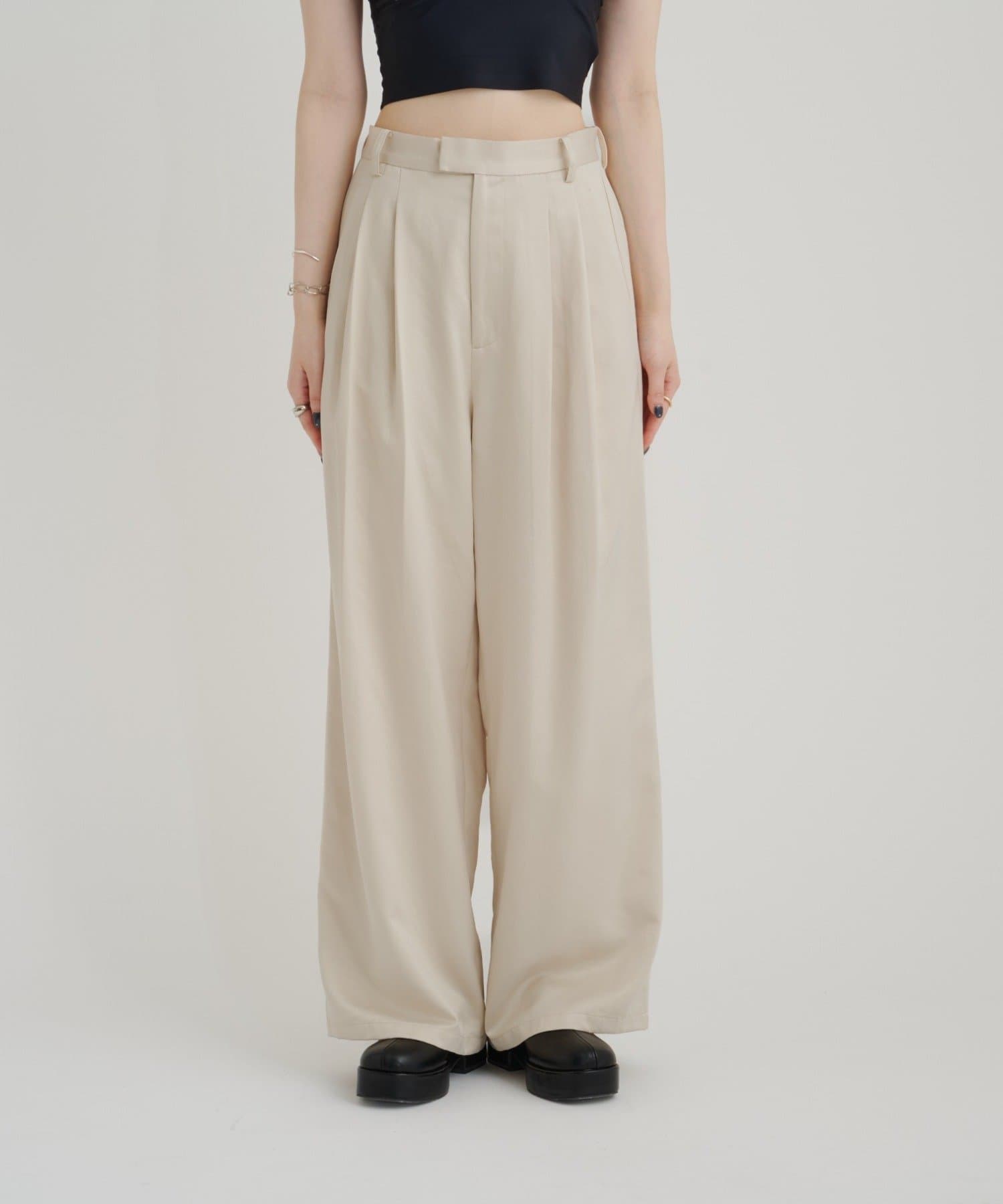 ・上品な光沢感がいつものコーディネートをワンランクアップさせてくれるサテンパンツ。