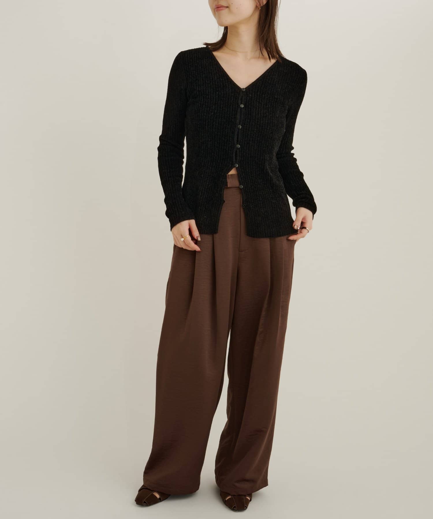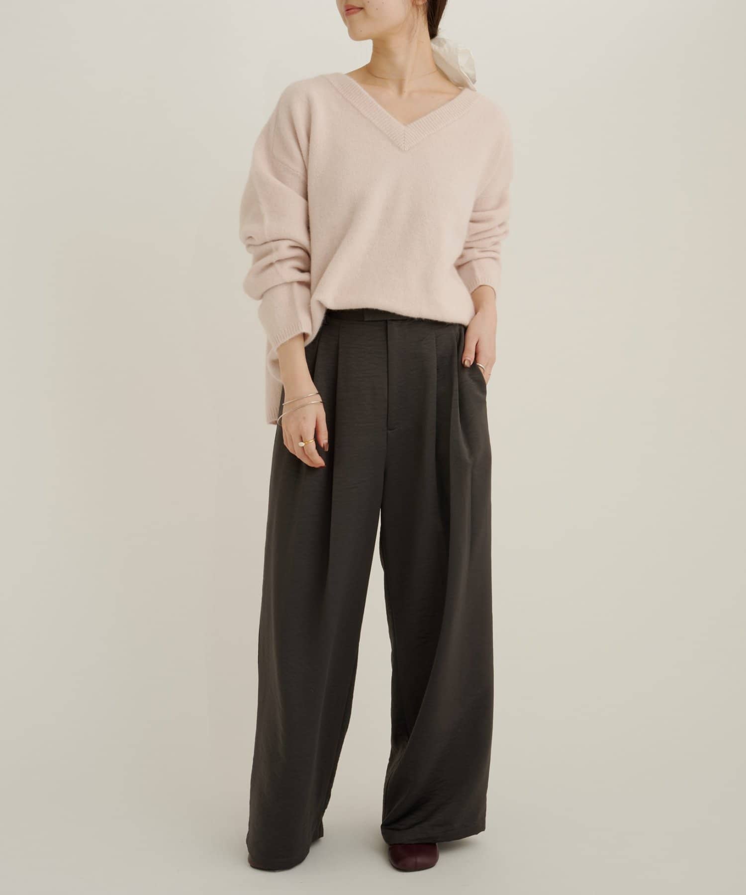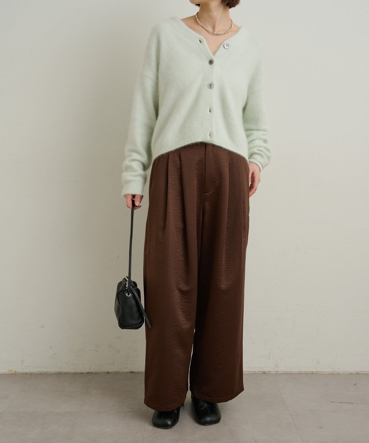 素材は光沢感のあるツヤ素材を使用しており、秋冬シーズンのニットとの相性も抜群です◎