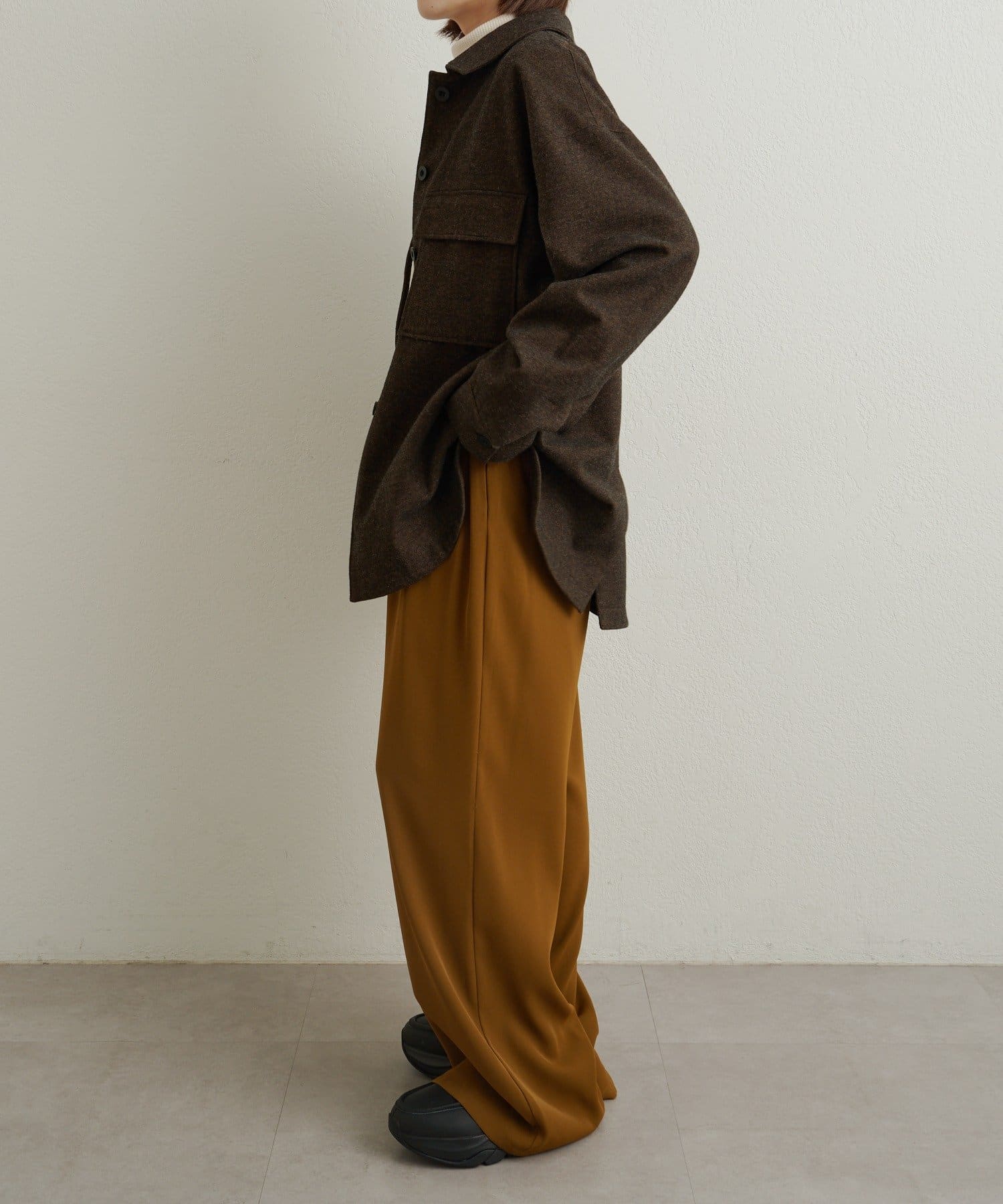 ・カジュアルにも綺麗めにも合わせやすく、オンオフで活躍する1枚。