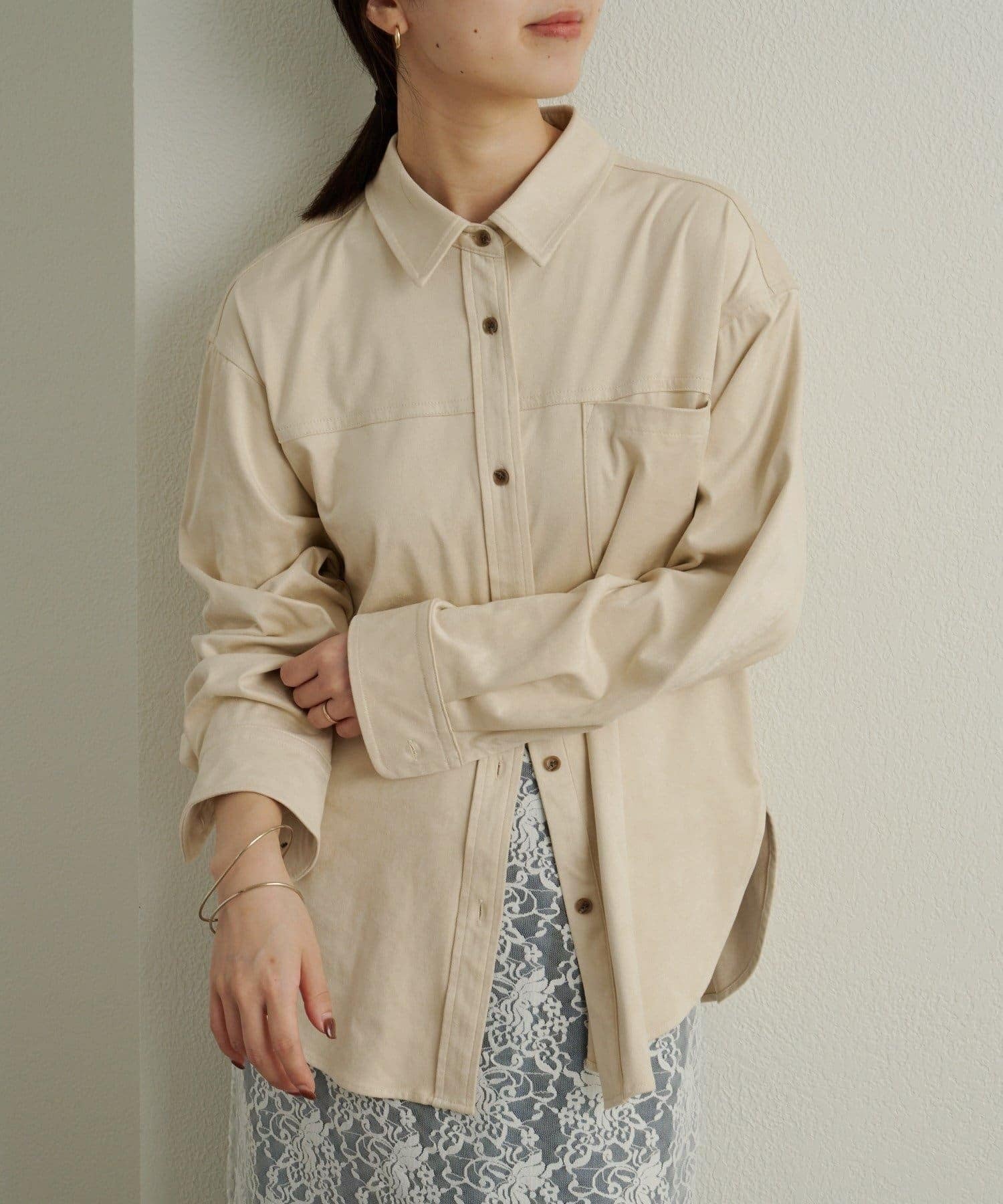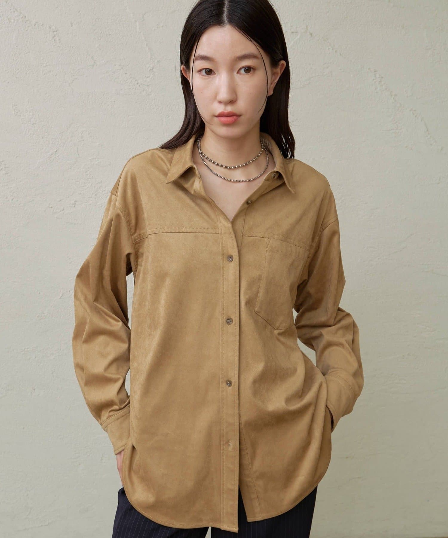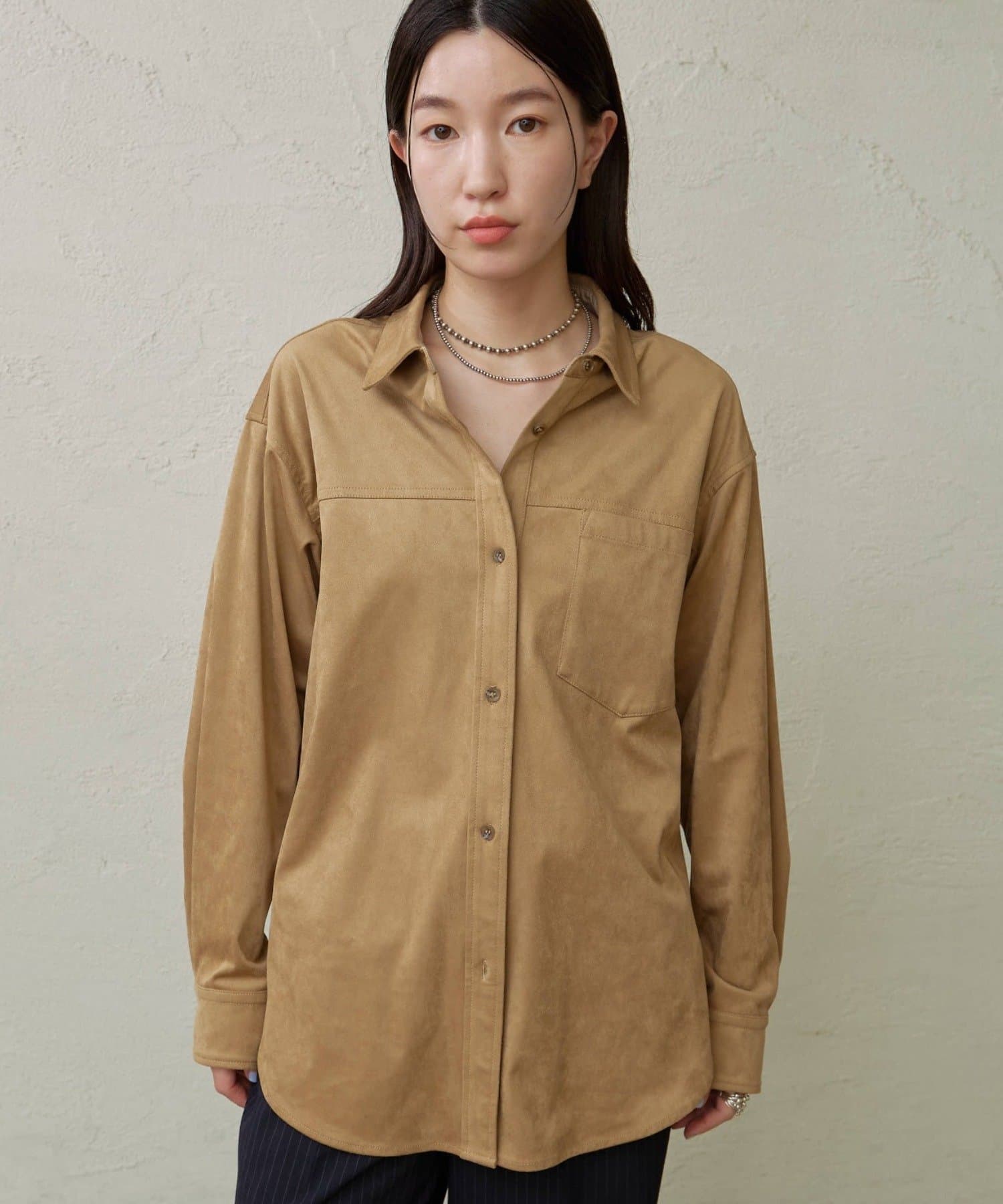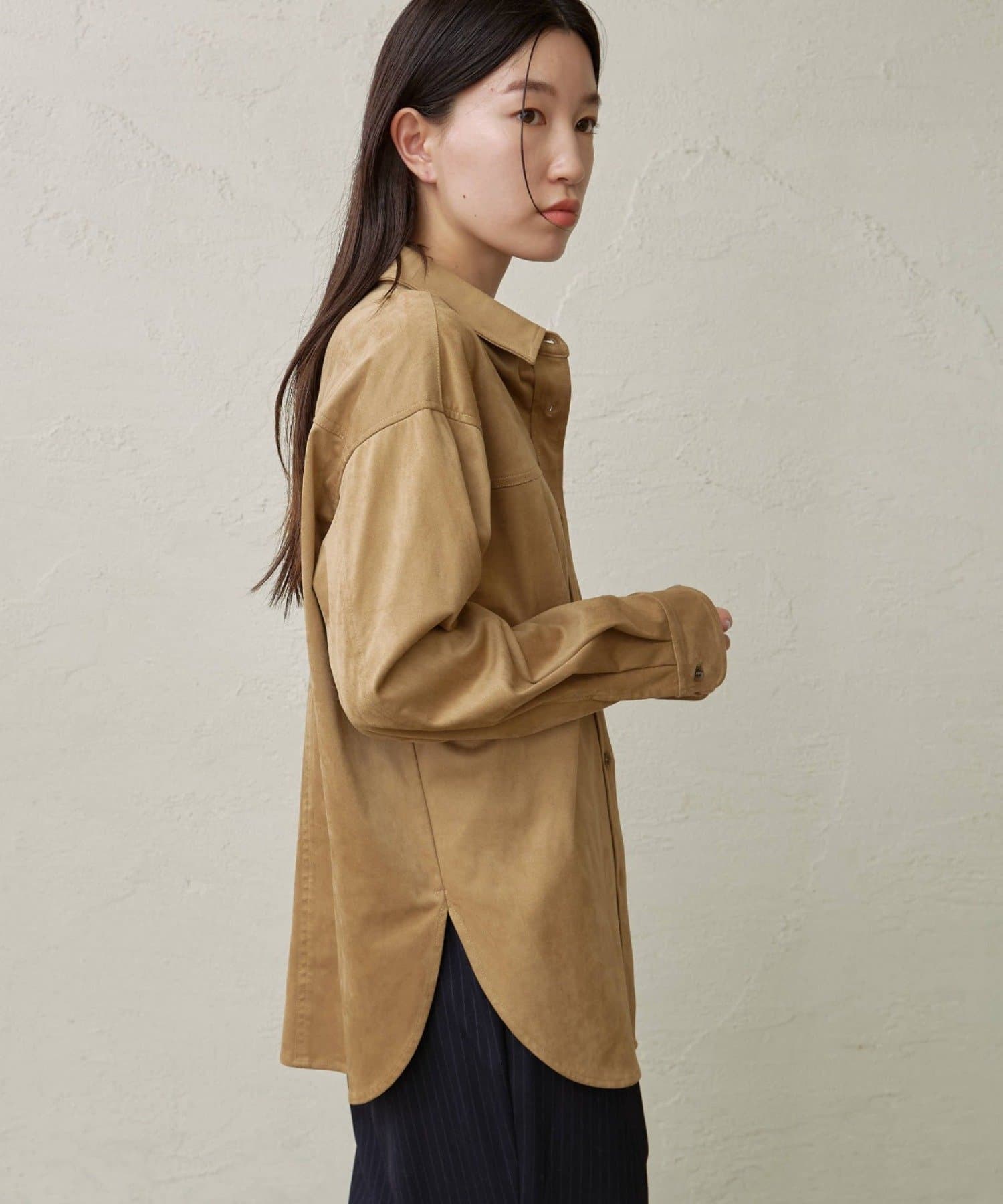 旬なスエード素材が秋らしいフェイクスエードシャツ