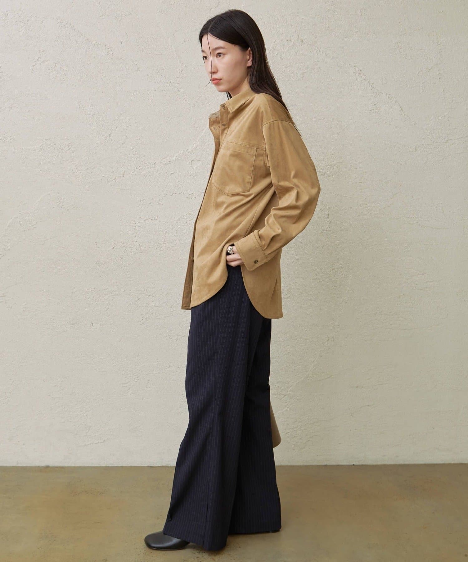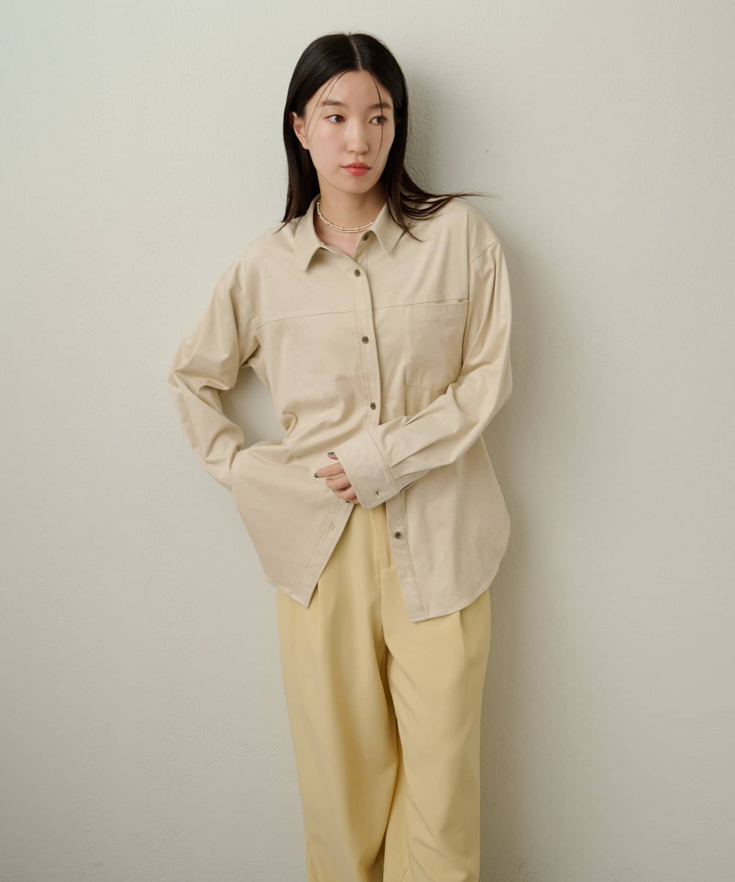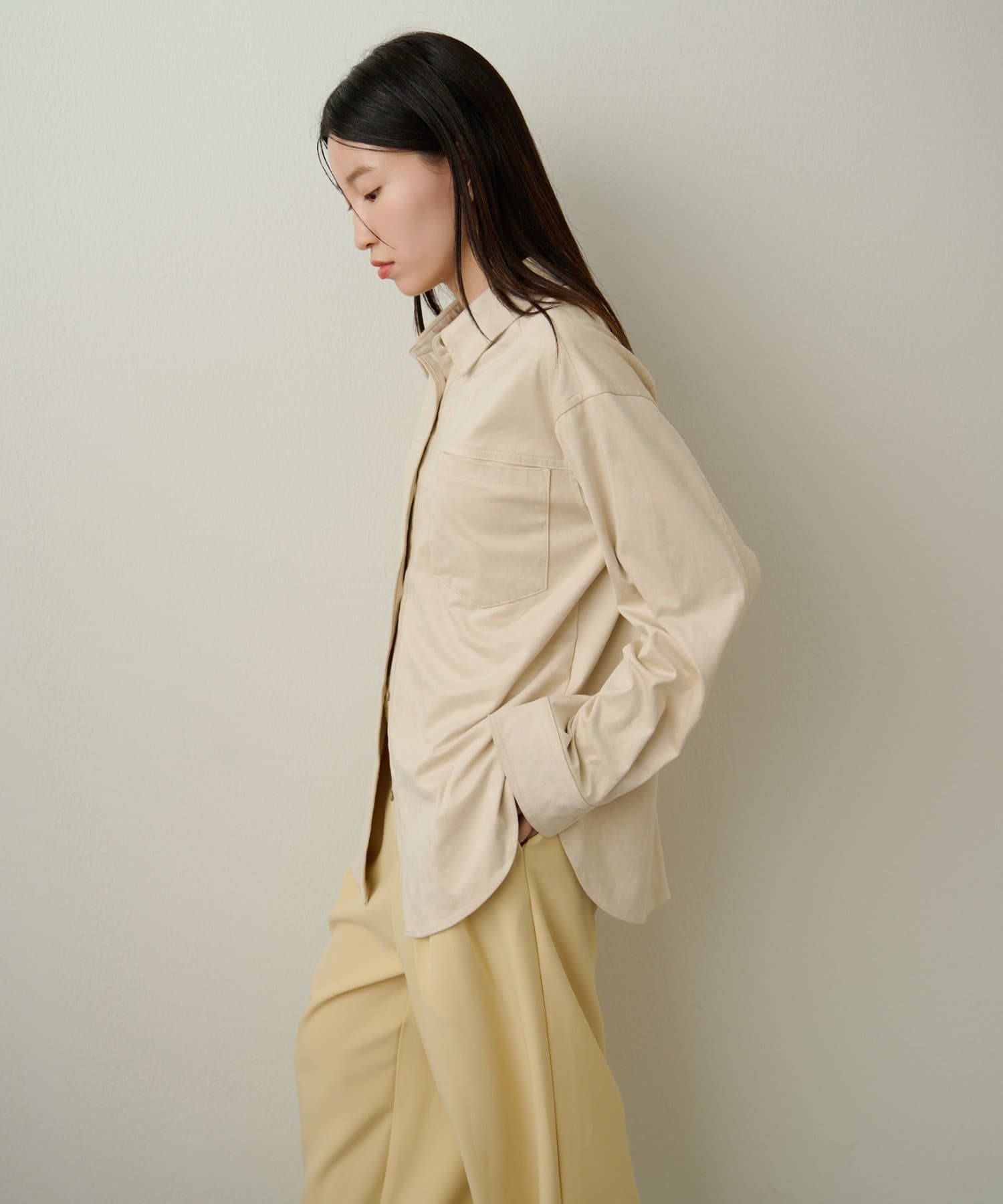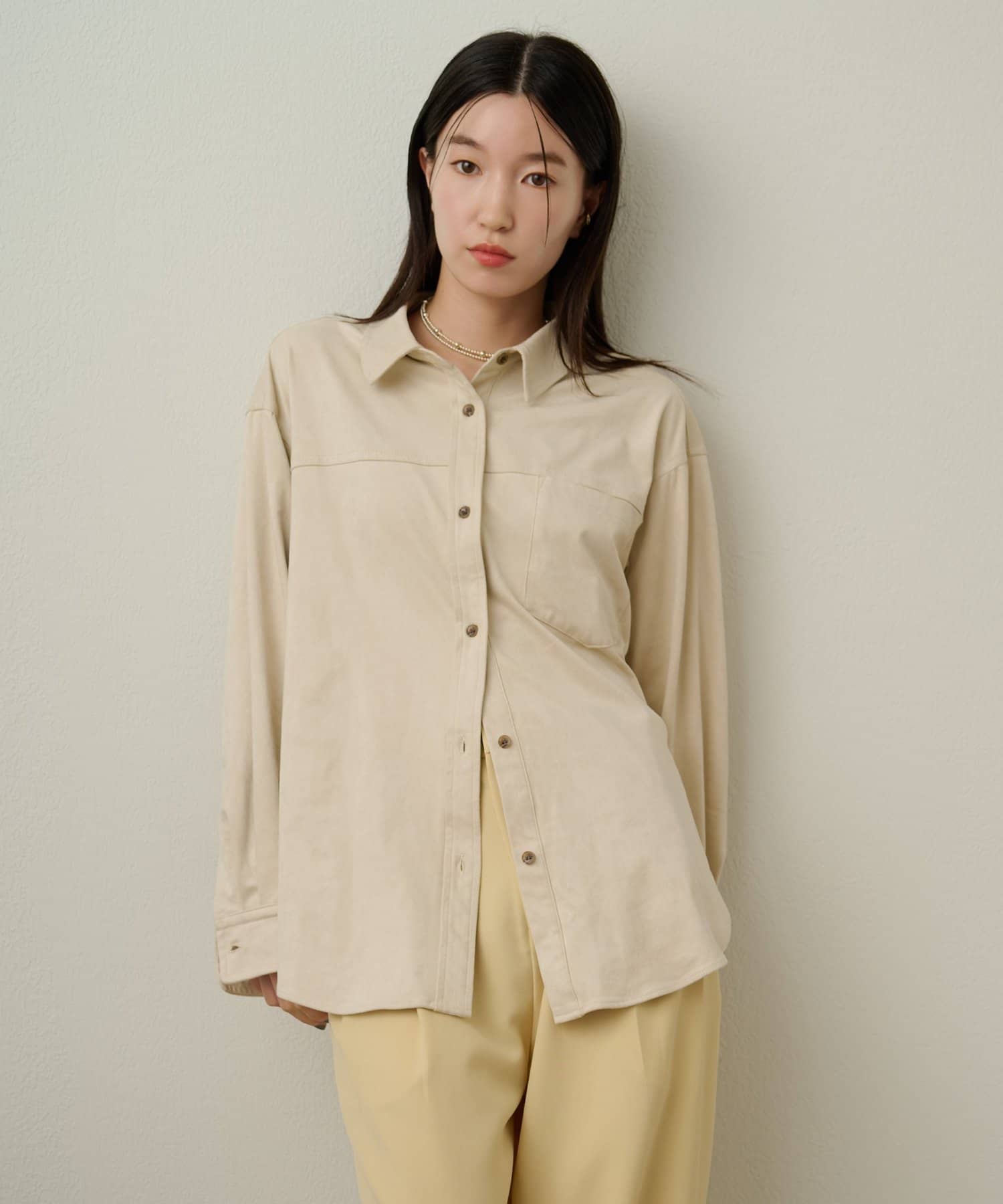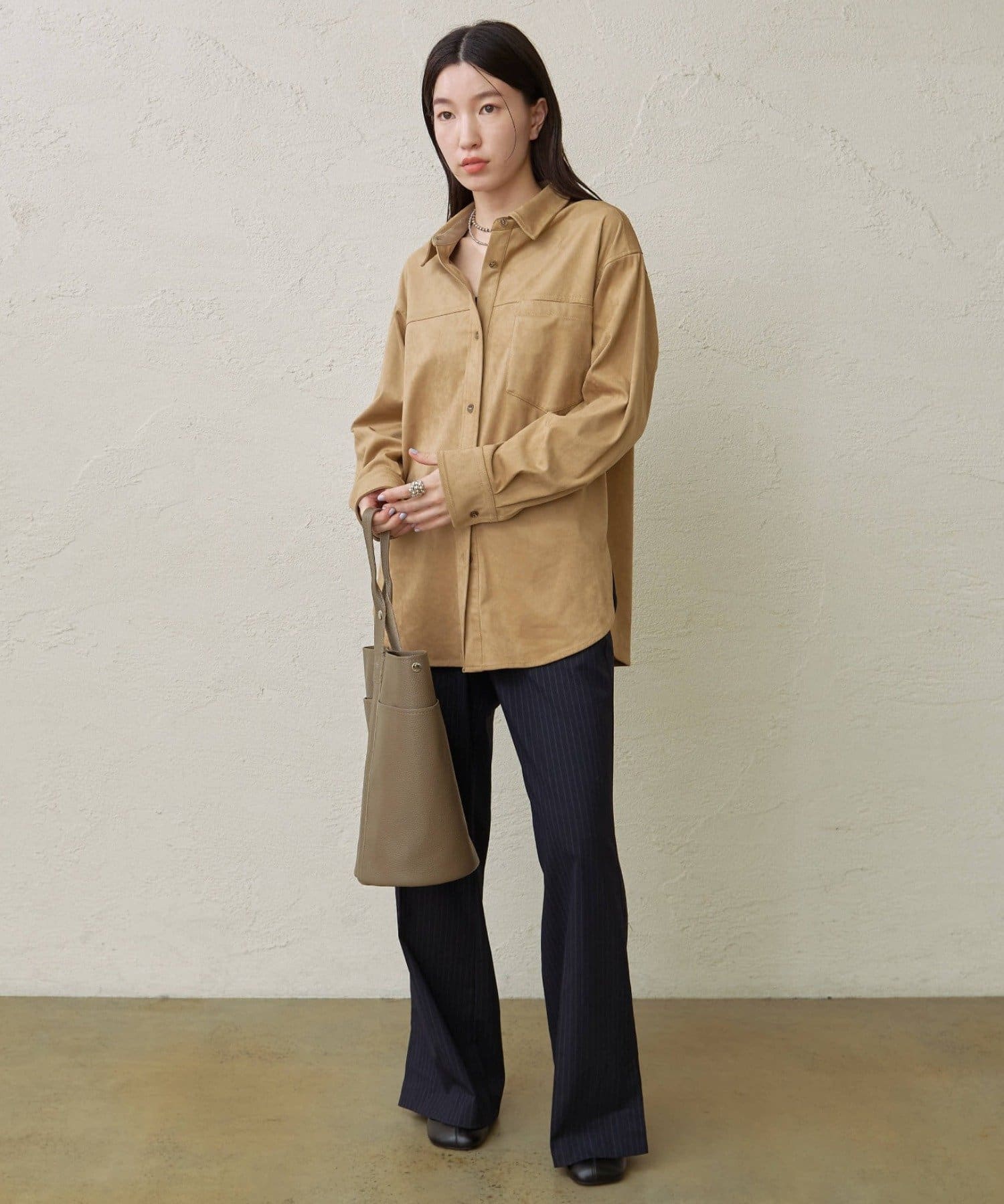 旬なスエード素材が秋らしいフェイクスエードシャツ