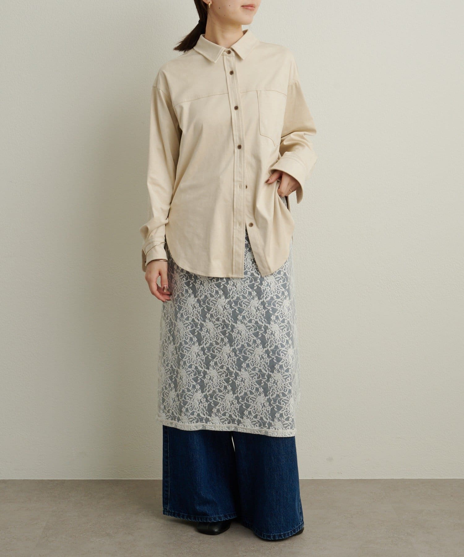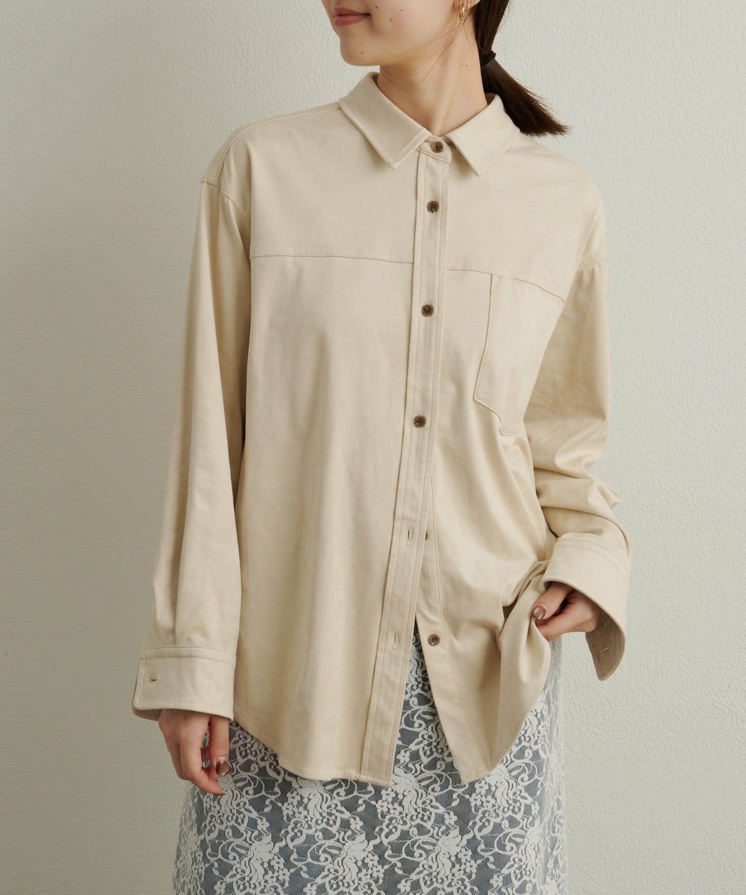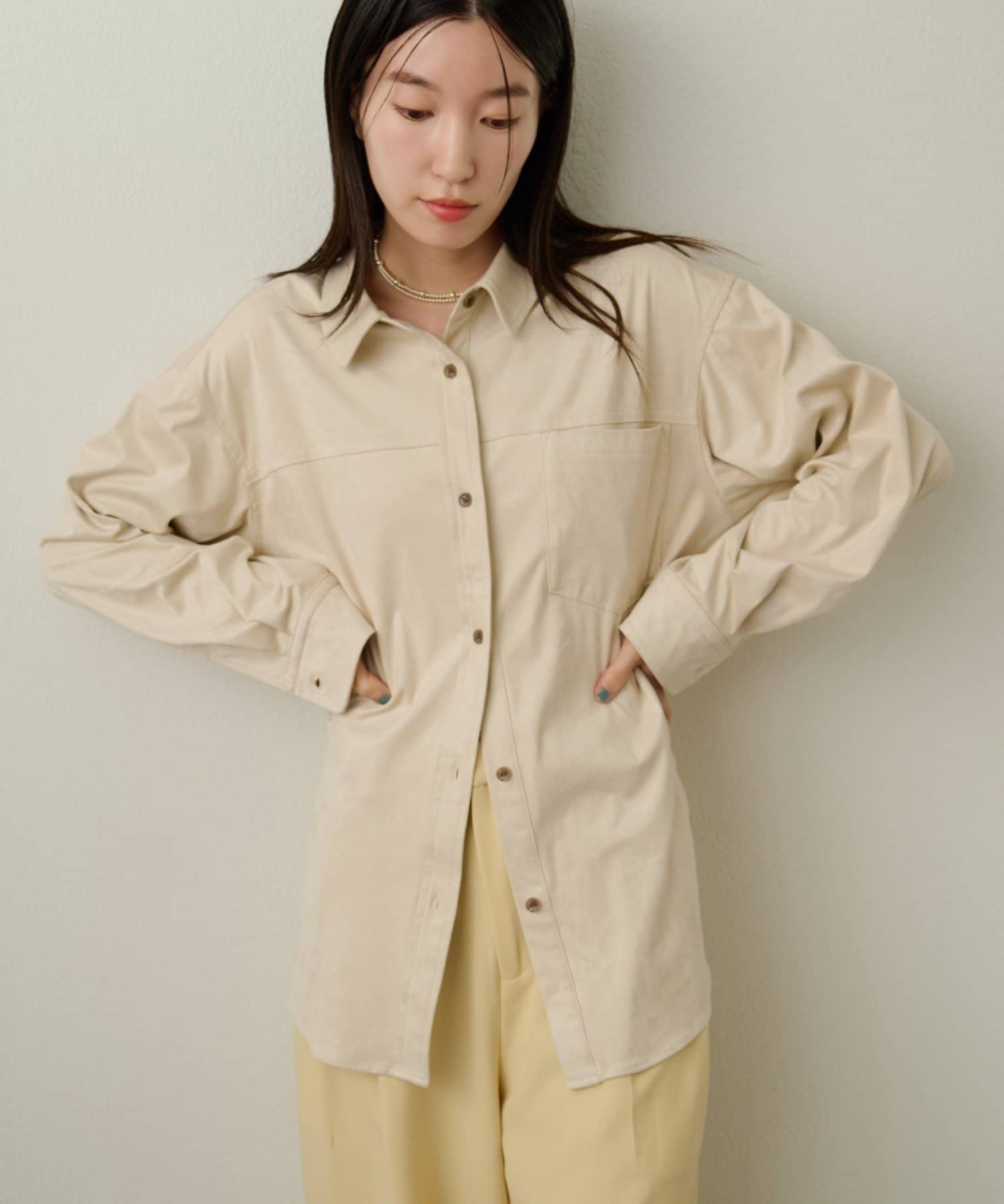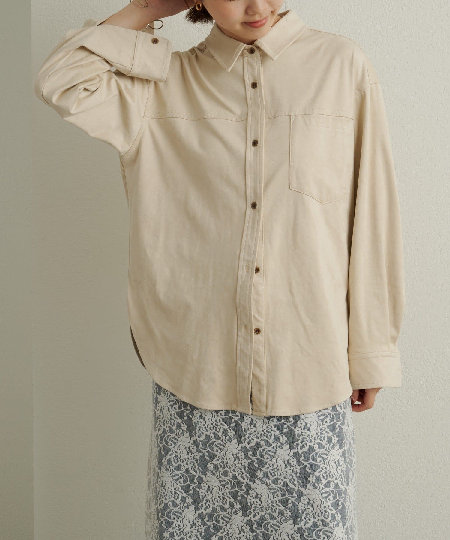 旬なスエード素材が秋らしいフェイクスエードシャツ