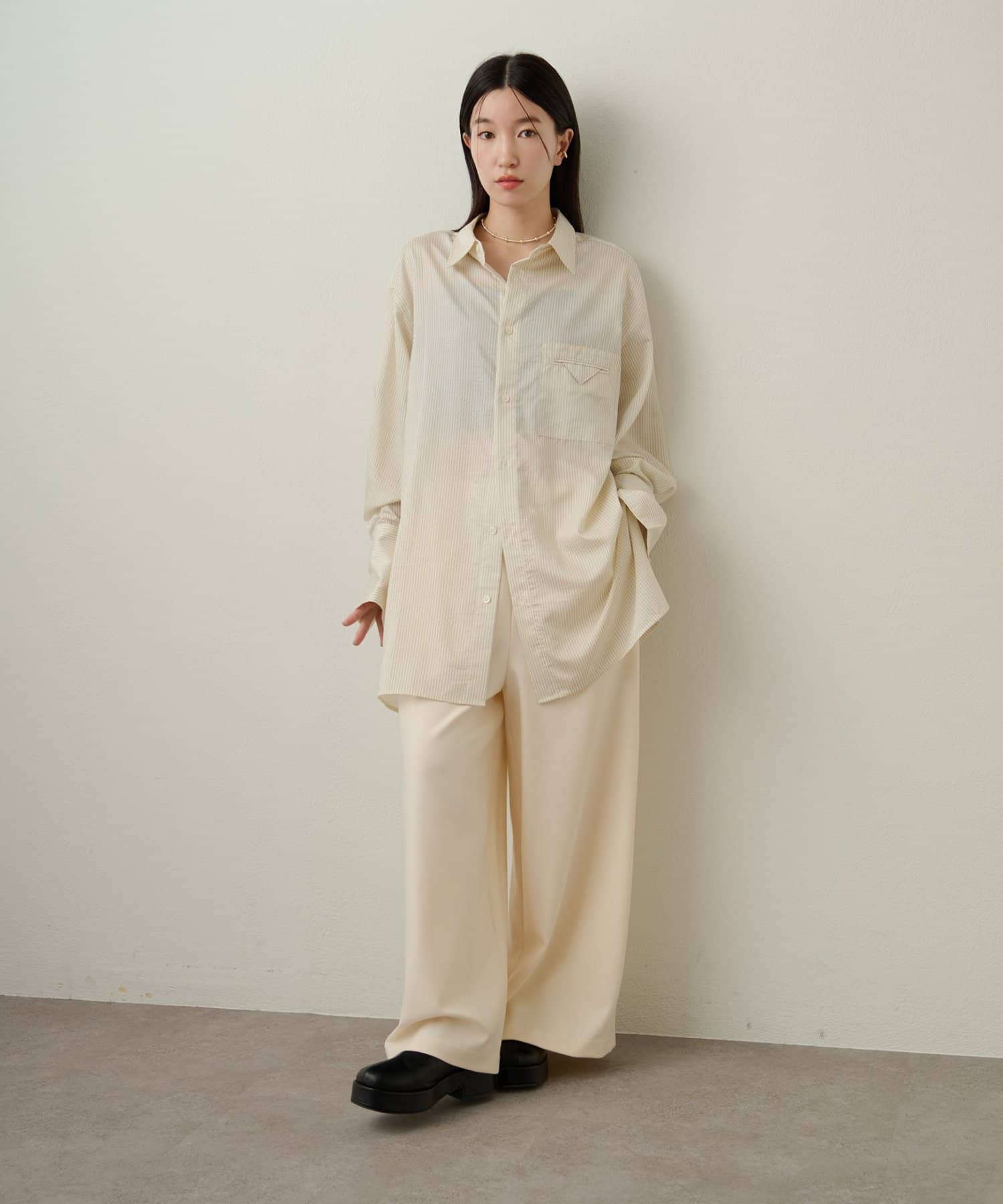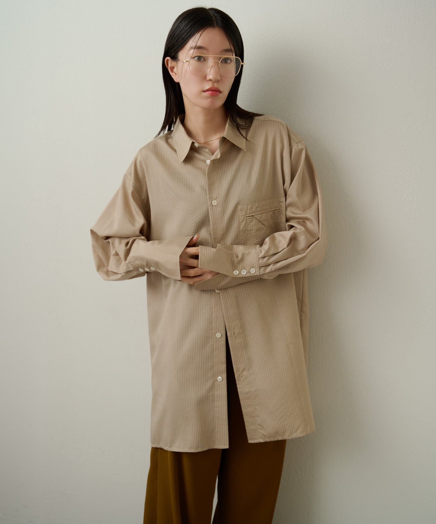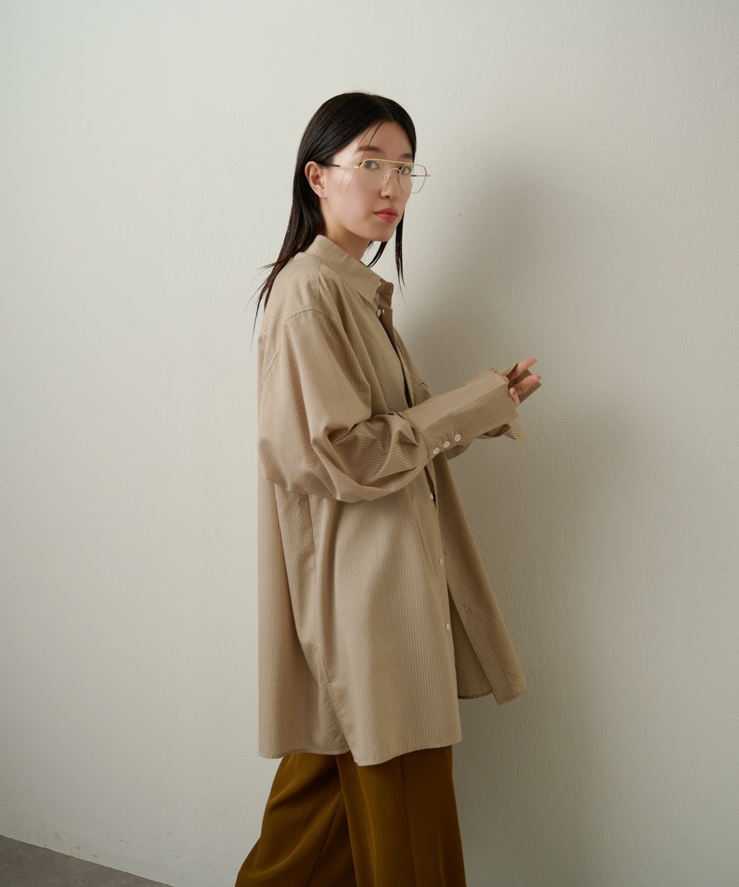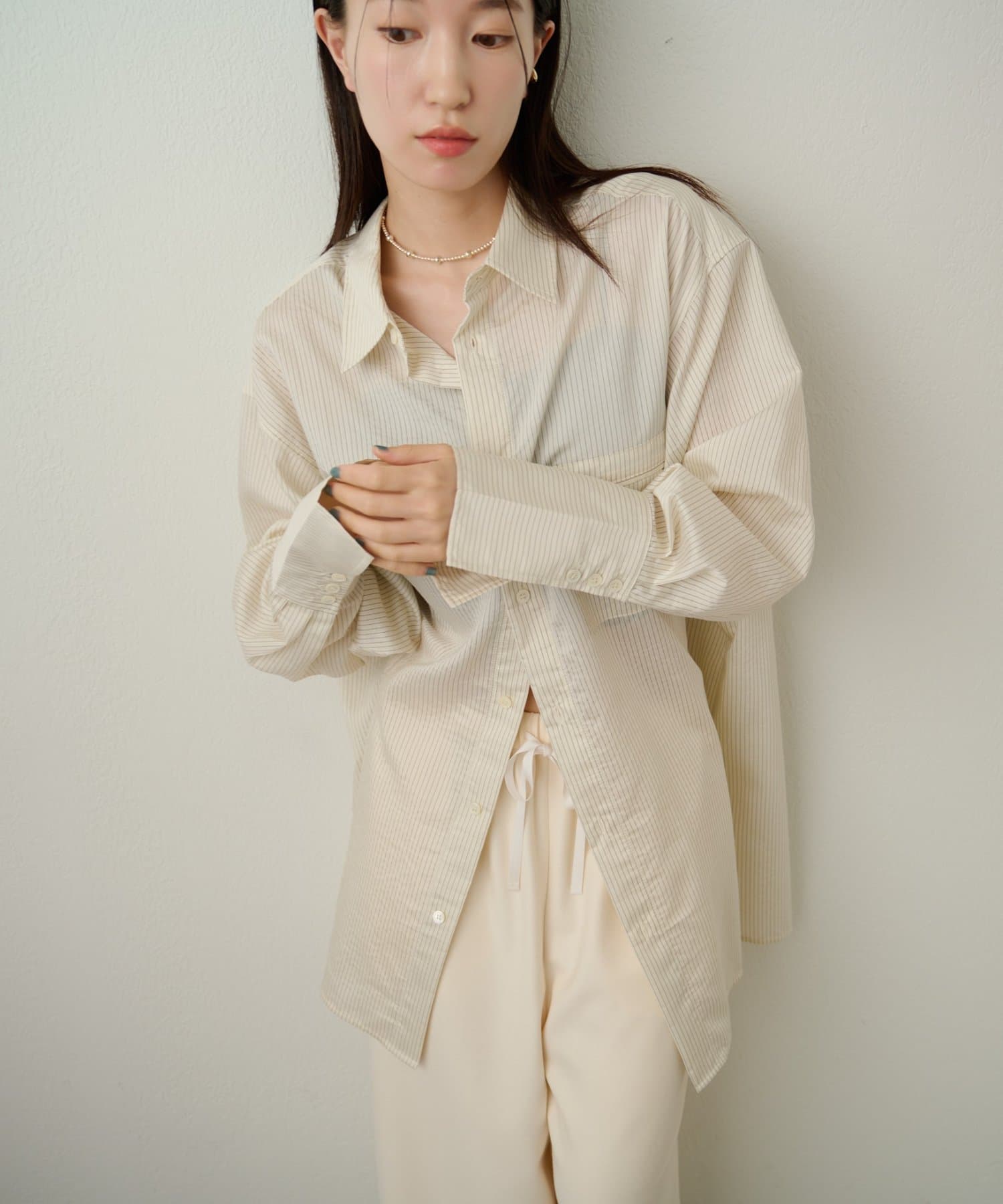 ストライプがスタイリングのアクセントになるきれいめシャツ