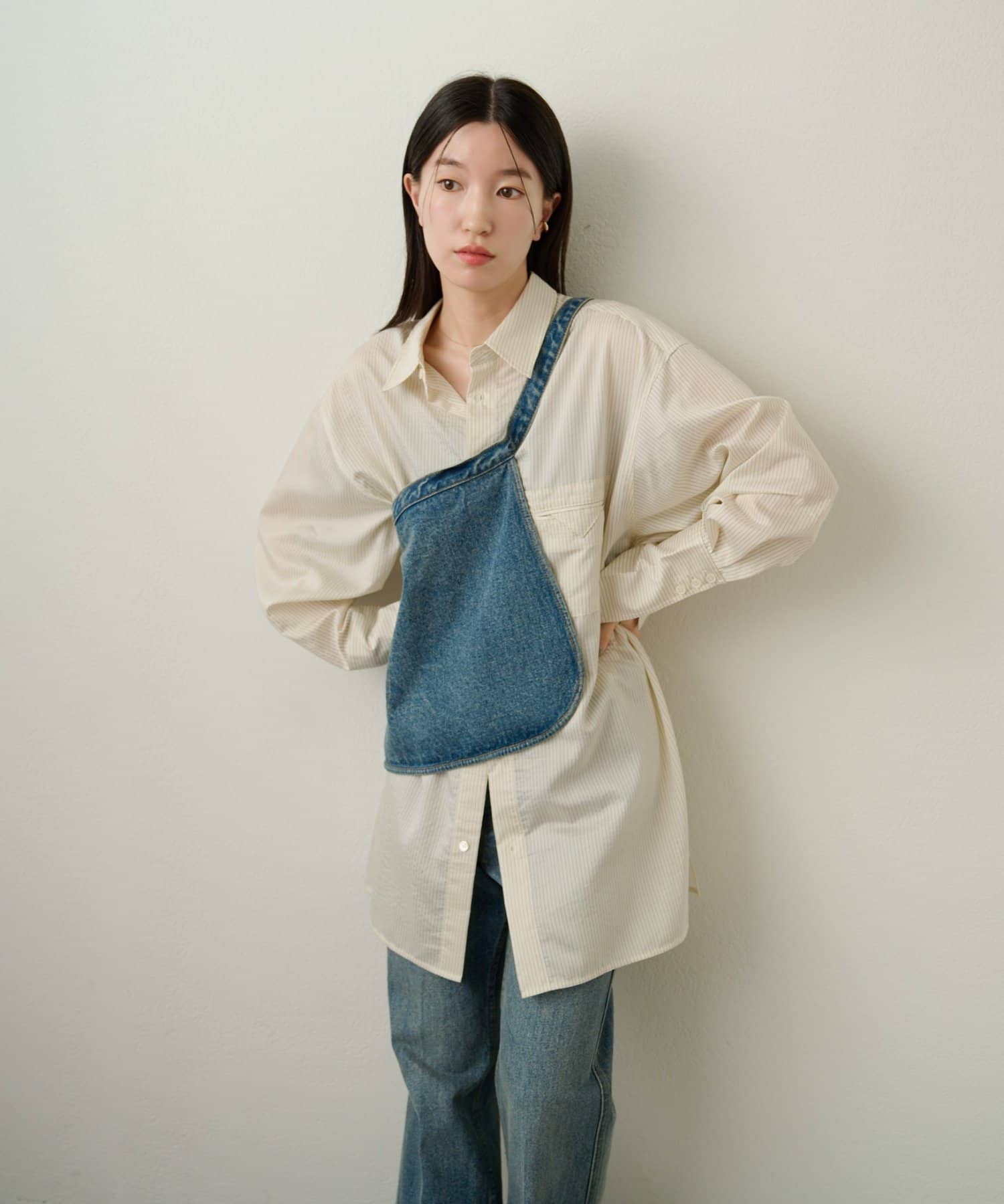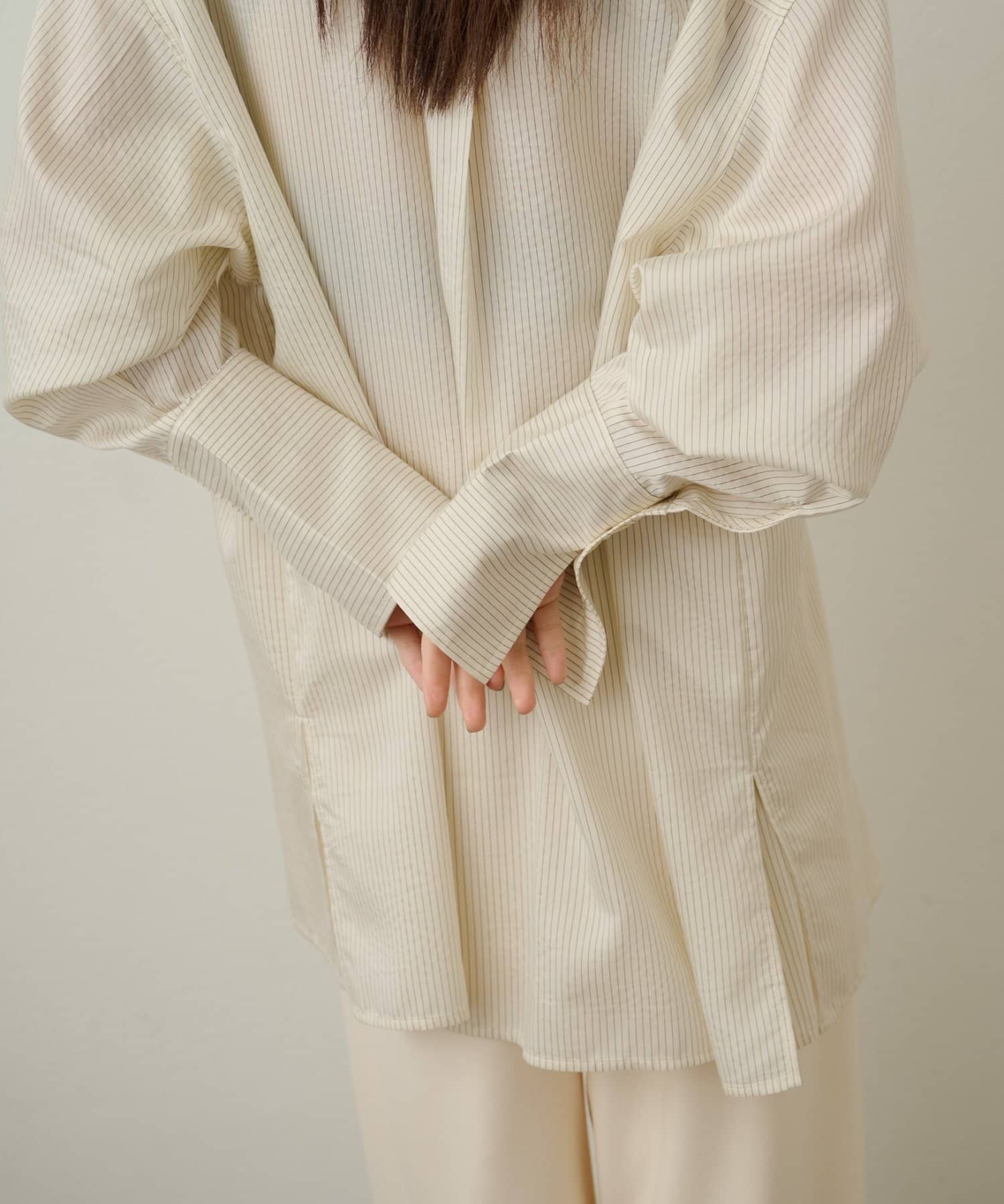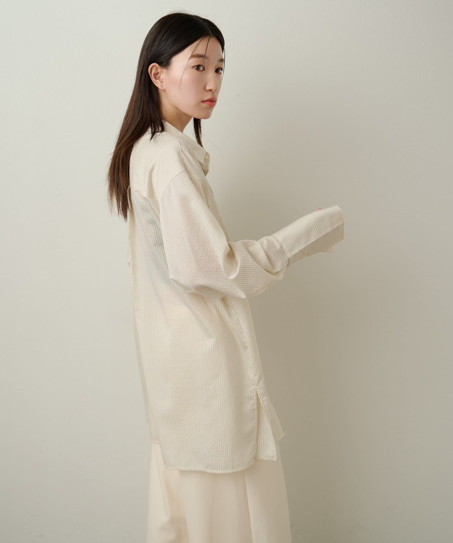 ・ゆったりめのシルエットにヒップが隠れる長めの着丈。