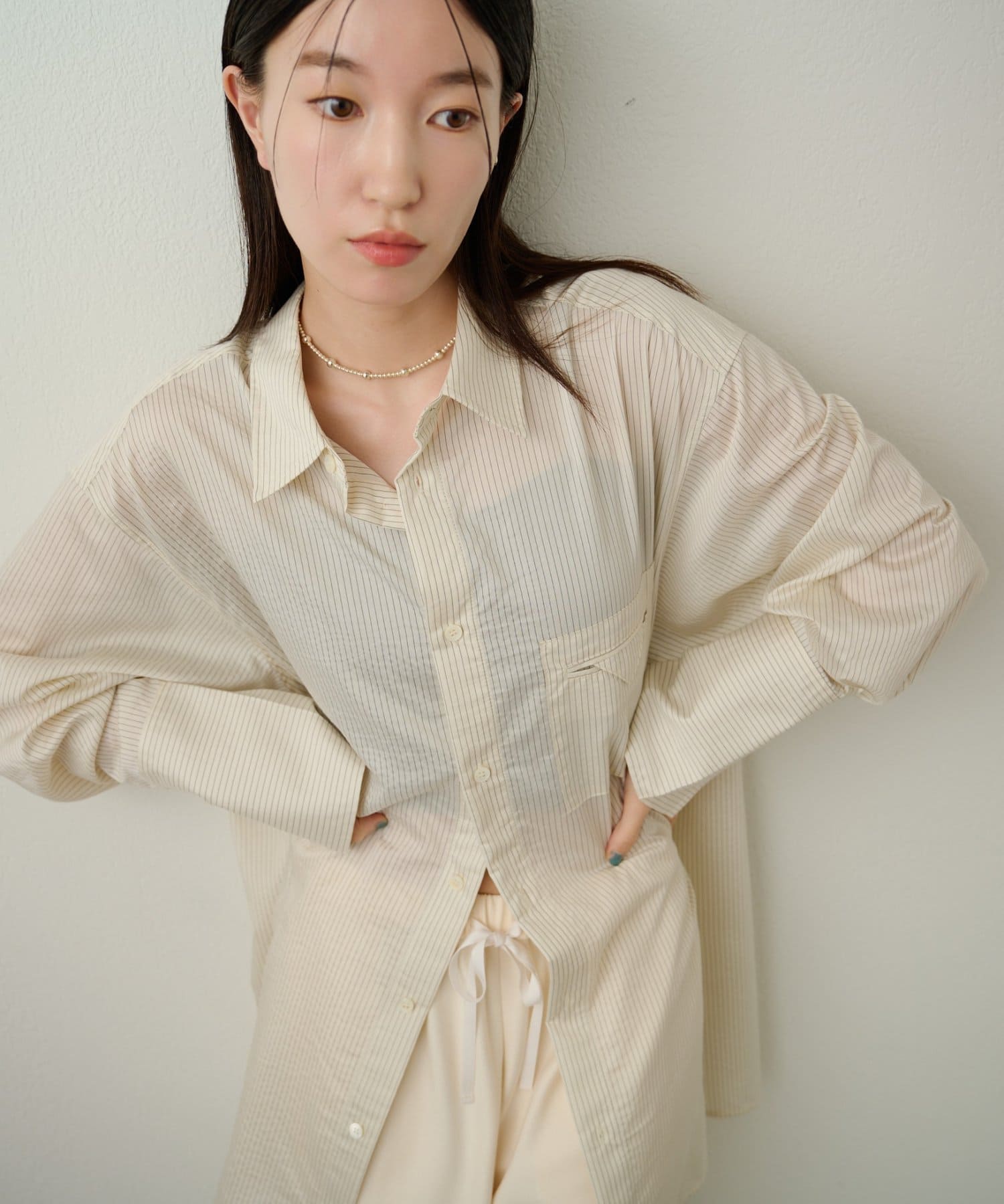 ストライプオーバーシャツ