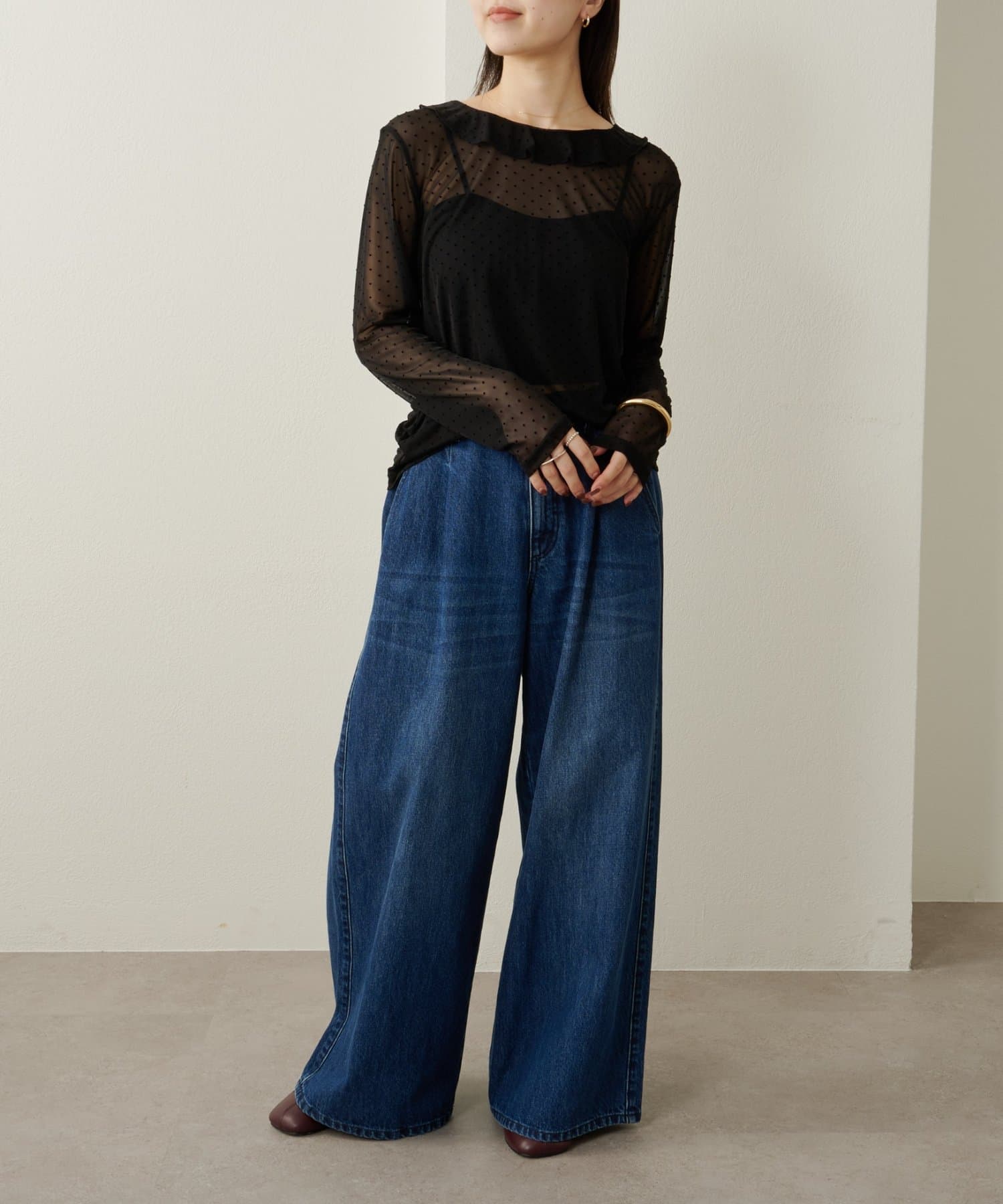 ・シアー素材の抜け感が、甘くなりすぎずに女性らしさを演出してくれます。