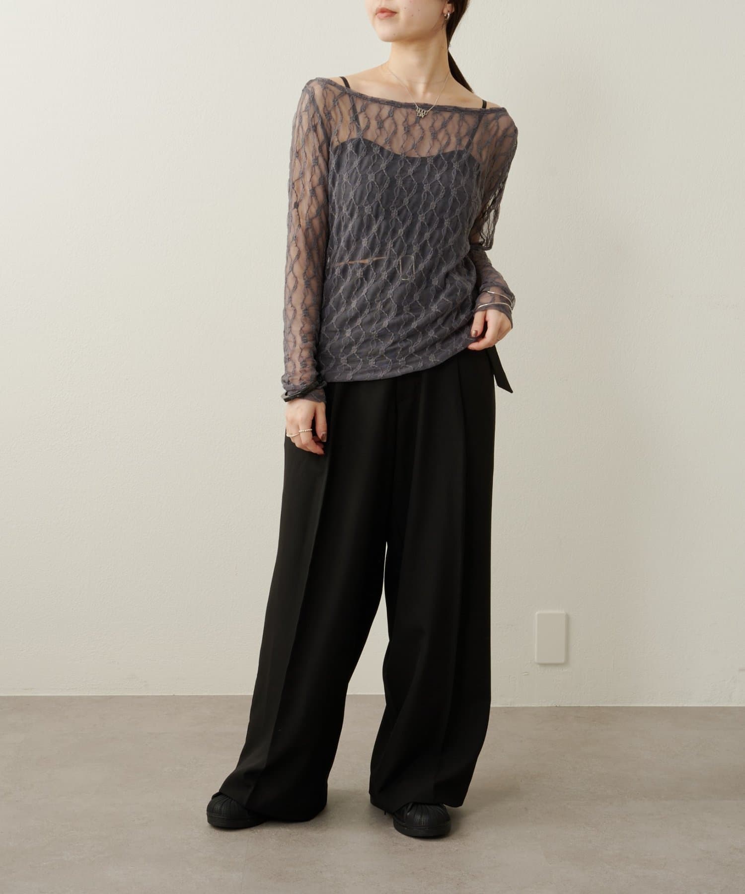 レース×シアー素材が女性らしいオフショルロングTシャツ