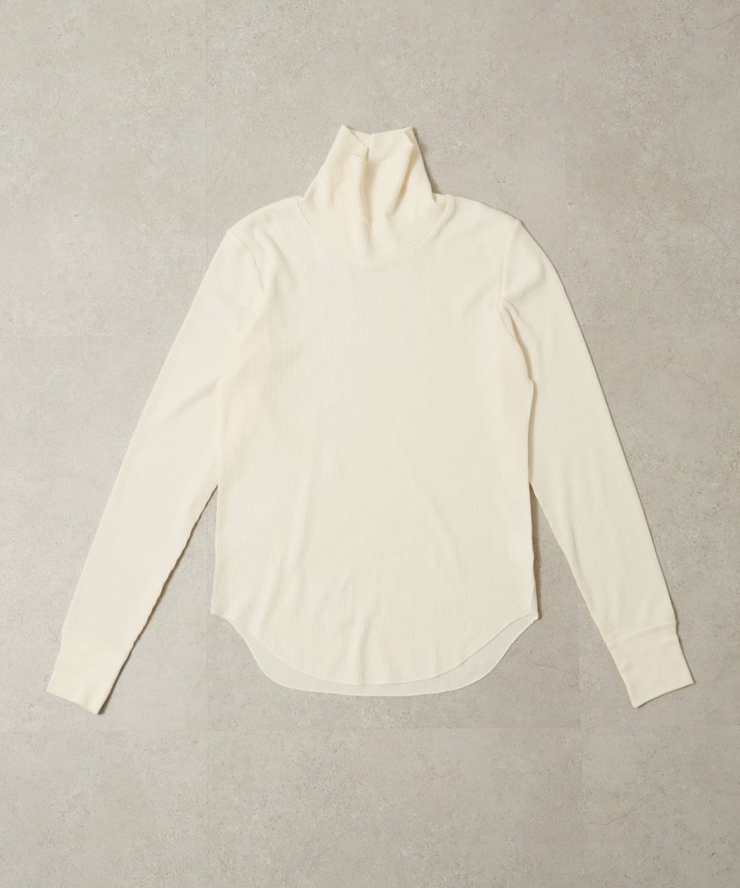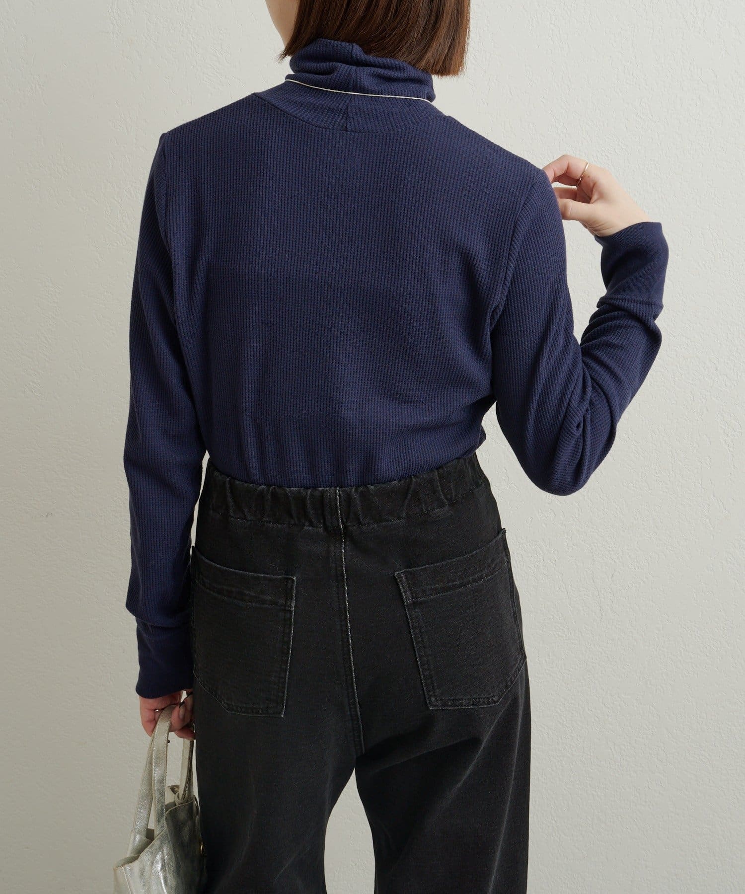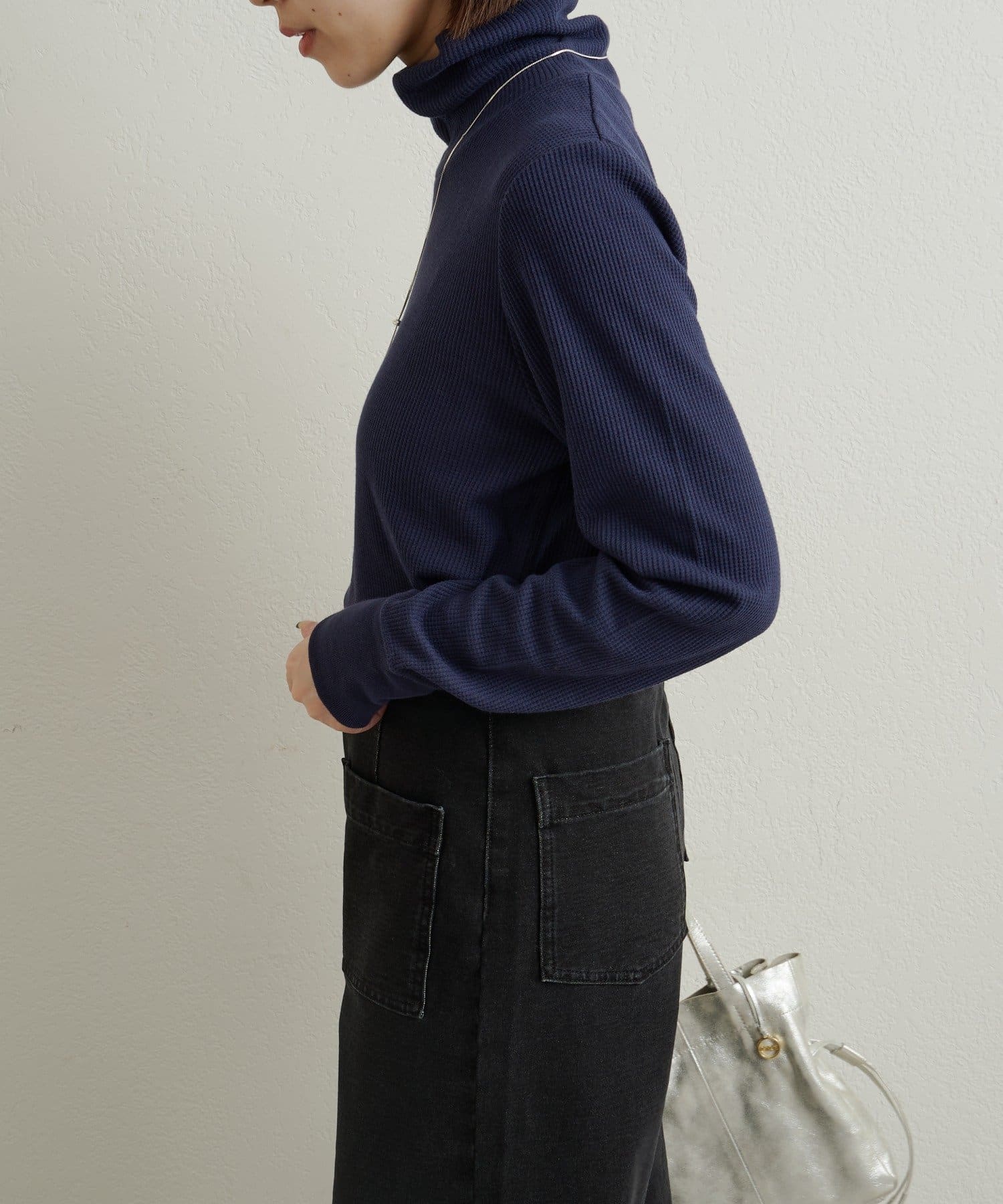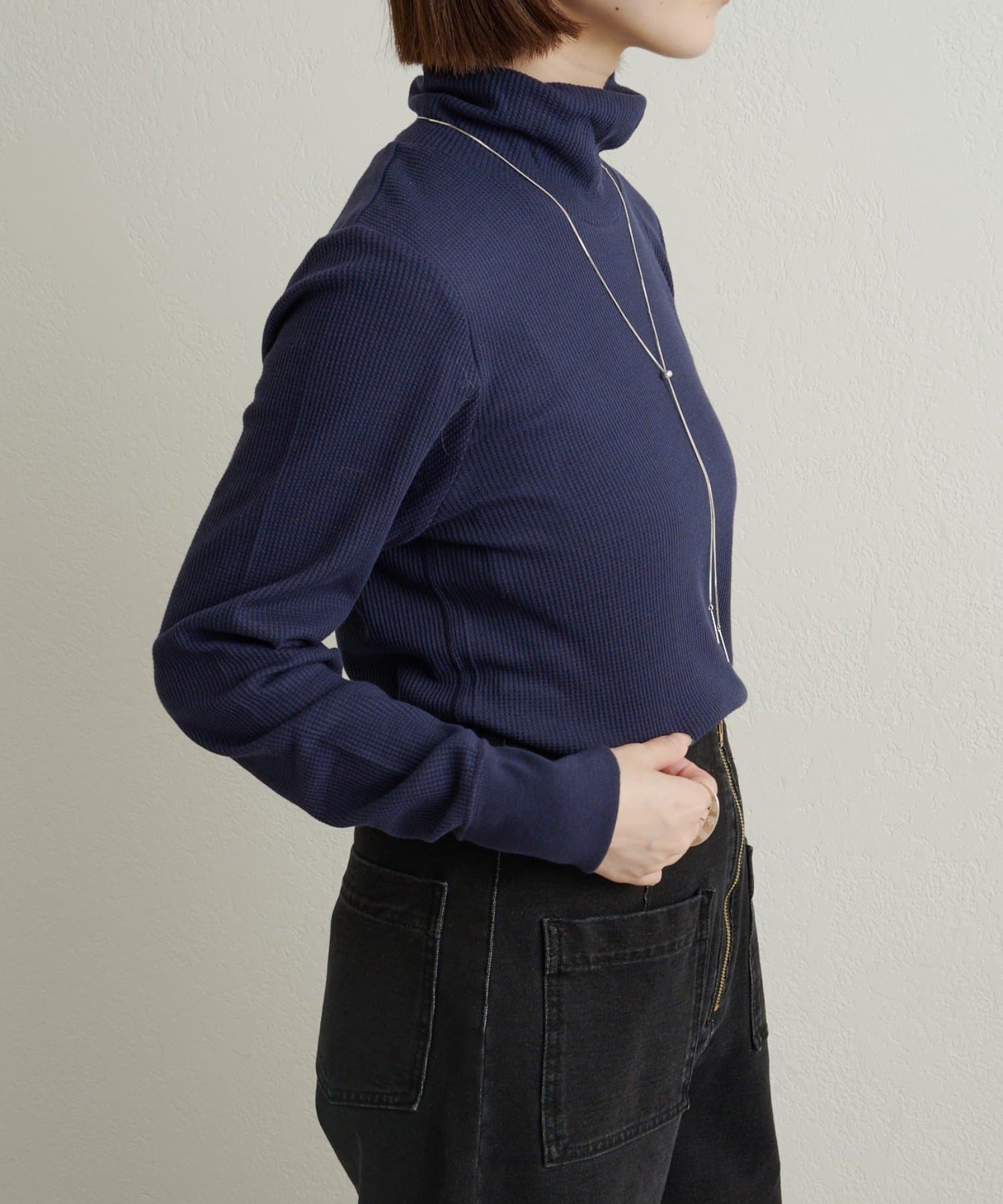 ・ワッフル素材が暖かく、寒い季節のインナーにぴったりなタートルネックのカットソー
