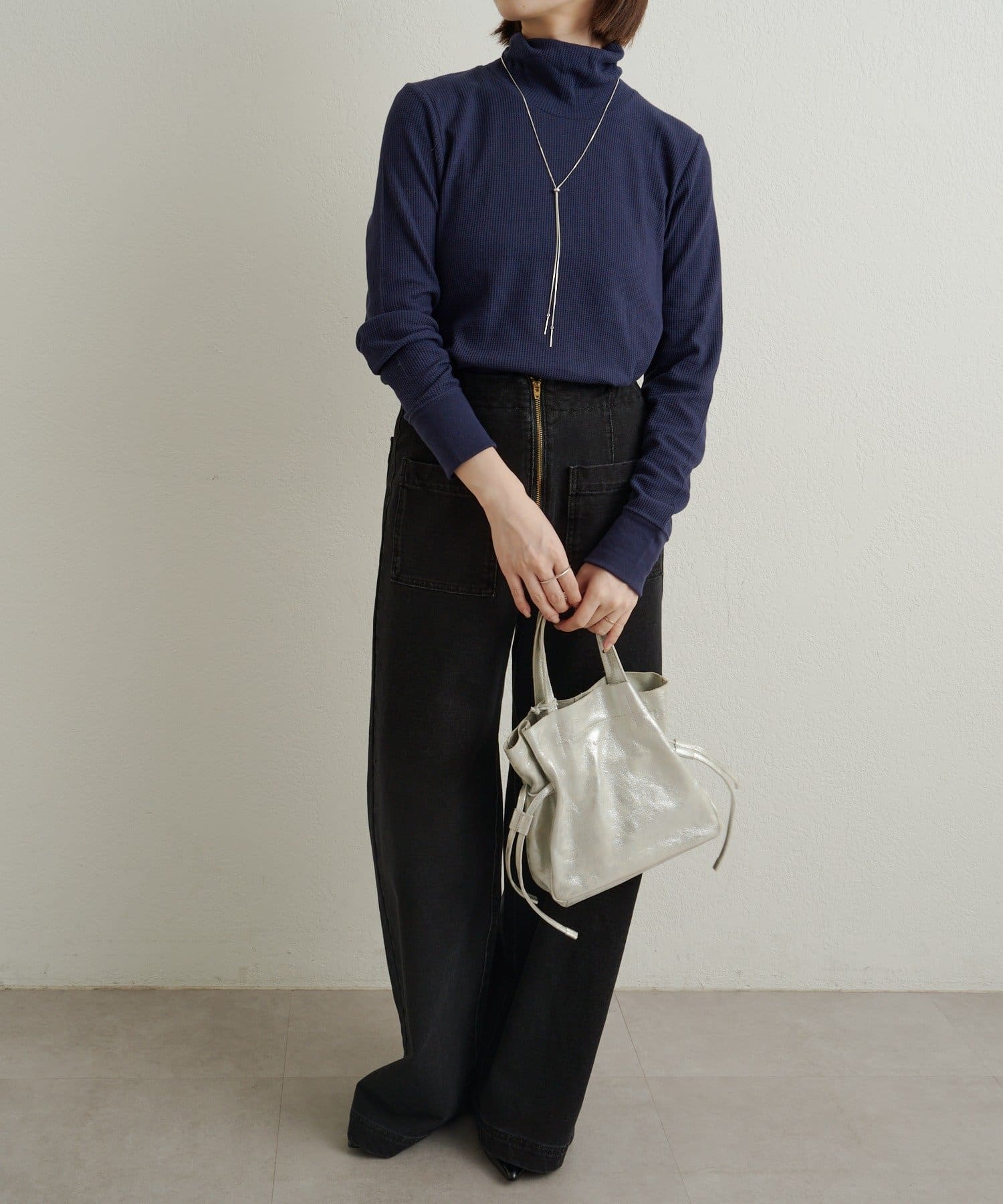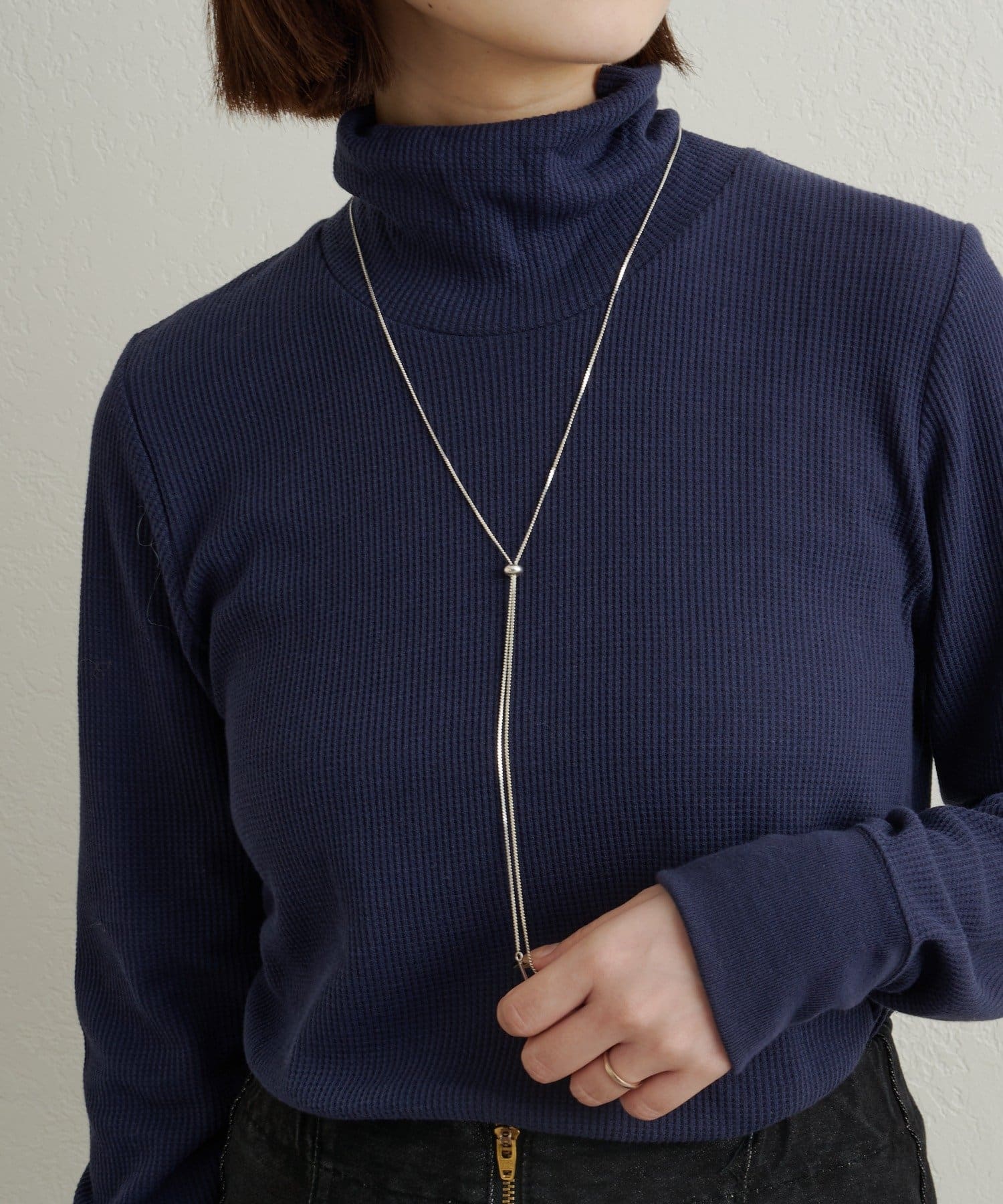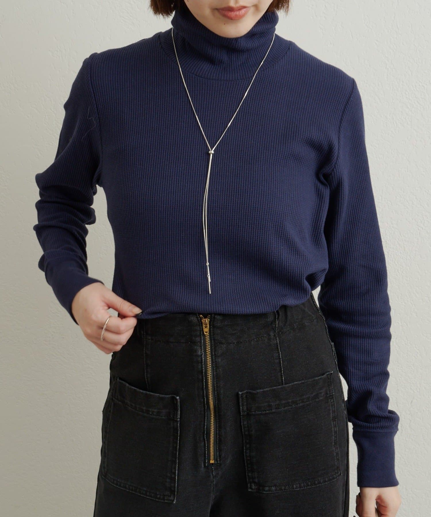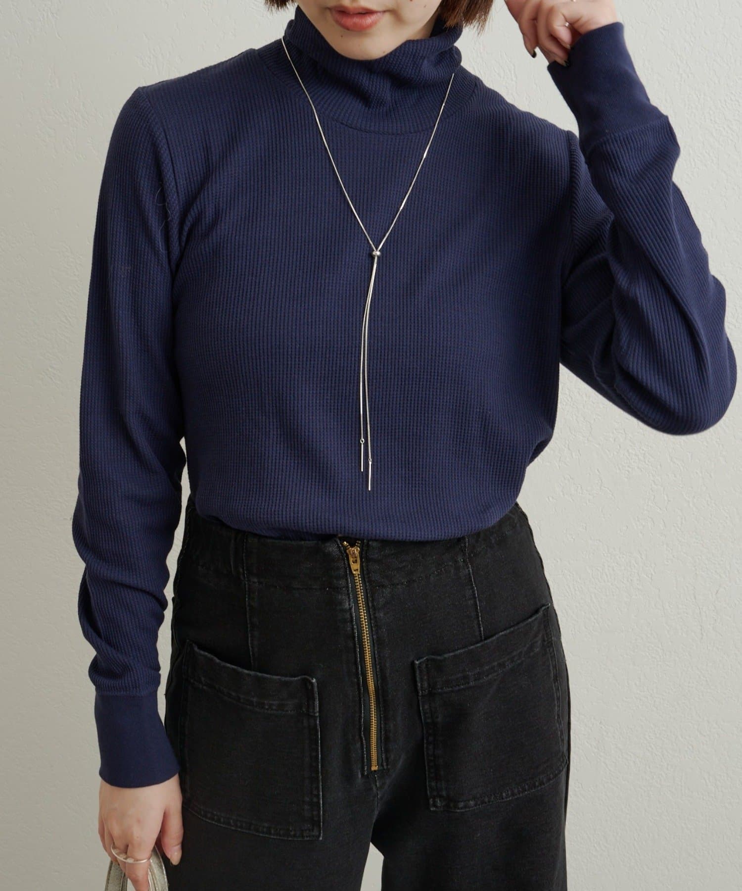 ・ワッフル素材が暖かく、寒い季節のインナーにぴったりなタートルネックのカットソー