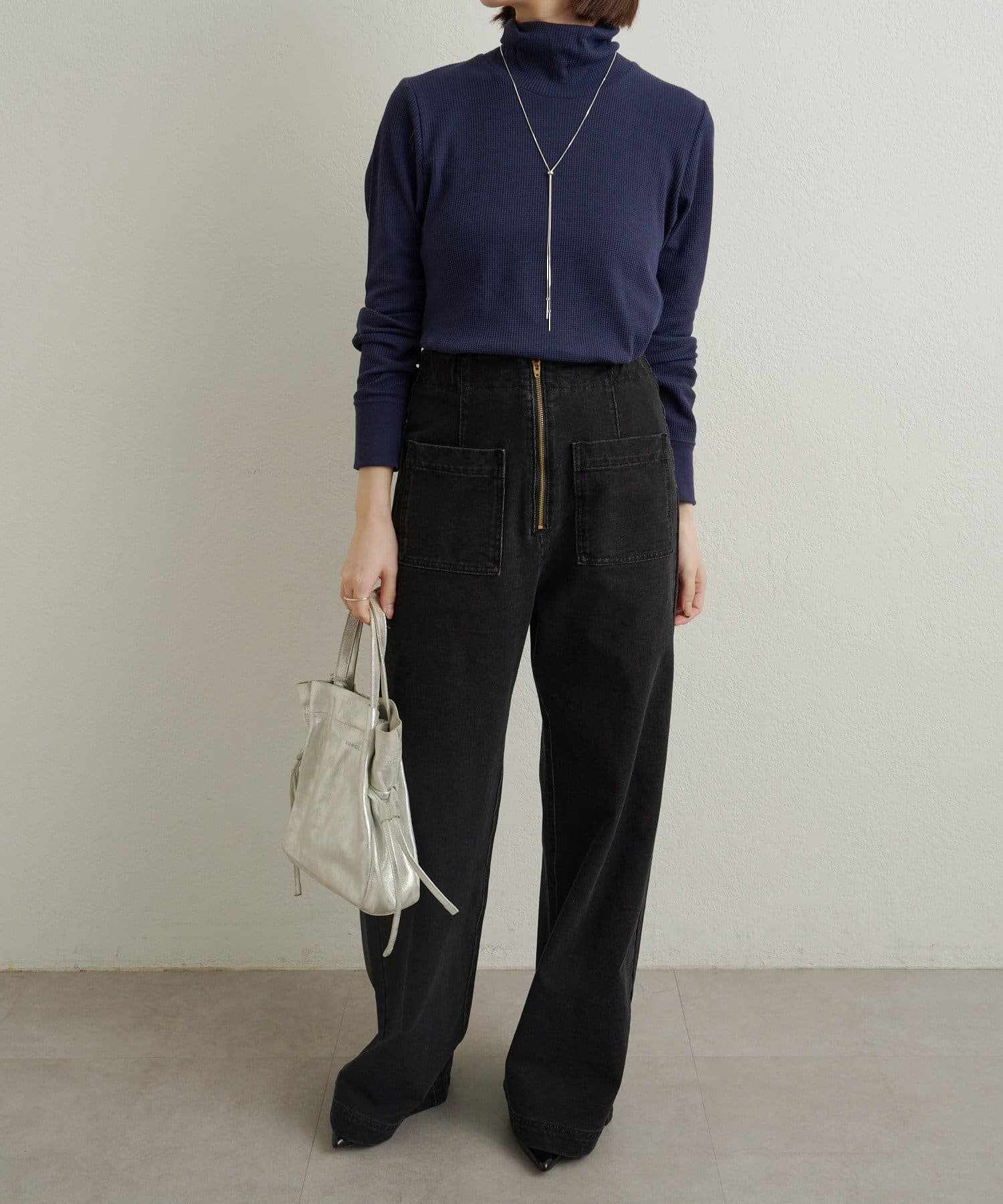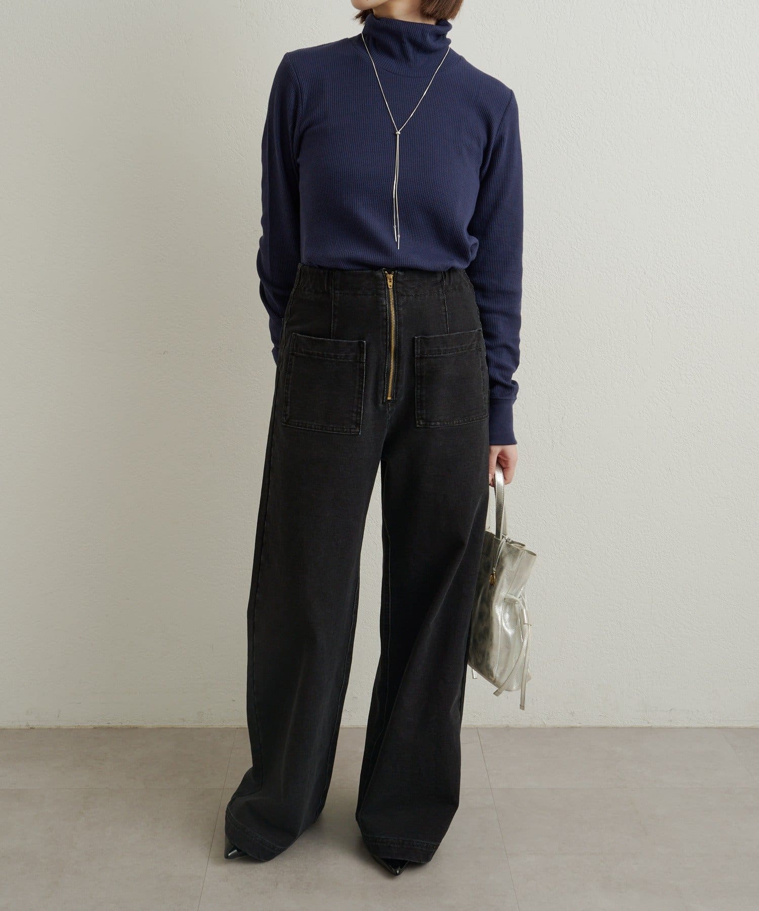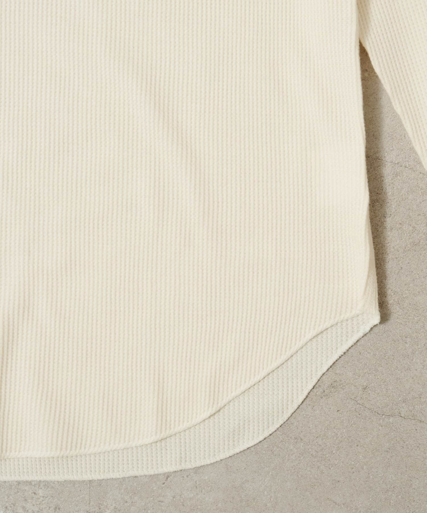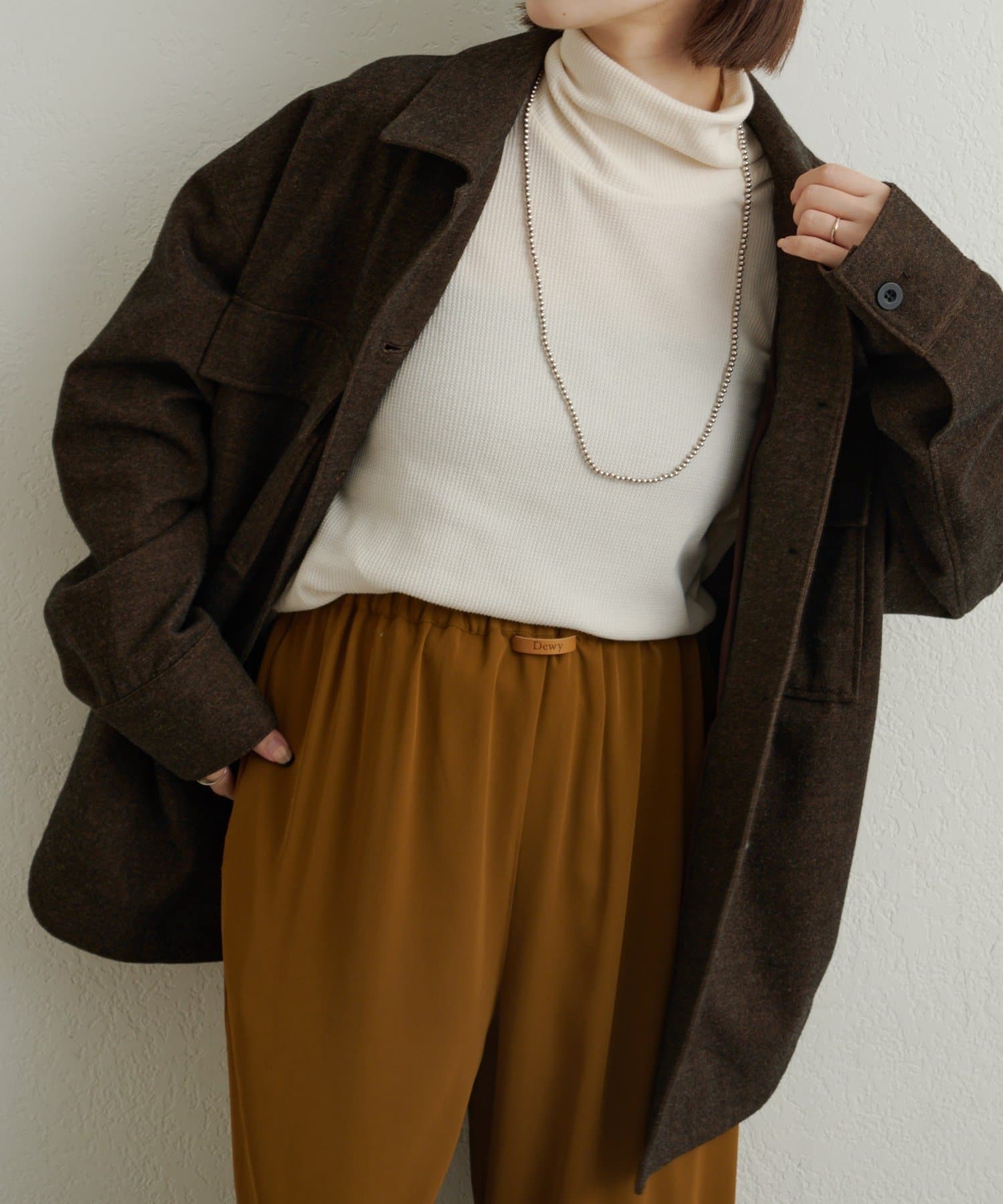 ・ワッフル素材が暖かく、寒い季節のインナーにぴったりなタートルネックのカットソー