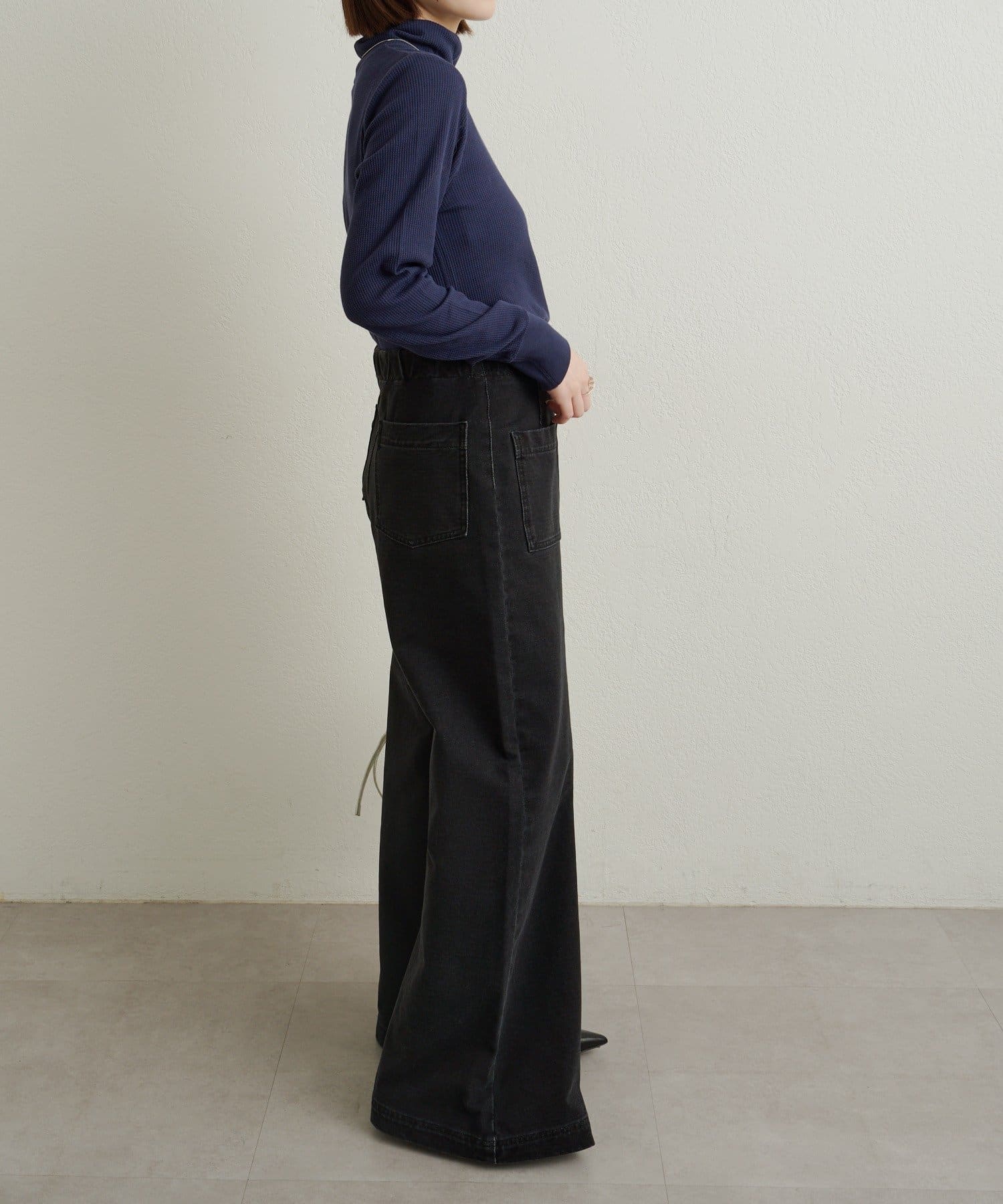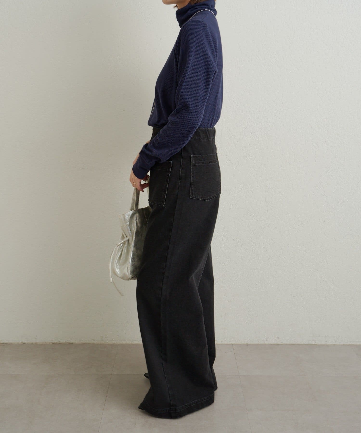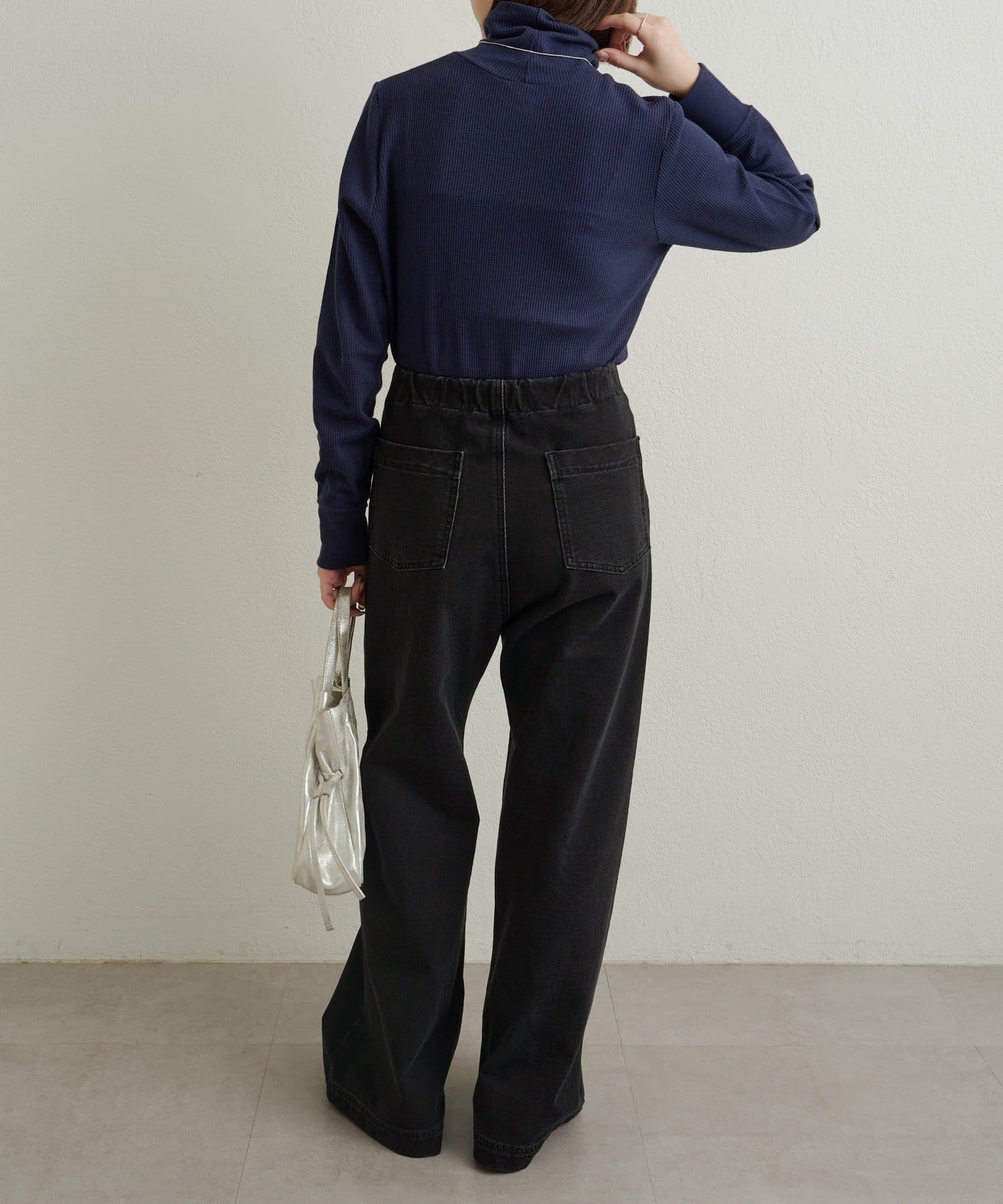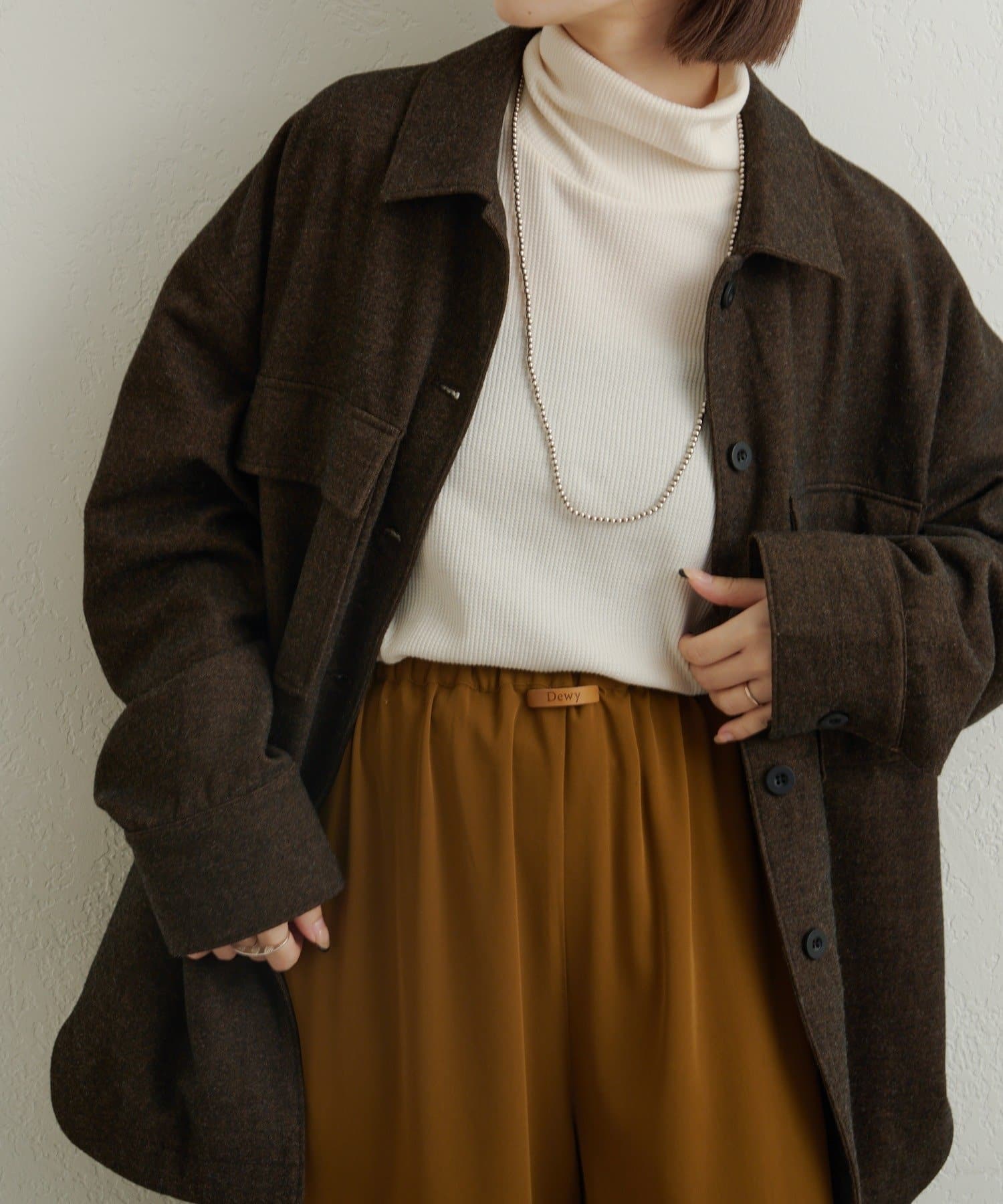 ・ワッフル素材が暖かく、寒い季節のインナーにぴったりなタートルネックのカットソー