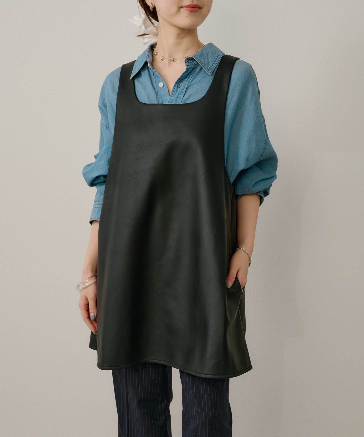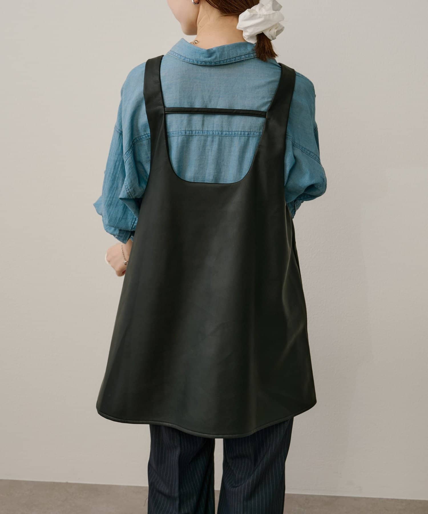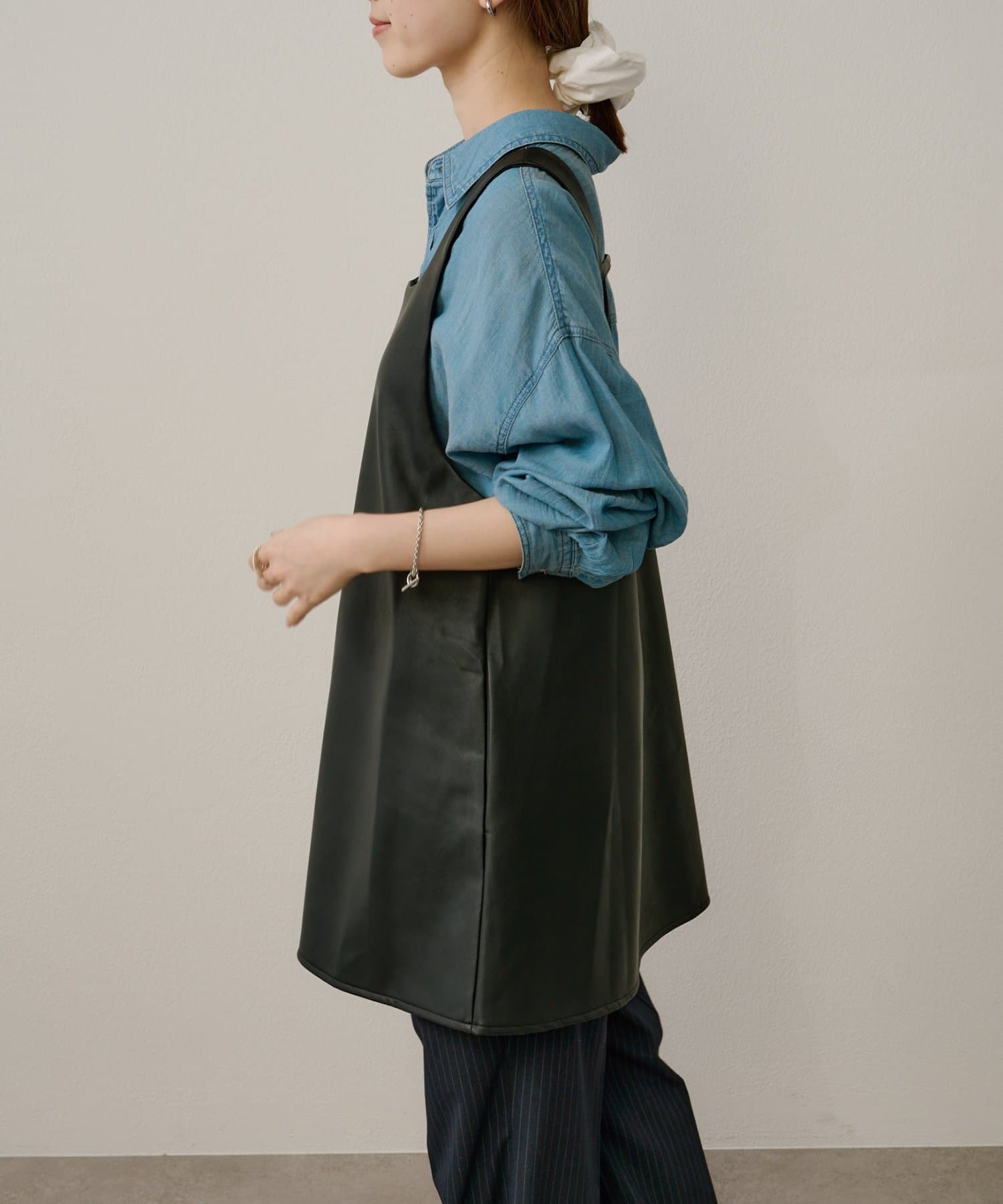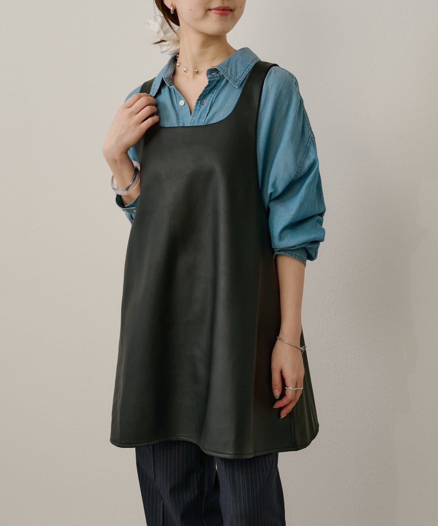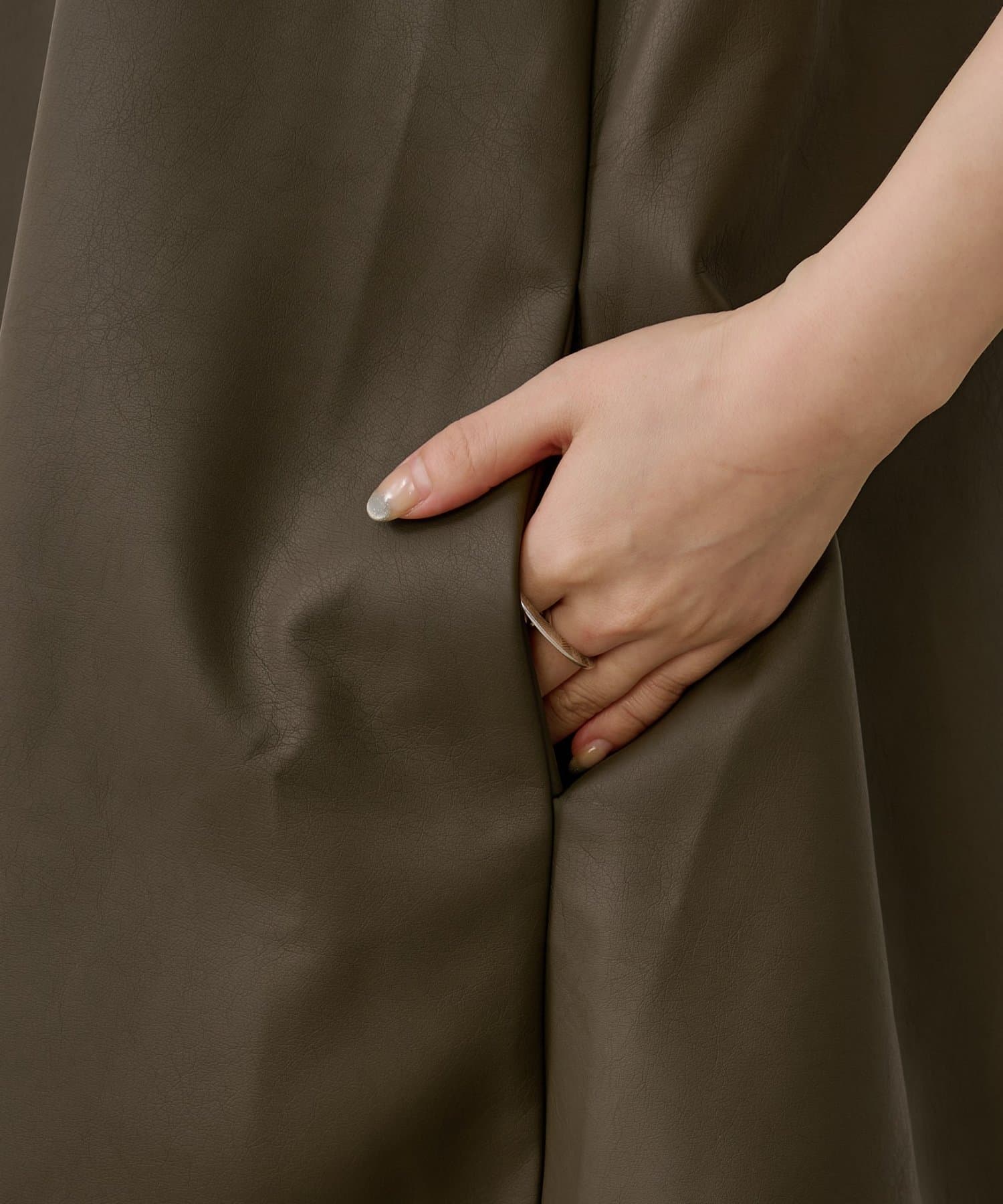 ・高級感のあるフェイクレザー素材が、大人カジュアルスタイルにぴったりな一枚。