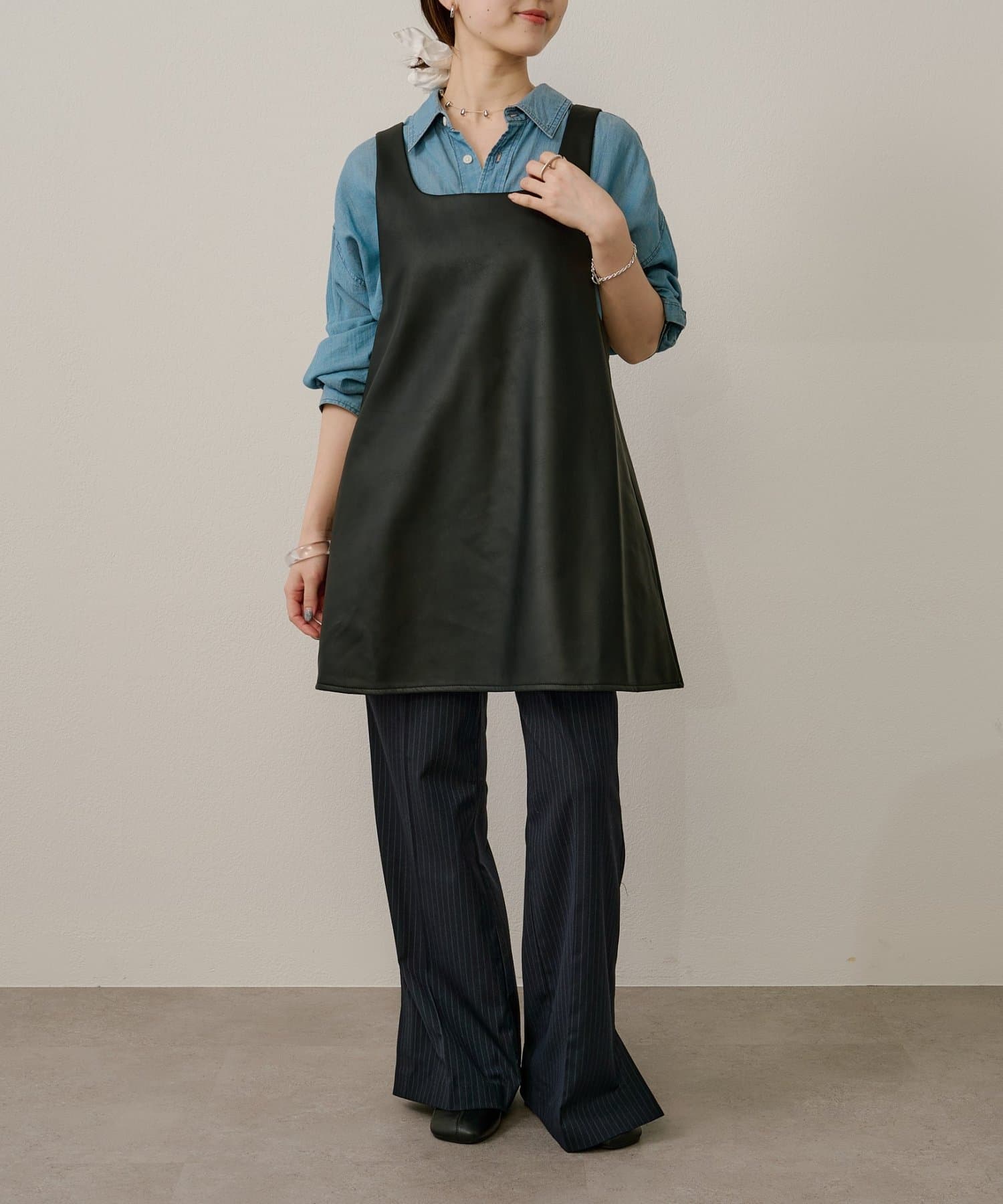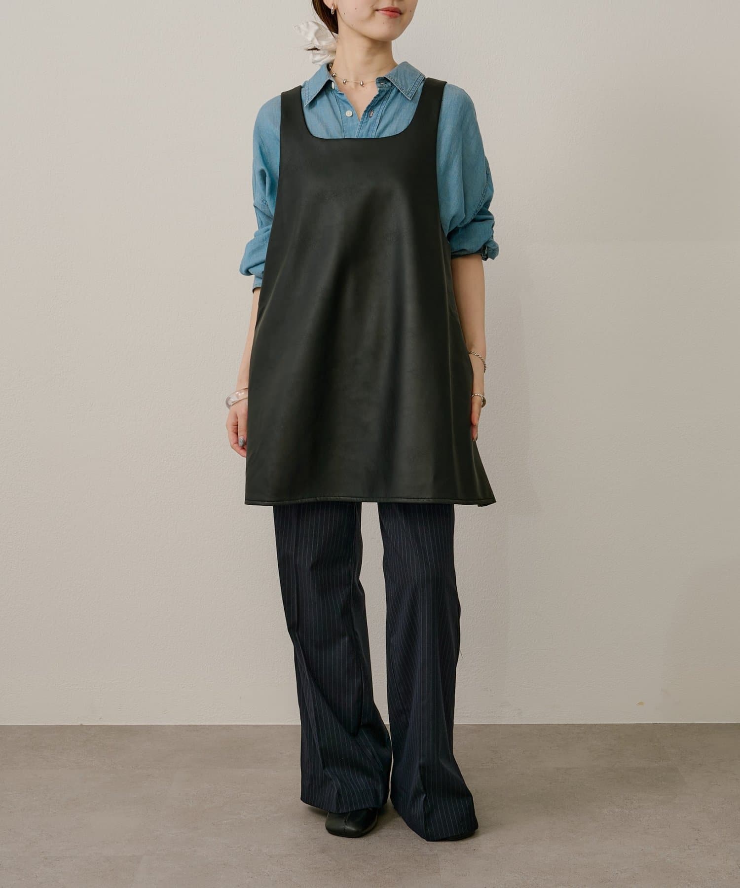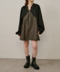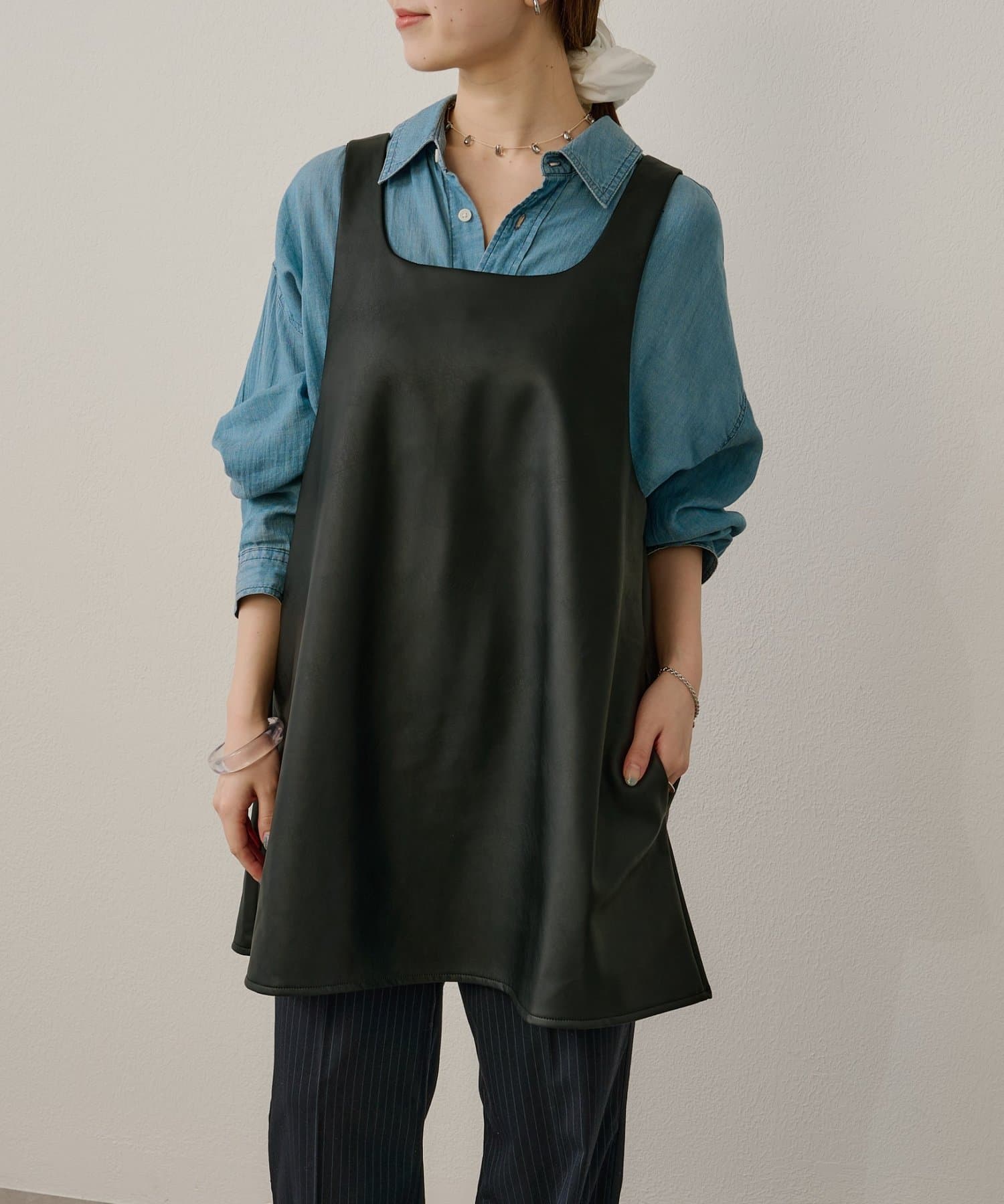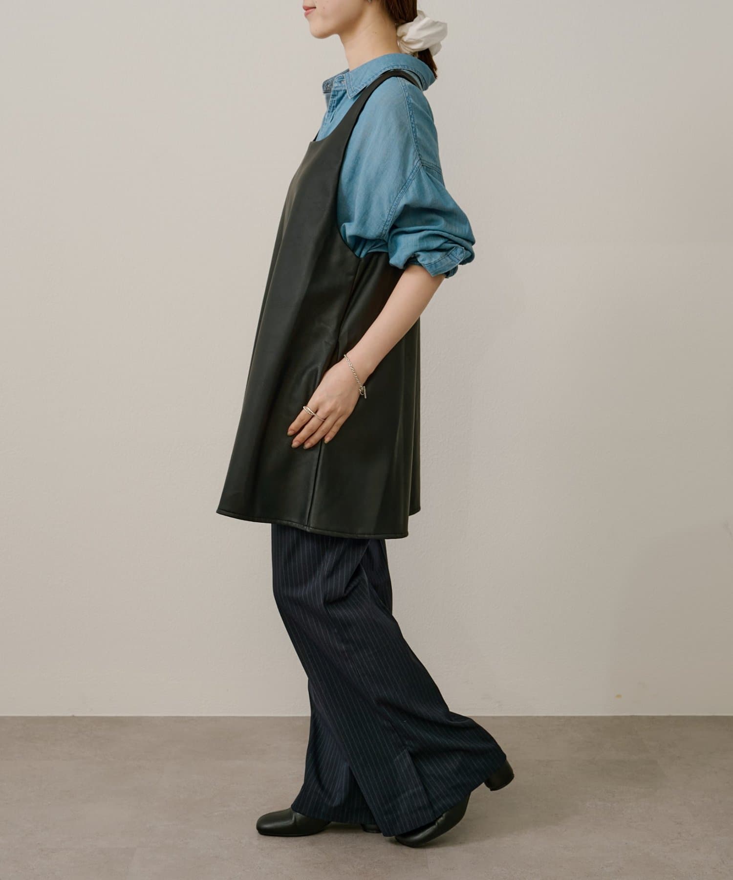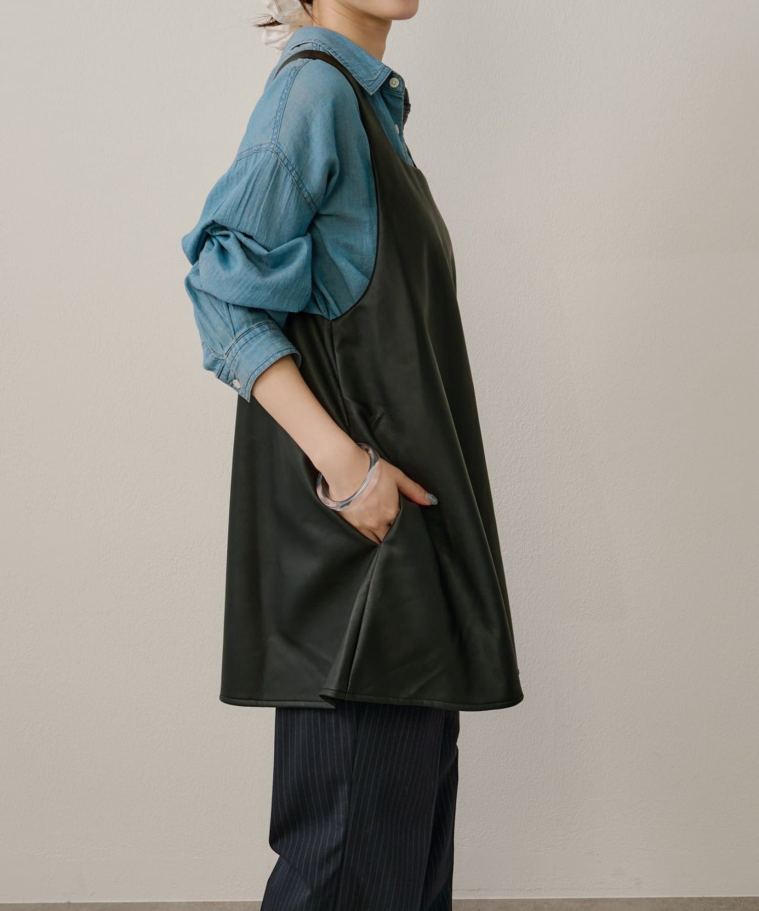 ・高級感のあるフェイクレザー素材が、大人カジュアルスタイルにぴったりな一枚。