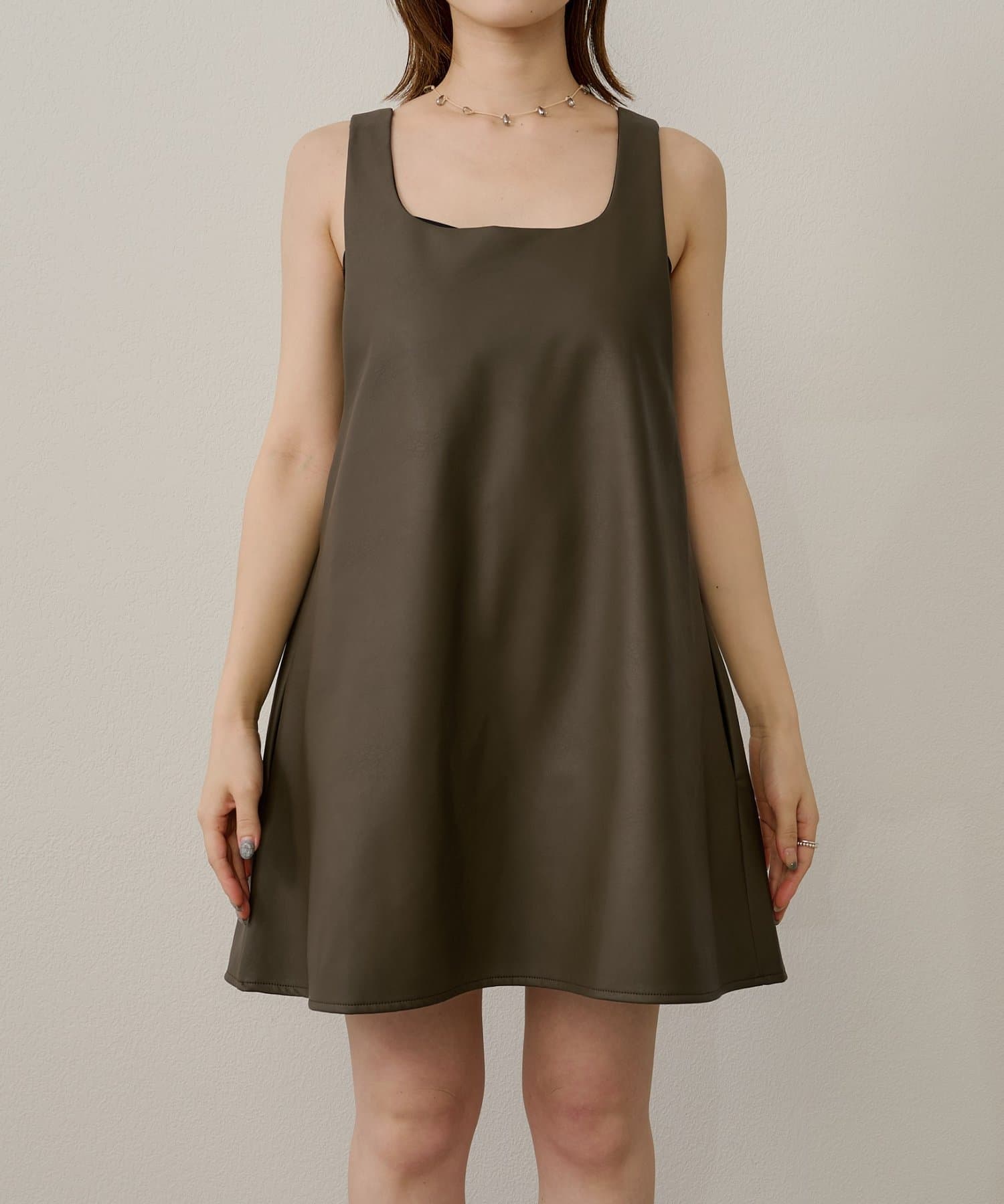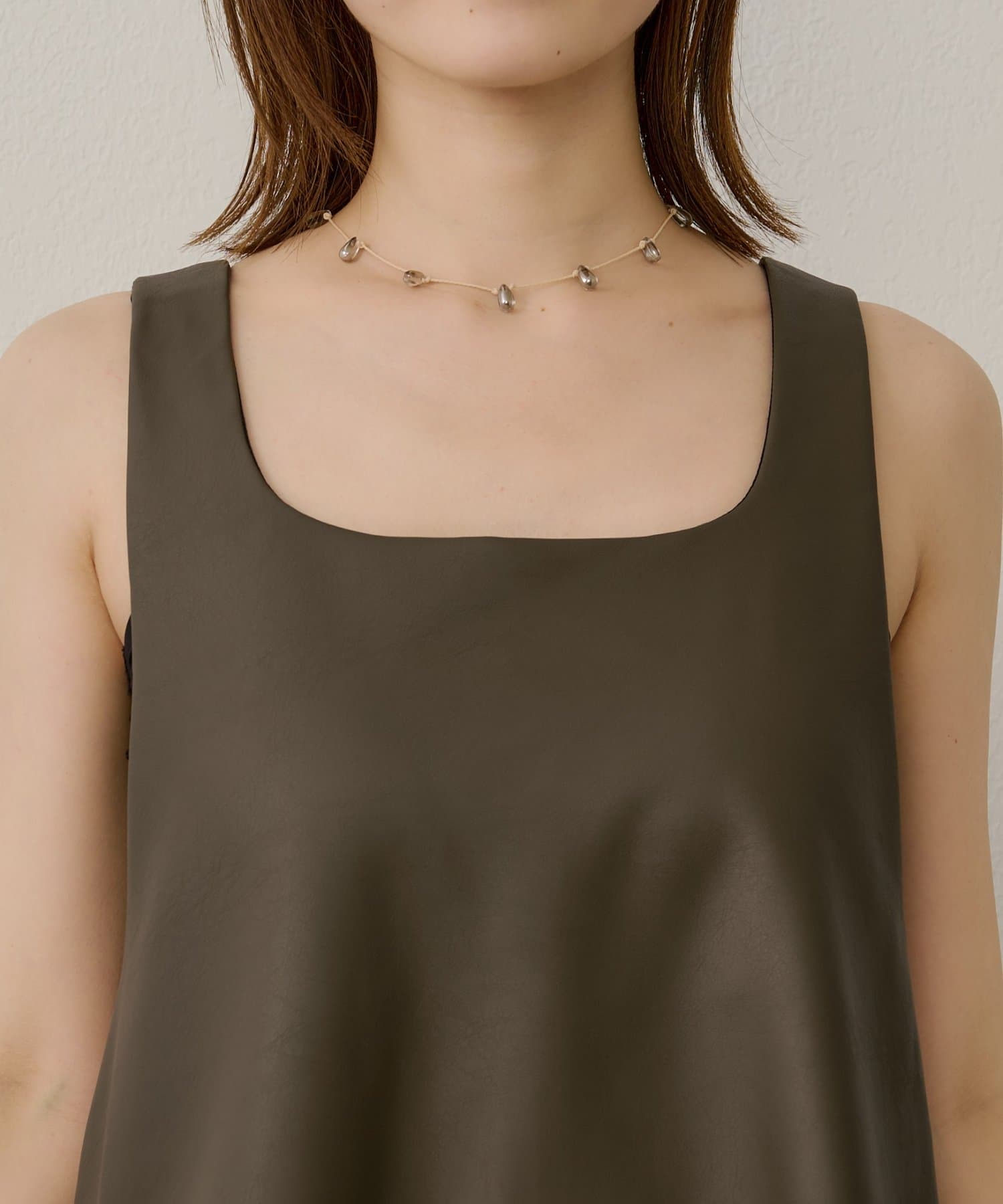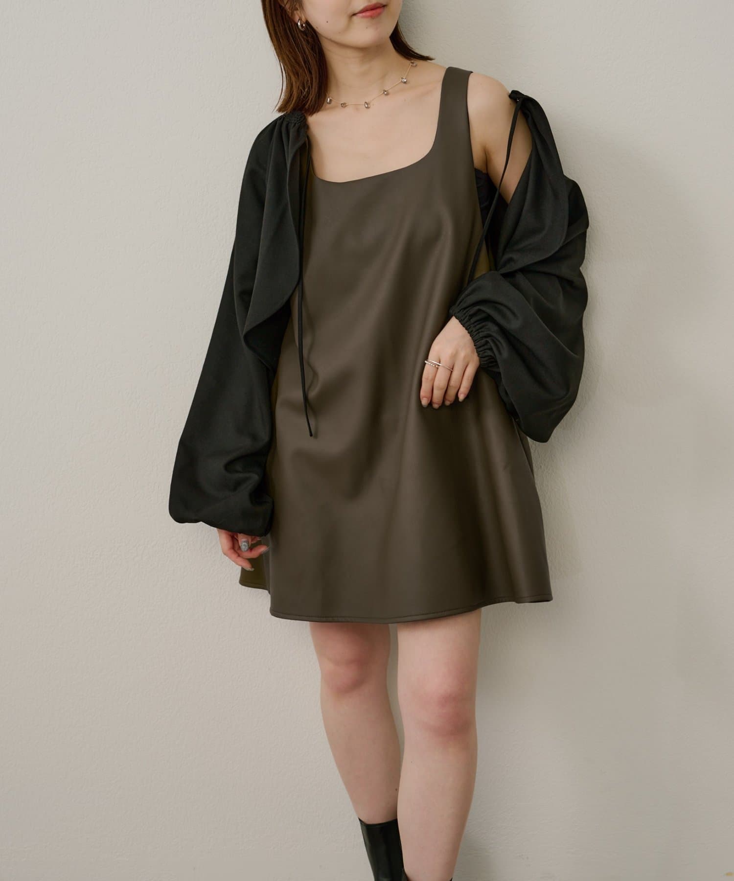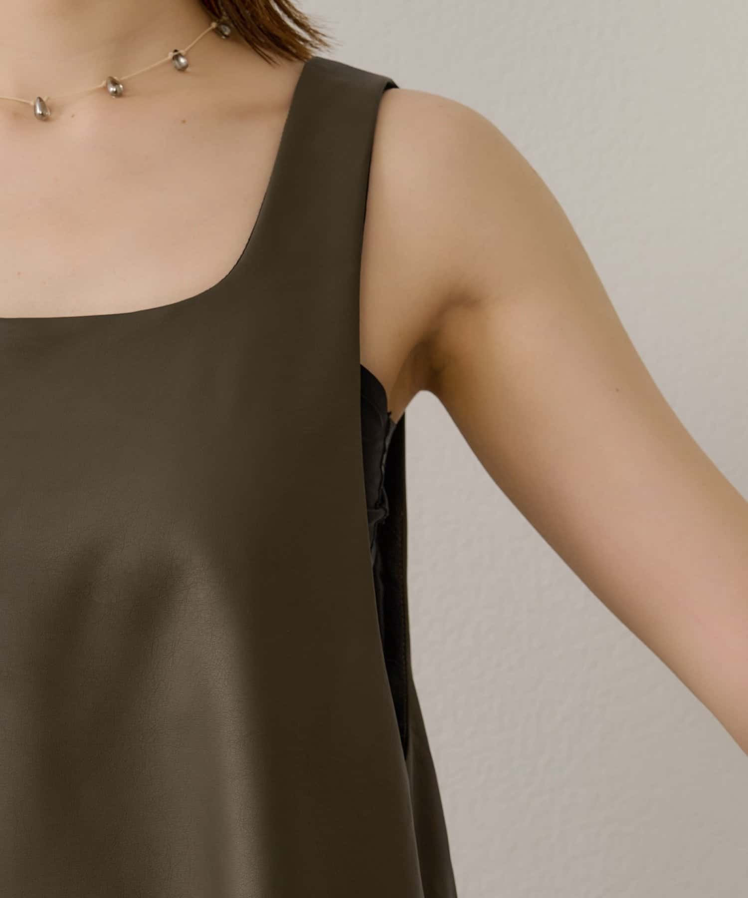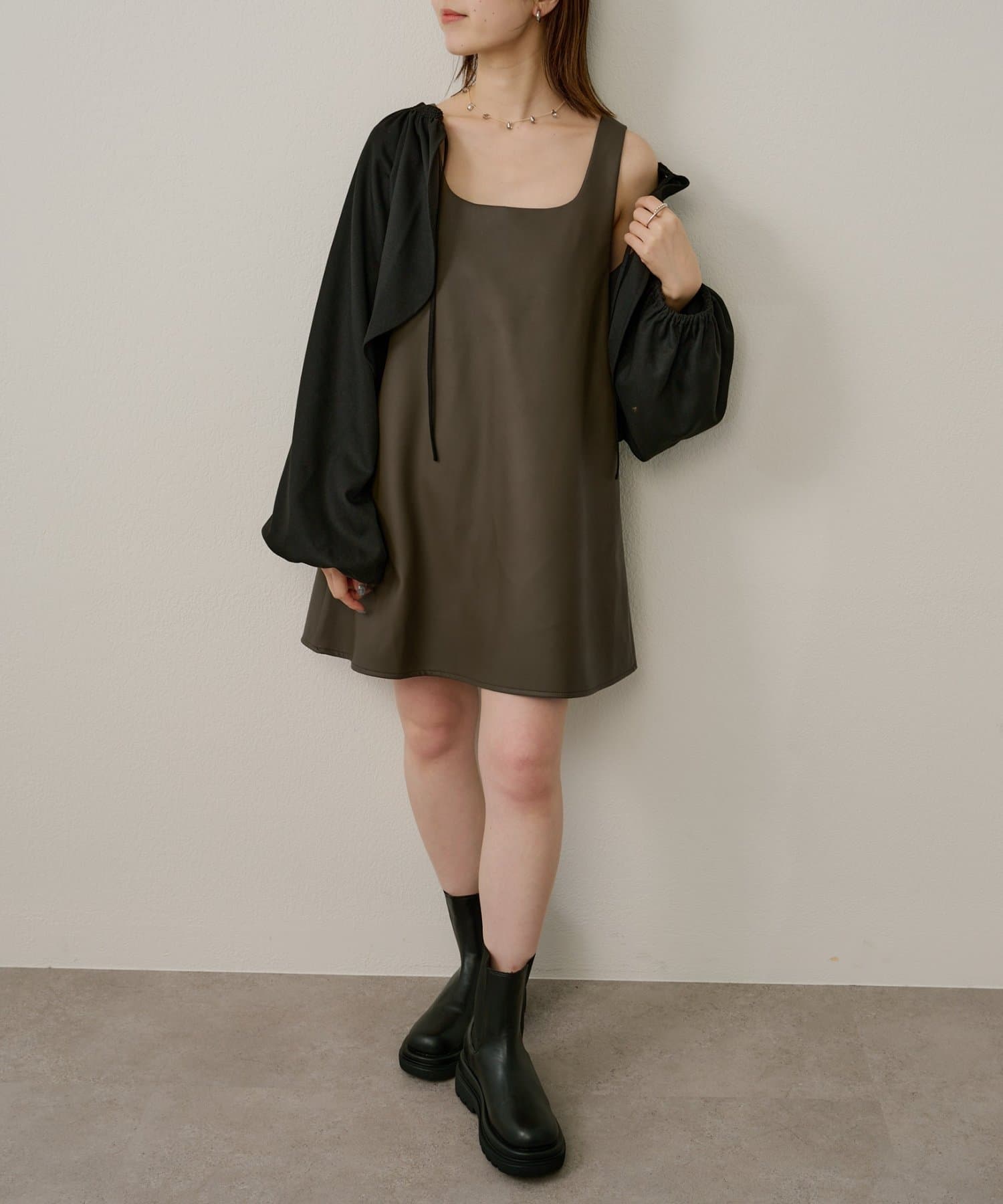 ・鎖骨のラインを綺麗に魅せてくれるスクエアネックデザイン。