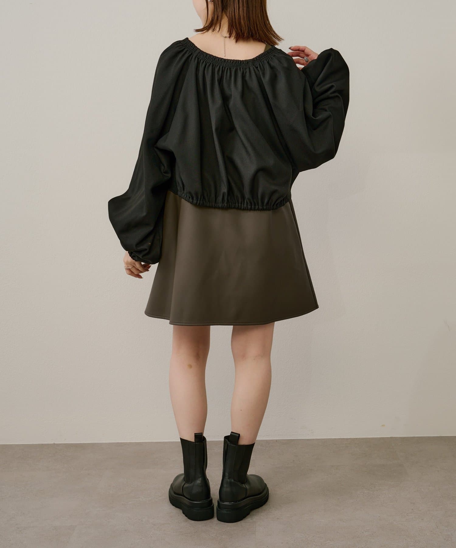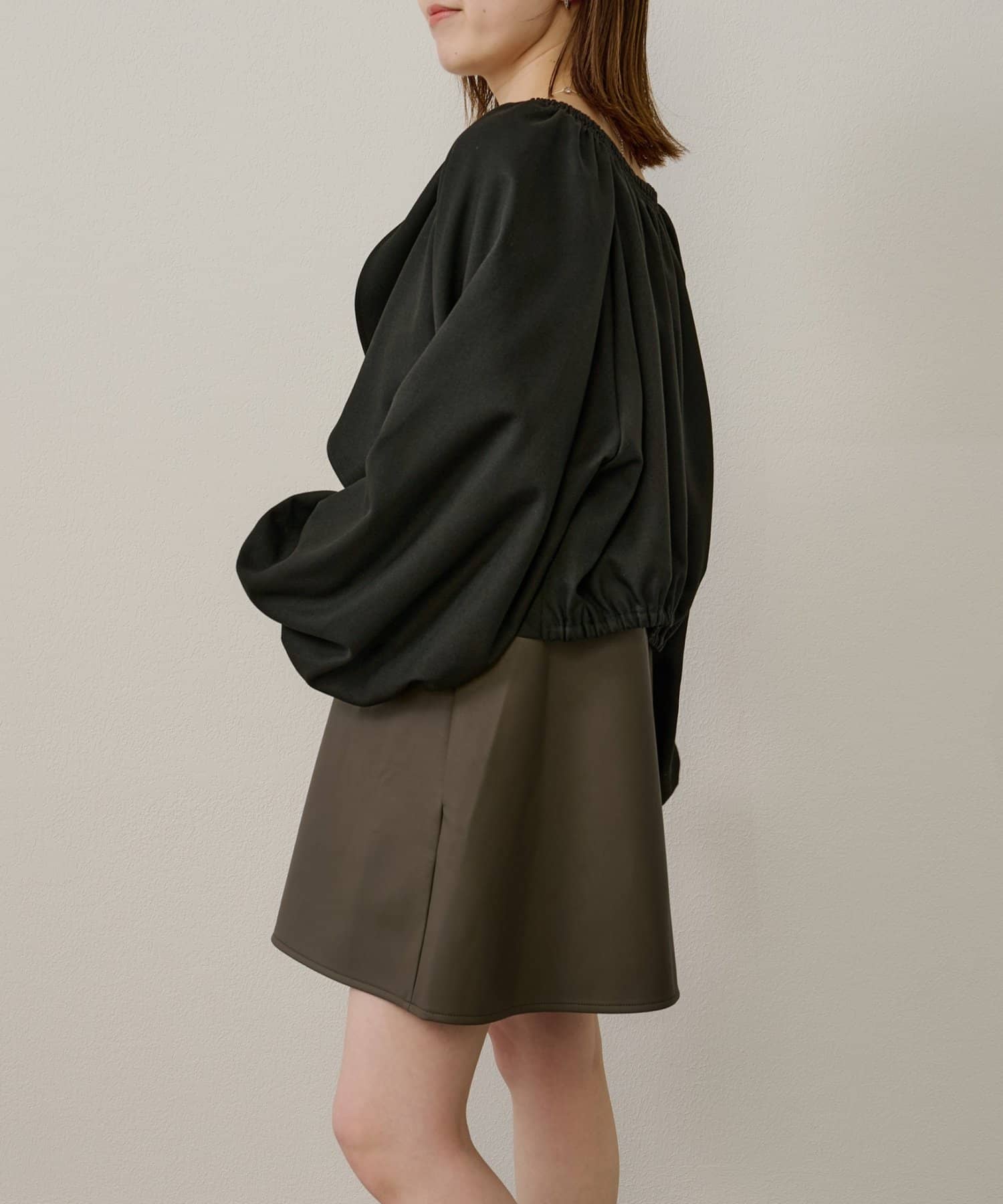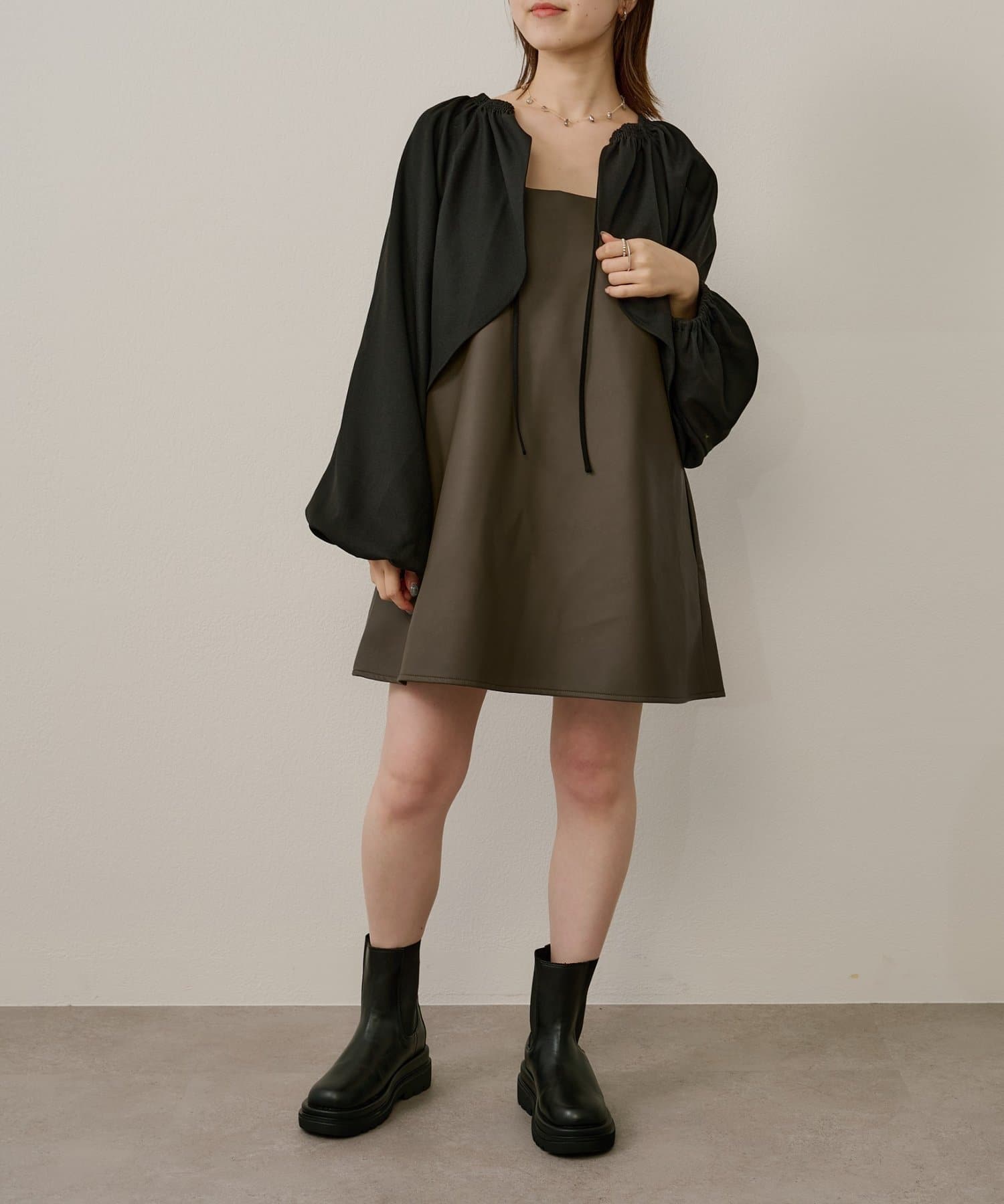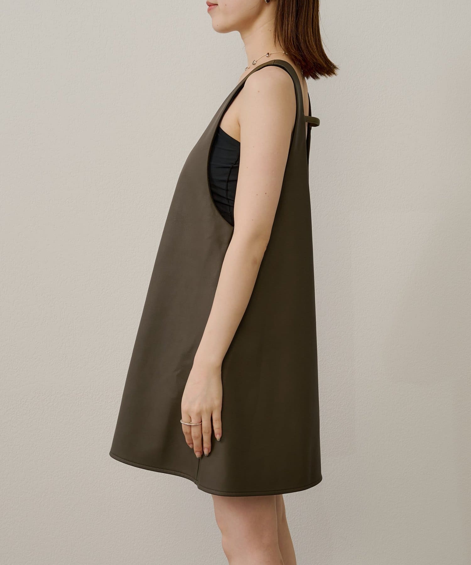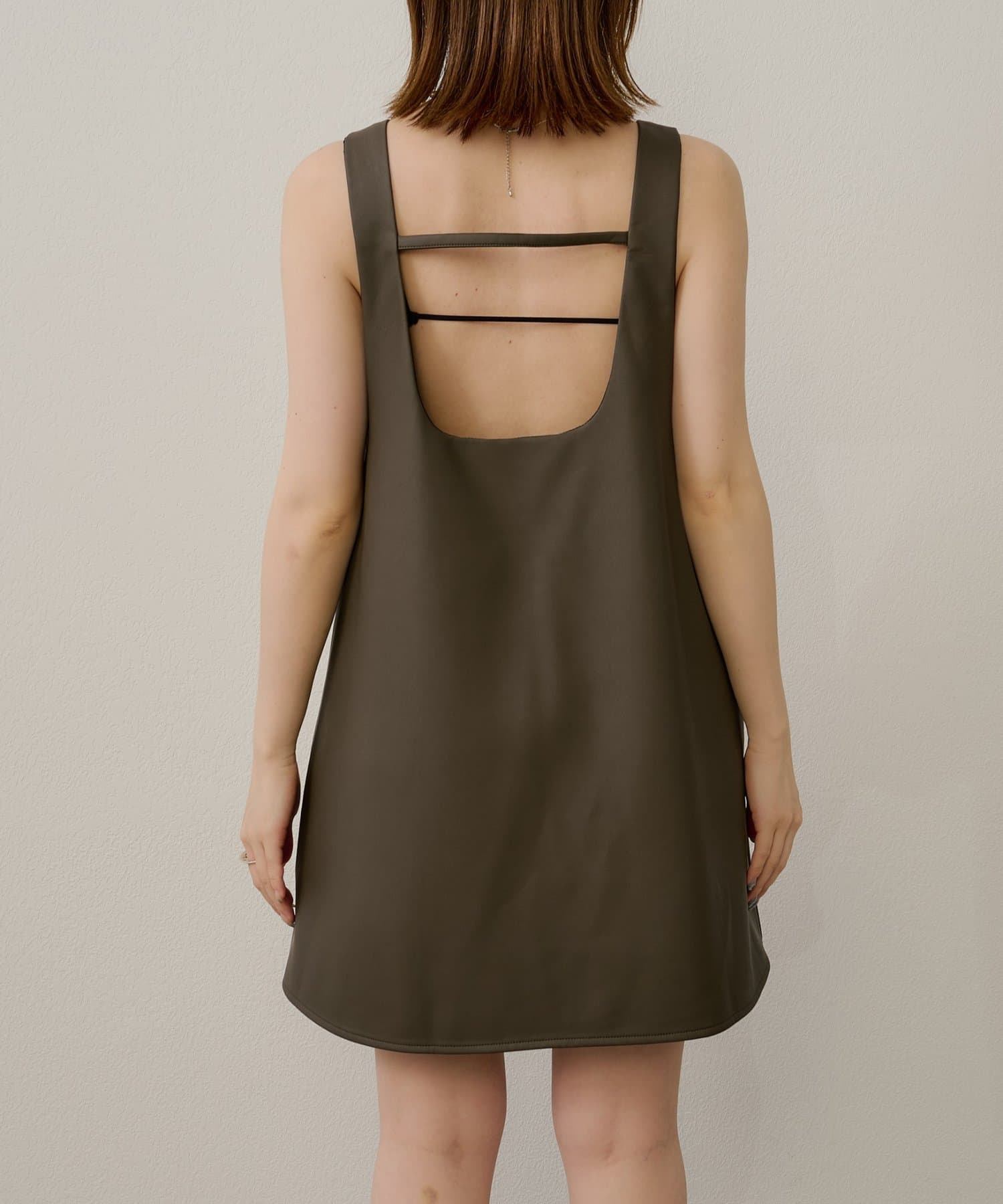・鎖骨のラインを綺麗に魅せてくれるスクエアネックデザイン。