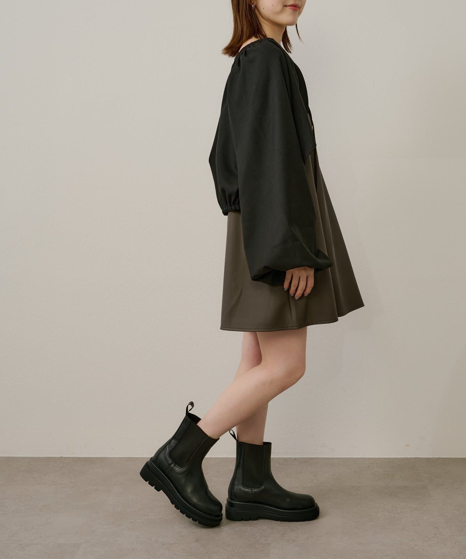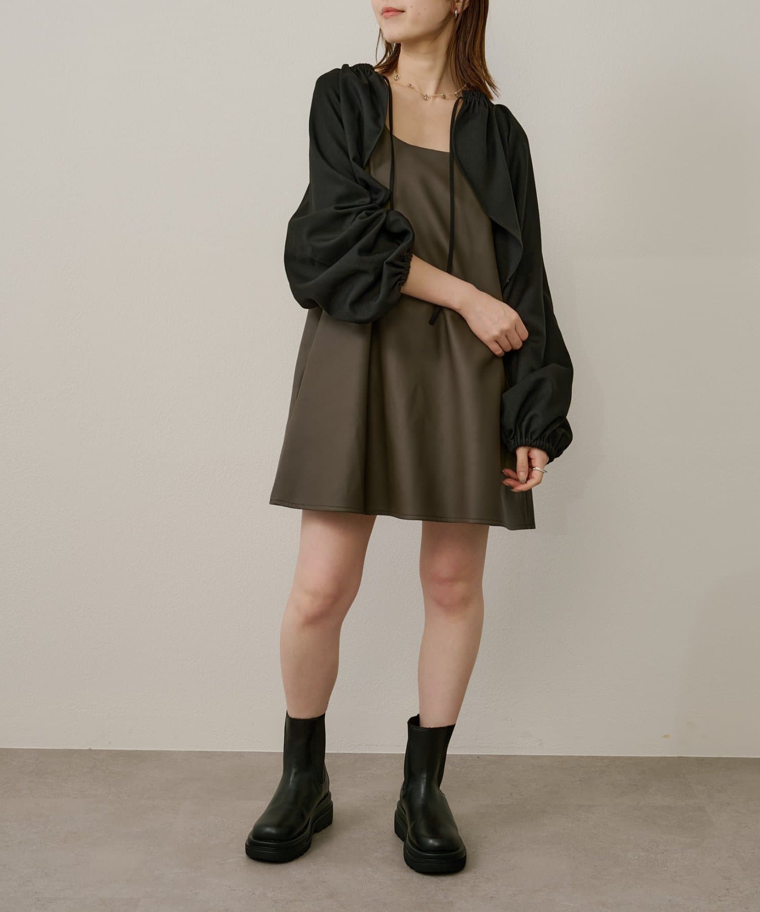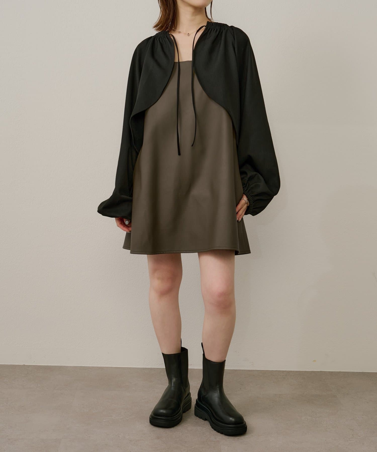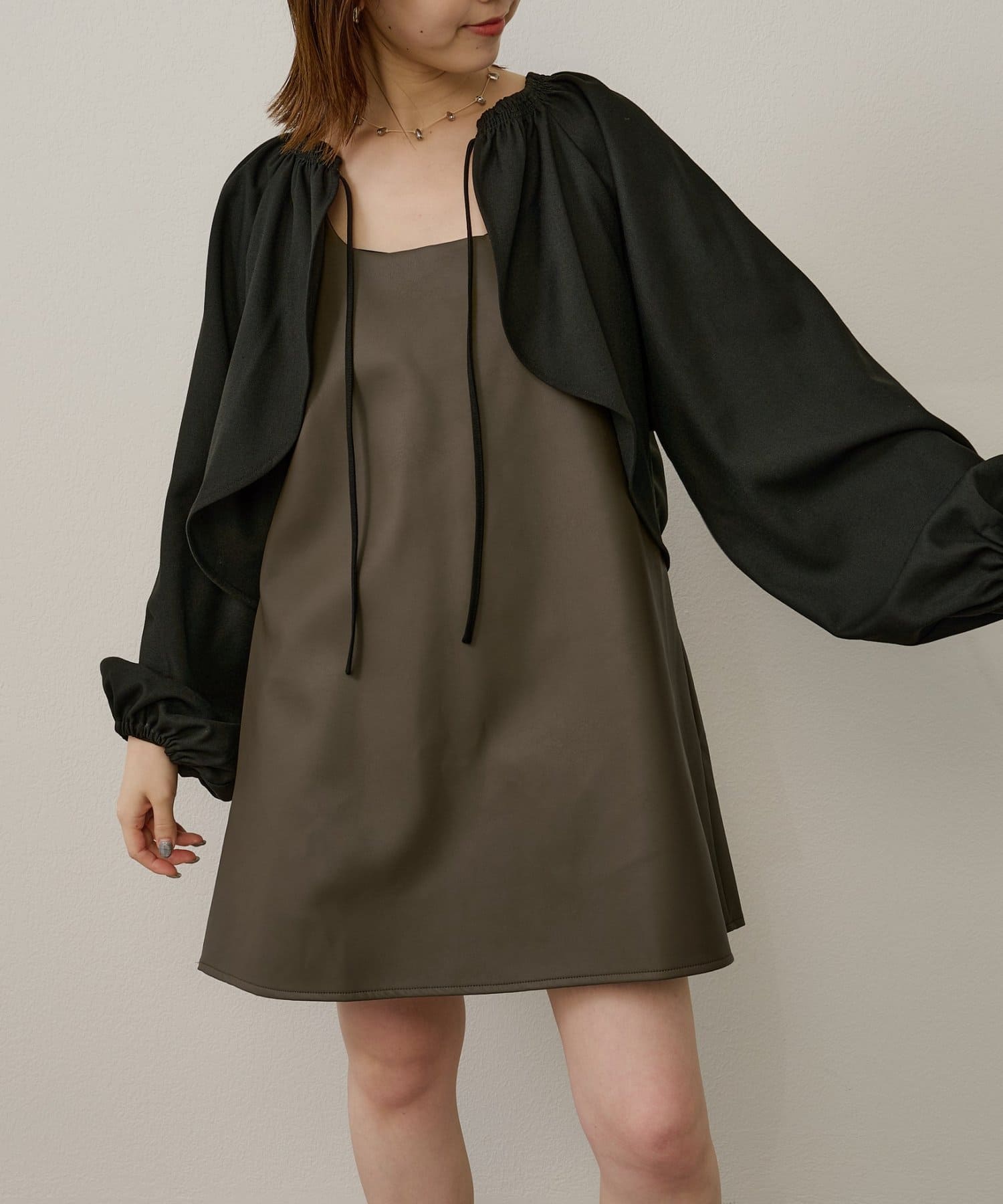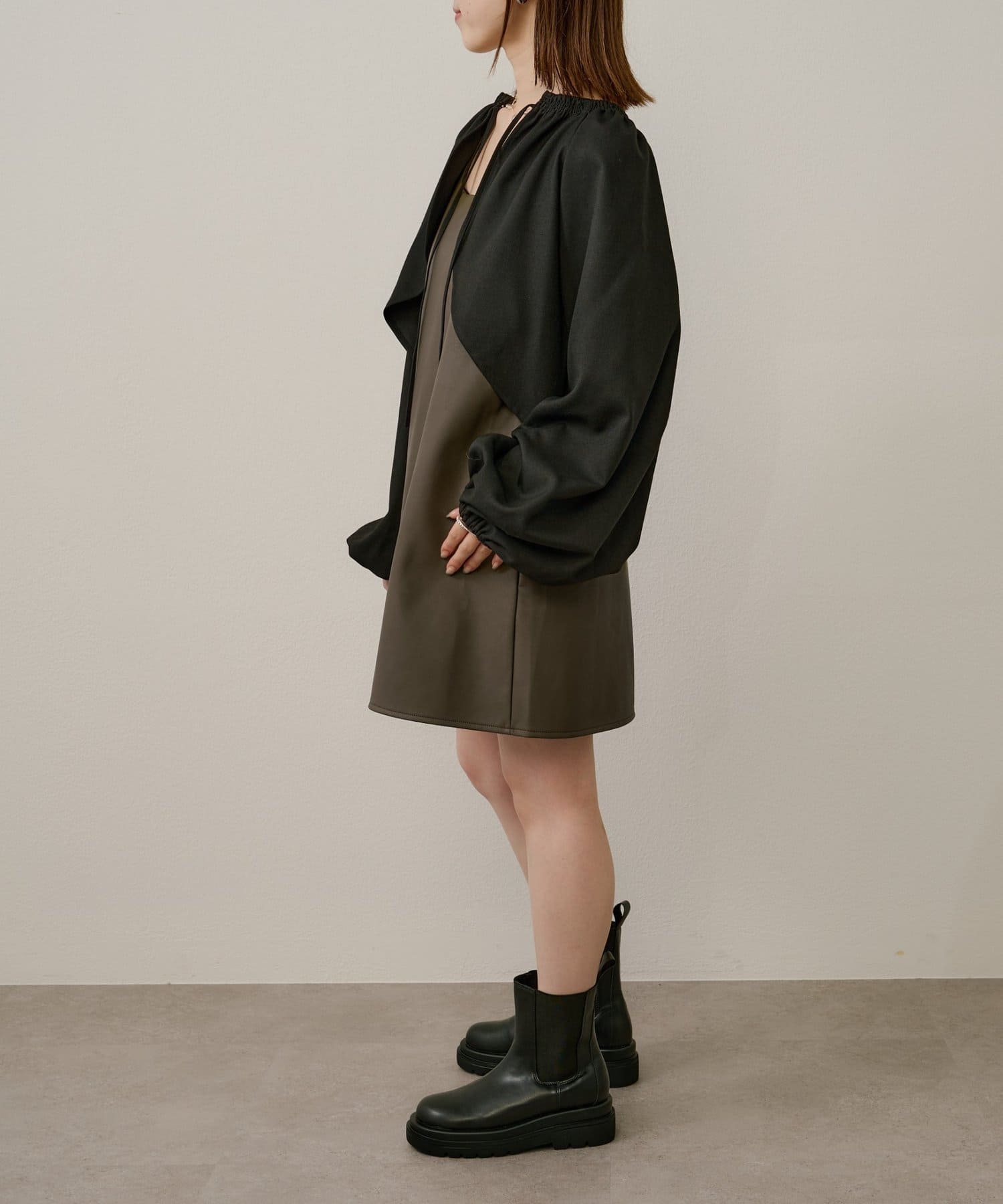 ・鎖骨のラインを綺麗に魅せてくれるスクエアネックデザイン。