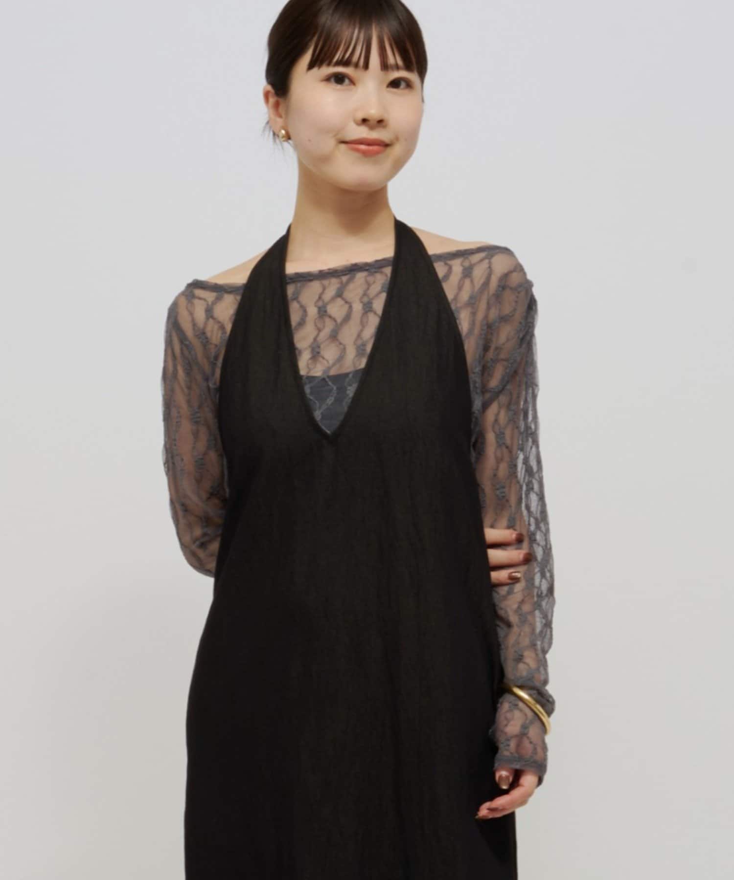 ・トレンドライクなホルターネックデザインがスタイリングのポイントになります。