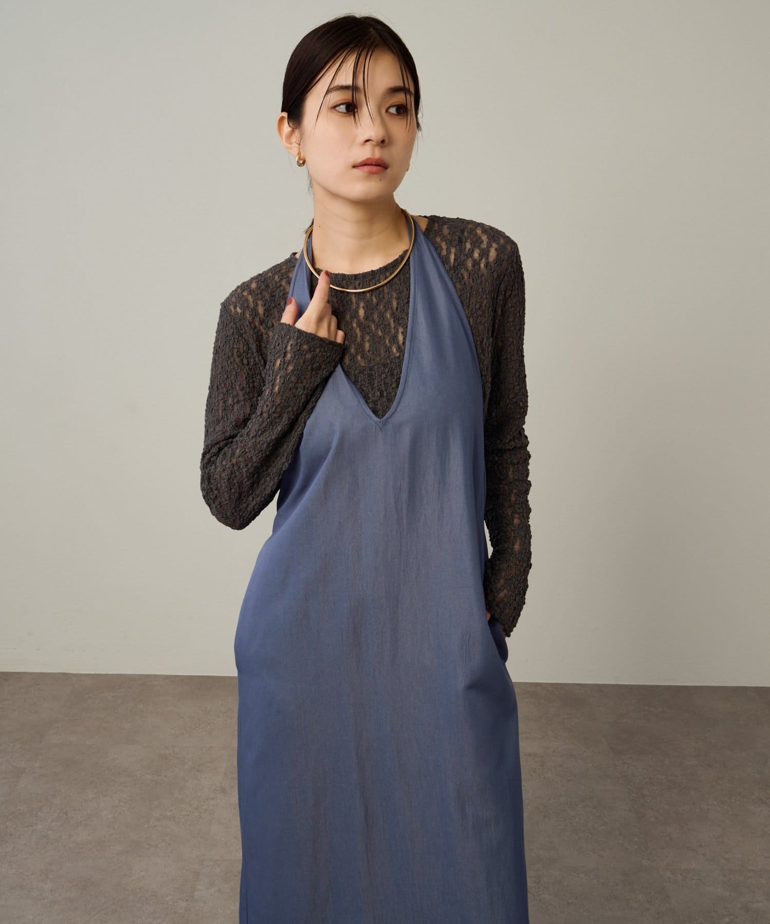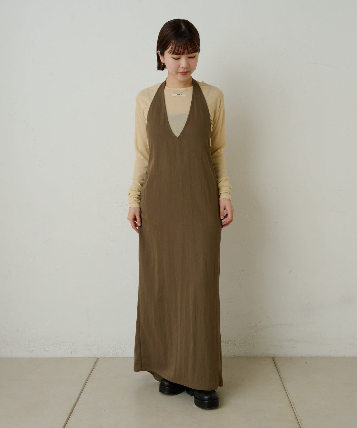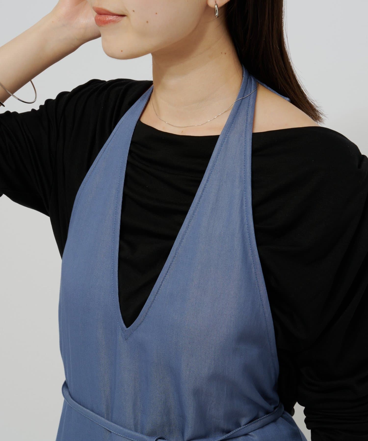 ・トレンドライクなホルターネックデザインがスタイリングのポイントになります。