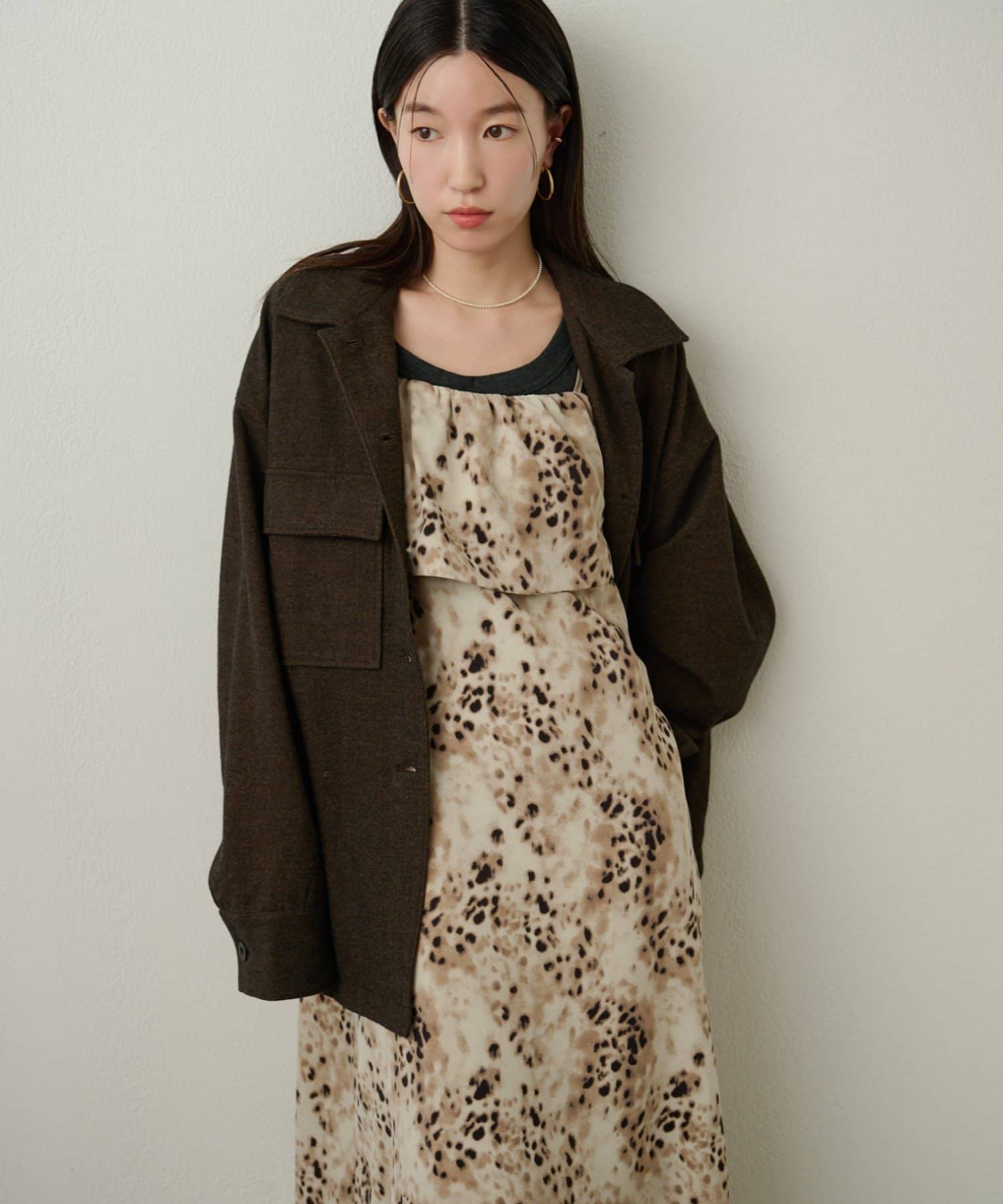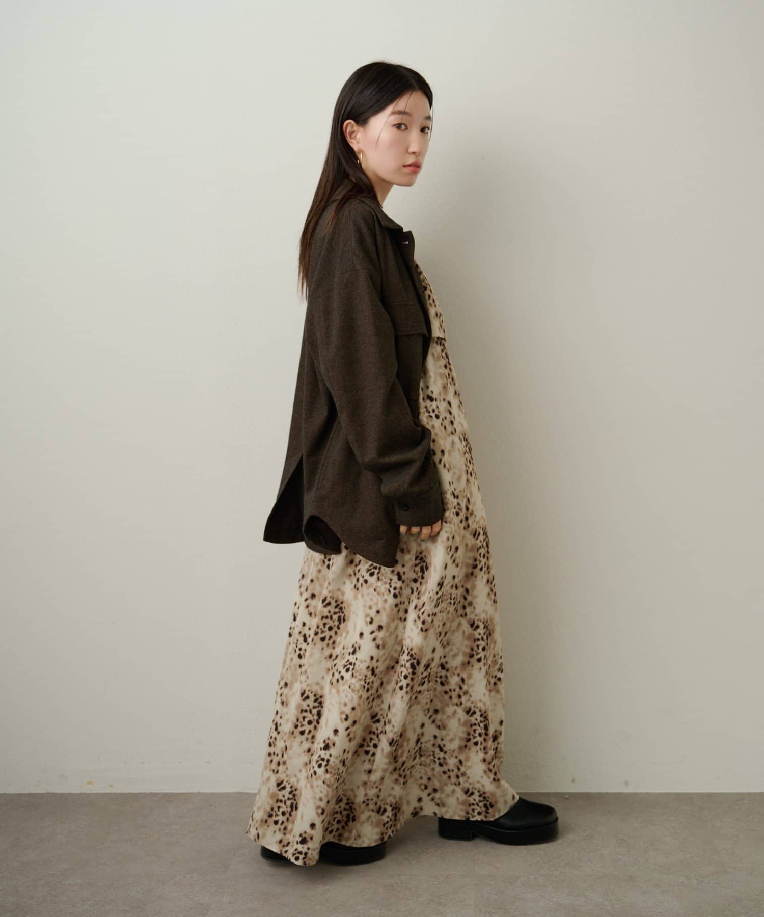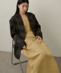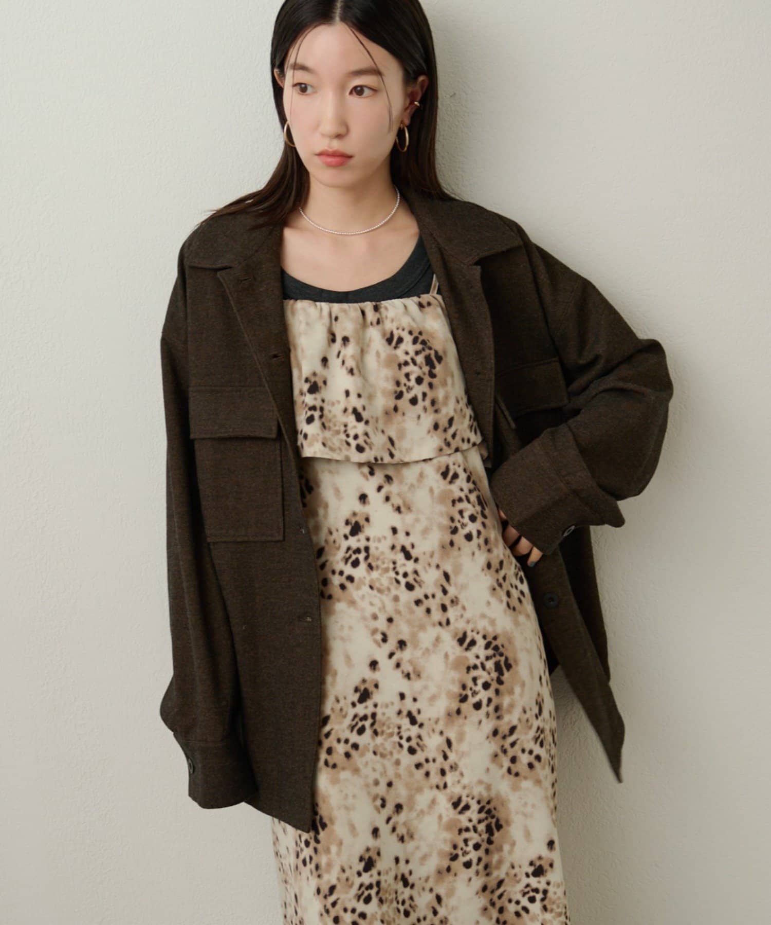 ・目を惹く女性らしいニュアンス感のあるドット柄と、表面感のある素材が秋らしいベージュとブラウンの3色展開。