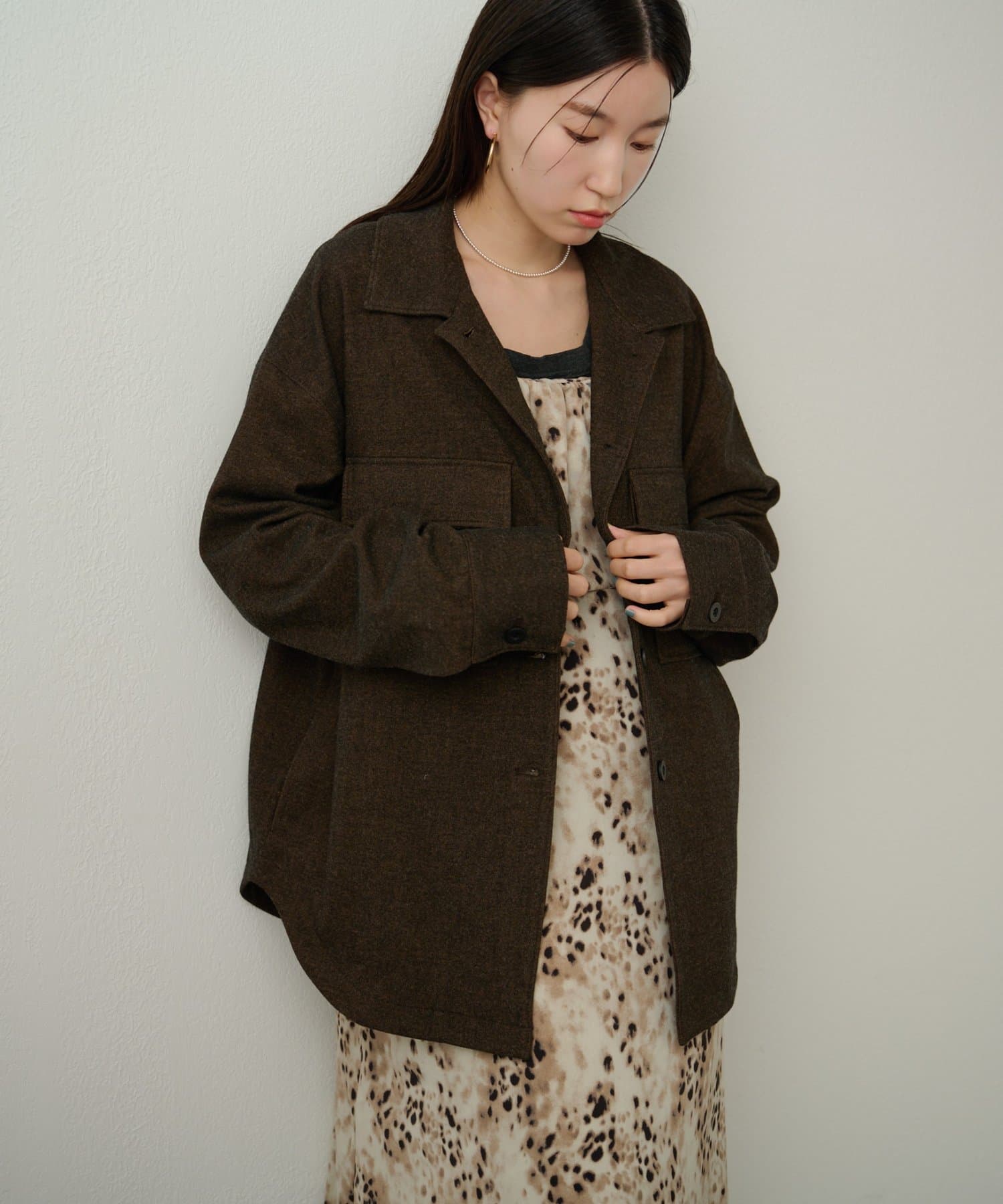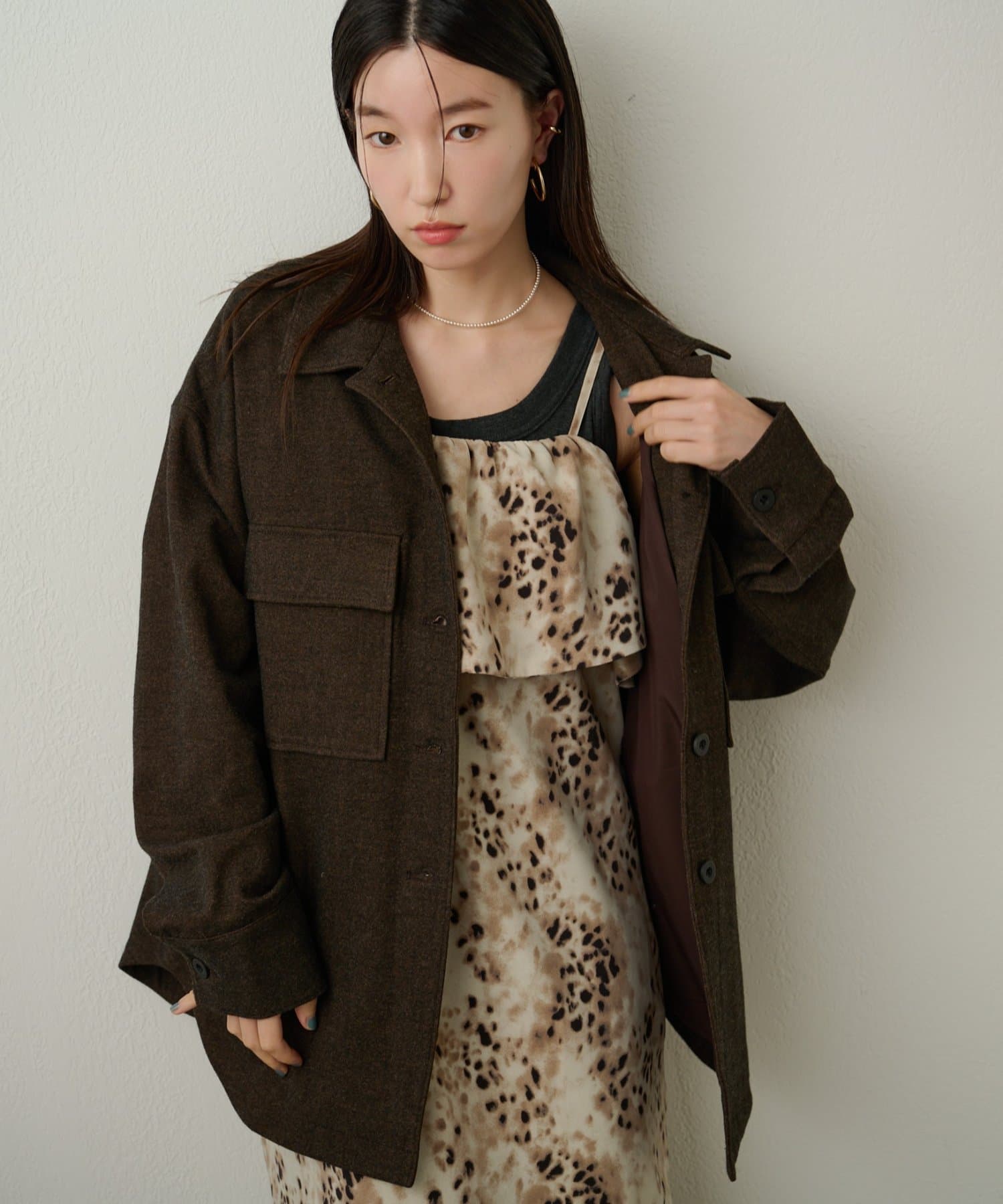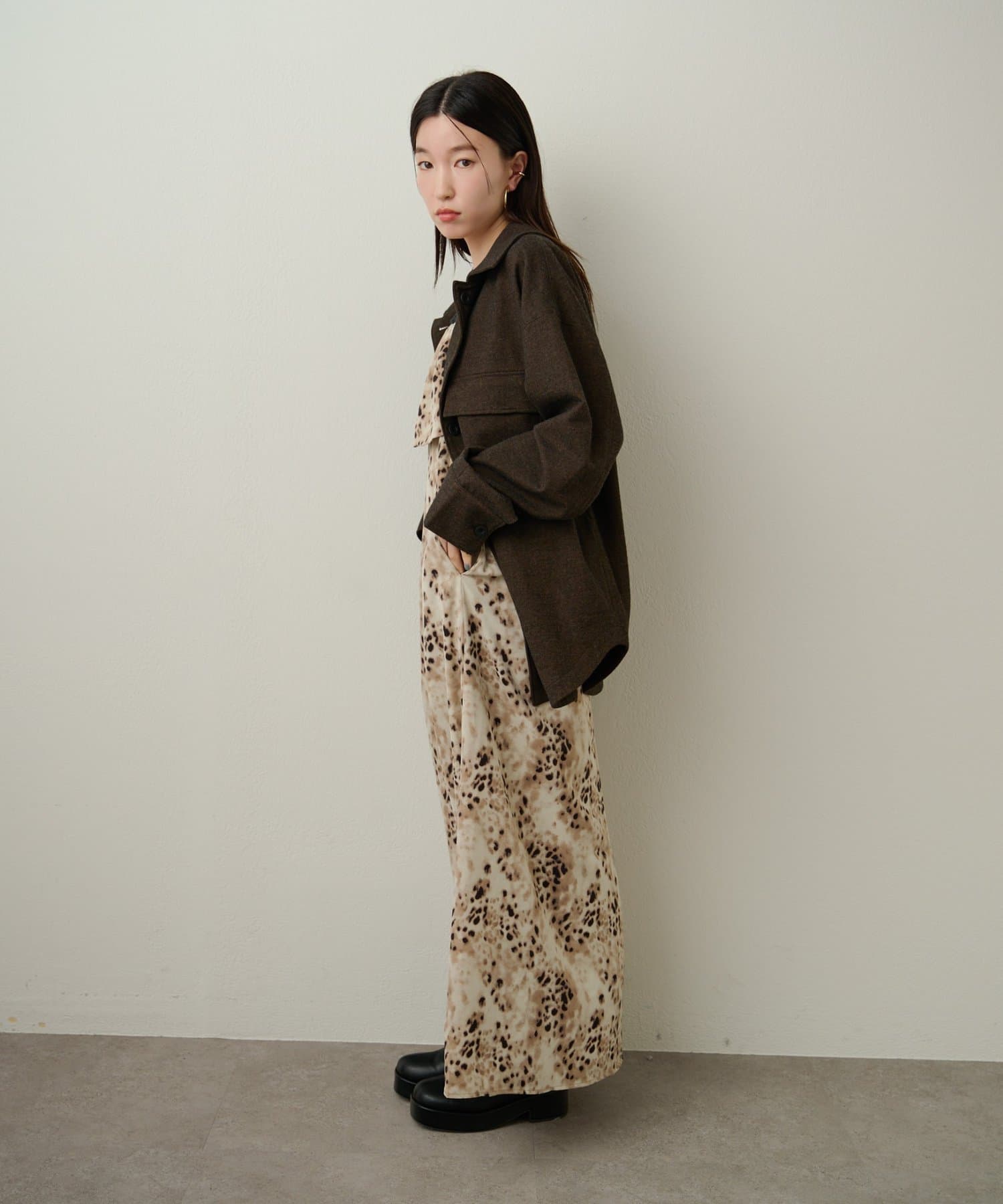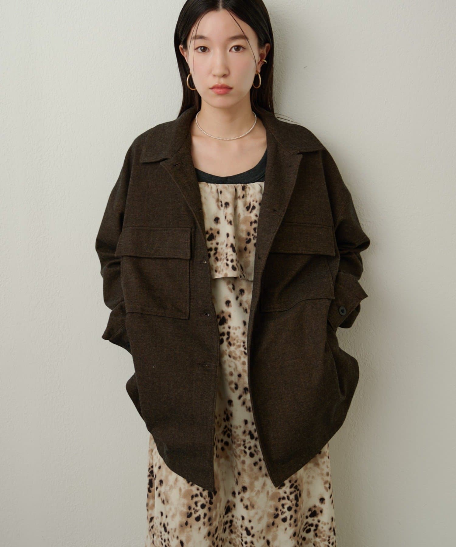 ・目を惹く女性らしいニュアンス感のあるドット柄と、表面感のある素材が秋らしいベージュとブラウンの3色展開。
