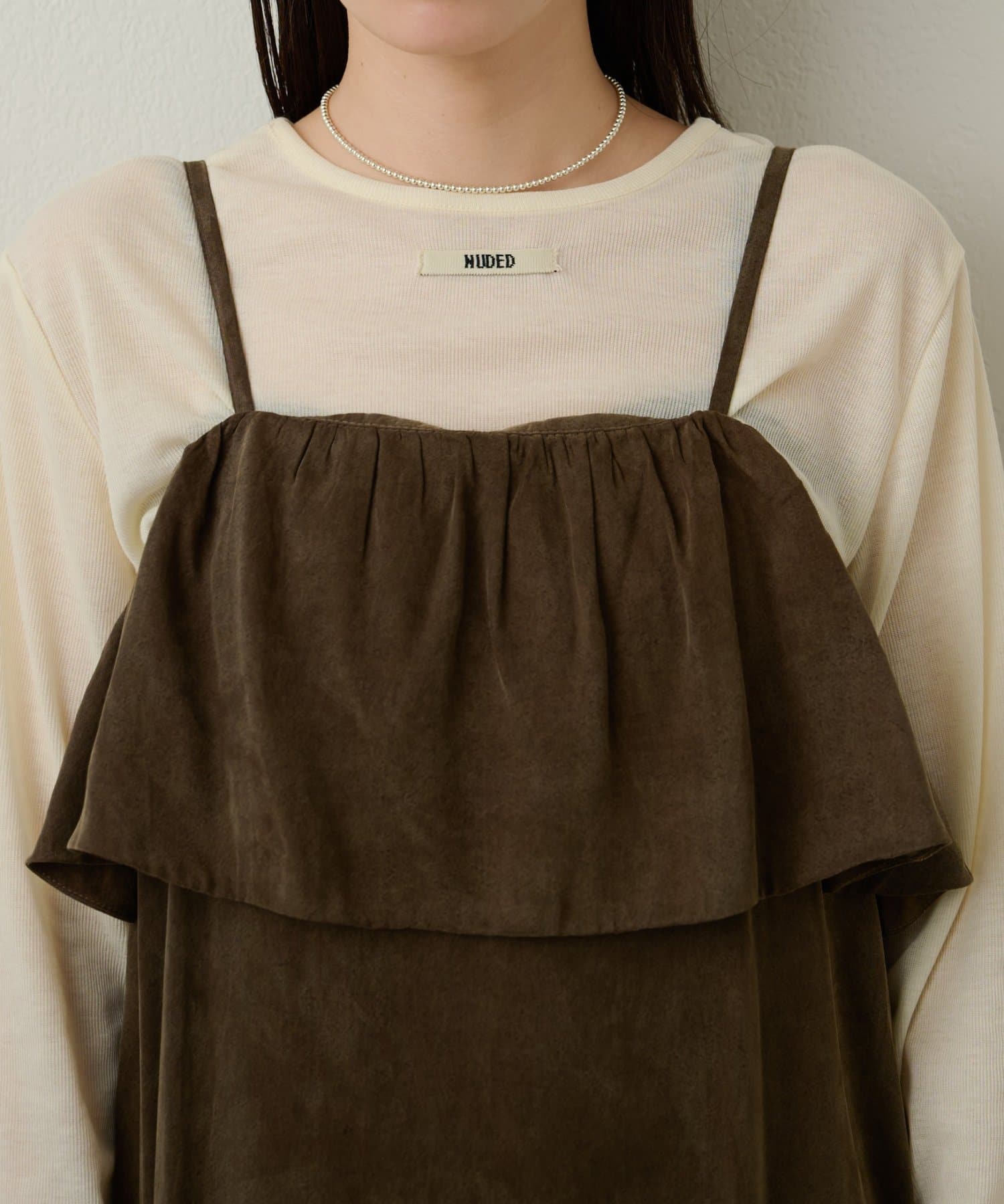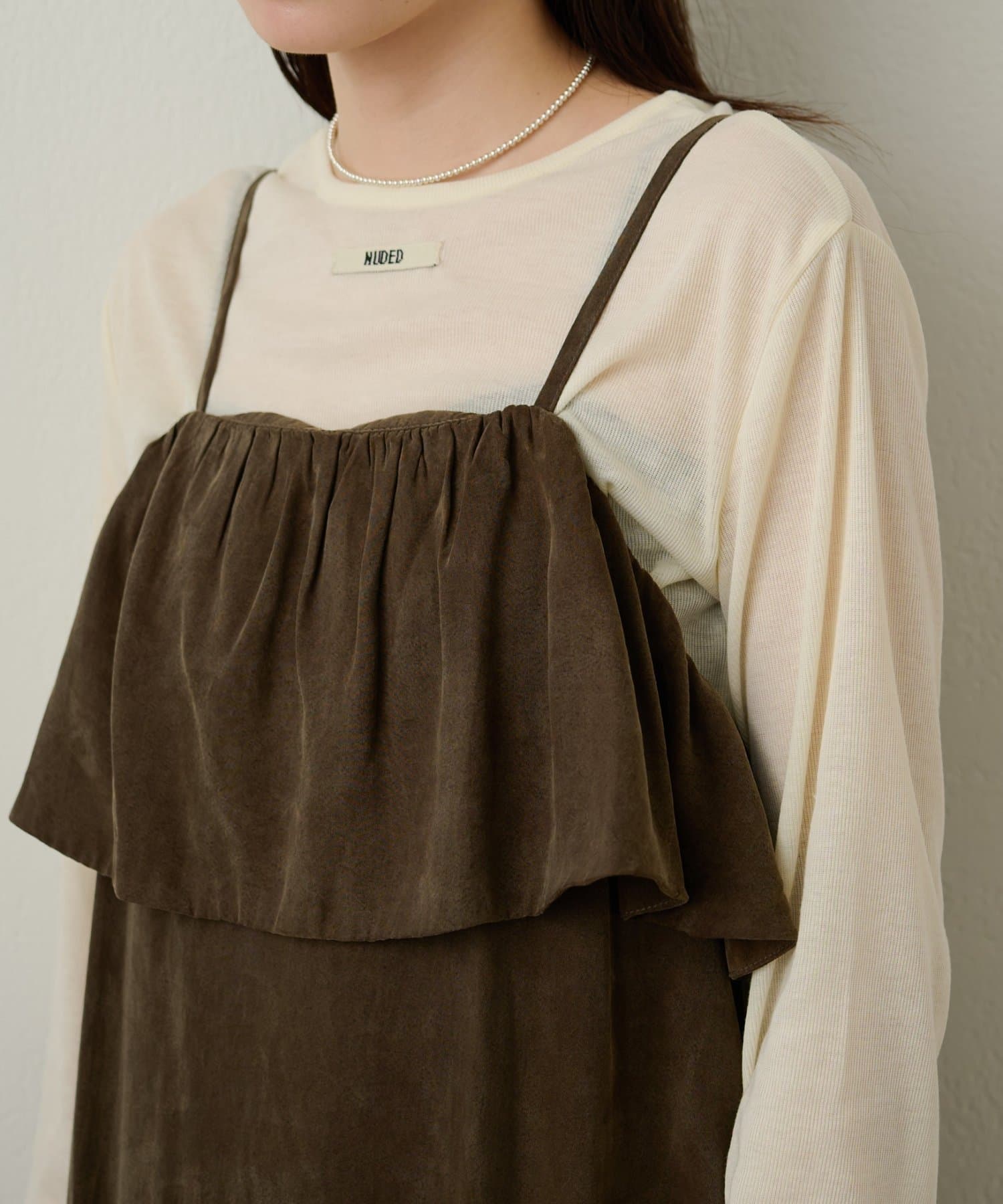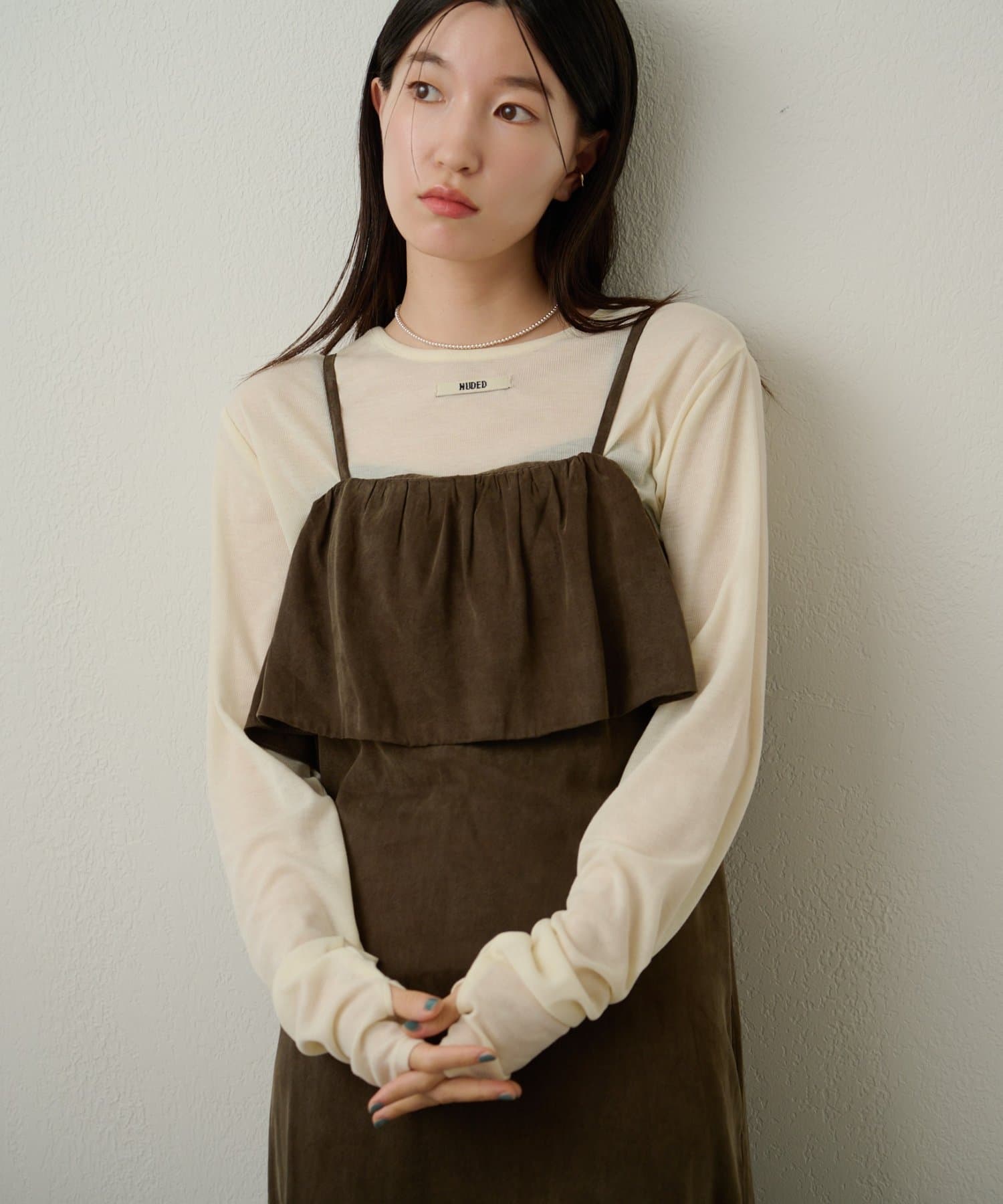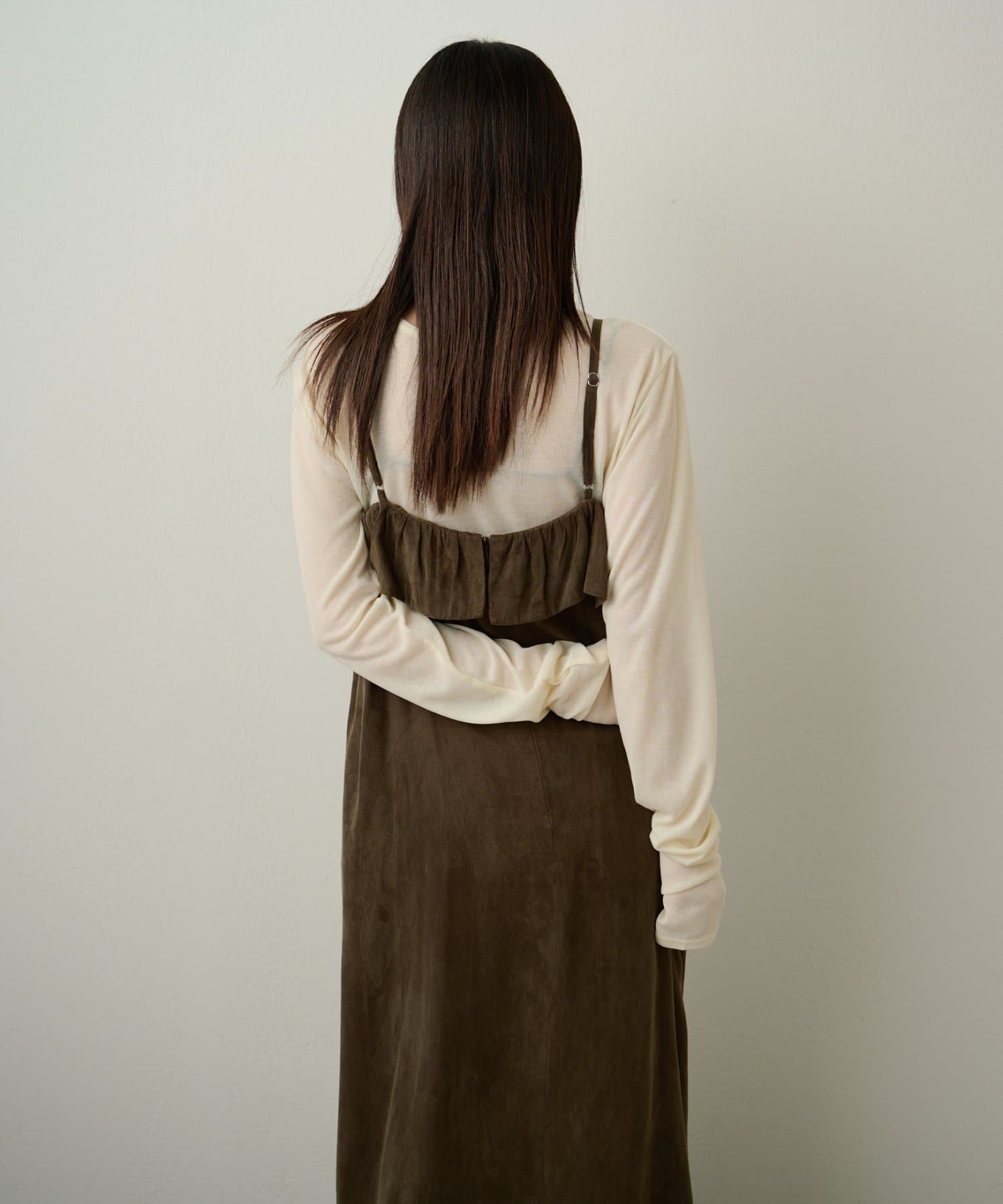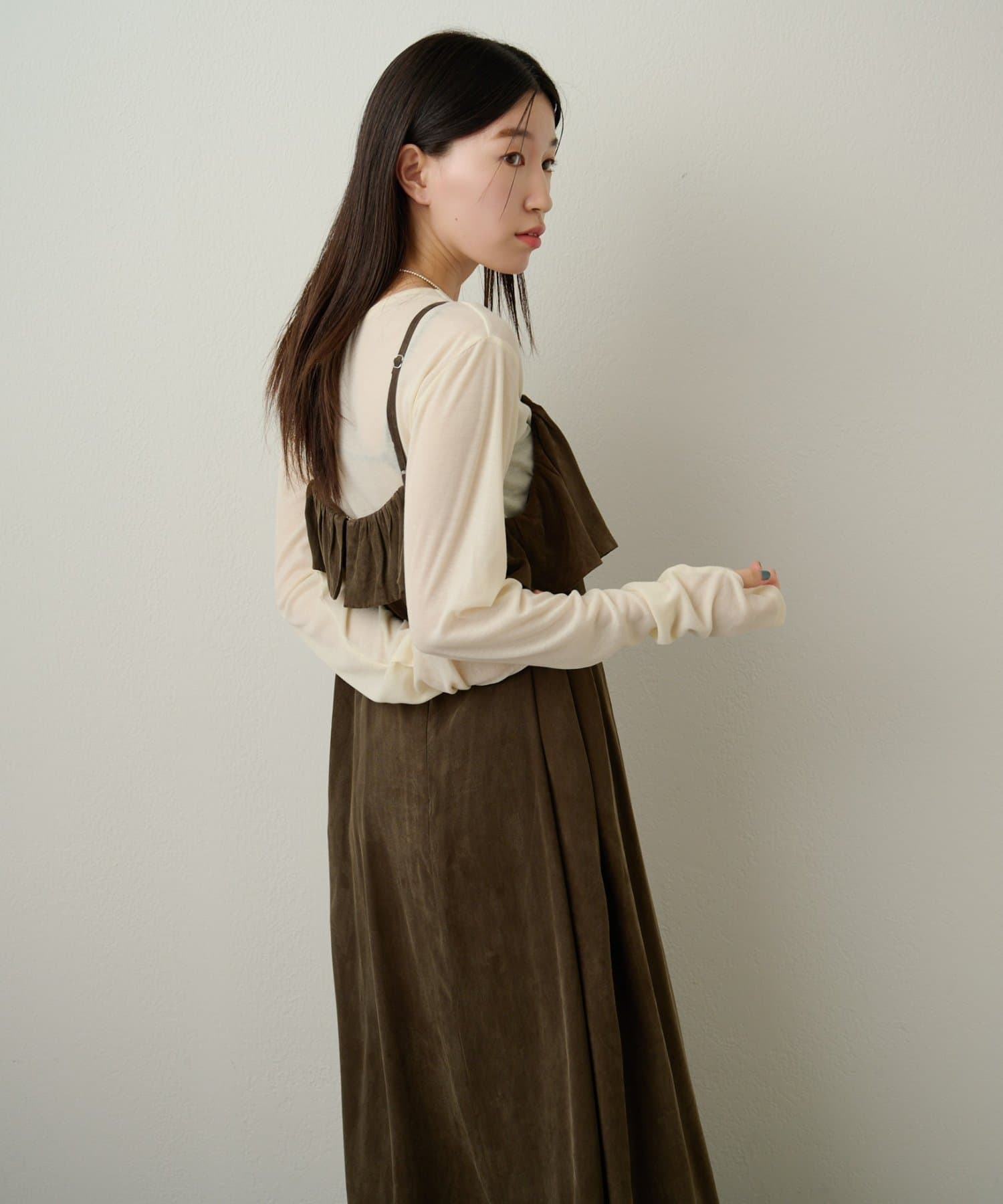 ・落ち感のあるフリルなので上からジャケットなど羽織った時ももたつかずすっきり着用できます。