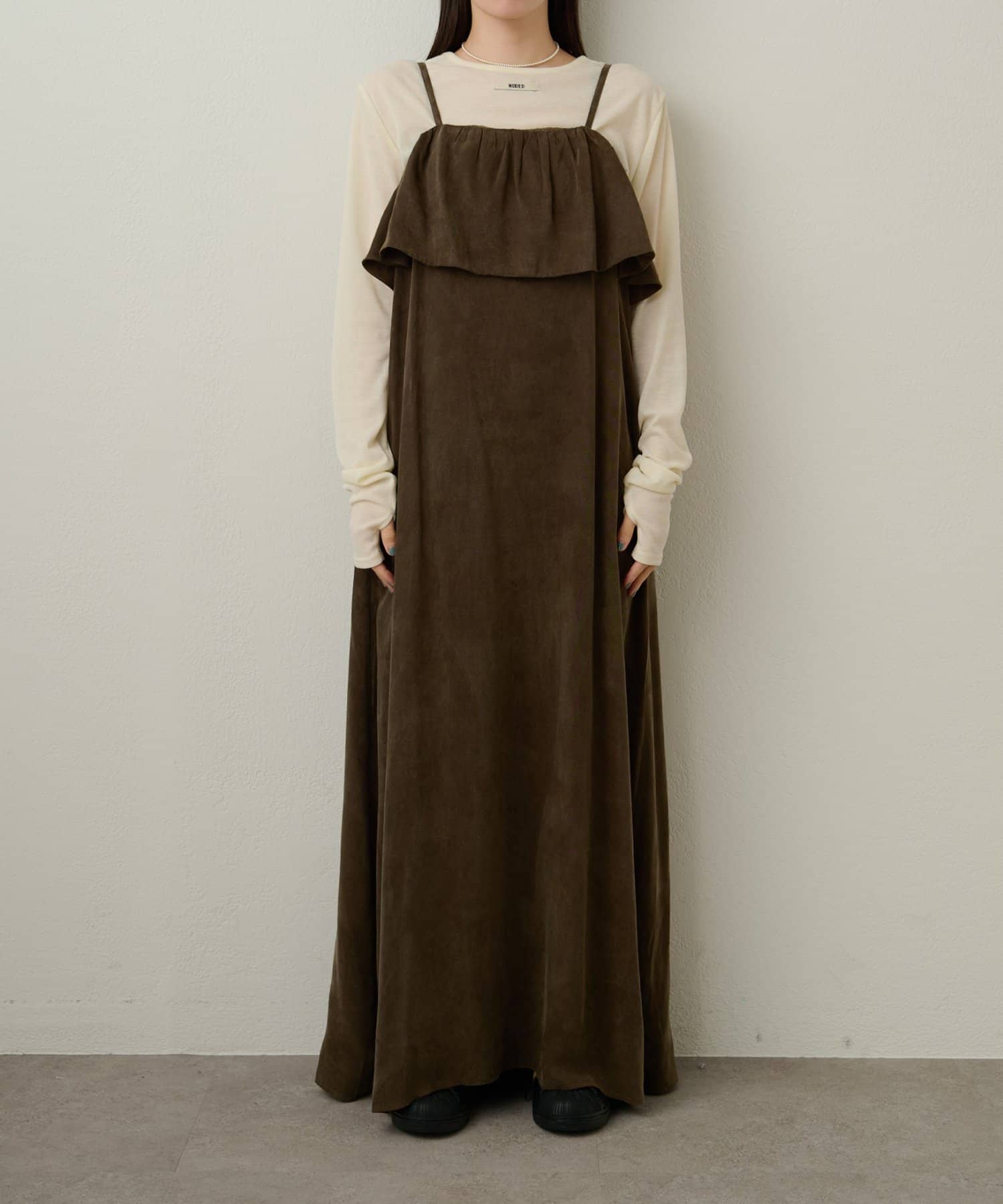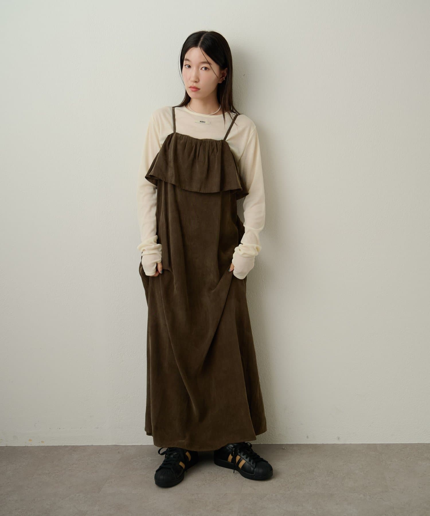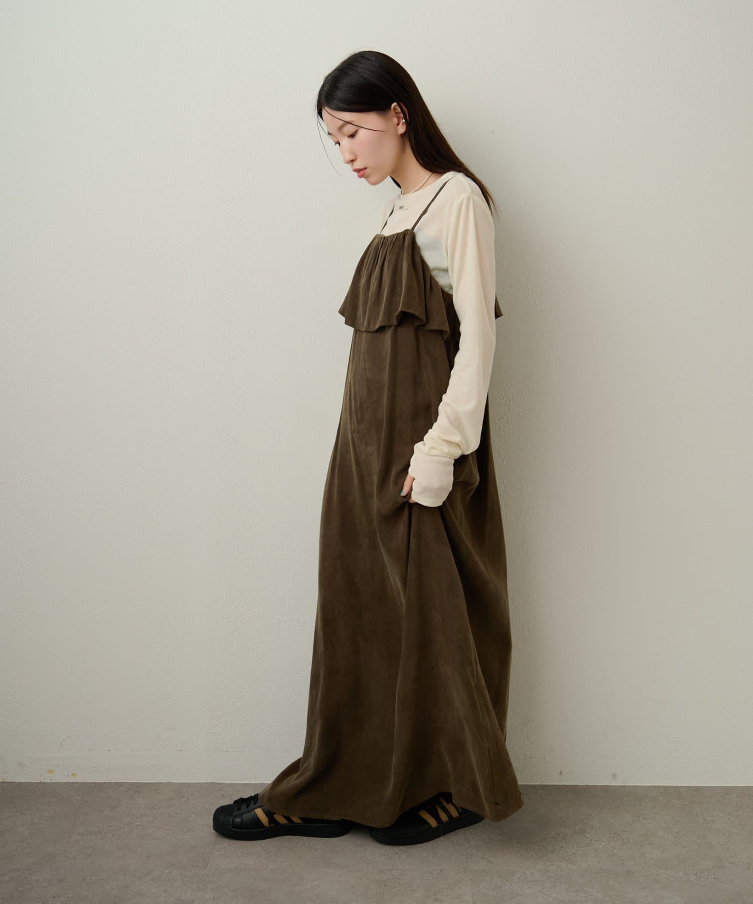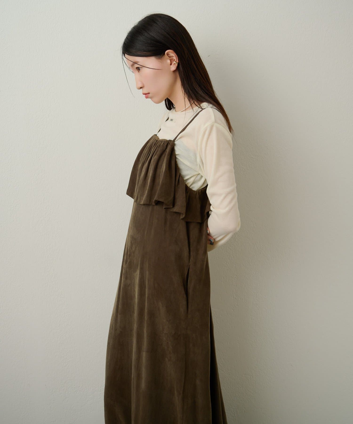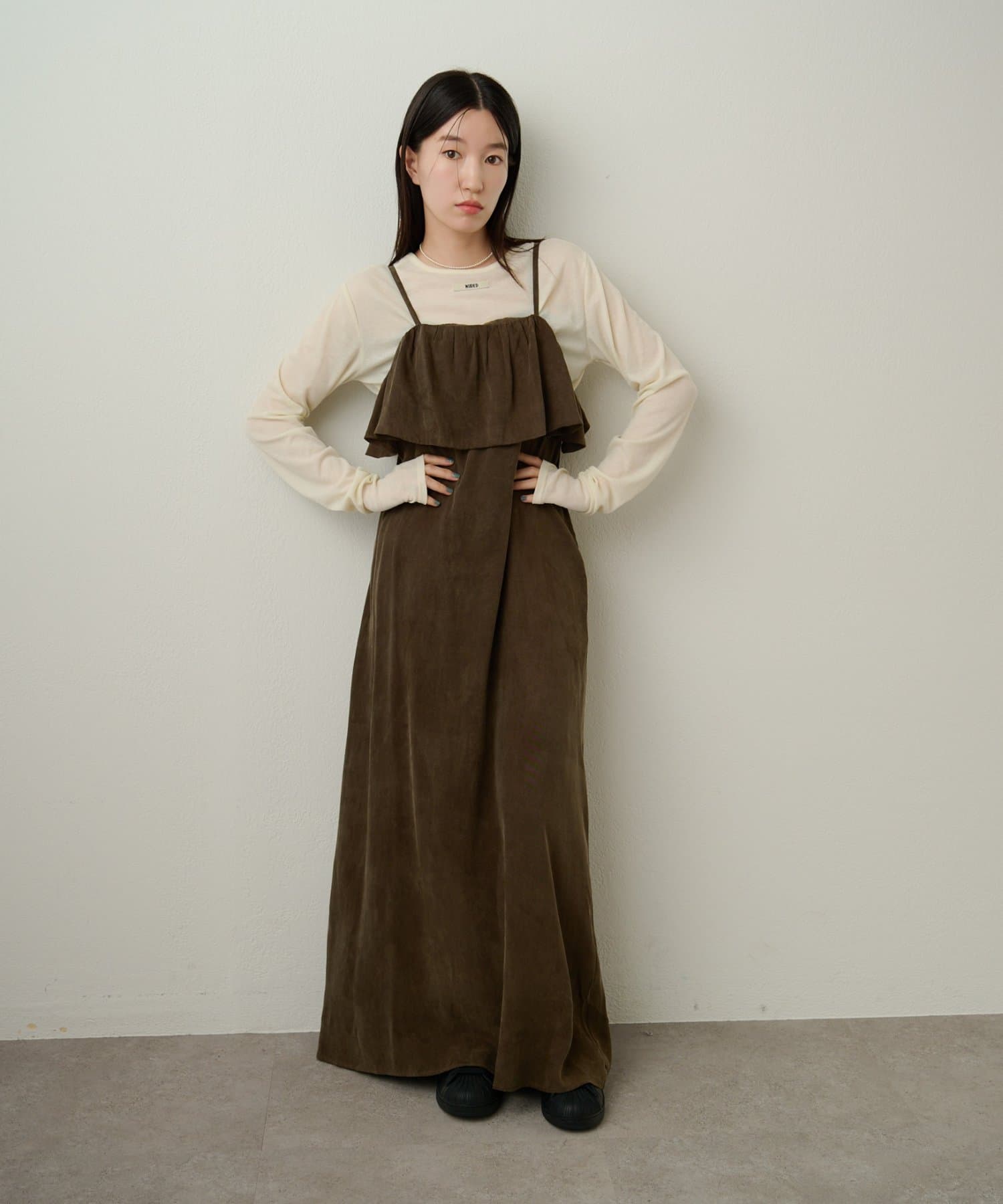 ・落ち感のあるフリルなので上からジャケットなど羽織った時ももたつかずすっきり着用できます。