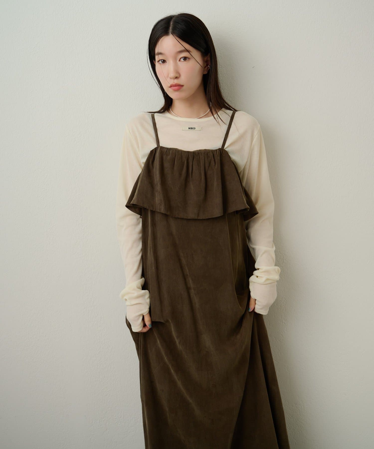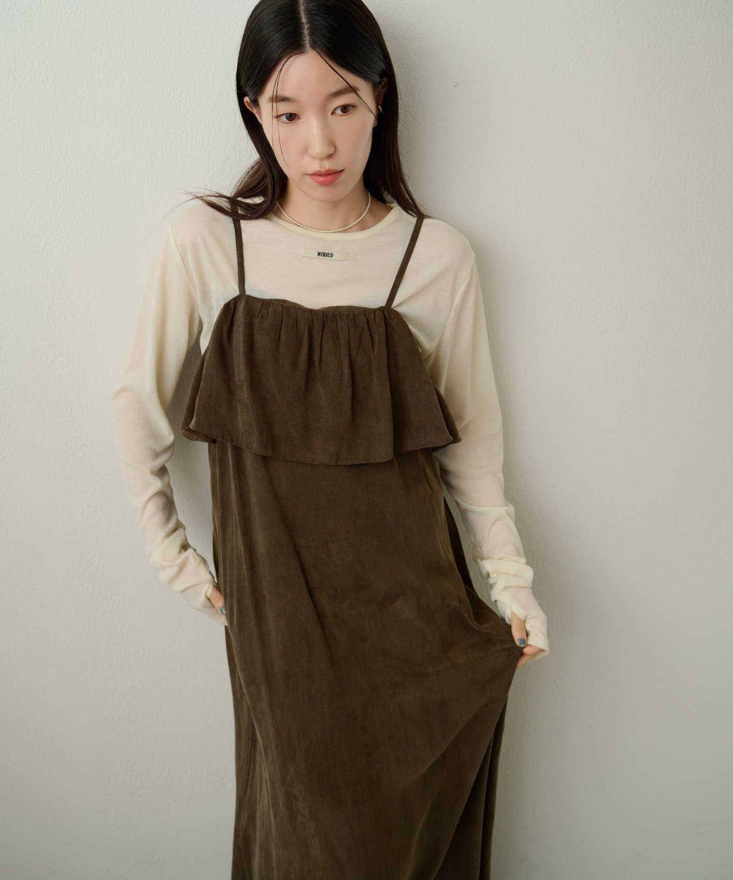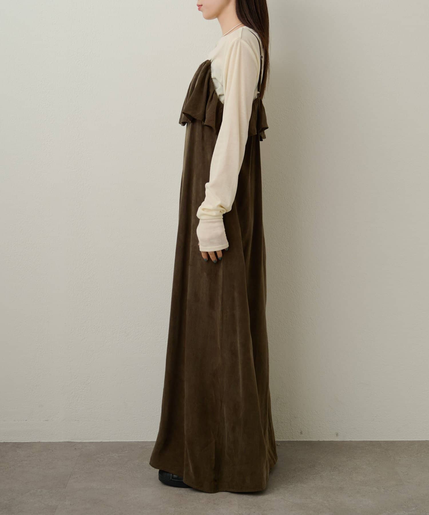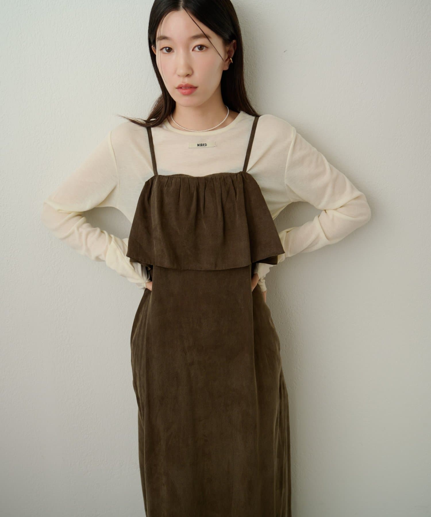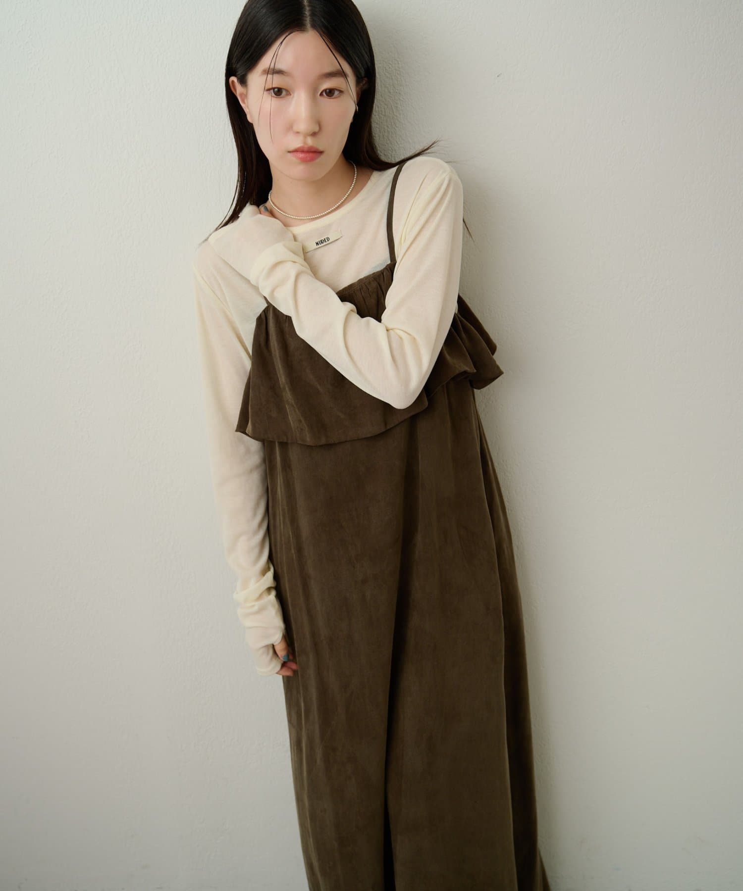 ・落ち感のあるフリルなので上からジャケットなど羽織った時ももたつかずすっきり着用できます。