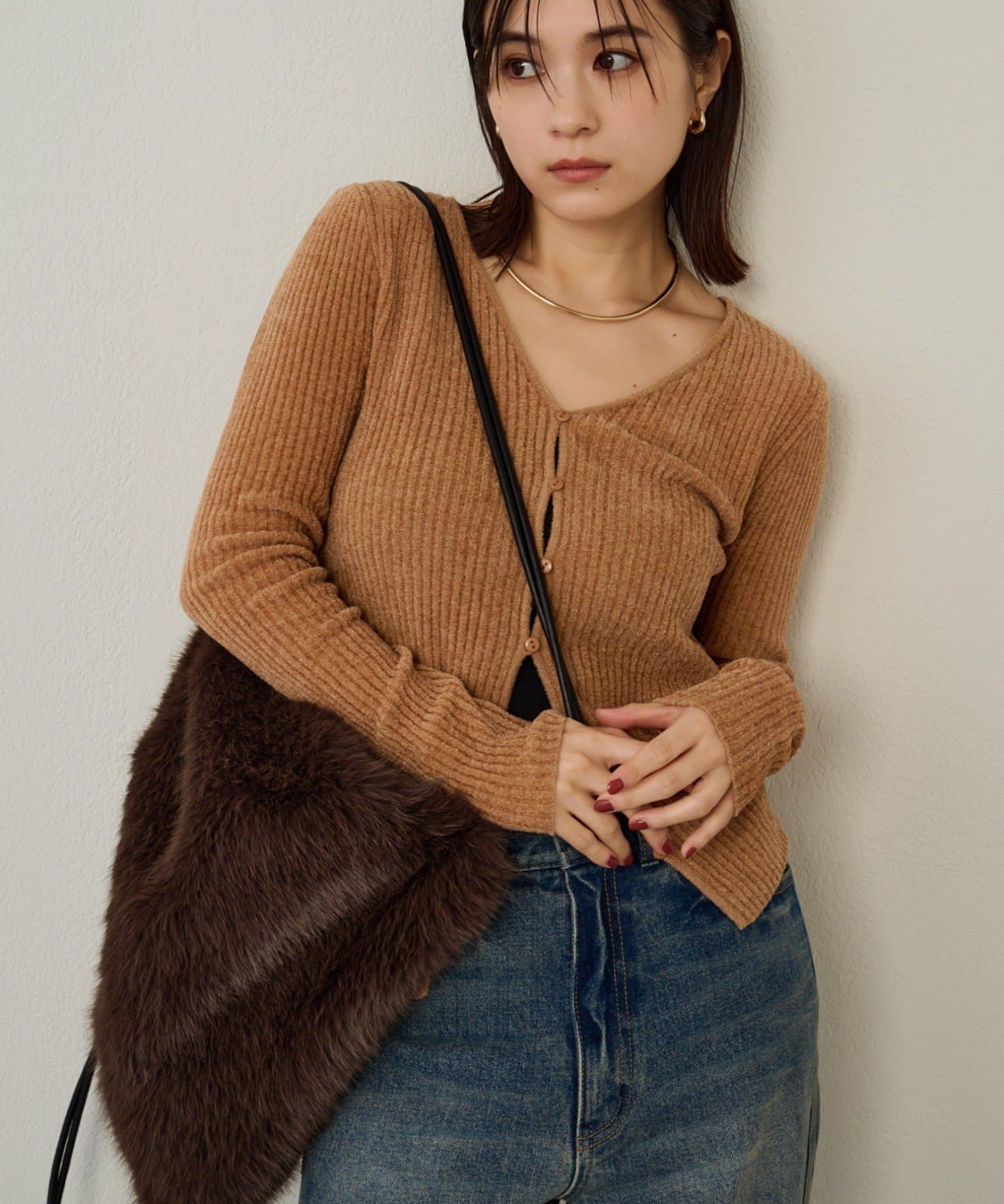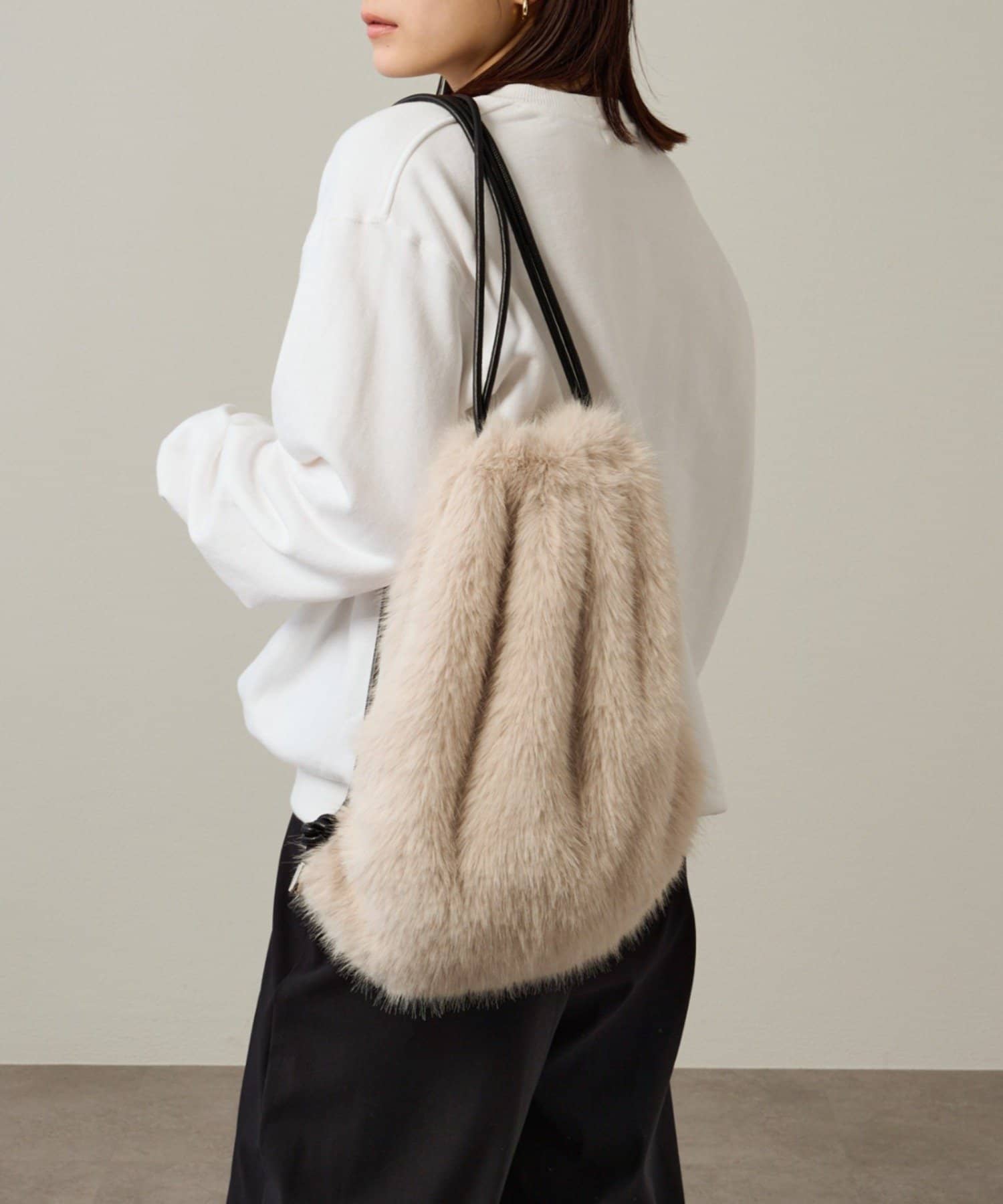 ・ふわふわとした触り心地のファーが上品なナップザック。