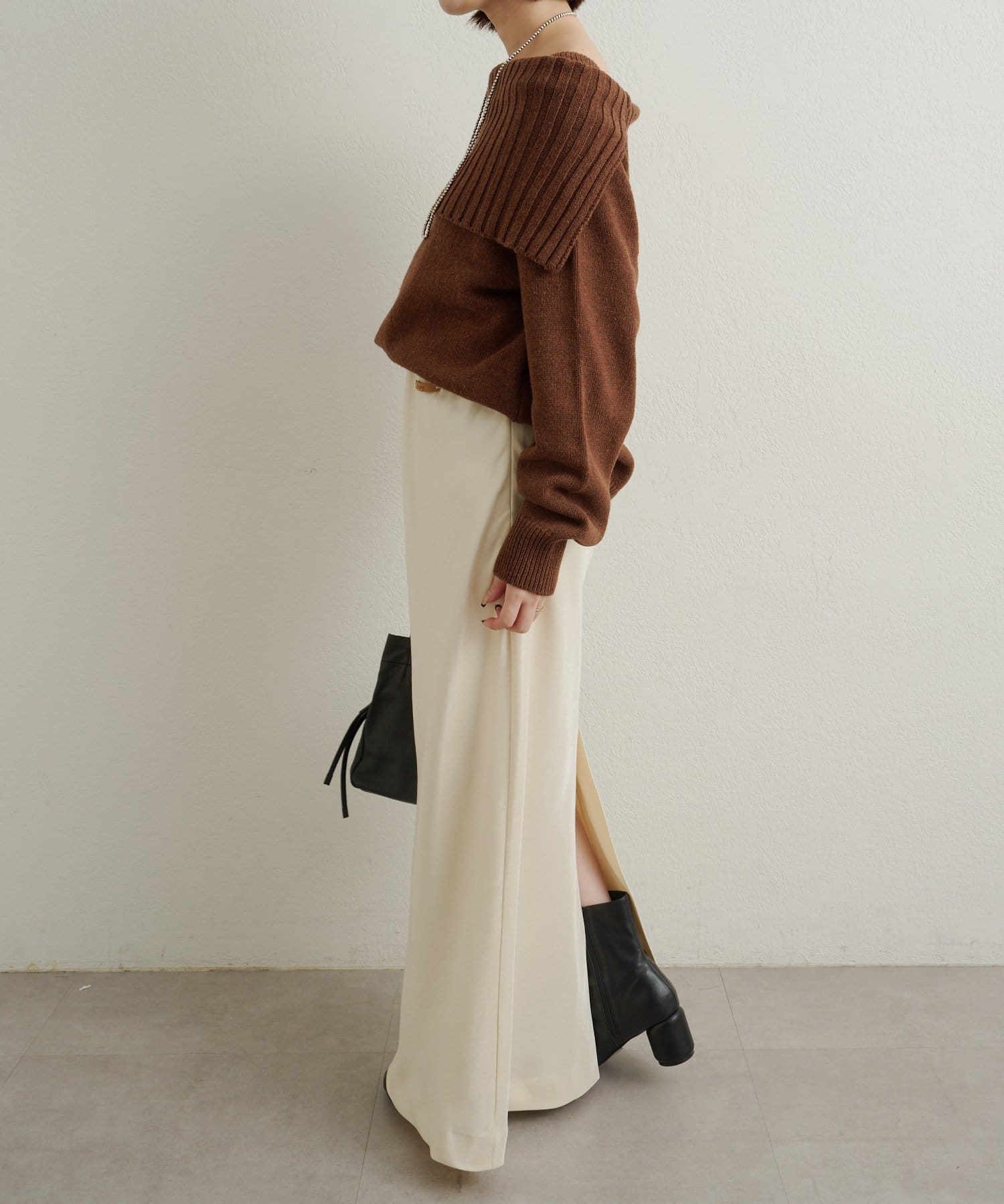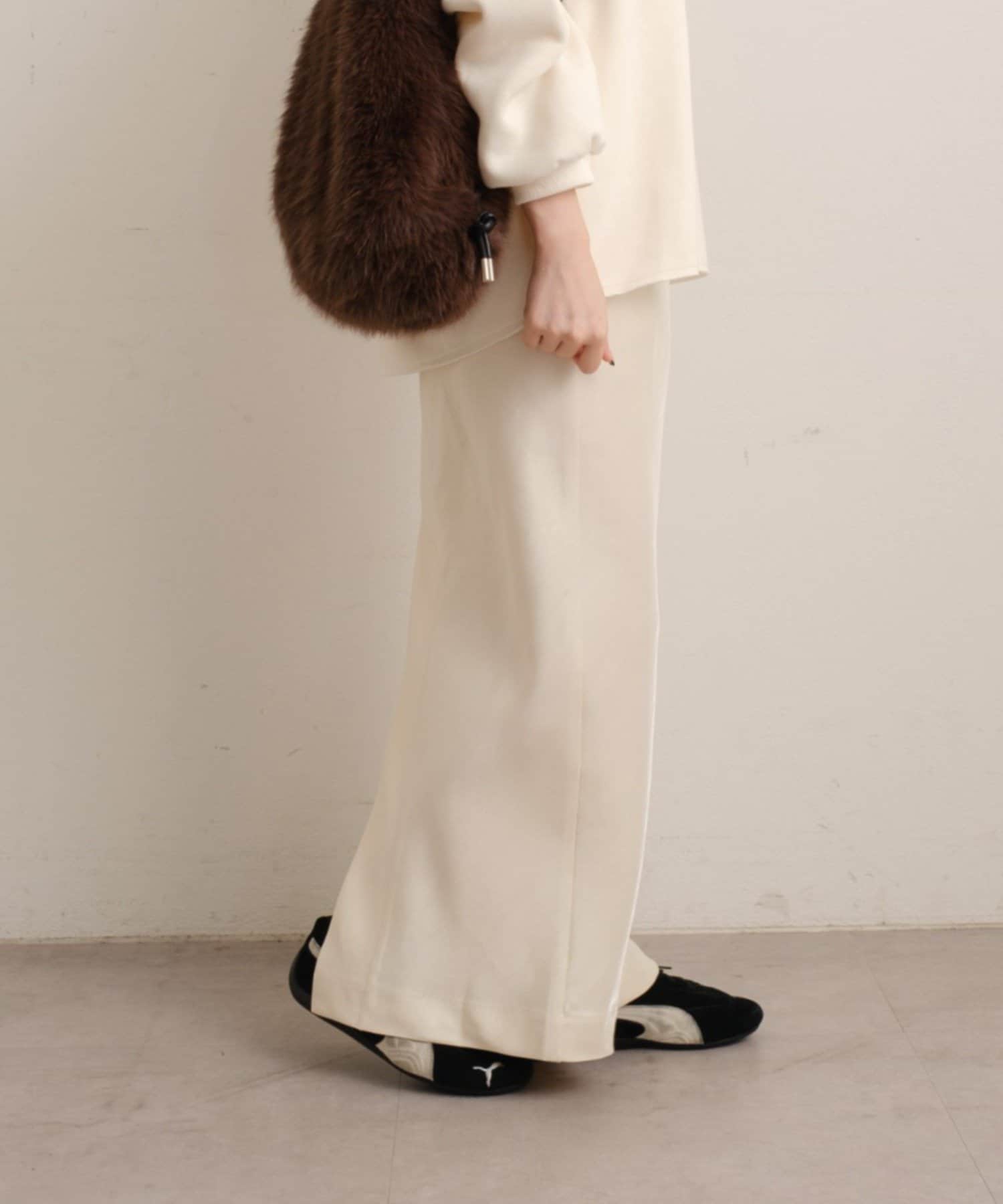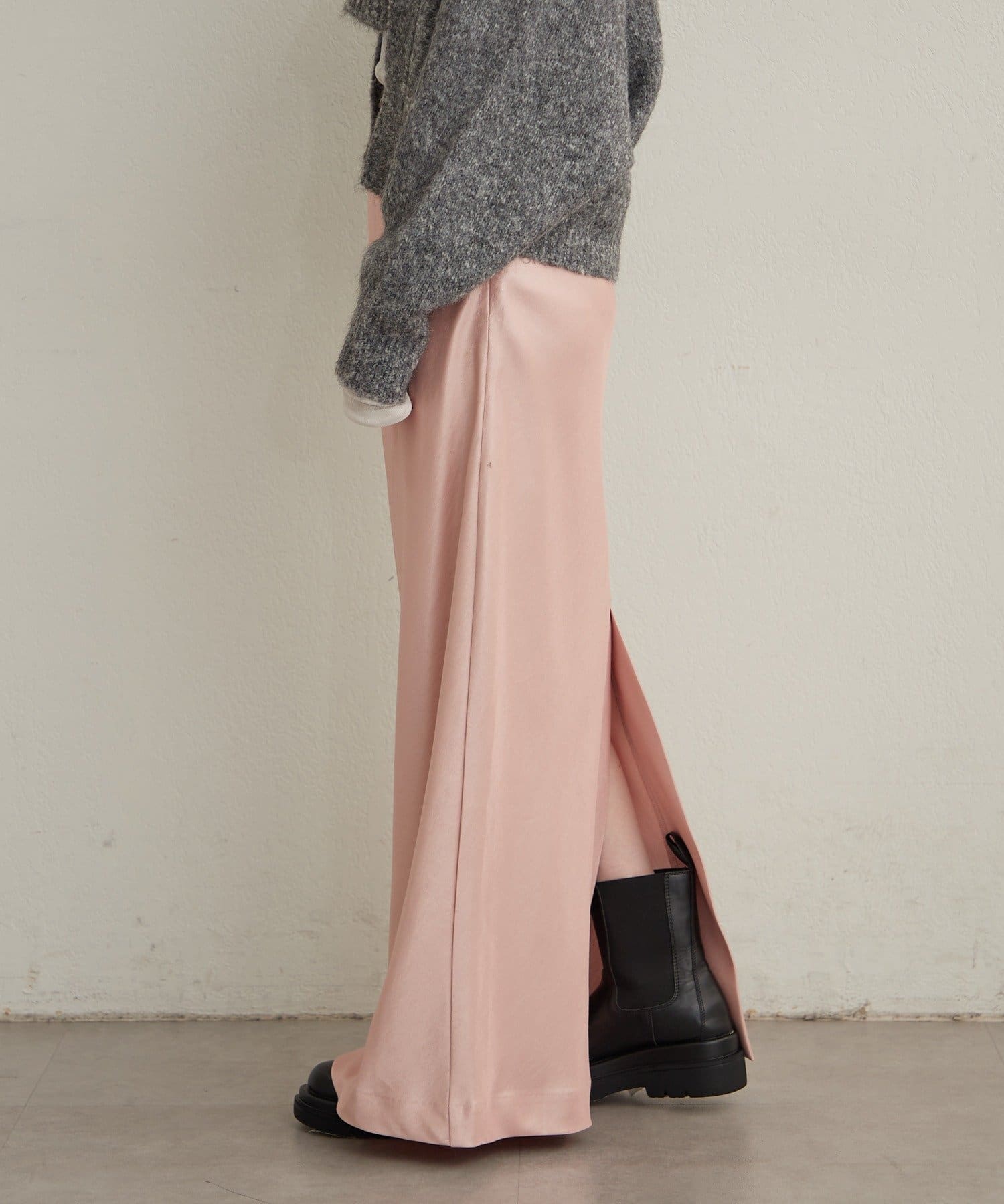 ・美脚効果を演出するIラインシルエット。ピタッとしすぎず、程よいタイト感がデイリー使いしやすい一枚。