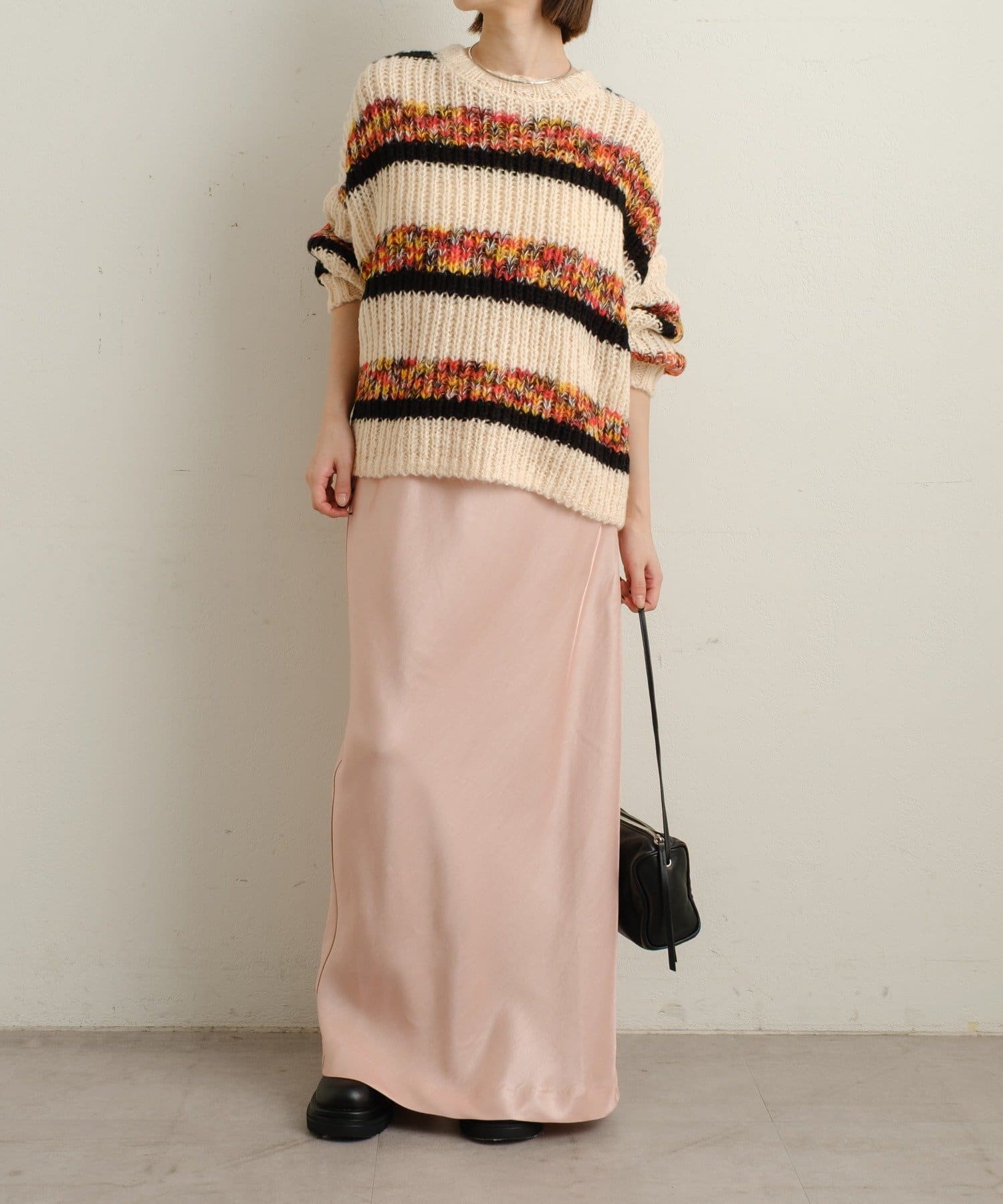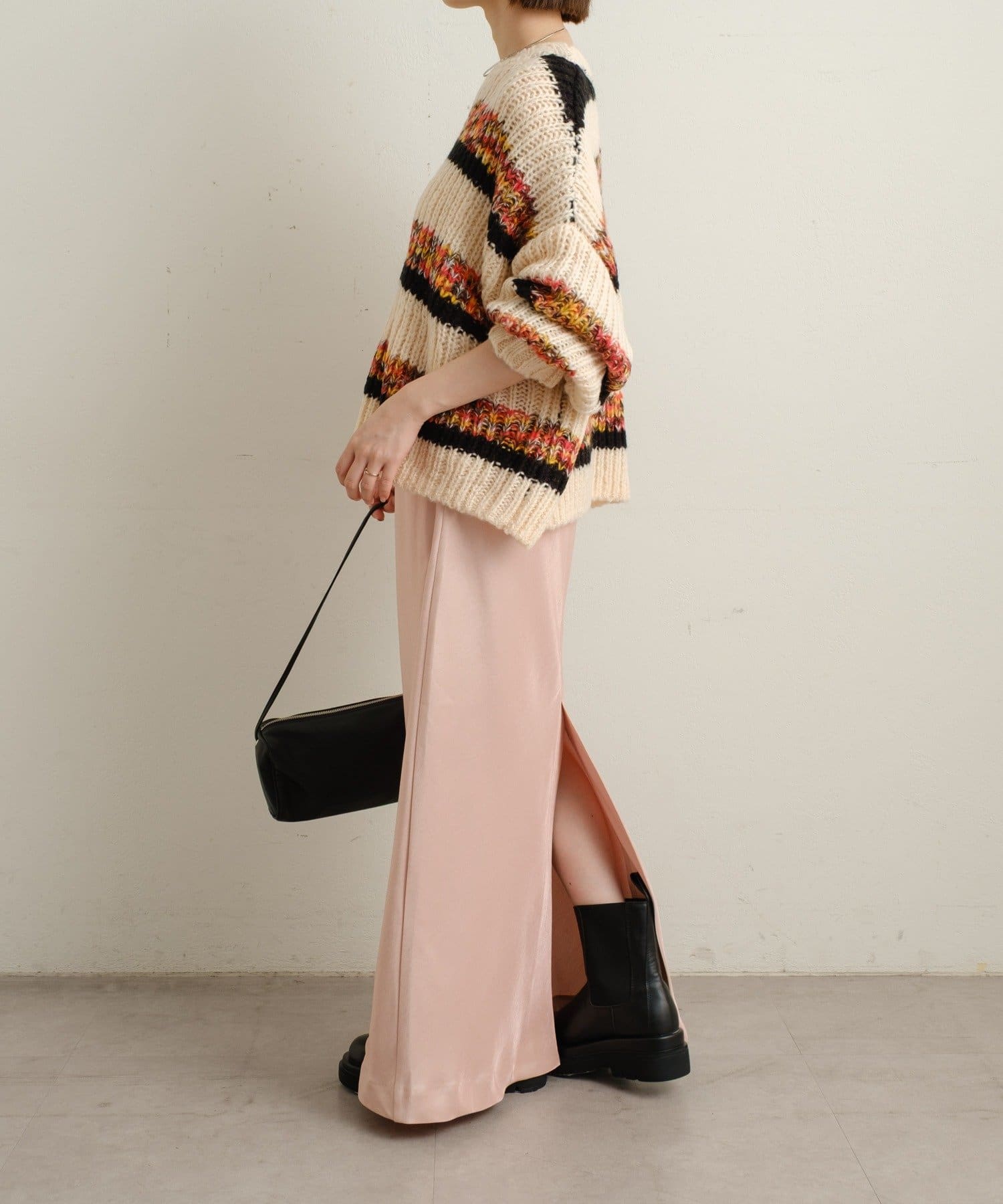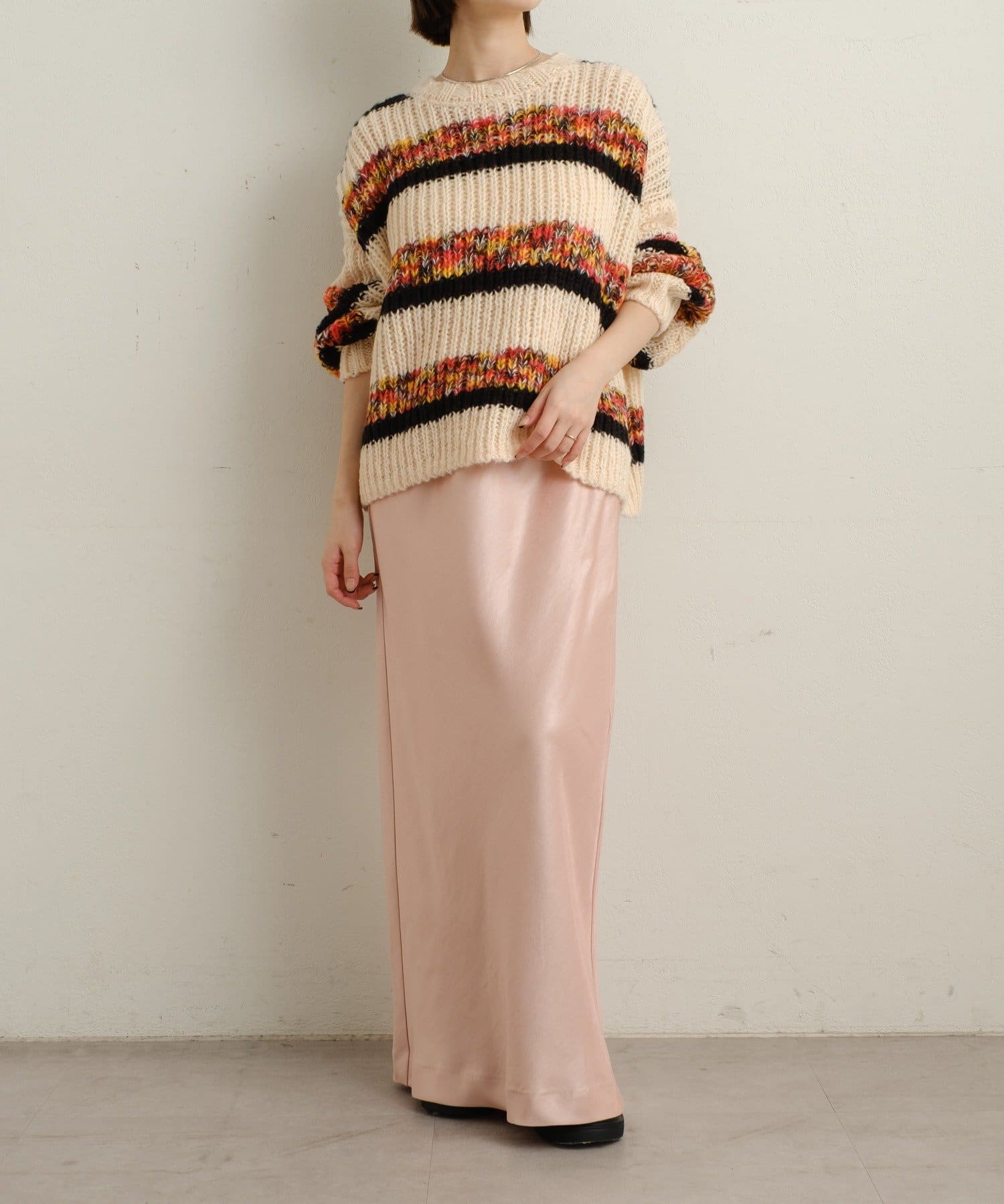【ピンク①】マルチボーダーニット