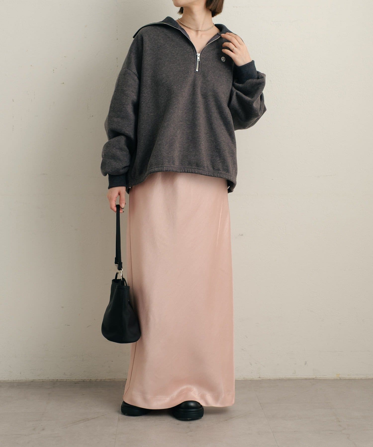 【ピンク②】刺繍ハーフジップスウェット