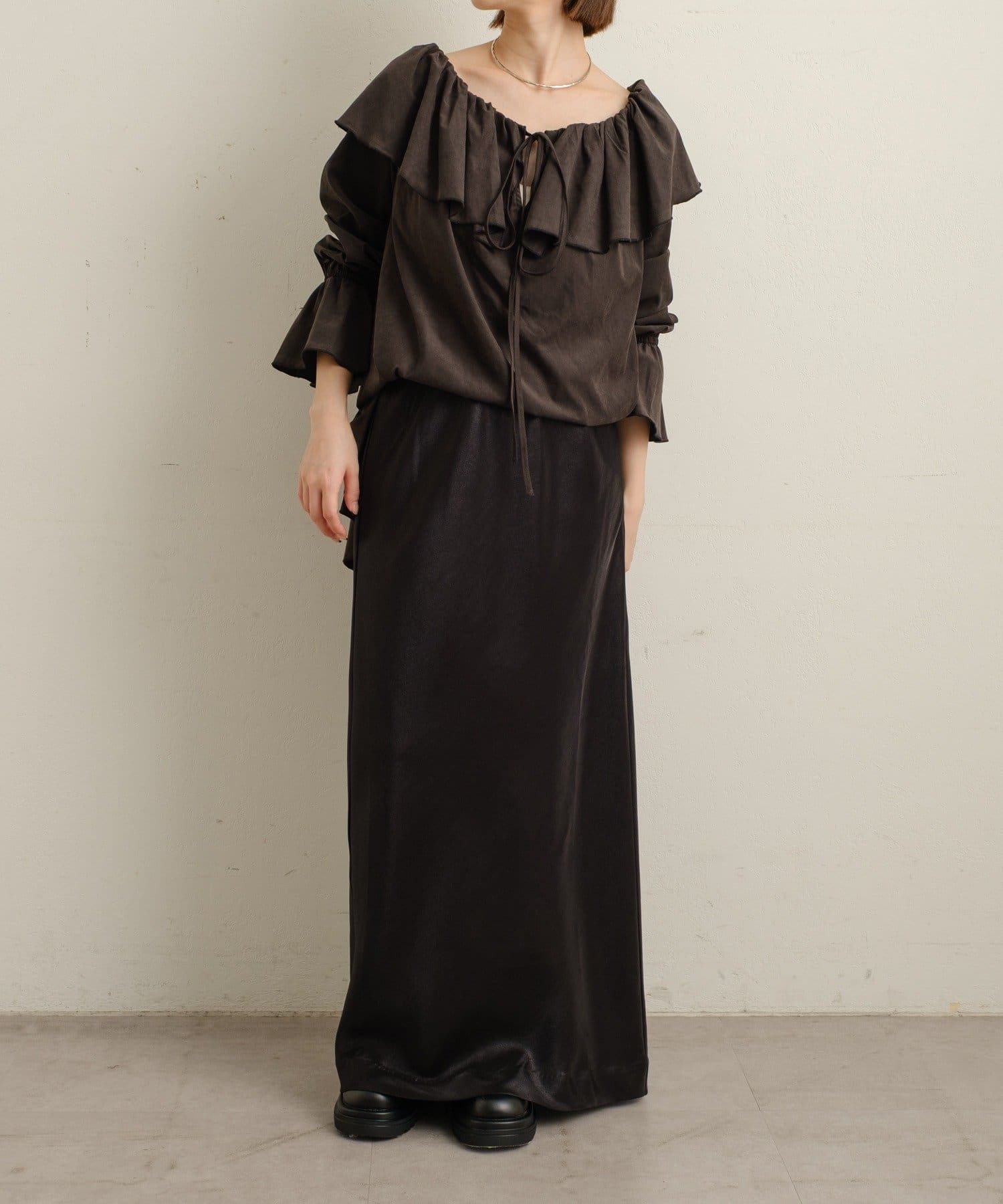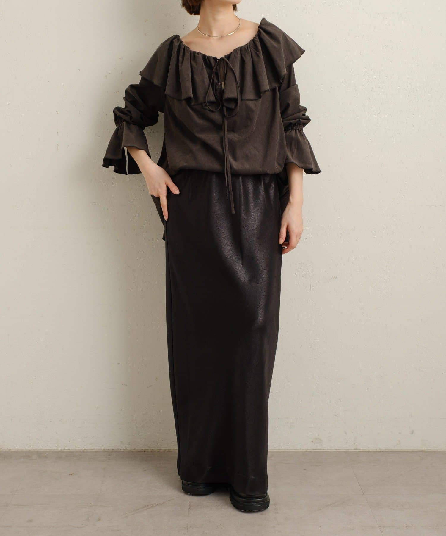 ・"Dewy"タグがポイントのサテンイージースカート。