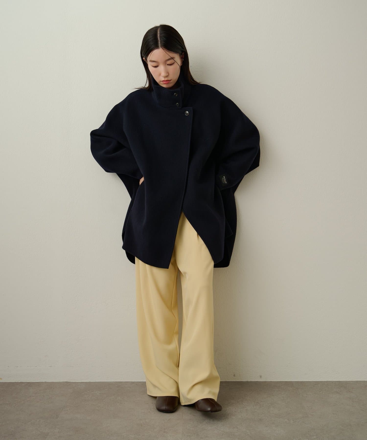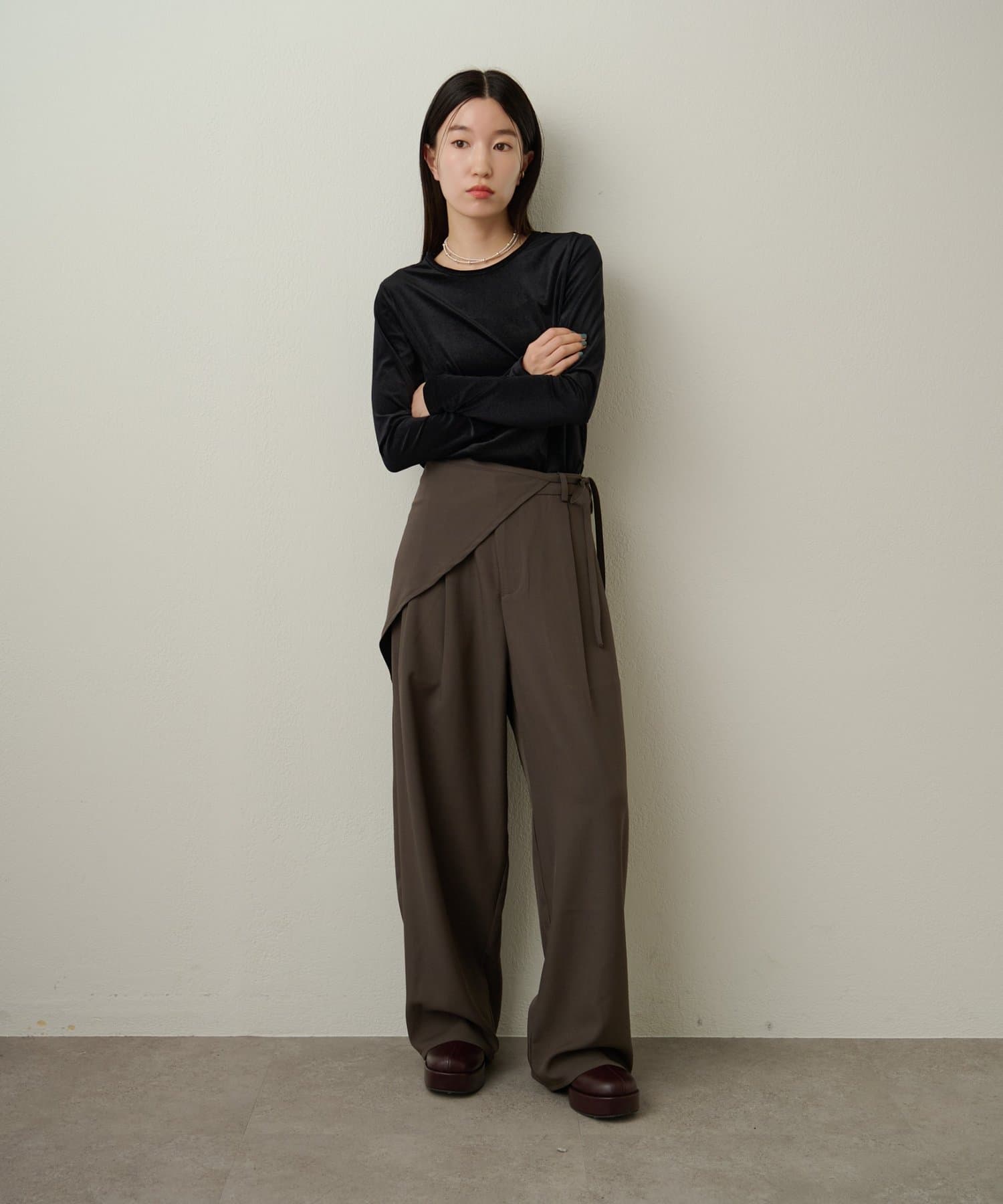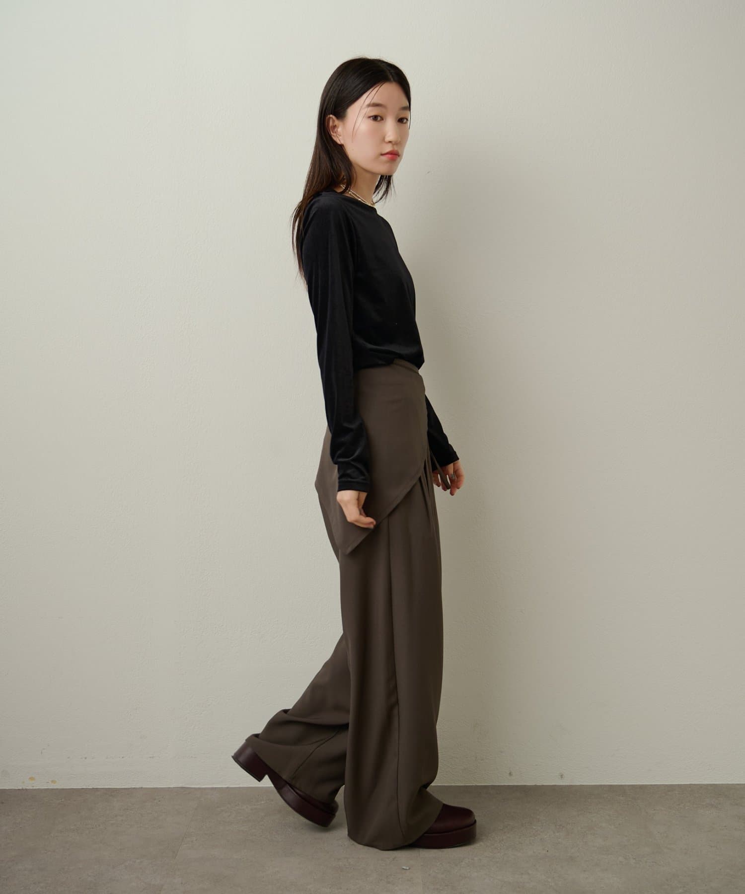 ・落ち感のある素材なので、しわにもなりにくく体型も拾いずらい一着