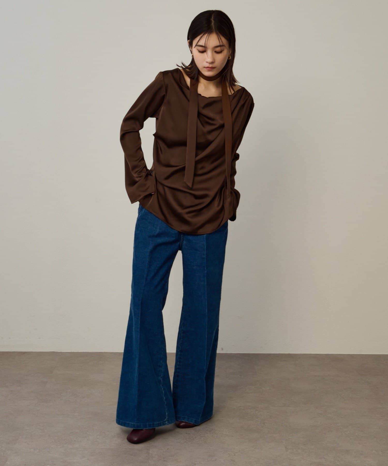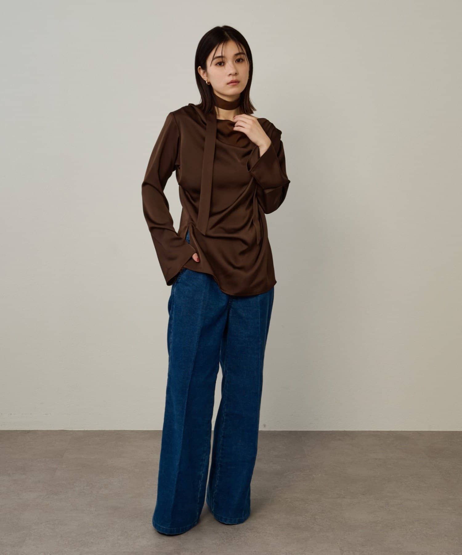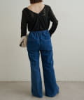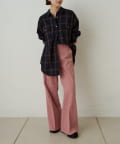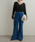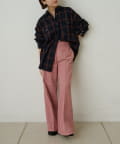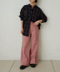 ・シンプルなトップス合わせもパンツの素材感でこなれた印象に。