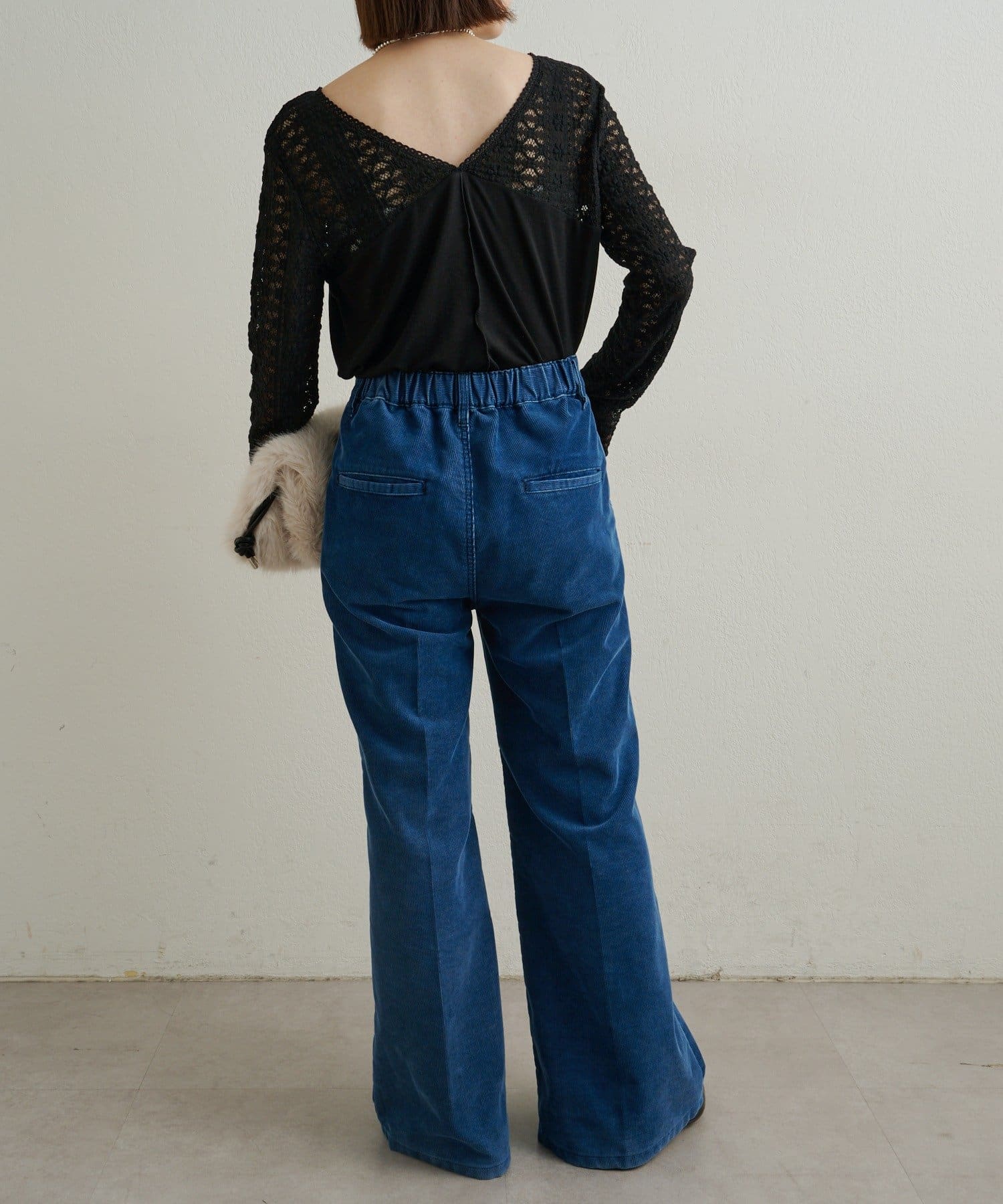・バックがゴム仕様となっているため、ストレスフリーで着用いただけます。