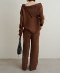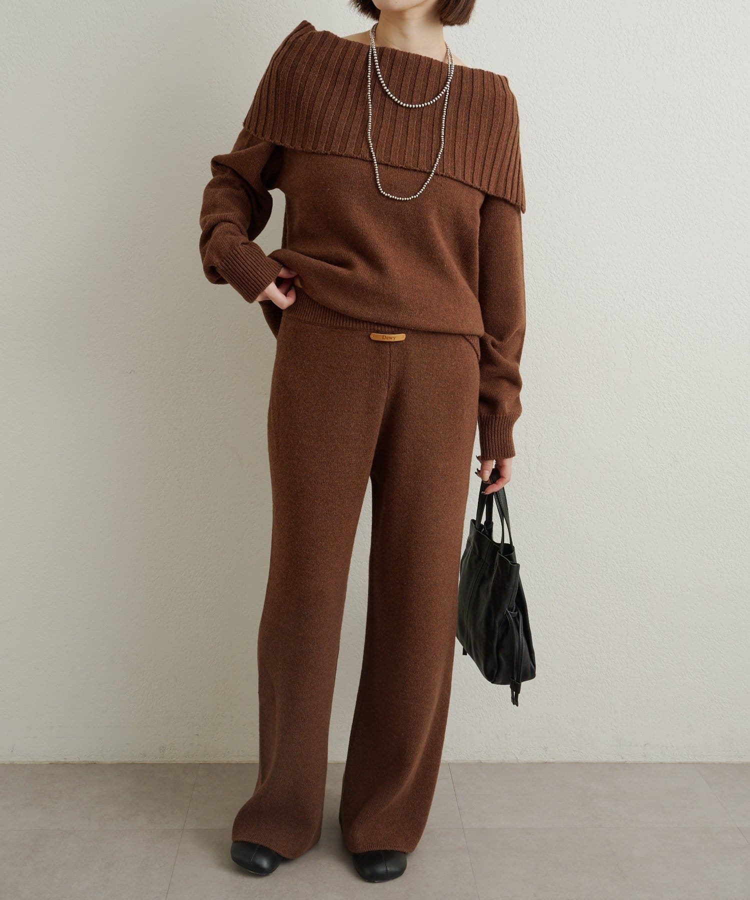 ・同素材のオフショルニットとのセットアップの着こなしもおすすめ!