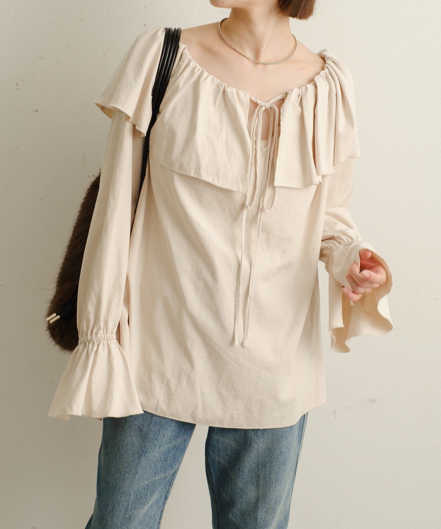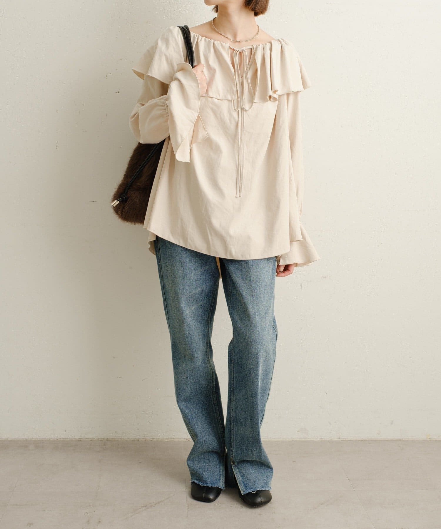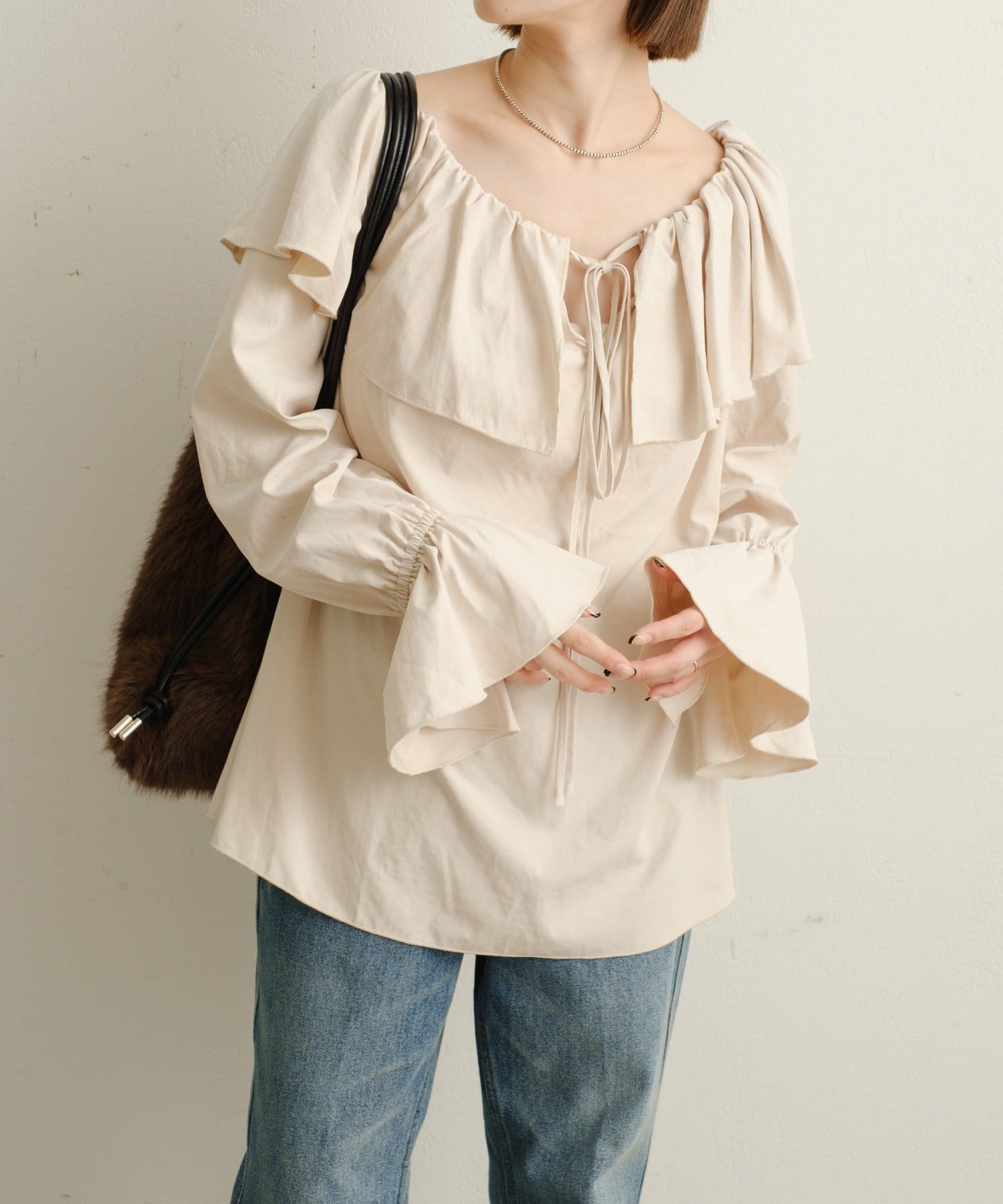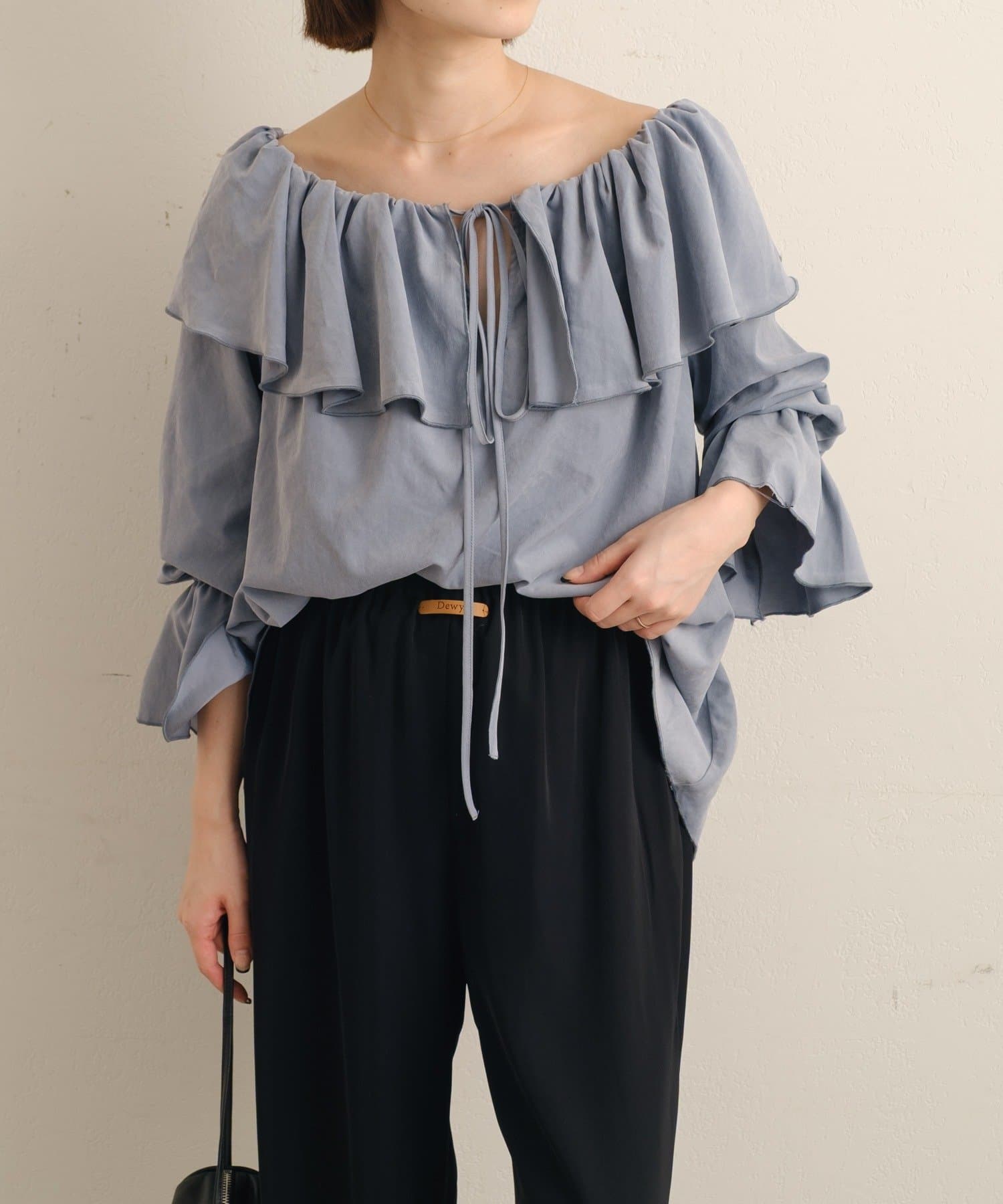 スタイリングに華やかさをプラスしてくれるラッフルブラウス