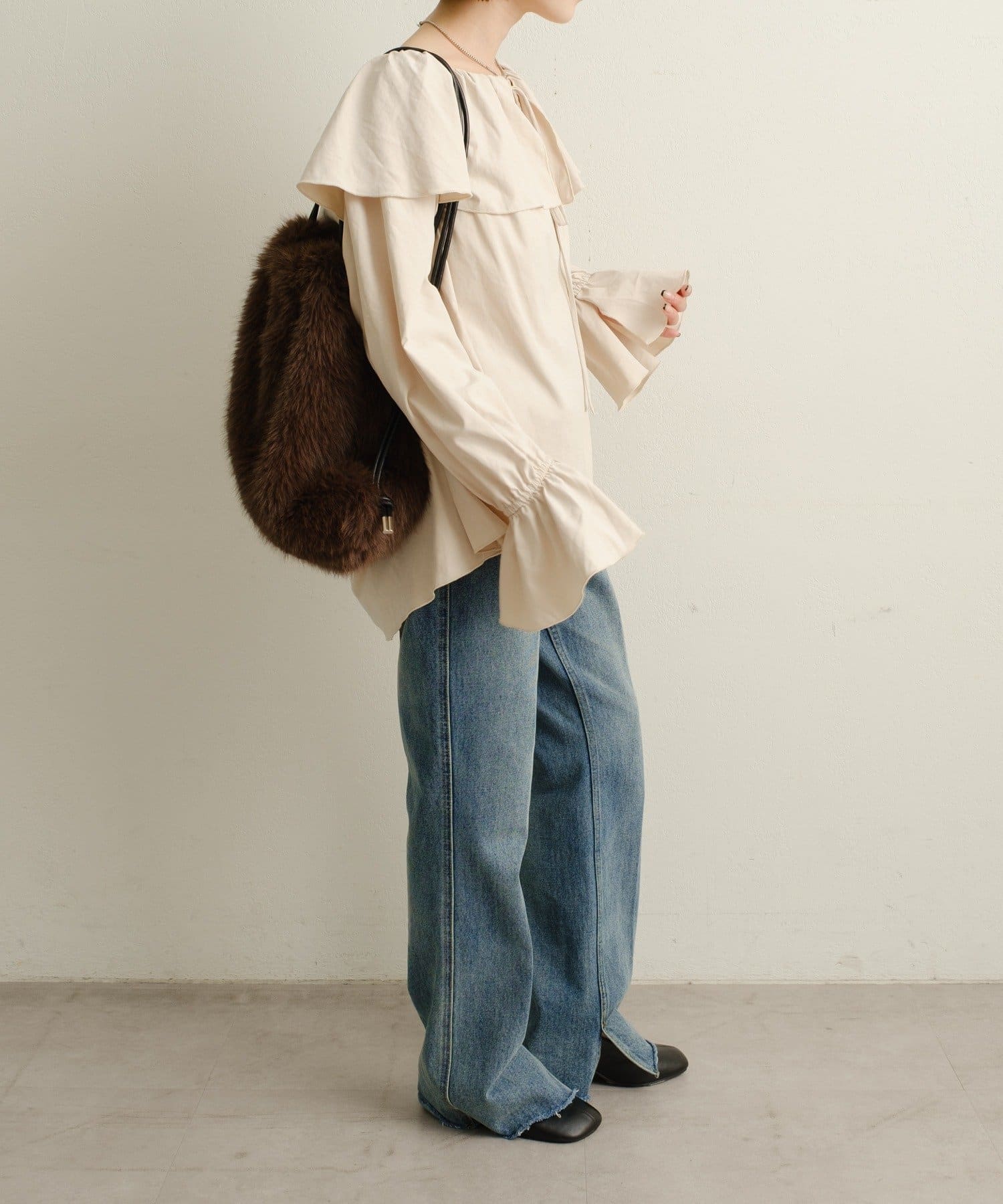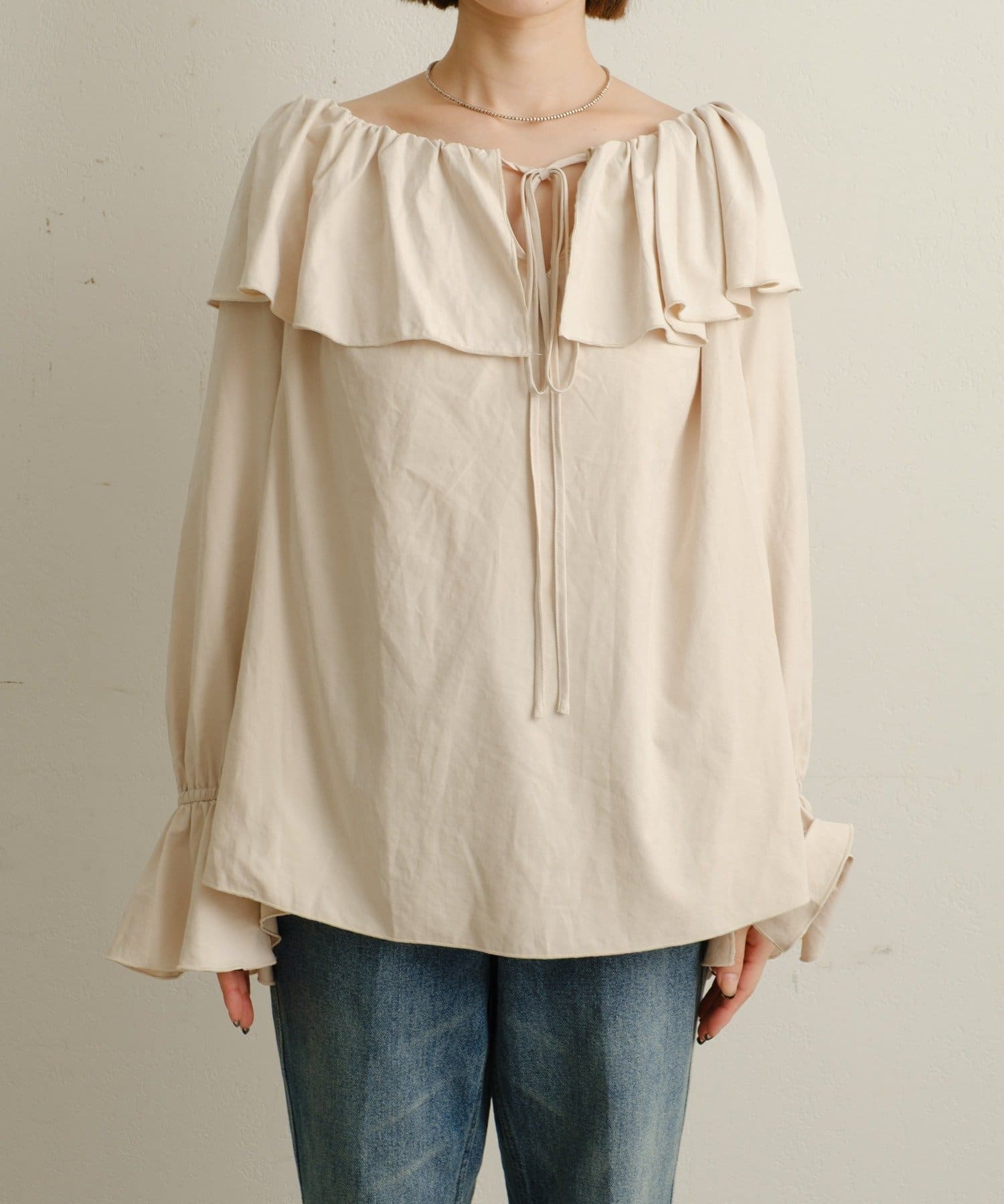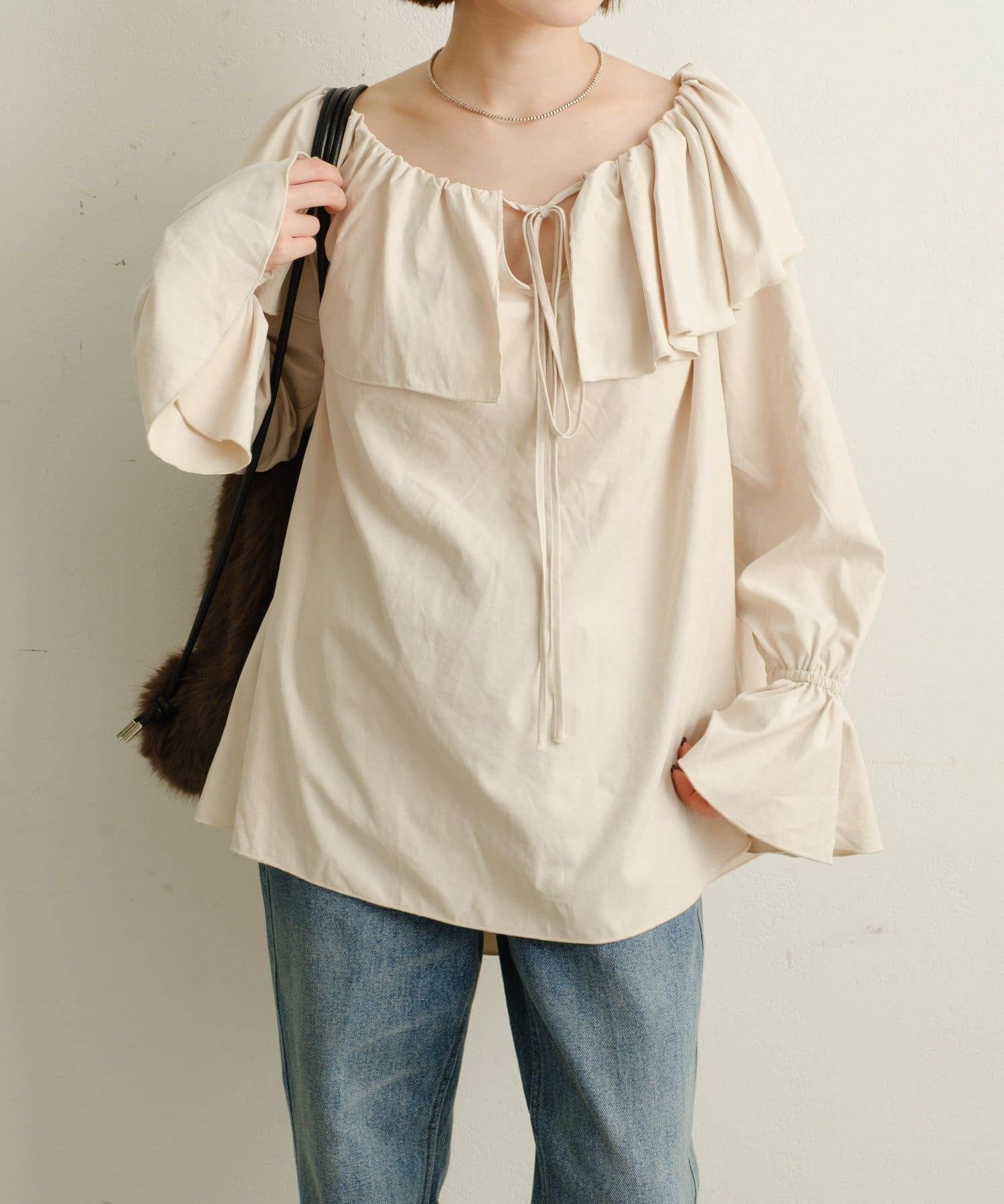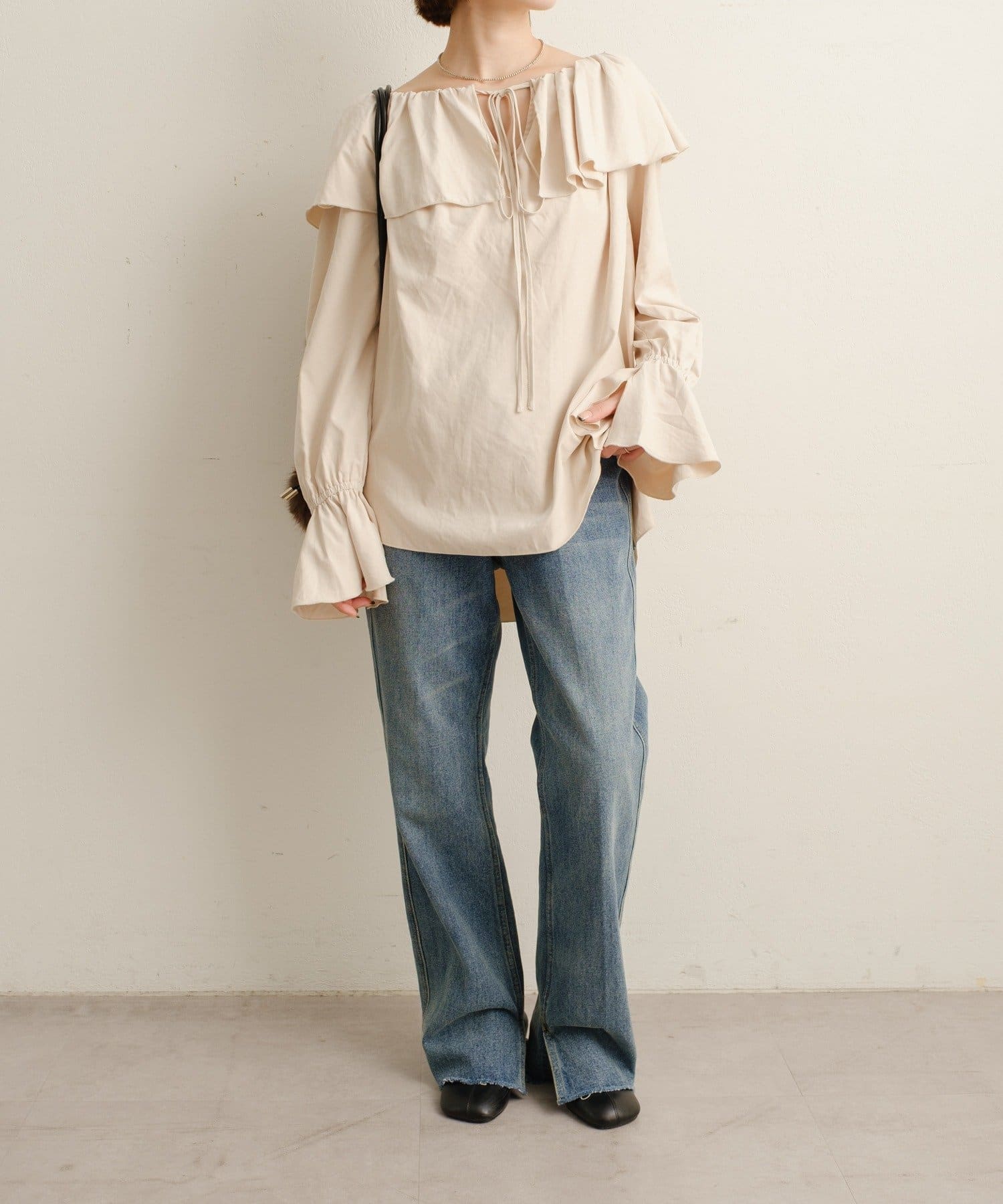 スタイリングに華やかさをプラスしてくれるラッフルブラウス