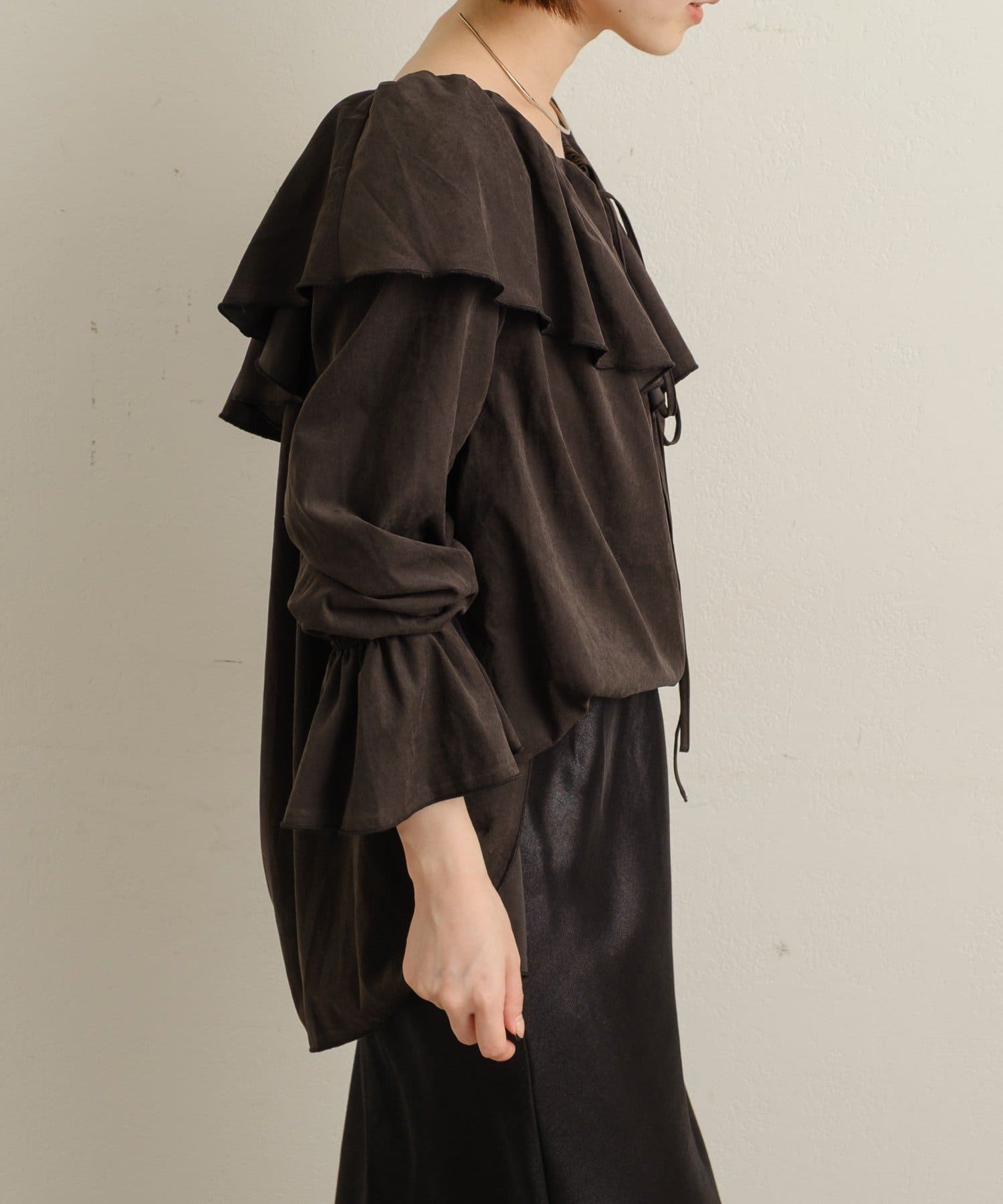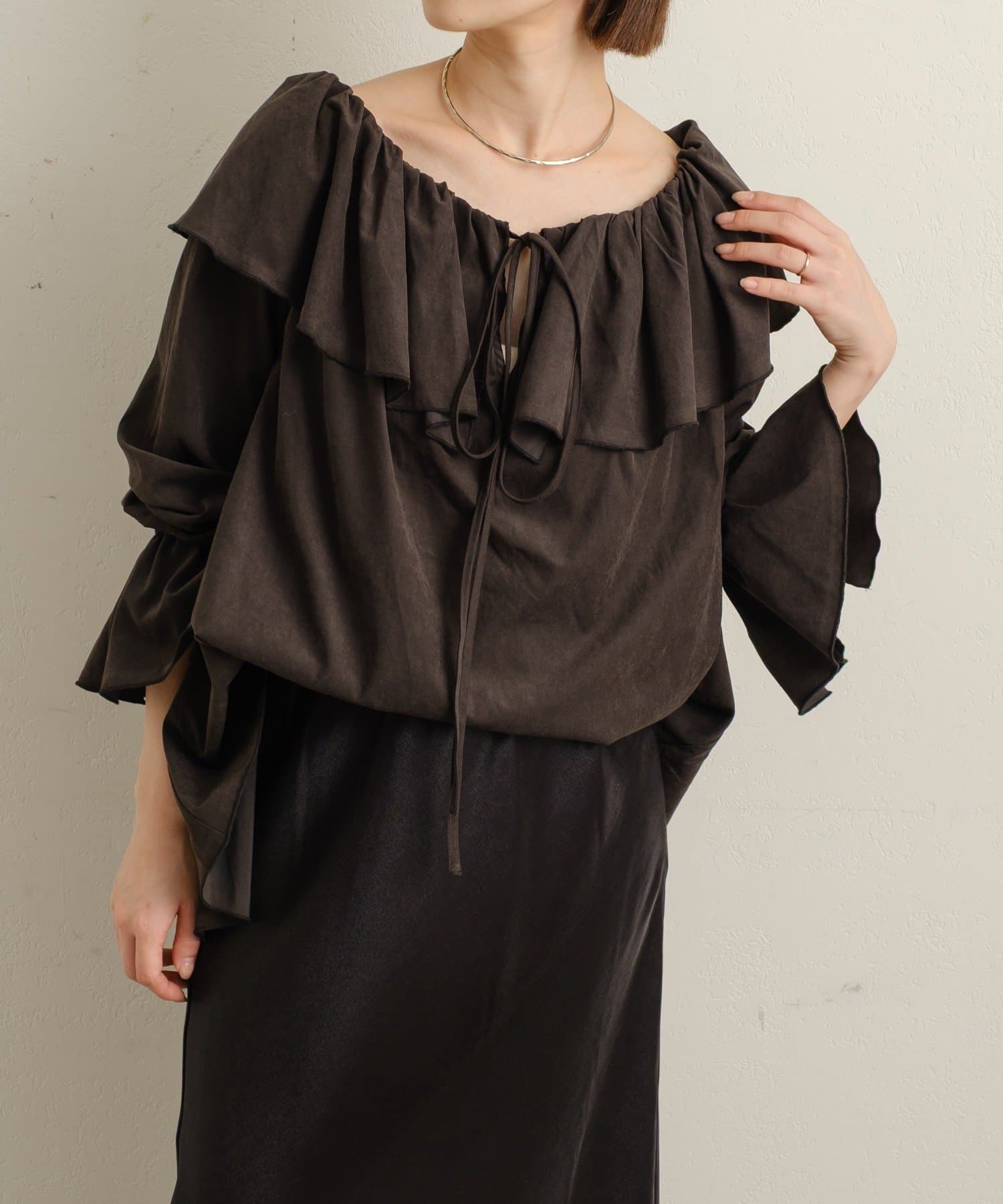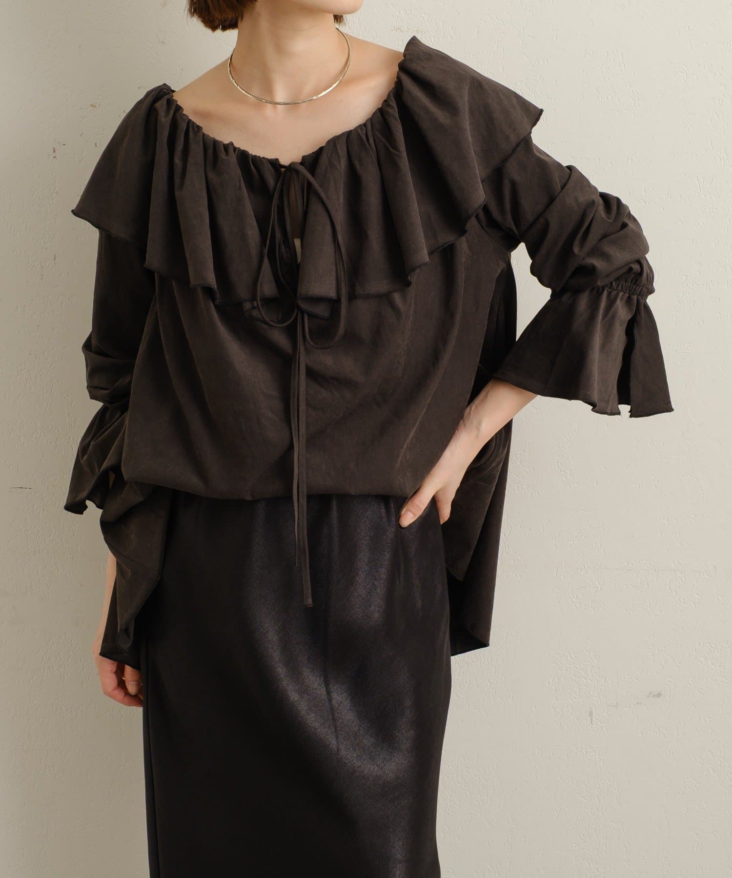 ・大ぶりのラッフルデザインが大人可愛いを演出してくれるラッフルブラウス。