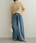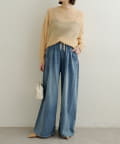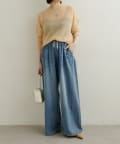 【オフホワイト】ドロストタックワイドデニム