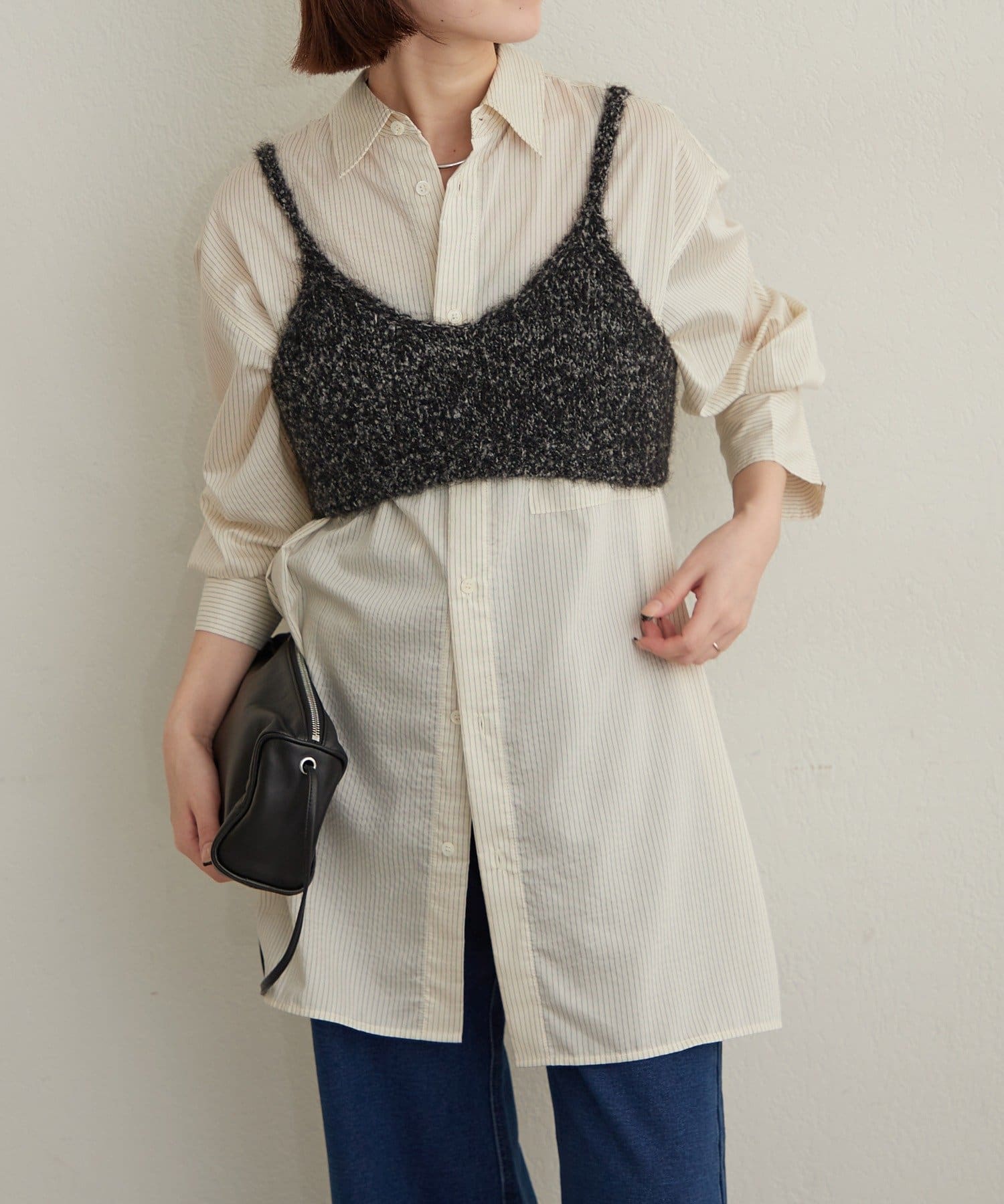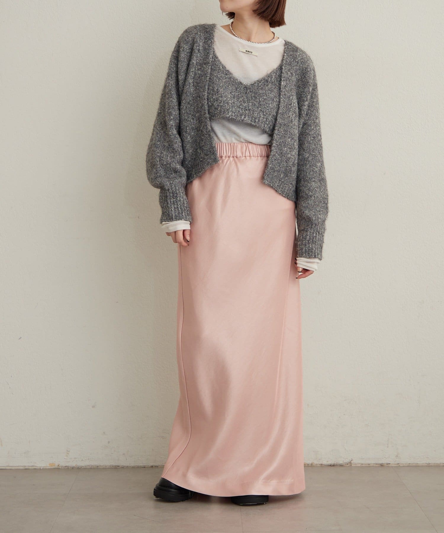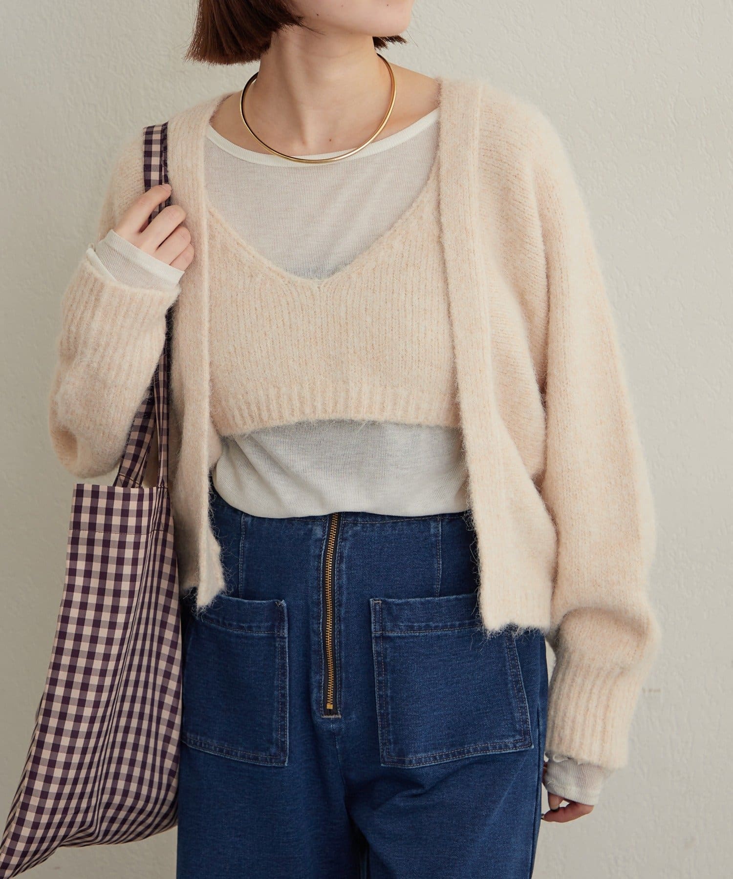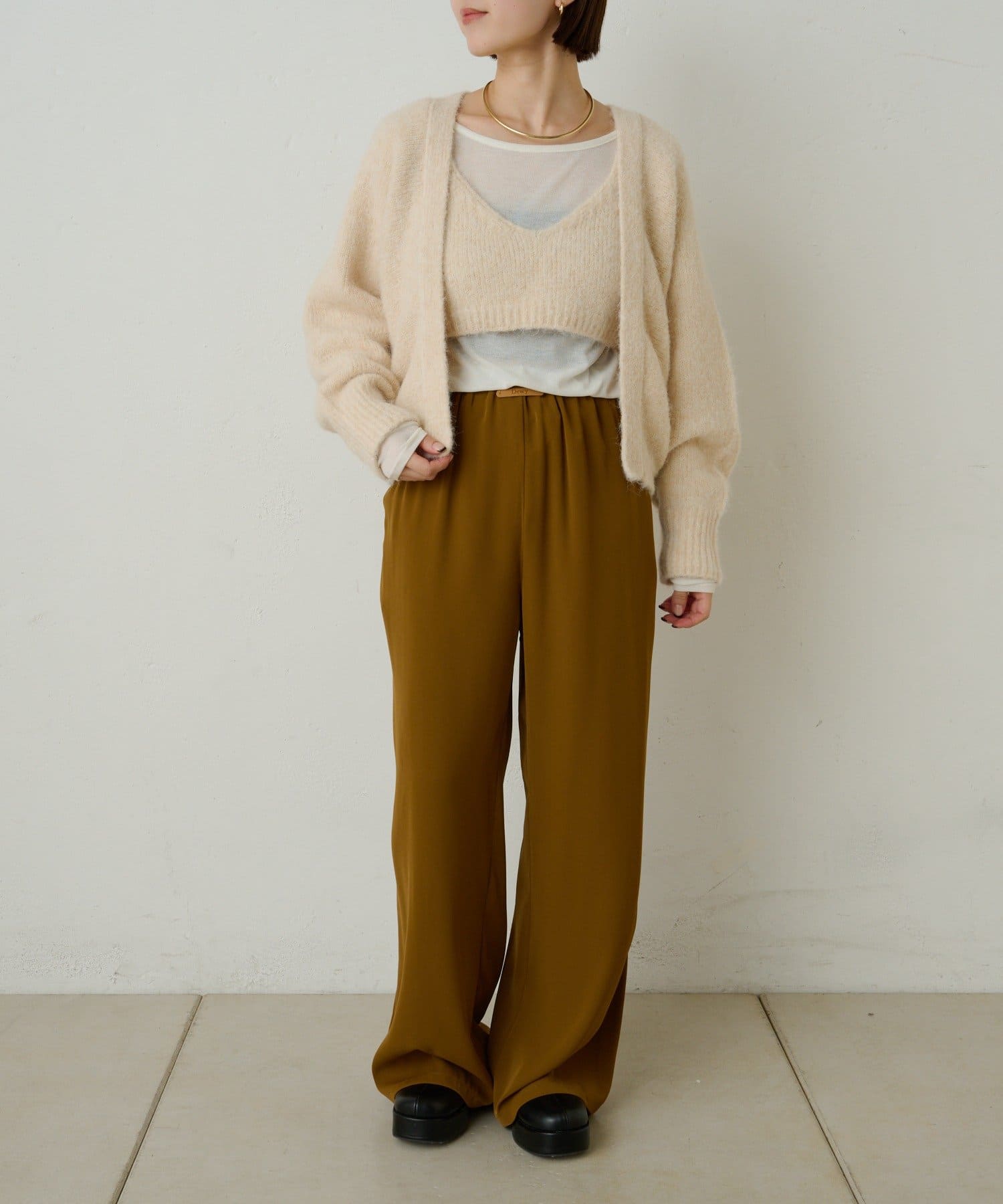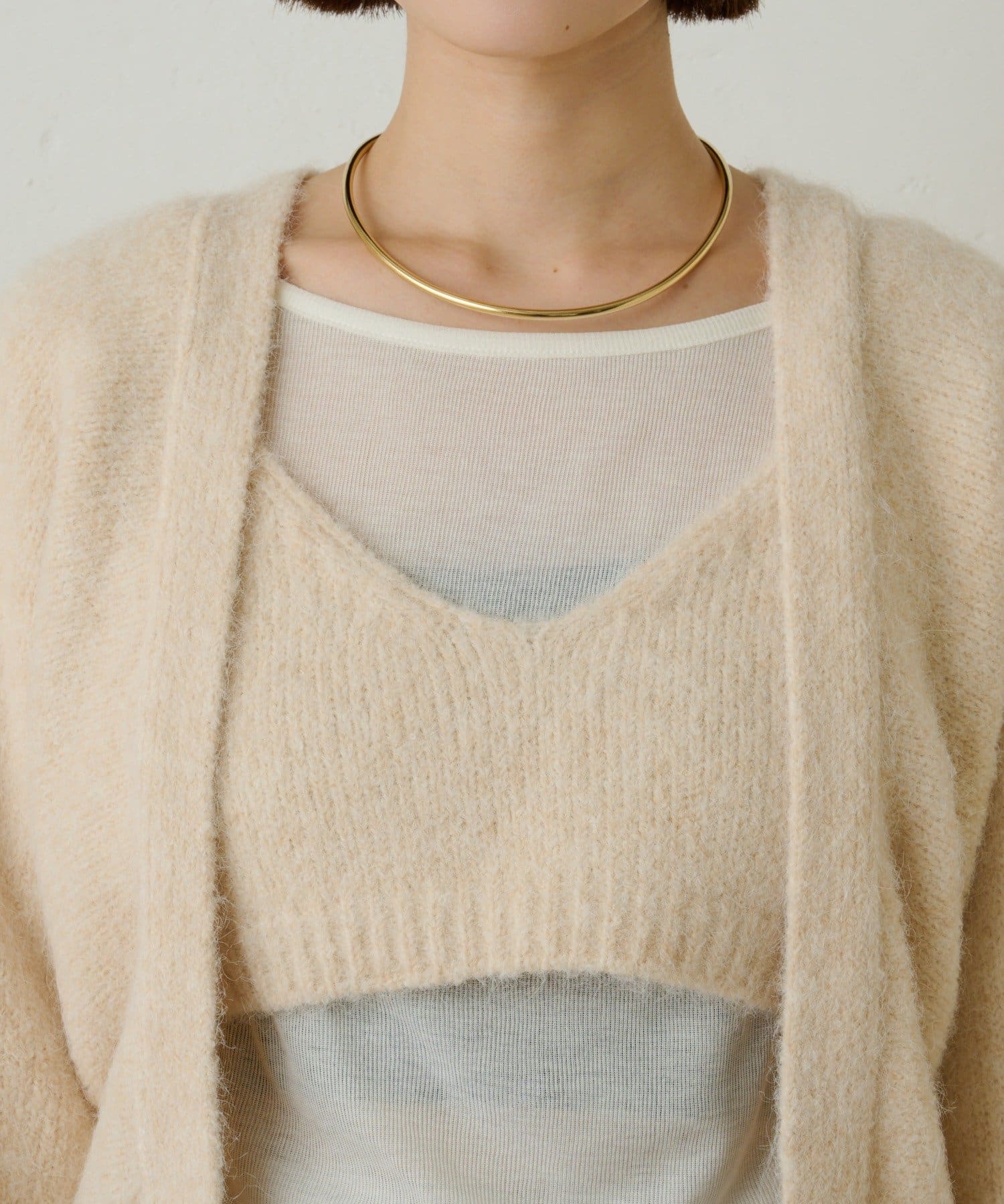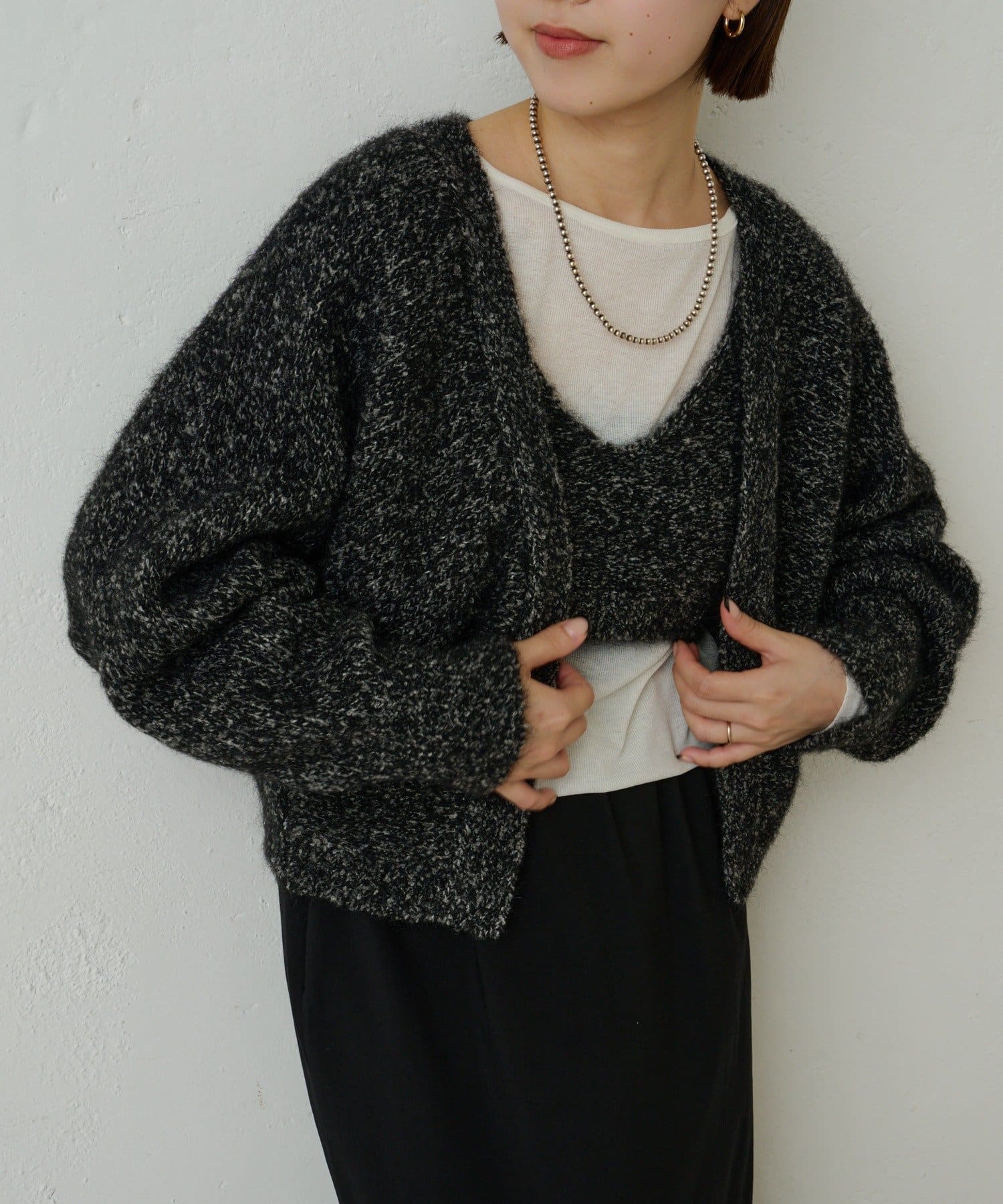 ・同素材のキャミソールとボレロがセットになっており、様々な着こなしが叶う一枚。