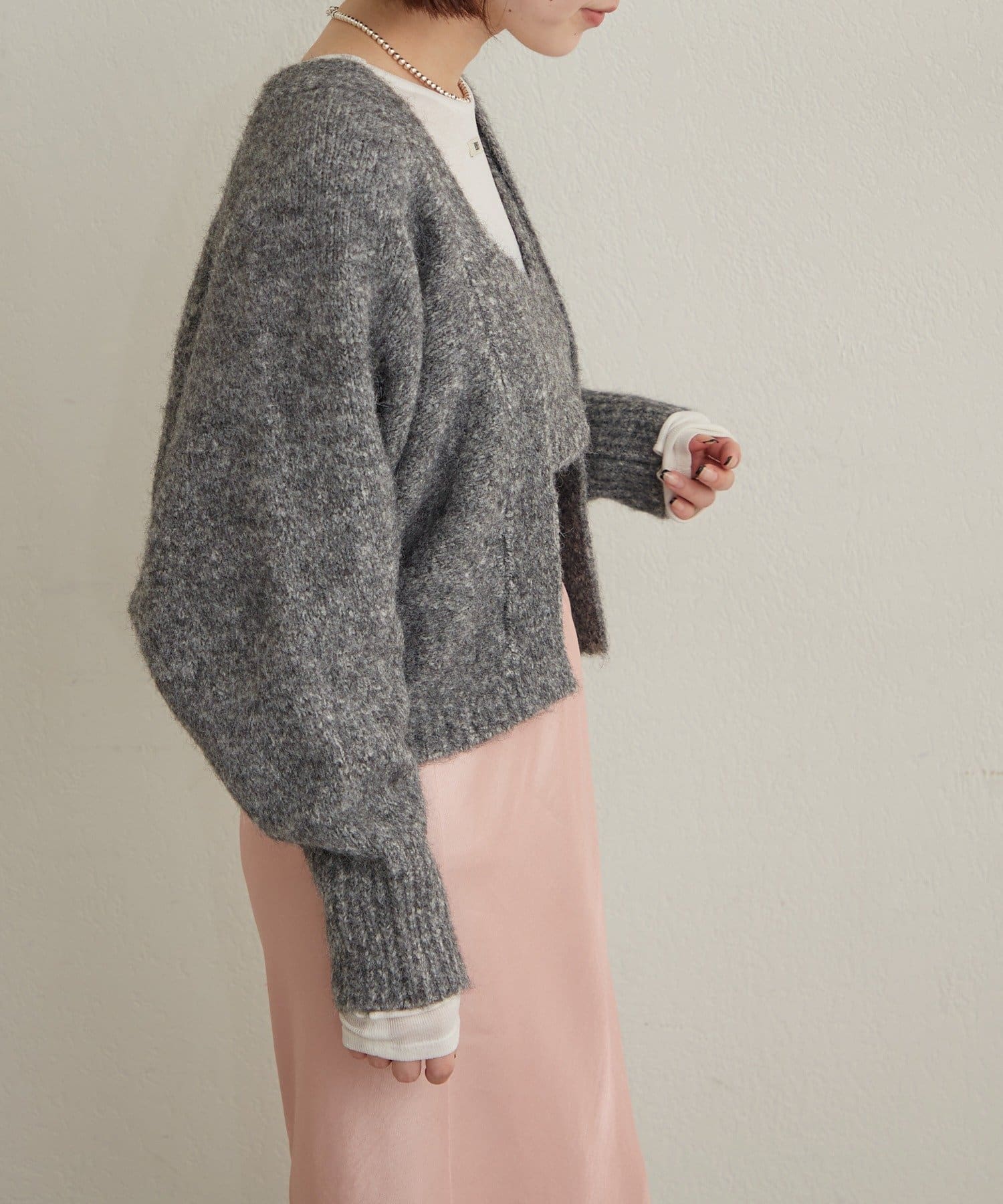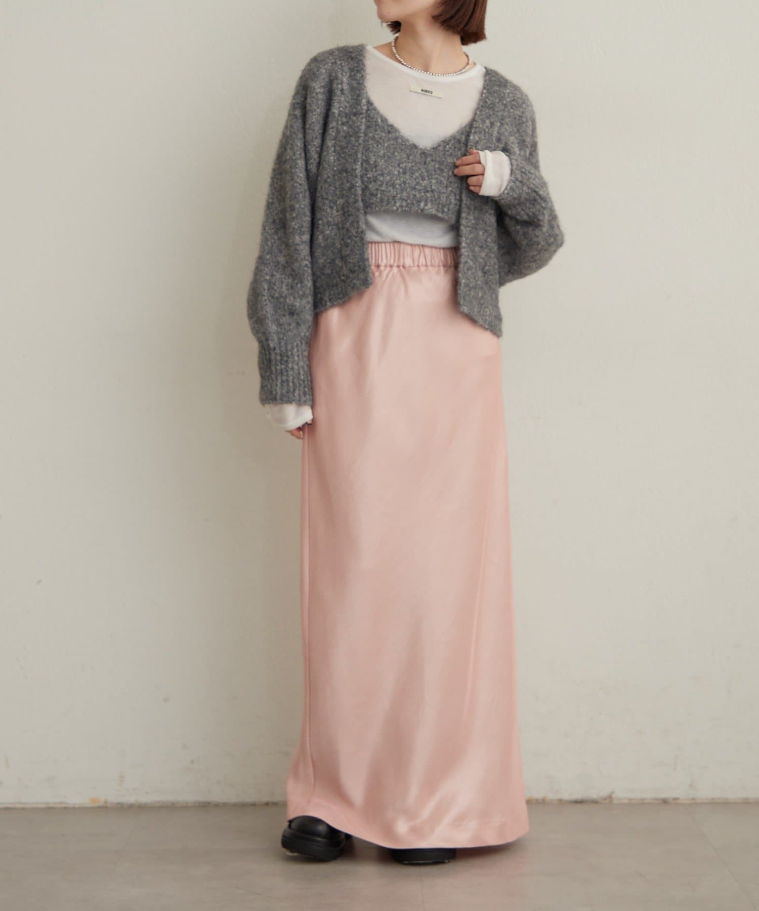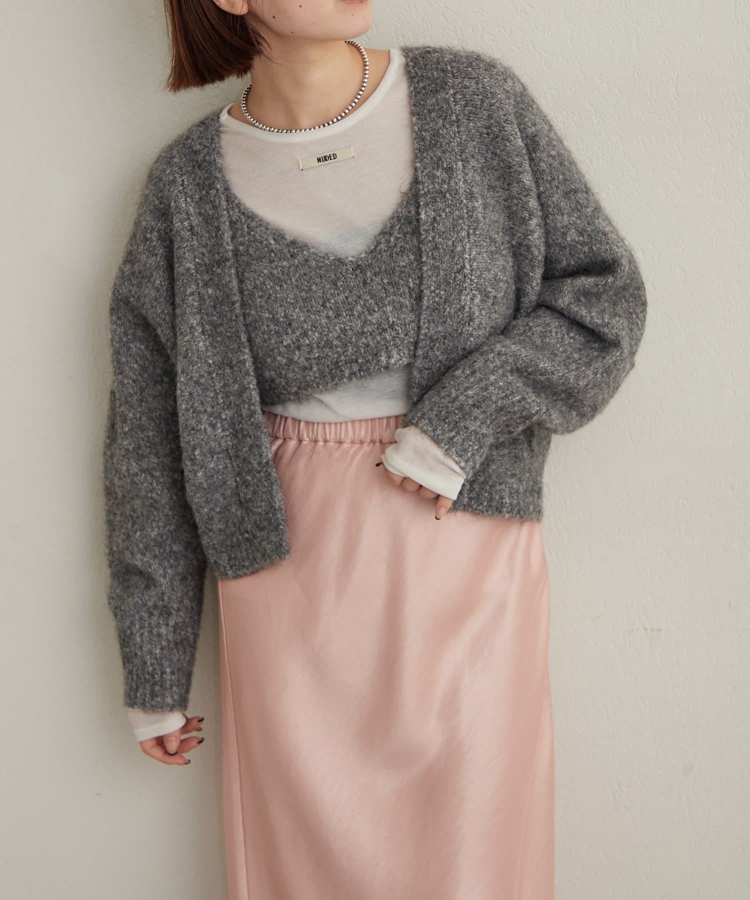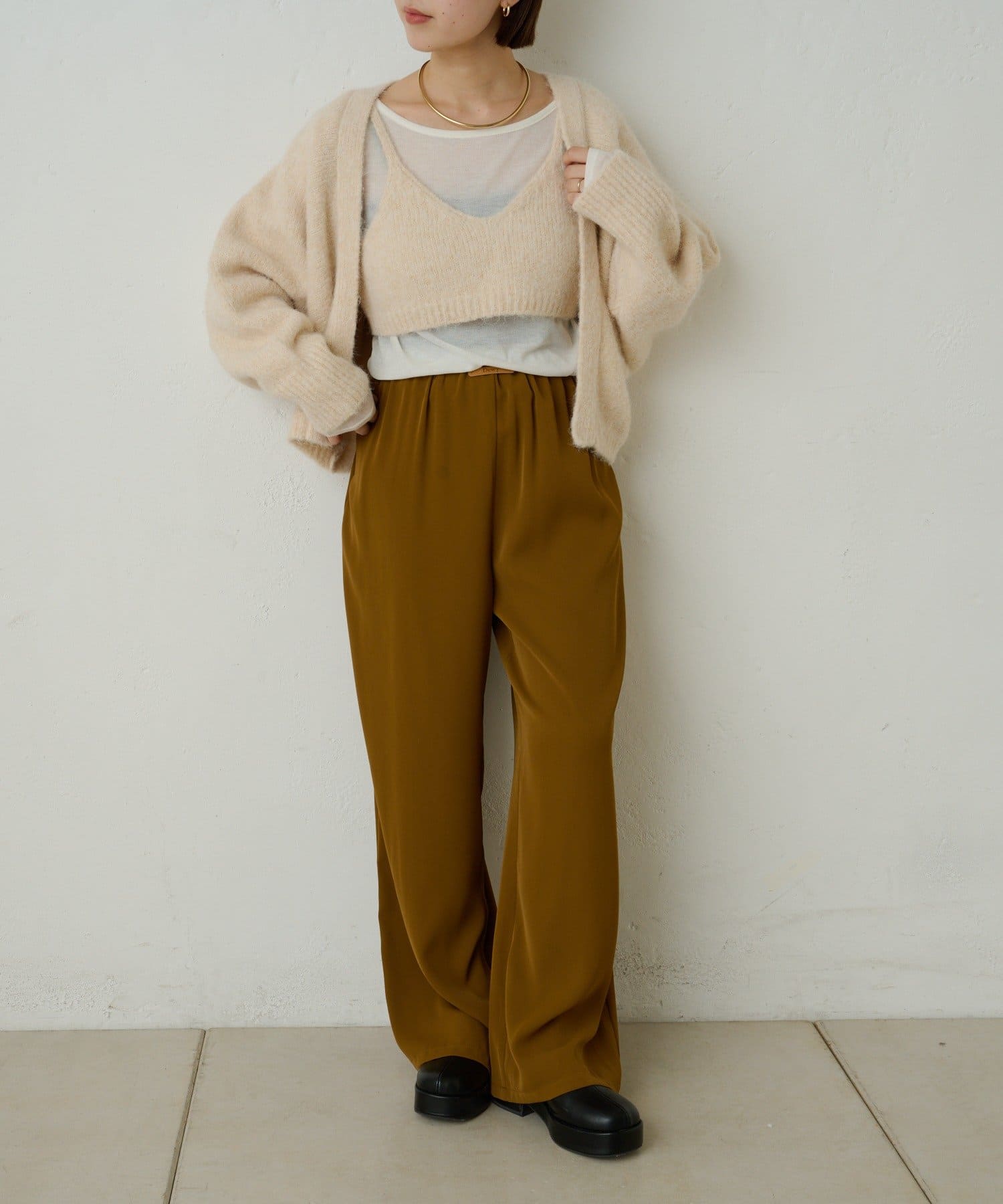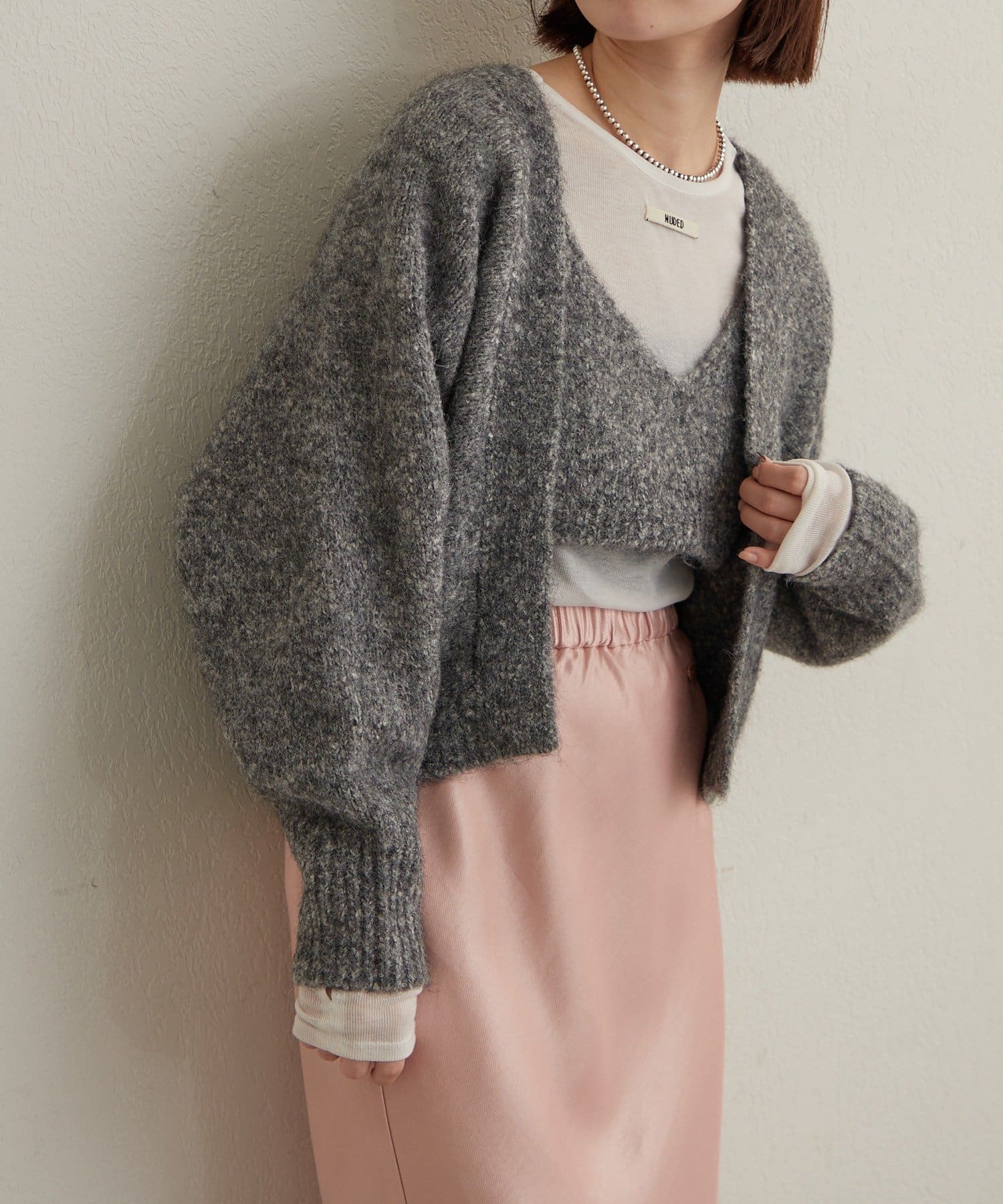 ・同素材のキャミソールとボレロがセットになっており、様々な着こなしが叶う一枚。