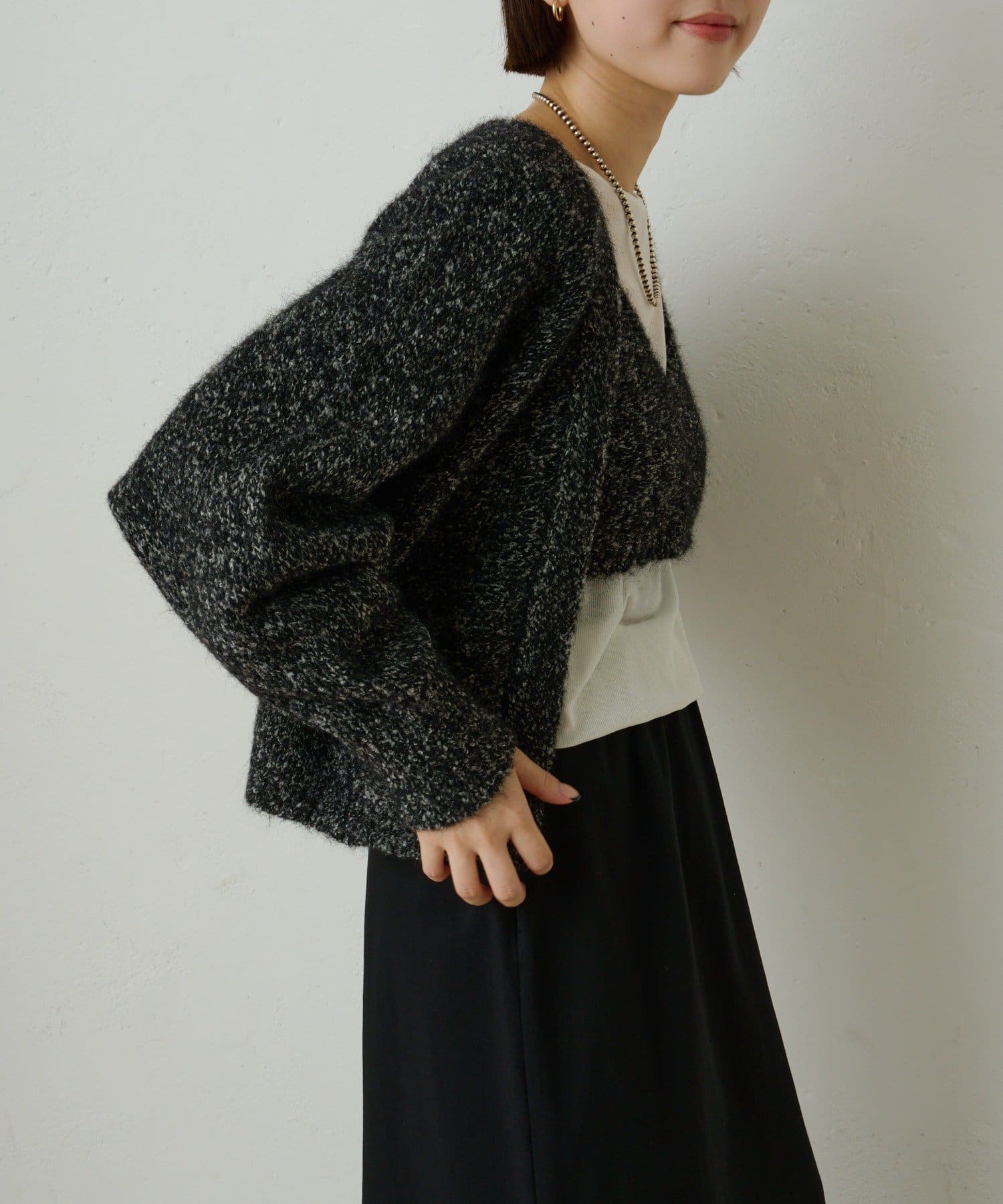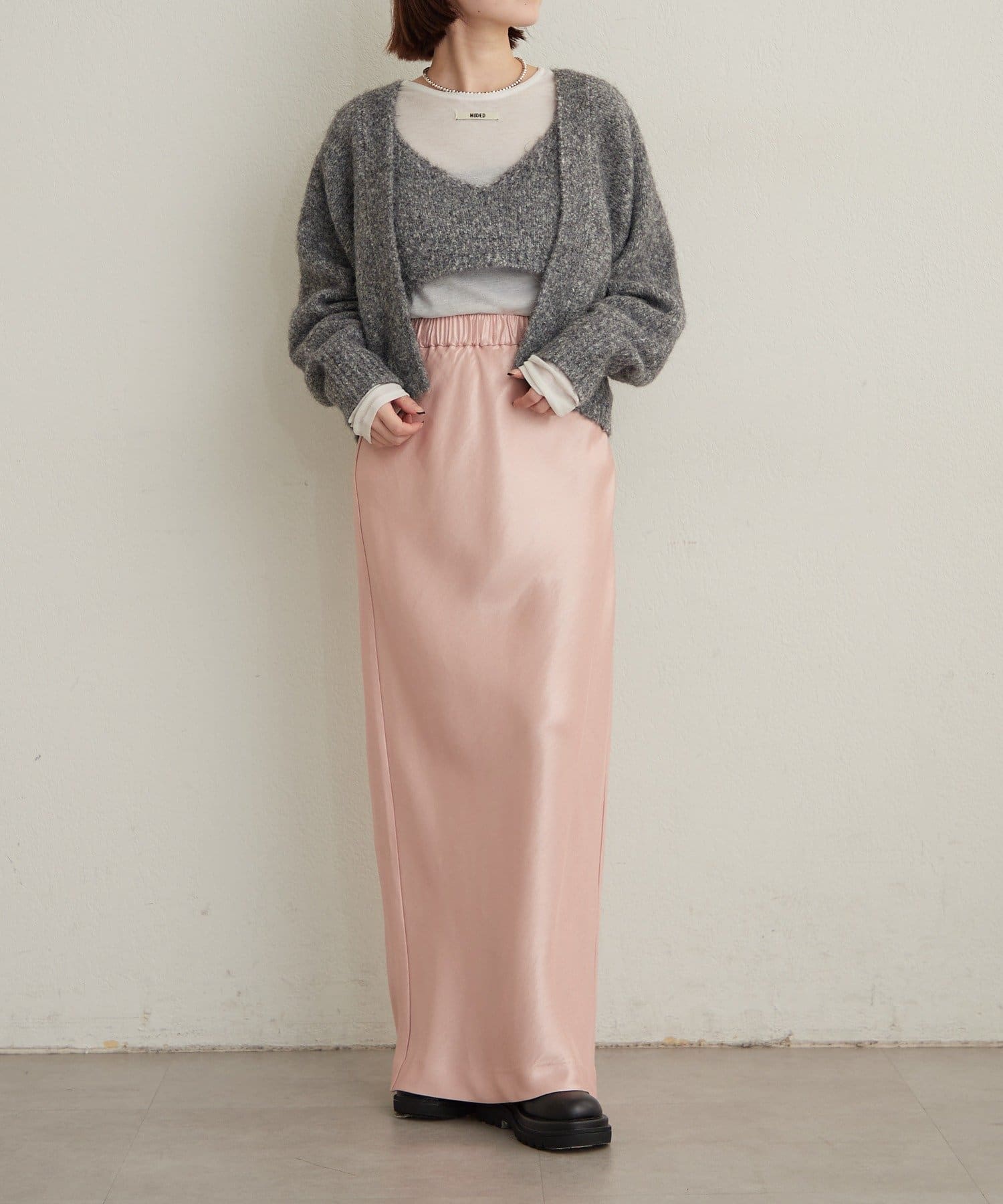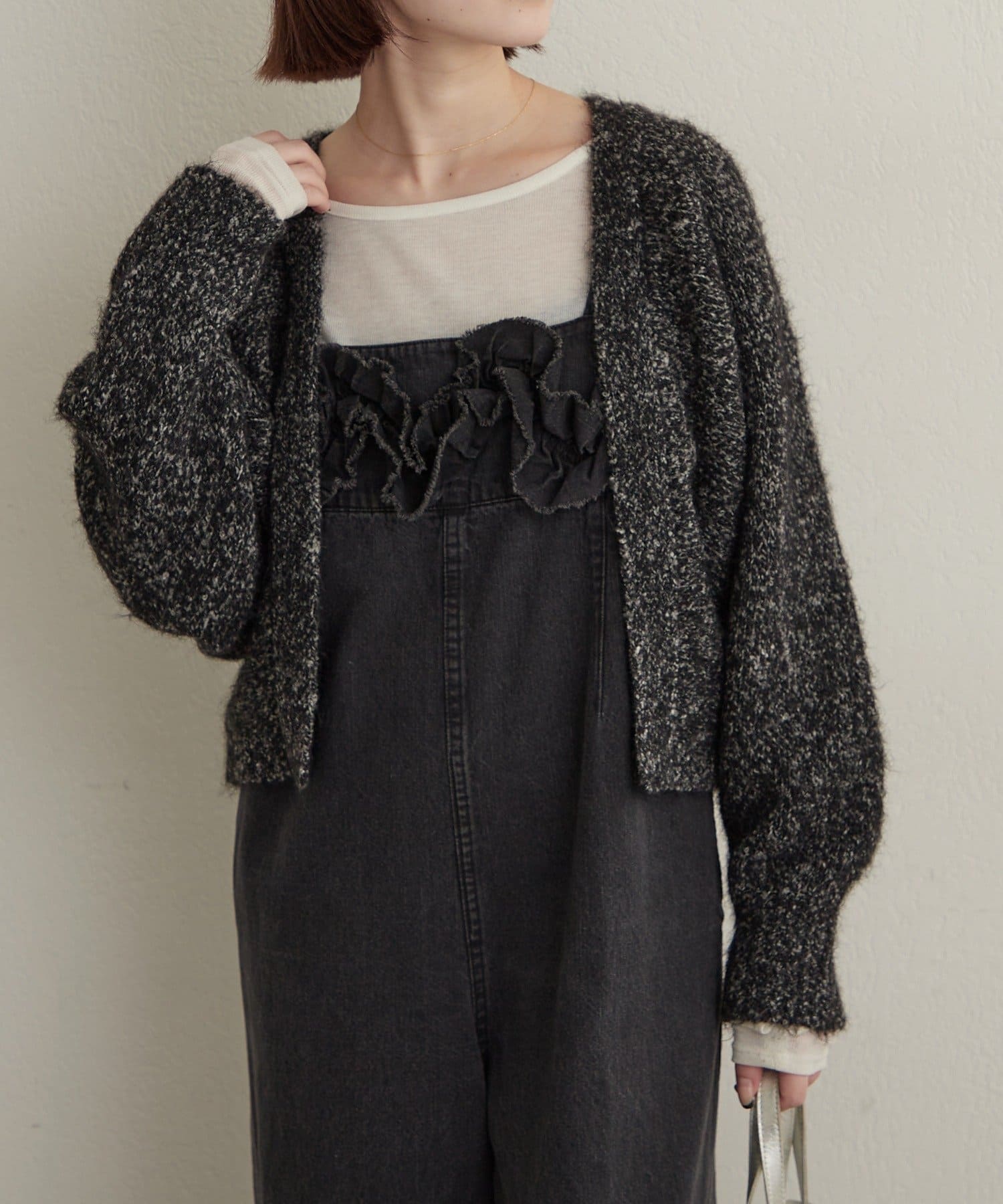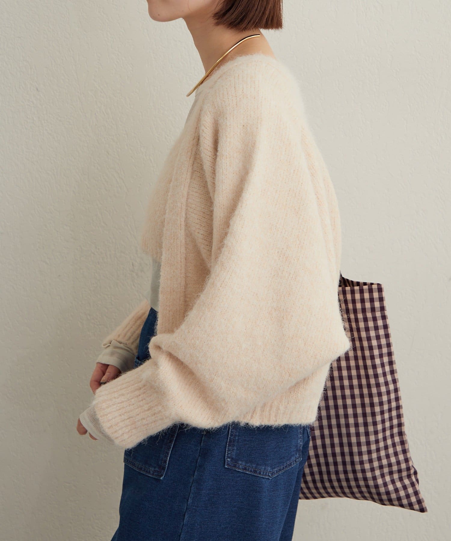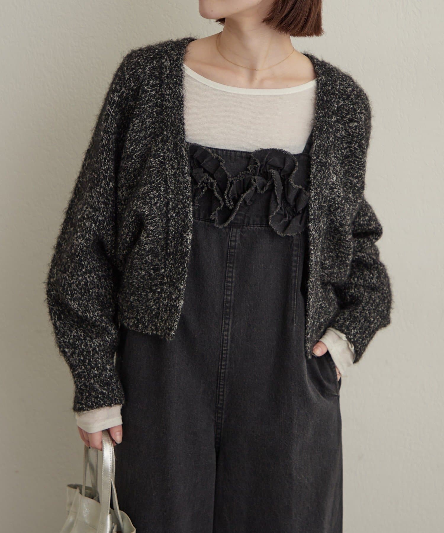 ・同素材のキャミソールとボレロがセットになっており、様々な着こなしが叶う一枚。