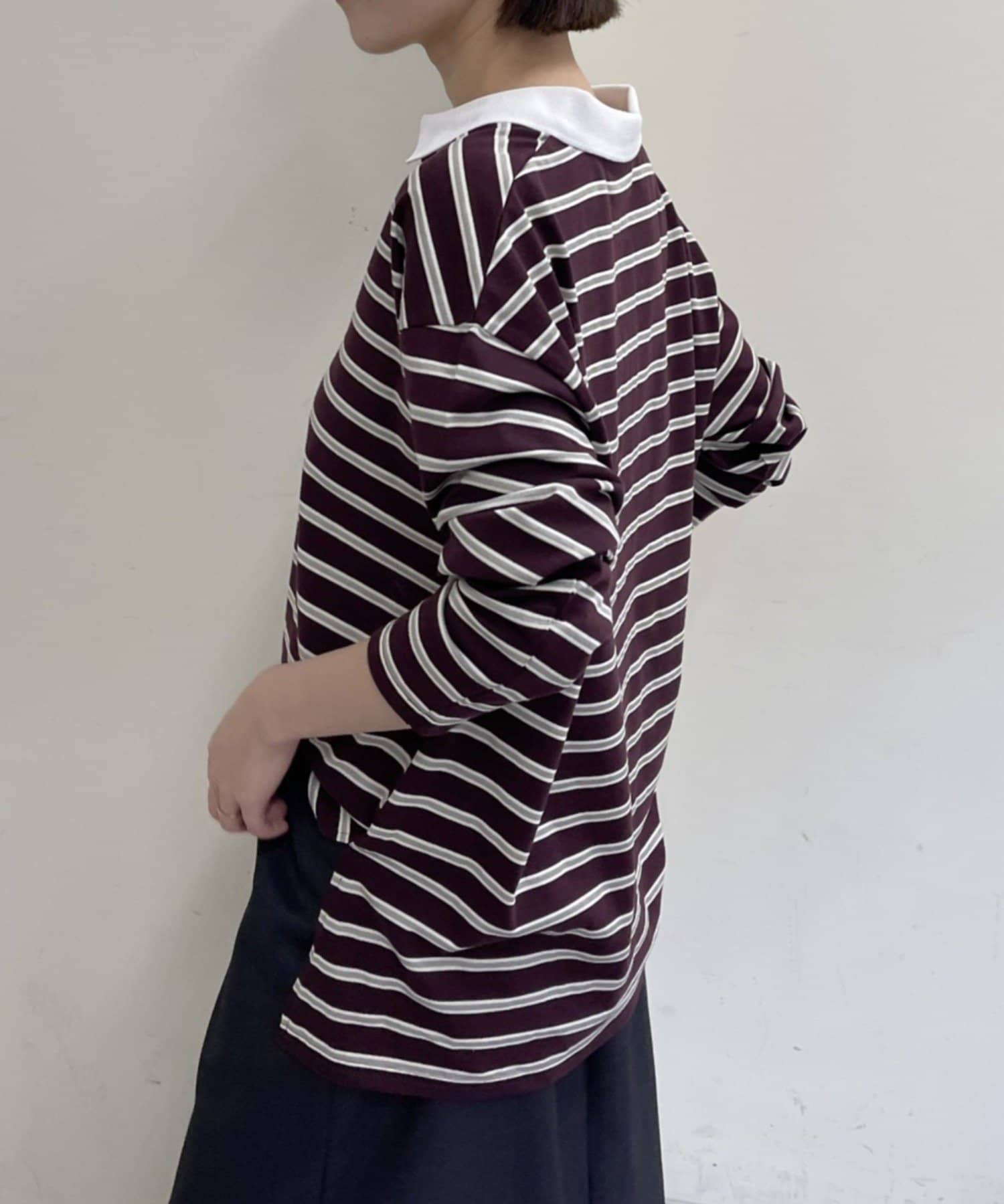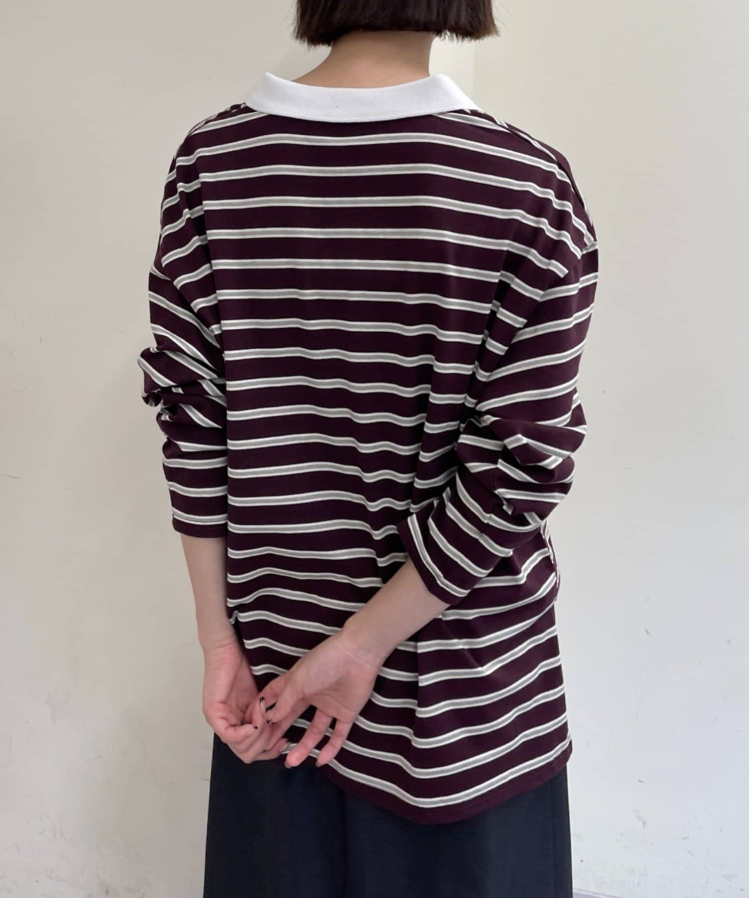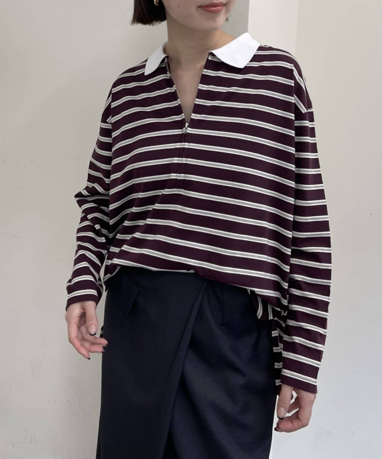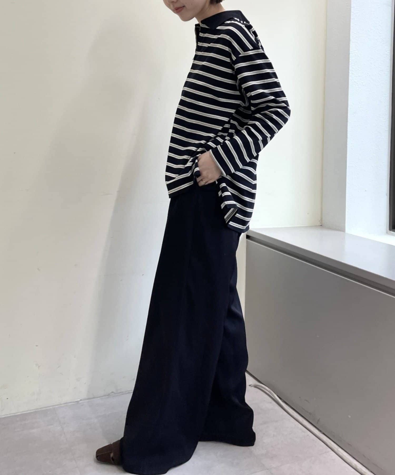 ・襟付きデザインがラフすぎず、一枚でコーディネートが完成するボーダーロンT