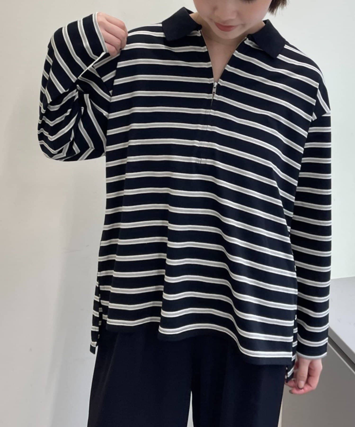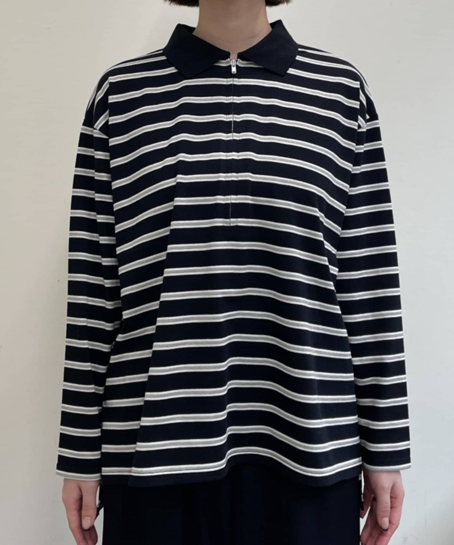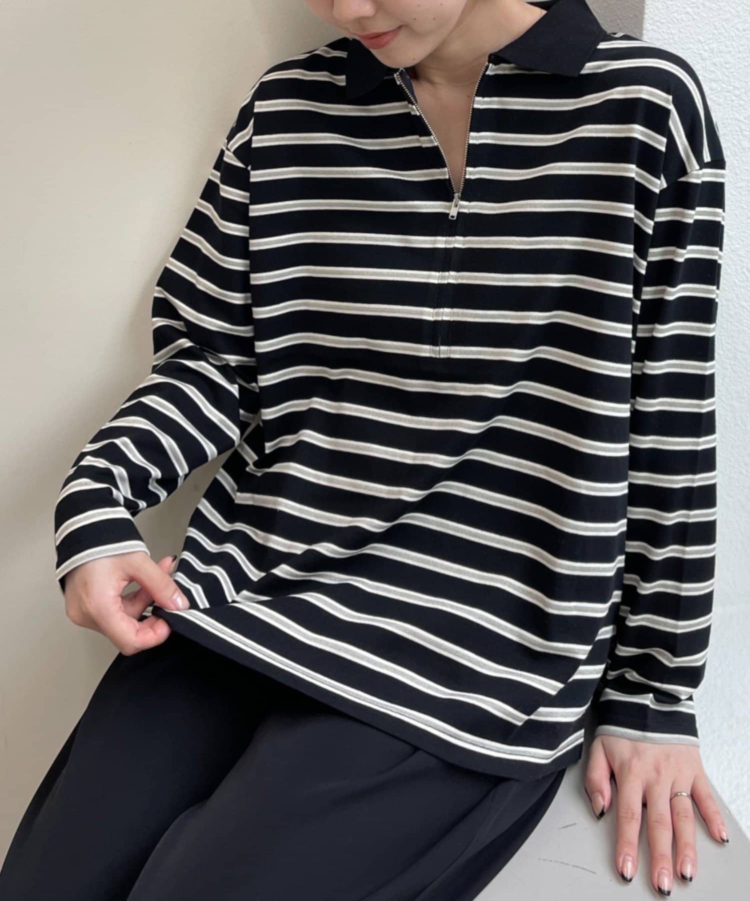 ・襟付きデザインがラフすぎず、一枚でコーディネートが完成するボーダーロンT