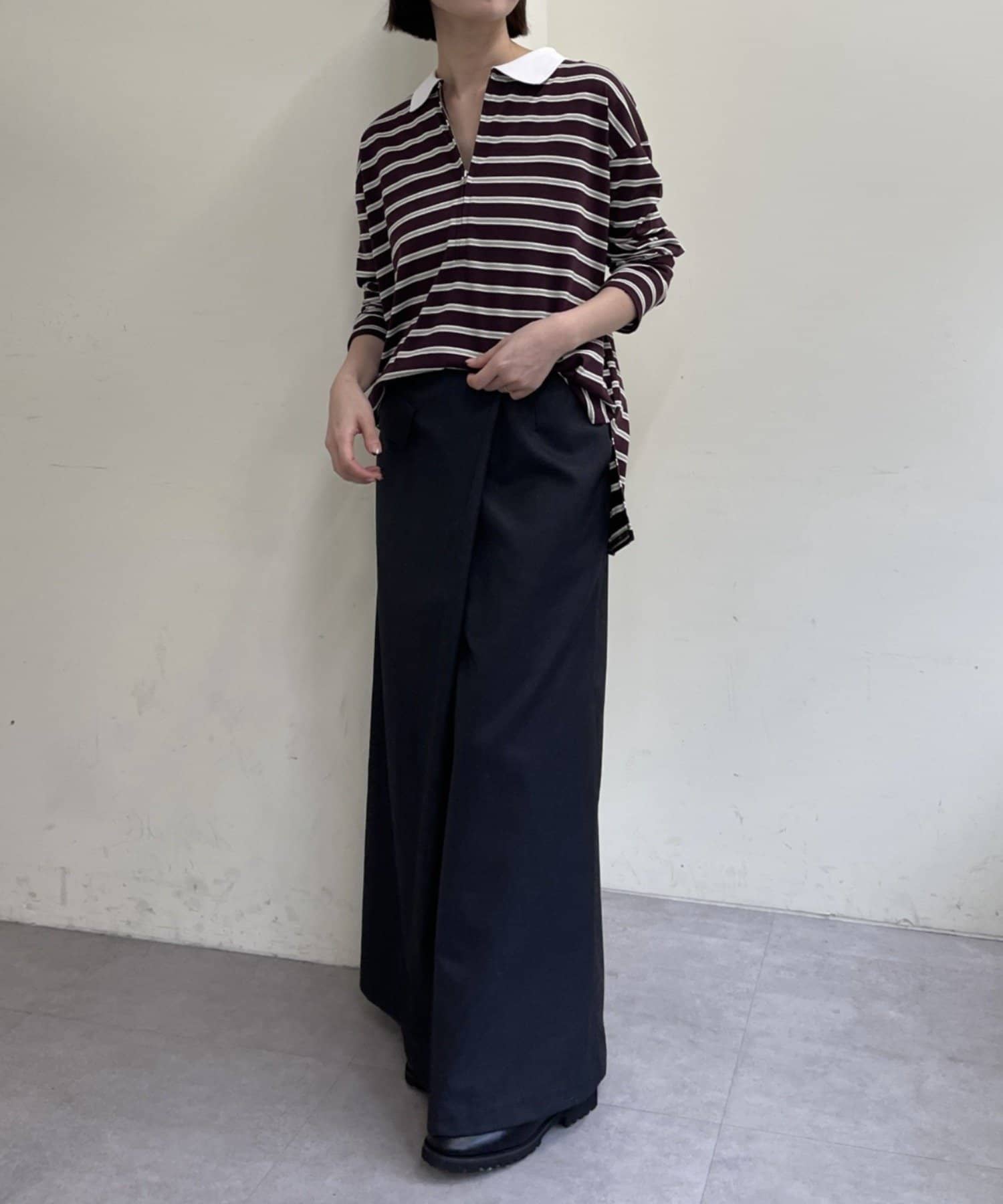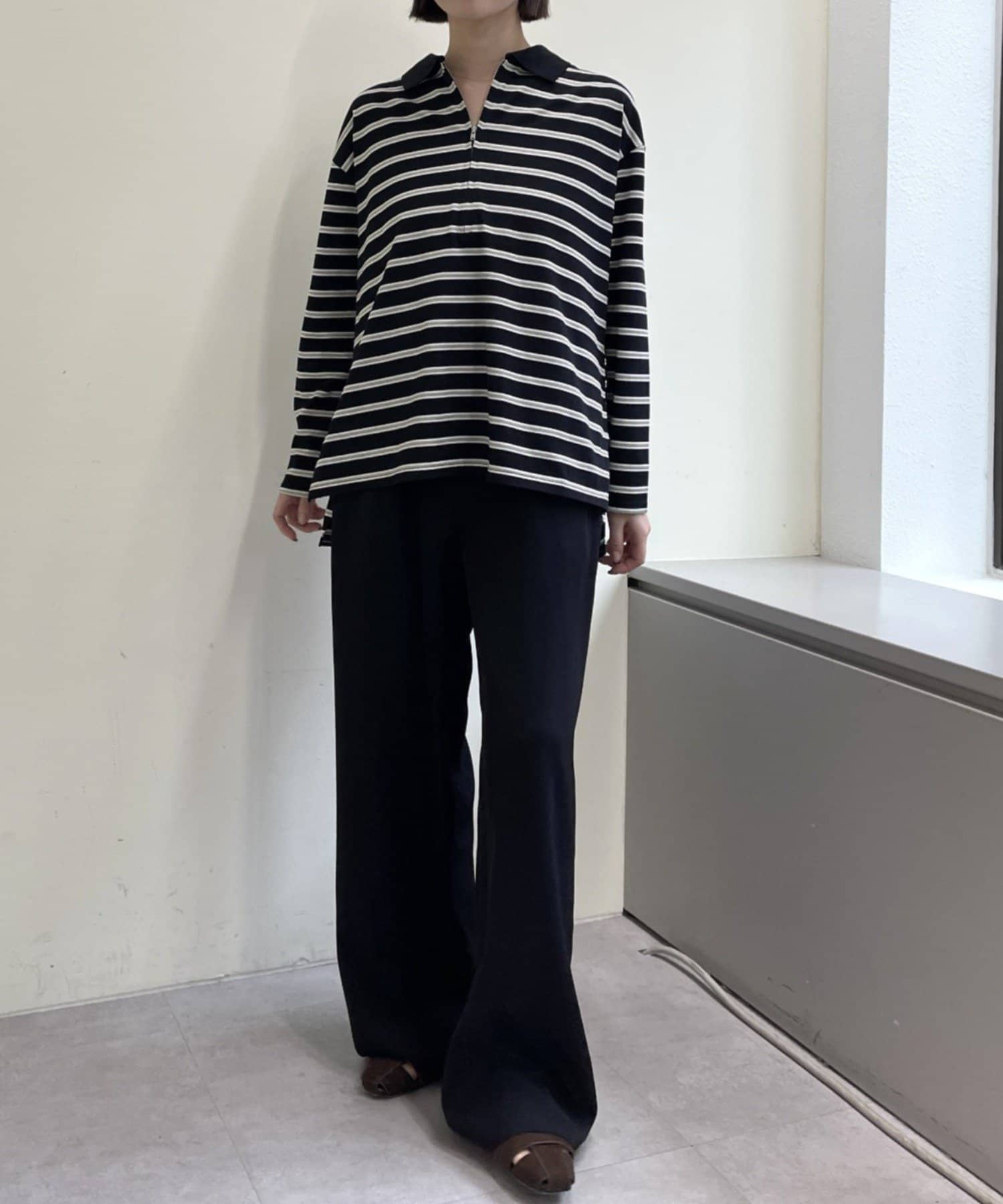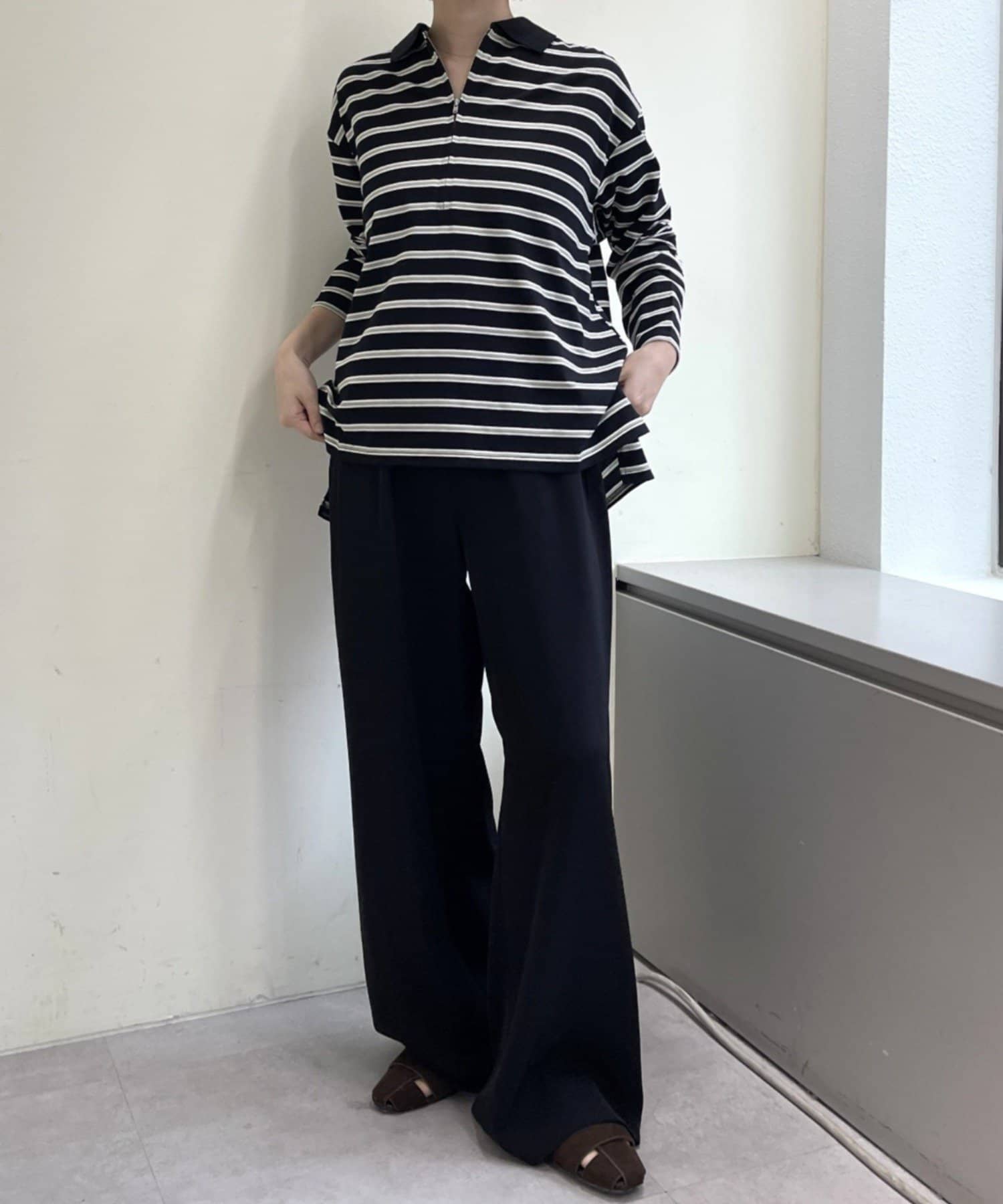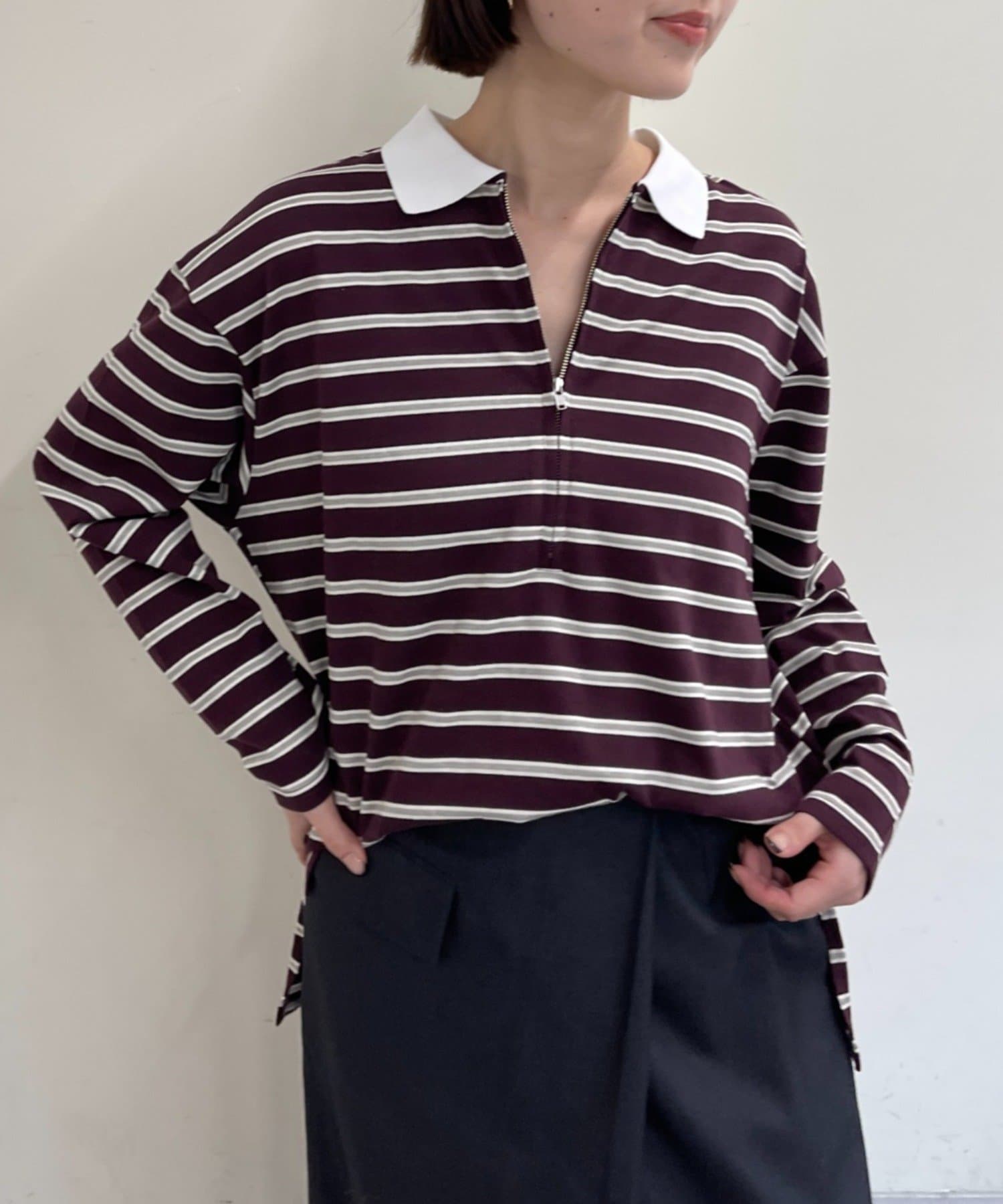 ・襟付きデザインがラフすぎず、一枚でコーディネートが完成するボーダーロンT